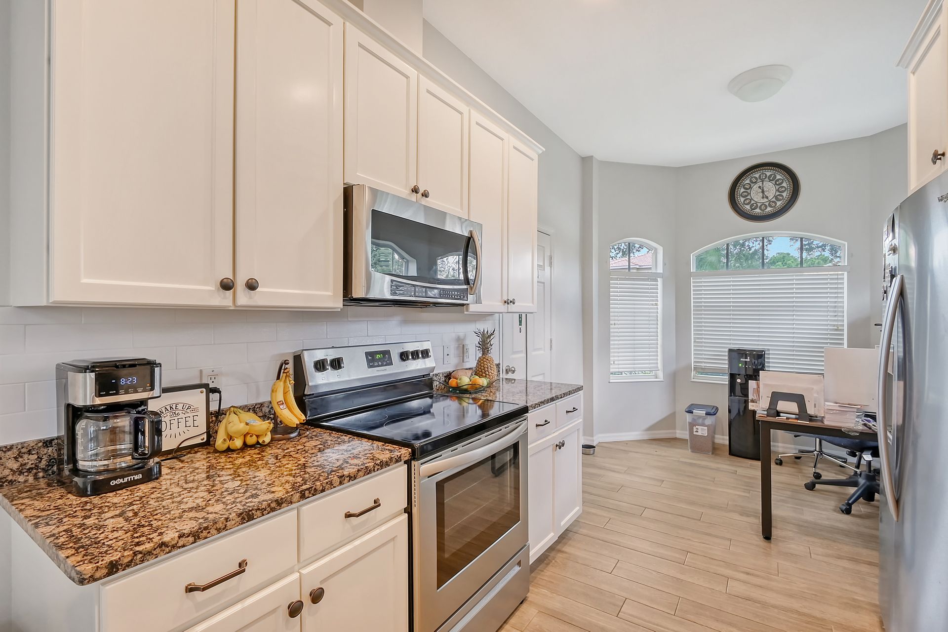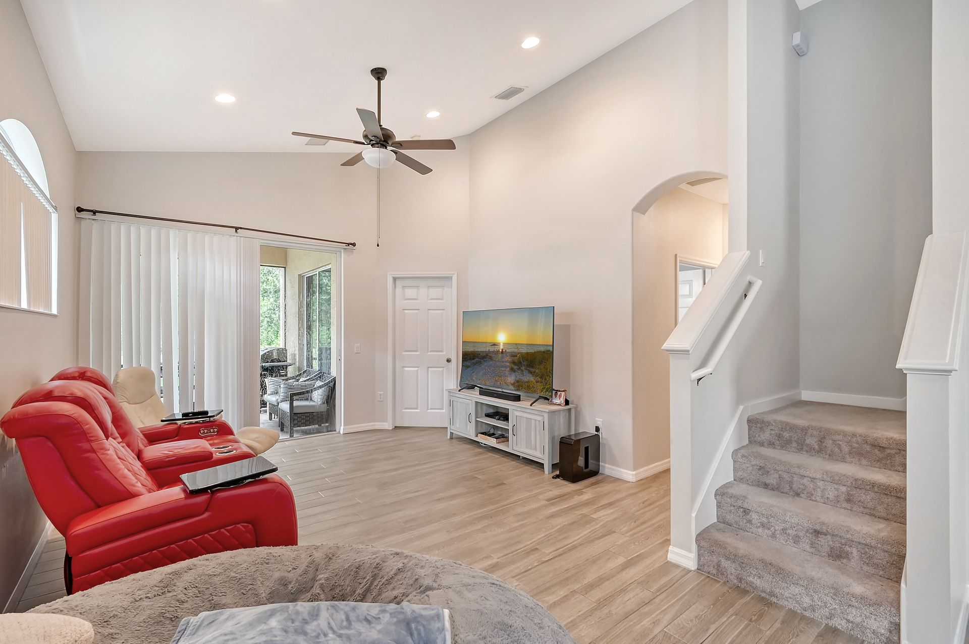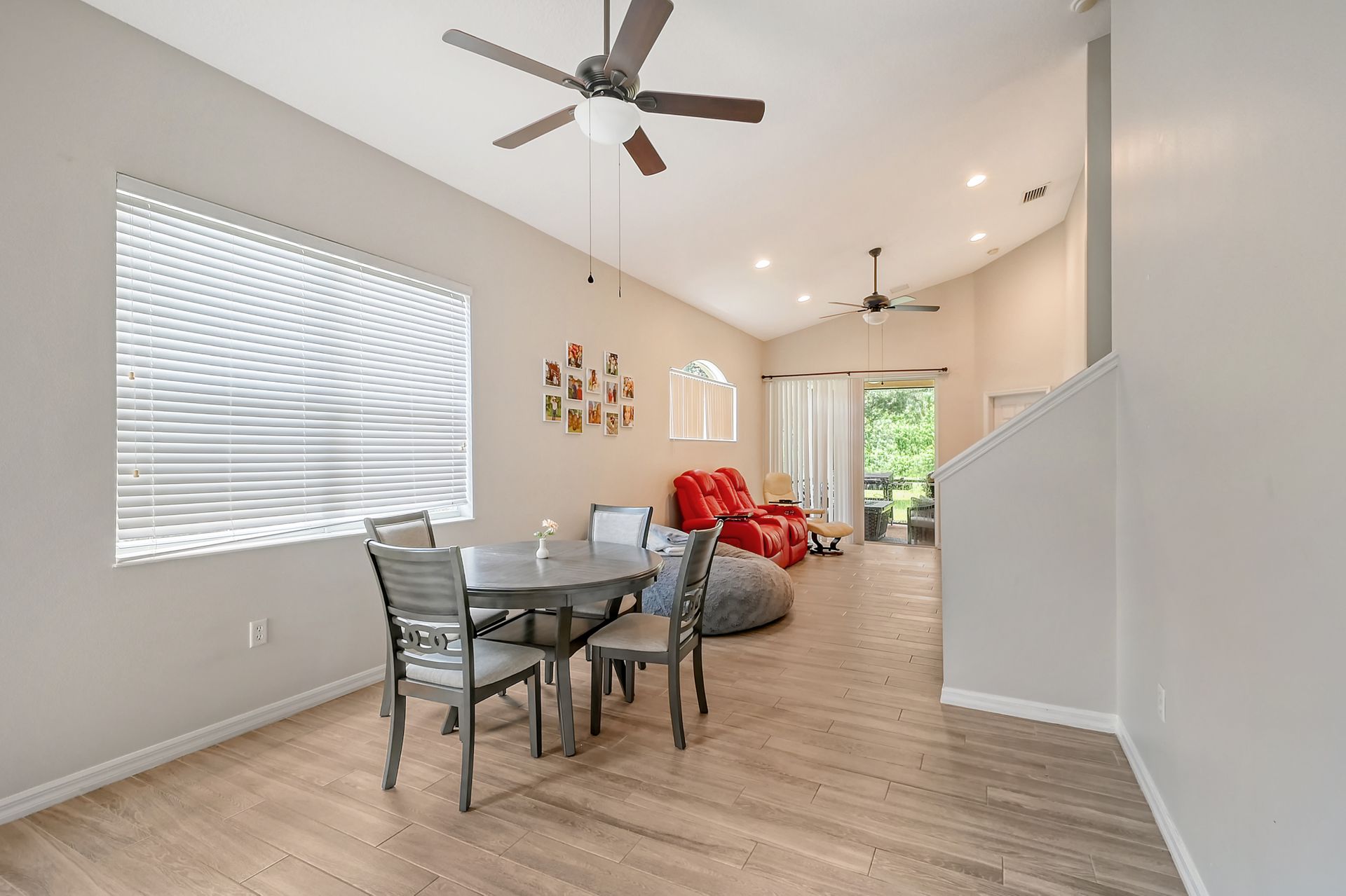 Nestled within the serene Preserve at Tara in Bradenton, this delightful abode boasts 3 bedrooms, 2 bathrooms, and a spacious 5,854 square foot lot, making it an ideal sanctuary for first-time homeowners, those who have finished work and are enjoying the good life, snowbirds, and savvy investors alike. Embrace the luxurious lifestyle of a Country Club or Golf Community without accompanying fees. Situated on a peaceful, dead-end cul-de-sac, this home promises tranquility in the heart of the Sarasota/Manatee area. The community itself is adorned with mature, tree-lined streets and offers residents access to excellent amenities such as a community pool, tennis courts, and pickleball courts. As you step inside, the home welcomes you with soaring ceilings, endless neutral porcelain glaze wood-like plank tile, and a stunning view of the tree-lined backdrop visible through the expansive lanai doors. The open-plan great room seamlessly integrates with the kitchen, creating an inviting space for entertaining and daily living. The large master suite and additional guest bedrooms are conveniently located on the main level for easy living. The heart of the home, the beautifully renovated kitchen, offers an eat-in cafe, breakfast bar, Florida favorited light and bright cabinetry and solid surface countertops. Venture upstairs to discover a versatile loft/flex space perfect for an office, media room, family gathering area, or a private retreat. Outside, a cozy covered, screen enclosed lanai and generous yard await, offering ample space for a custom pool should you wish to add a "splash" of personal touch. Parking is a breeze with a 2-car garage that provides extra room for vehicles and Florida lifestyle essentials. Mere moments from downtown Sarasota, Bradenton, Lakewood Ranch, University Town Center, and an array of stunning beaches. Call today! Don't miss the opportunity to call 7607 Birds Eye Terrace your own piece of Florida paradise.