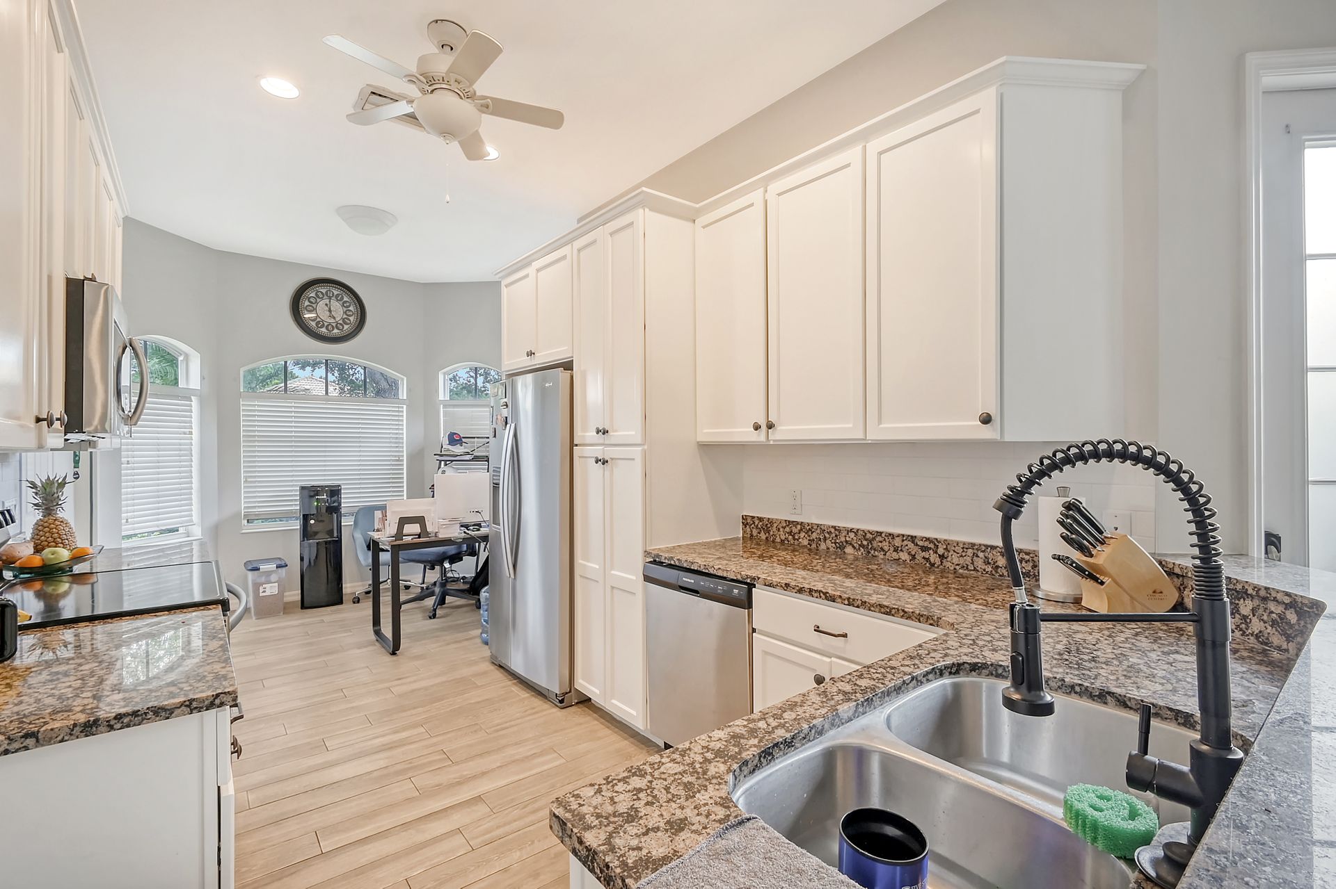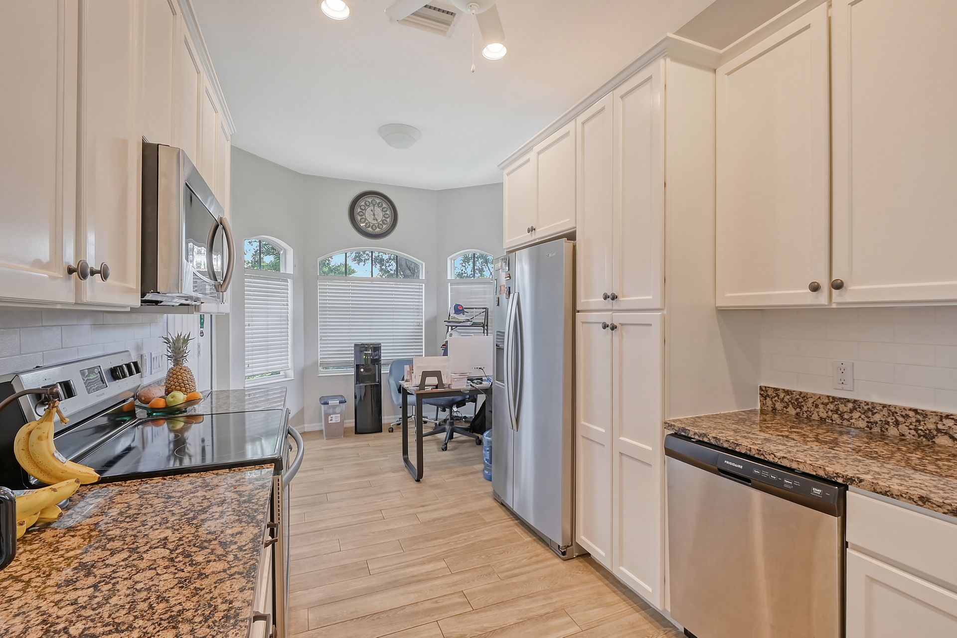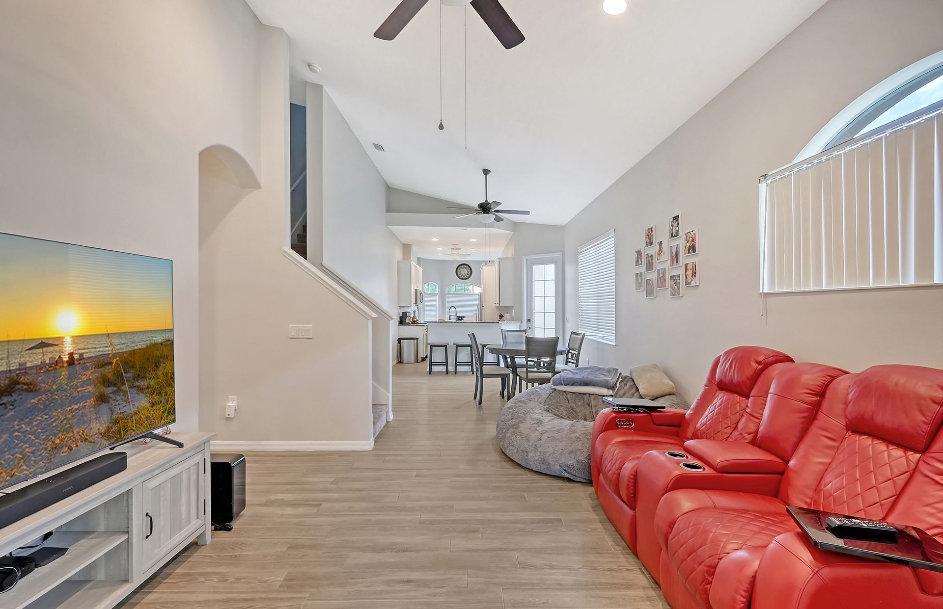 Nestled within the serene Preserve at Tara in Bradenton, this delightful abode boasts 3 bedrooms, 2 bathrooms, and a spacious 5,854 square foot lot, making it an ideal sanctuary for first-time homeowners, those who have finished work and are enjoying the good life, snowbirds, and savvy investors alike. Embrace the luxurious lifestyle of a Country Club or Golf Community without accompanying fees. Situated on a peaceful, dead-end cul-de-sac, this home promises tranquility in the heart of the Sarasota/Manatee area. The community itself is adorned with mature, tree-lined streets and offers residents access to excellent amenities such as a community pool, tennis courts, and pickleball courts. As you step inside, the home welcomes you with soaring ceilings, endless neutral porcelain glaze wood-like plank tile, and a stunning view of the tree-lined backdrop visible through the expansive lanai doors. The open-plan great room seamlessly integrates with the kitchen, creating an inviting space for entertaining and daily living. The large master suite and additional guest bedrooms are conveniently located on the main level for easy living. The heart of the home, the beautifully renovated kitchen, offers an eat-in cafe, breakfast bar, Florida favorited light and bright cabinetry and solid surface countertops. Venture upstairs to discover a versatile loft/flex space perfect for an office, media room, family gathering area, or a private retreat. Outside, a cozy covered, screen enclosed lanai and generous yard await, offering ample space for a custom pool should you wish to add a "splash" of personal touch. Parking is a breeze with a 2-car garage that provides extra room for vehicles and Florida lifestyle essentials. Mere moments from downtown Sarasota, Bradenton, Lakewood Ranch, University Town Center, and an array of stunning beaches. Call today! Don't miss the opportunity to call 7607 Birds Eye Terrace your own piece of Florida paradise.