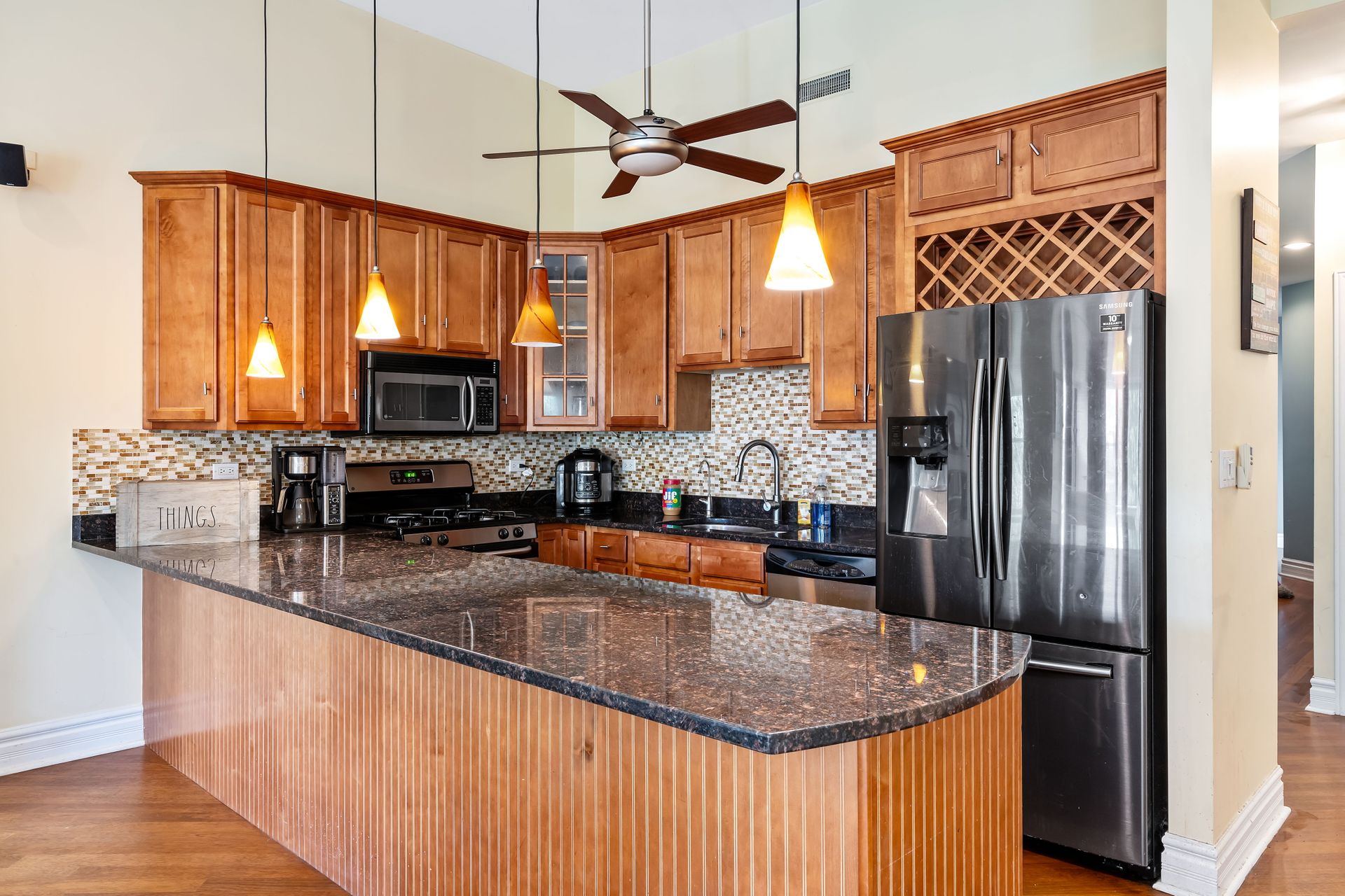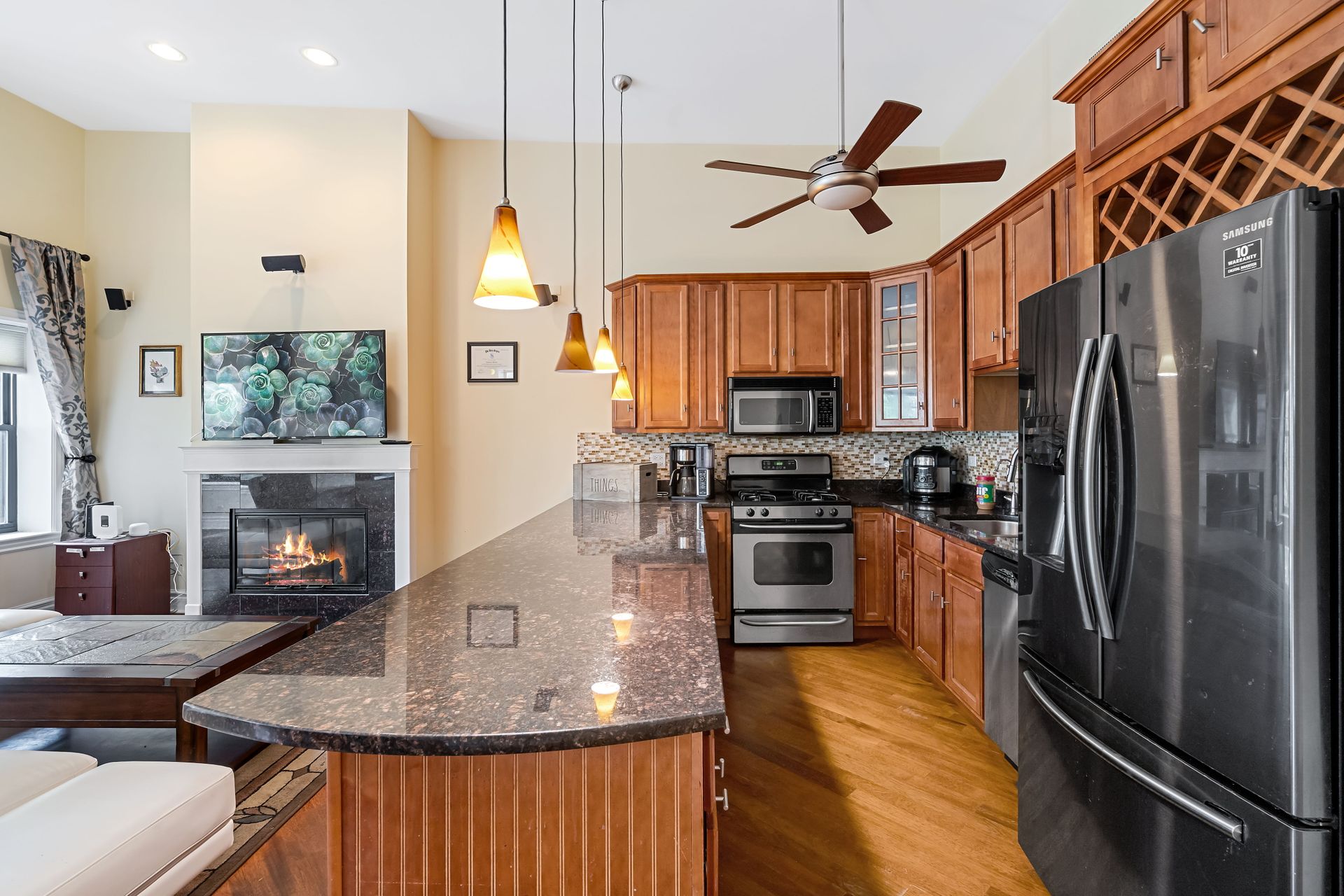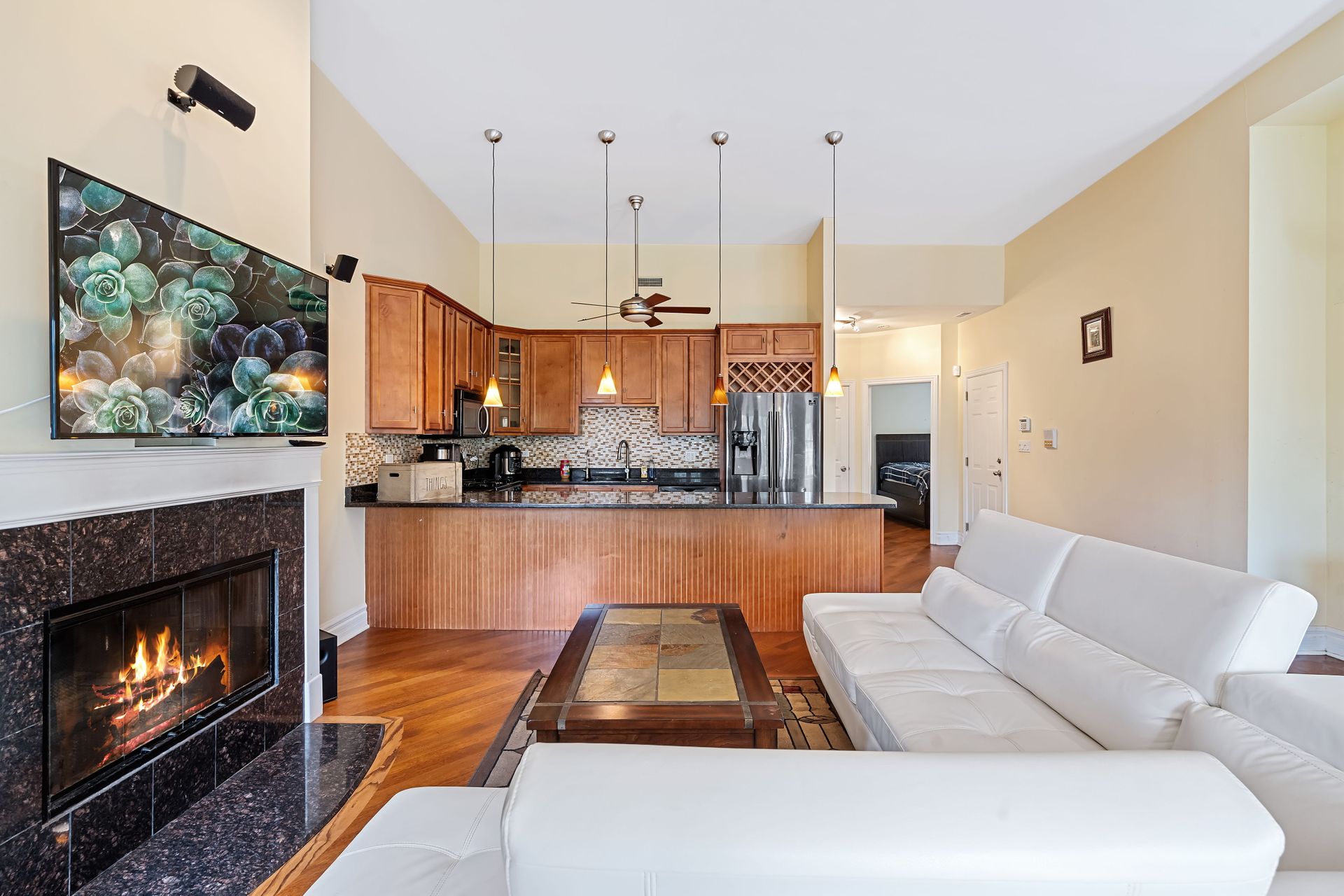 This three bedroom, two bathroom property offers approximately 1,500-square-feet of living space. The condominium/townhouse features a jet tub, providing a luxurious bathing experience. The home also includes a fireplace, creating a cozy and inviting atmosphere. High ceilings contribute to a sense of openness and spaciousness throughout the living areas.