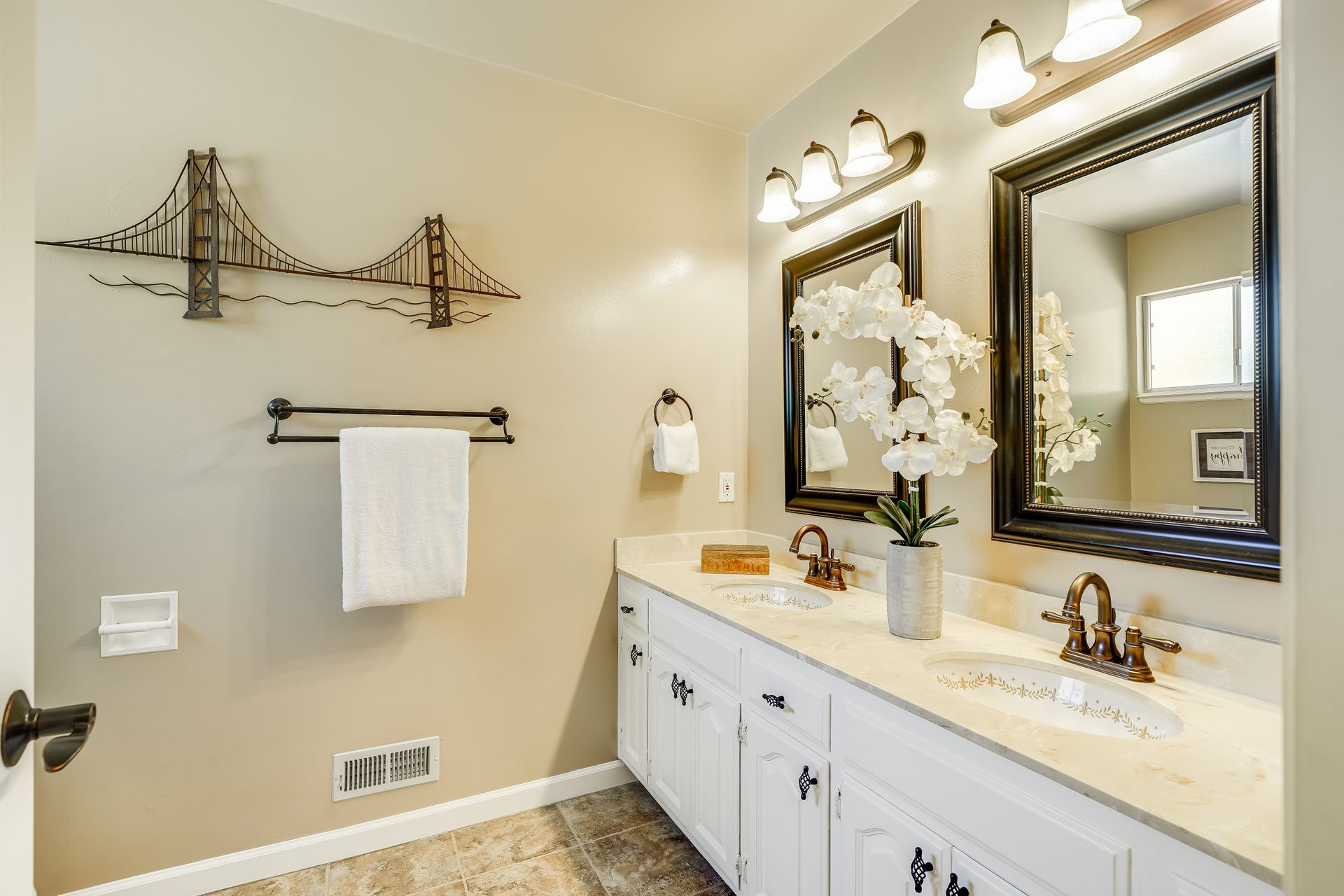 Located at the end of a court, this lovely home in The Palms is move-in ready with its low-maintenance, yet mature landscaping, updated kitchen, refurbished hall bath and fresh paint throughout. Just unpack your belongings and relax in front of the fireplace, surrounded by built-in cabinetry, in one of two living rooms. An ample eat-in kitchen, plus a formal dining room, provide plenty of room for entertaining. The yard allows for a possible pool and/or home expansion, or potential R/V parking. The neighborhood features an elementary school just down the street, and it's close to shopping, including The Orchards and Oak Grove Plaza, and offers excellent commute access to Pleasant Hill BART and Hwys 24 & 680.
