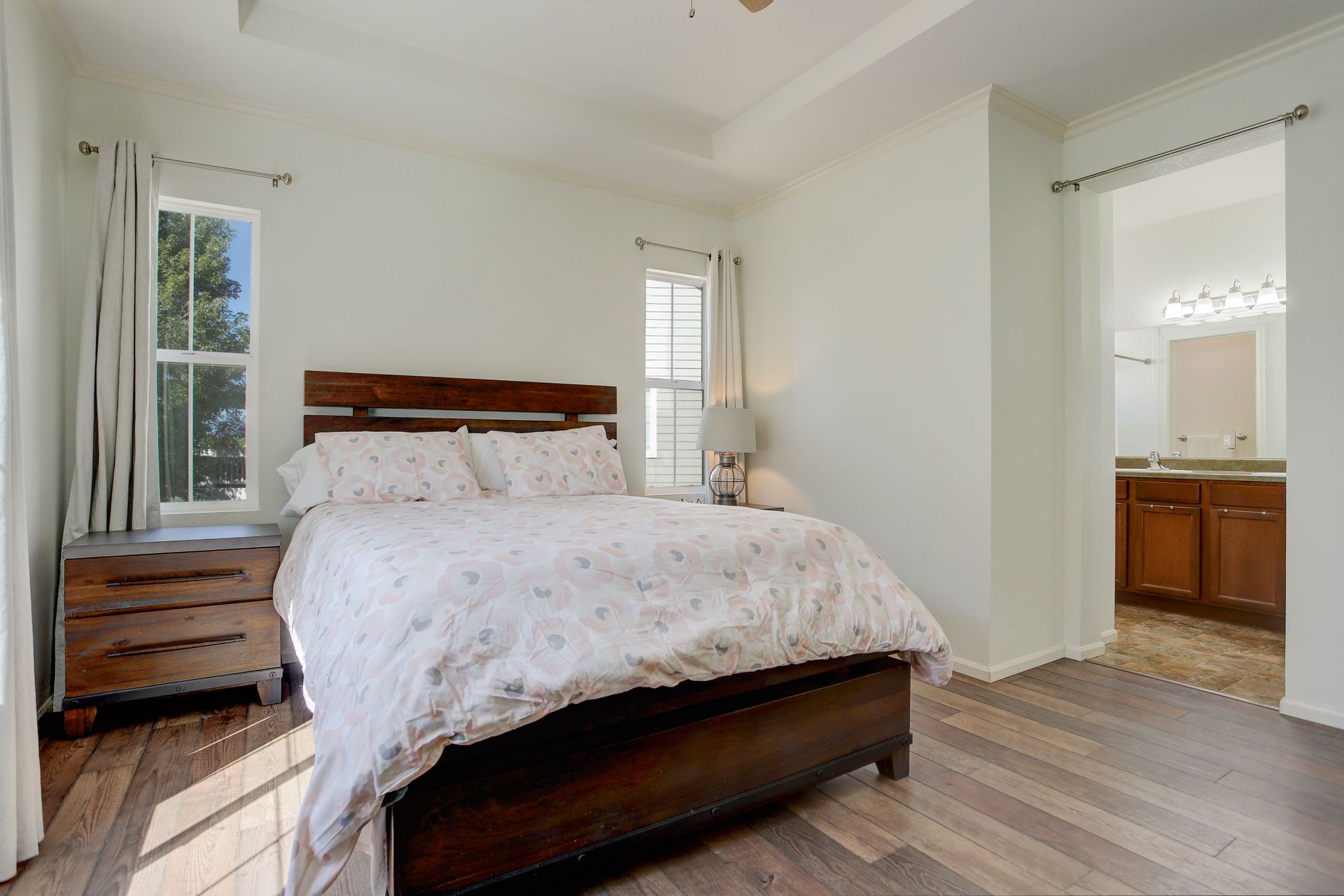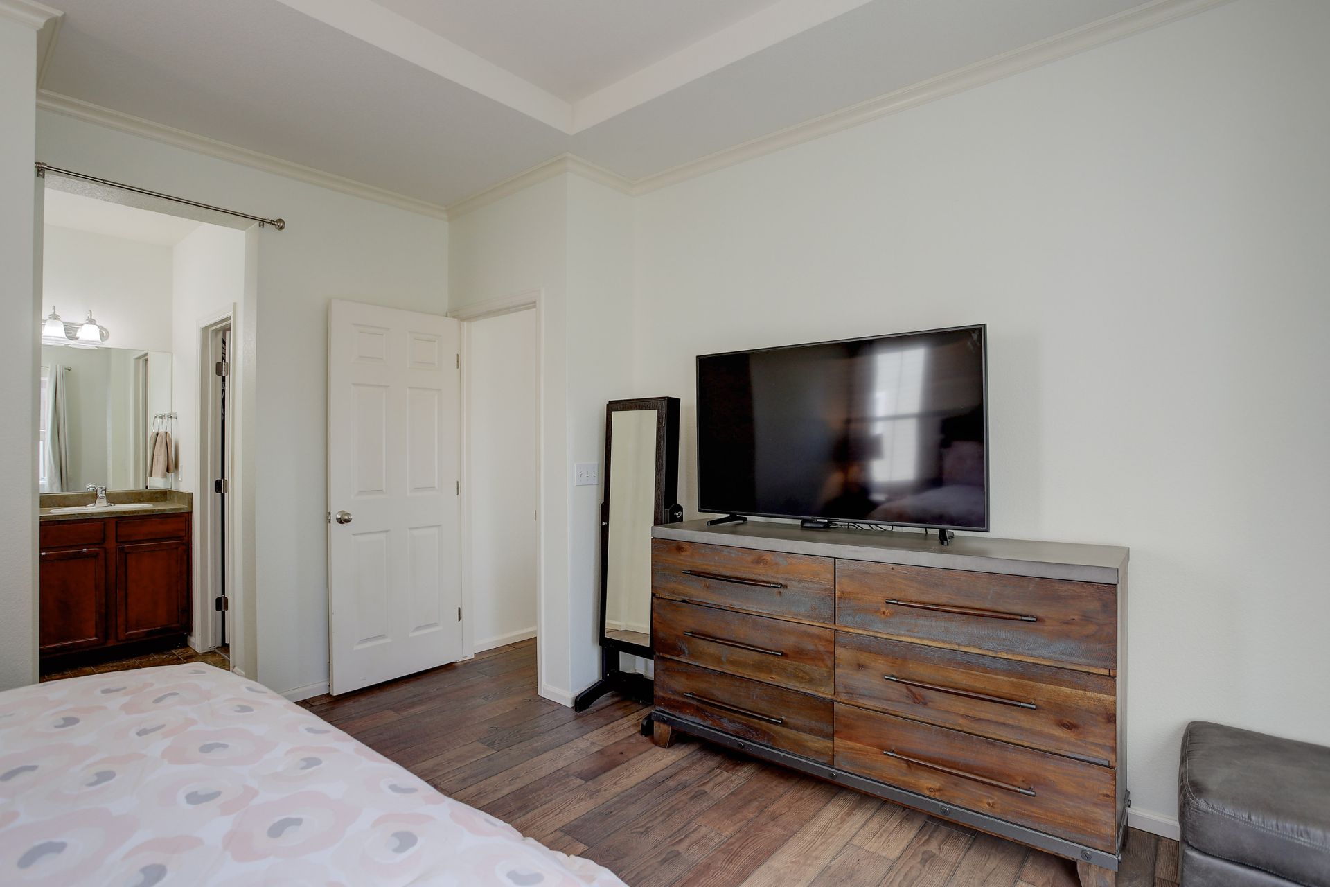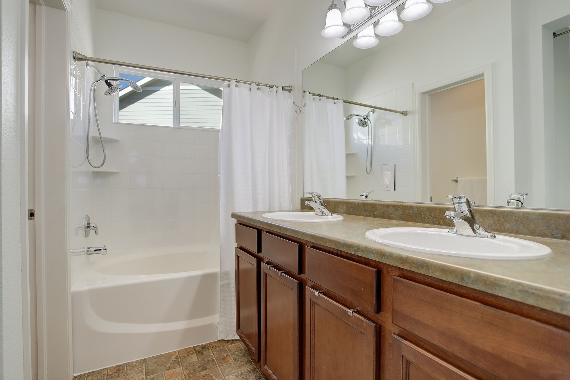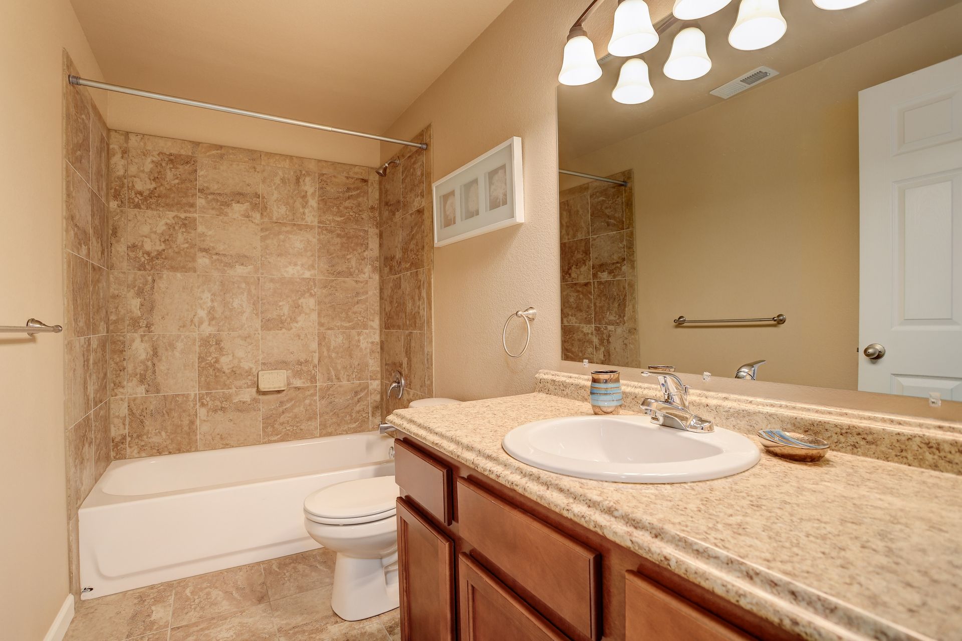 This move-in ready home has 4 bedrooms, 3 baths, vaulted ceilings and plantation shutters throughout the great room area and features...high-quality LVP in most of the main level...13x18 living room with TV niche, clerestory windows and ceiling fan prewire...dining area with decorator light fixture and door to back patio...updated kitchen with painted 42" cabinets, Cambria quartz counters, island with counter bar, convenient 1-bowl sink and touchless faucet, and SS appliances including smooth top range...sunny 12x14 primary bedroom with crown molding, 9' tray ceiling, ensuite with extended vanity, double sinks, soaking tub and walk-in closet...2nd bedroom/office with 9' ceilings and windows overlooking the covered front porch and mature trees...convenient full hall bath...and main level laundry with included W/D. The fully finished, permitted basement has 9' ceilings, quality new carpet throughout and features...two large adjoining family room spaces, one for your couch and TV, and the other for a game table/workout space/etc. and dry bar with ample cabinets, mini-fridge and counter bar...3rd and 4th bedrooms (located peacefully away from the action) with good-sized closets...and full hall bath with large vanity, granite-look formica and 12"x12" ceramic tile shower walls and floor. Outside, you'll enjoy the...sunny backyard with paver patio, artificial turf and mature trees and shrubs...xeriscaped front yard with mature trees and just a small patch of grass...neighborhood walking/biking trail access across the street...less than 1/2 mile to the award winning K-12 Banning Lewis Academy and BLR rec center with pool, splash pad, playground, tennis/pickleball courts and fitness room. Easy access to the Powers corridor shopping, dining and entertainment, and Peterson and Shriever SFBs, too!