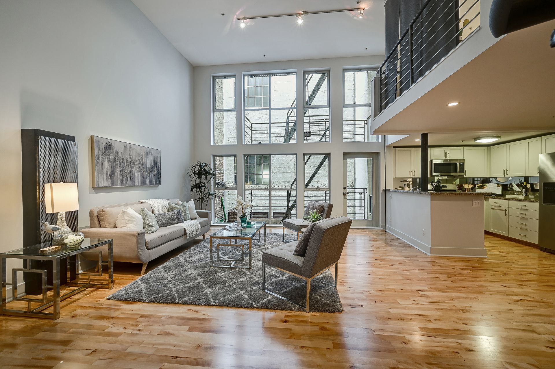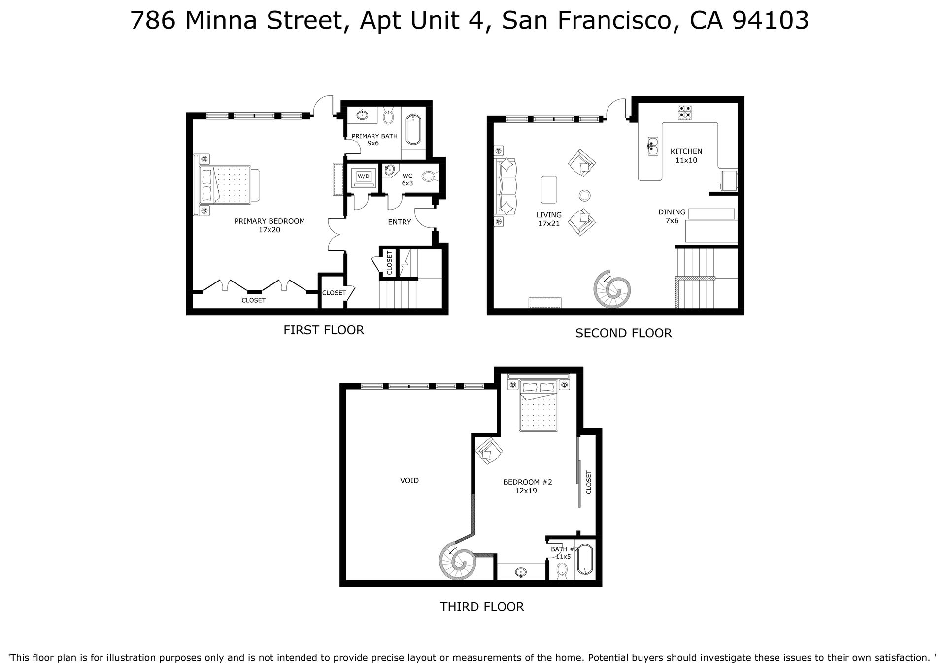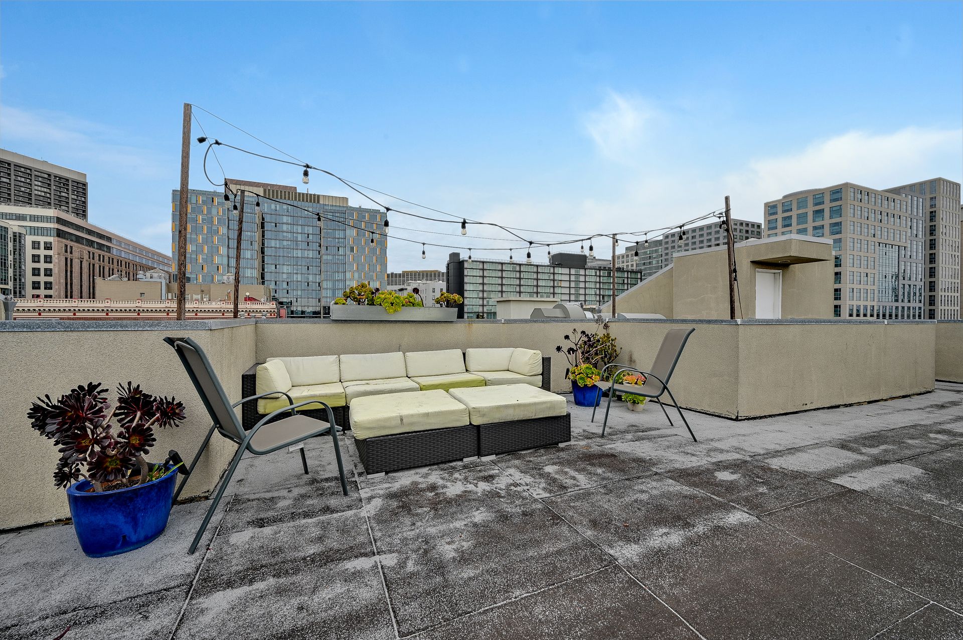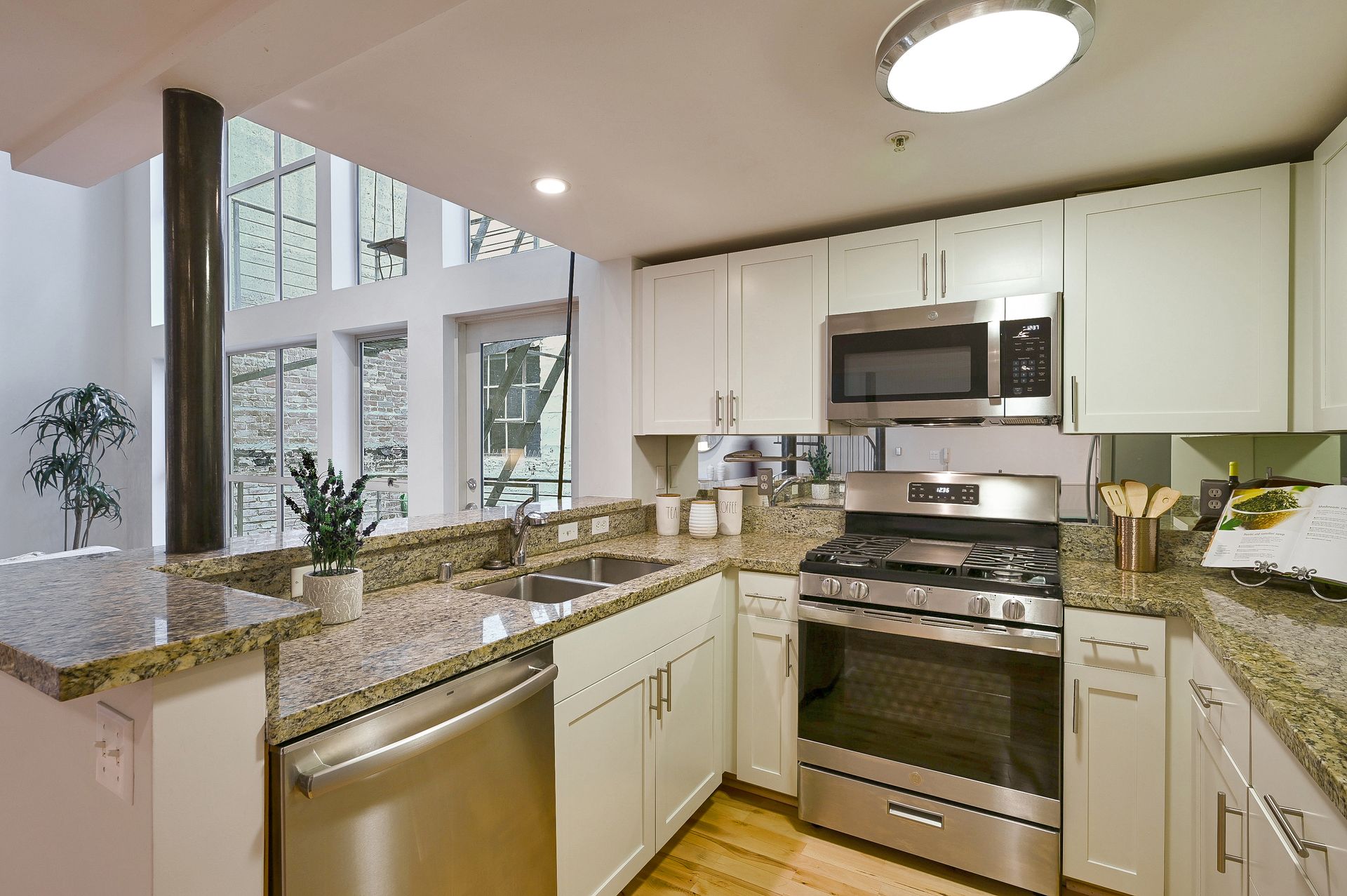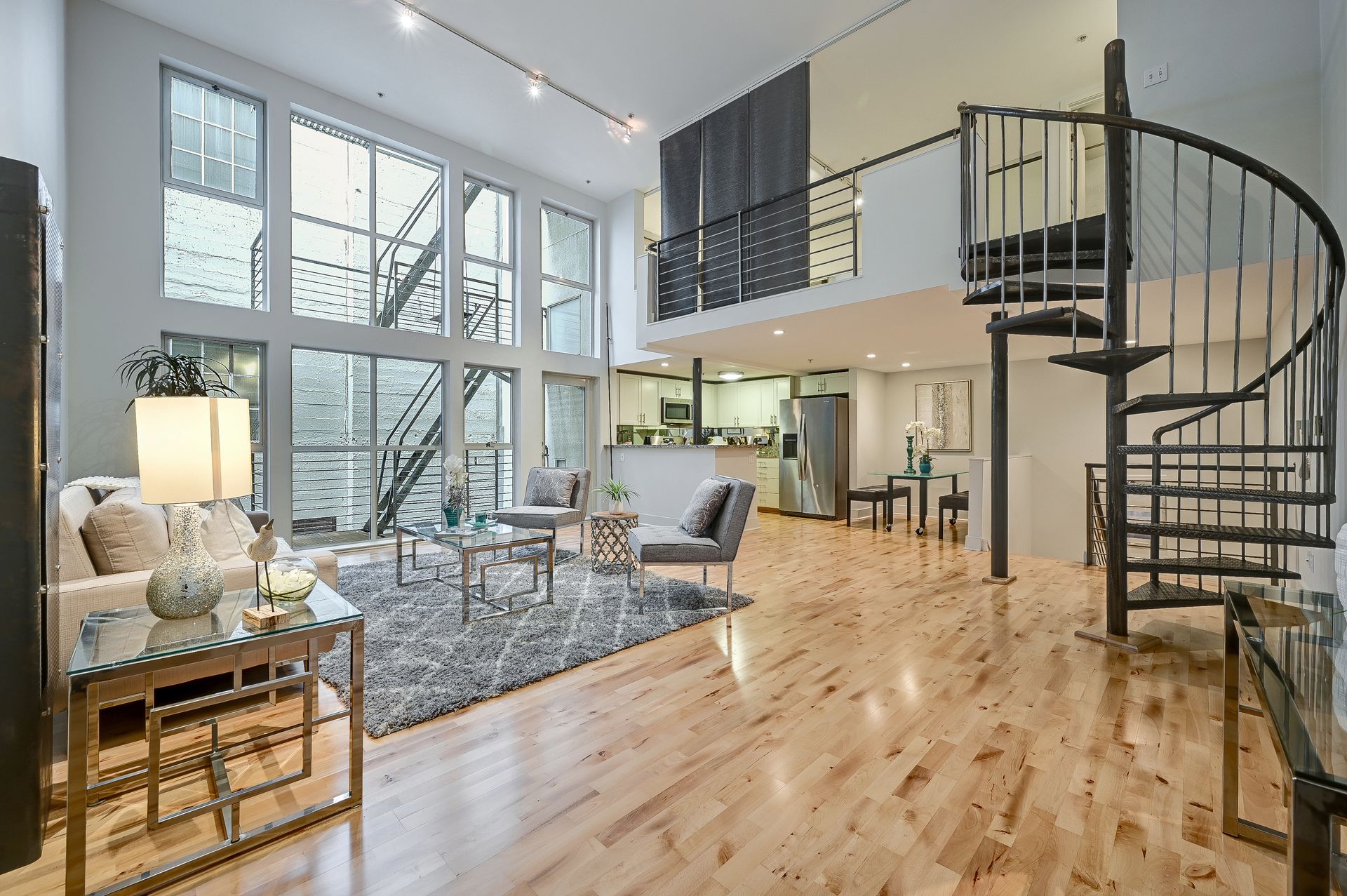 Sunny, dramatic, and centrally located, this tri-level loft features soaring ceilings, two bedrooms, two and one-half baths and two deeded tandem parking spaces with storage. The first level consists of a spacious master suite with ample closet space; it has direct access to a large patio and a half bath for guests. The main level showcases an open floor plan with a soaring ceiling and expansive windows allowing for an abundance of natural light. The open layout is ideal for entertaining with a combination living and dining room and a sizable U-shaped kitchen with granite countertops and stainless-steel appliances. The spacious loft bedroom with an ensuite bathroom overlooks the main living space. Hardwood floors, an in-unit washer and dryer and a shared roof deck with a barbeque area truly makes this loft desirable. This boutique live/work building is on a peaceful block in close proximity to the Civic Center, Bart/Muni, Main Library, Yerba Buena, Hayes Valley, Uber HQ and Twitter HQ. This address has a walk Score of 98 and a Bike Score of 99 according to walkscore.com.