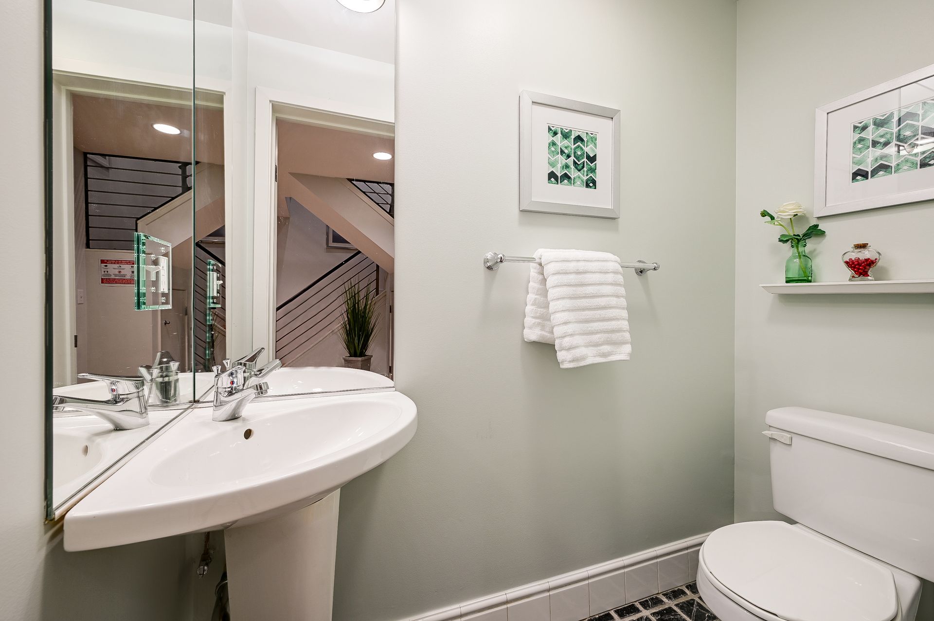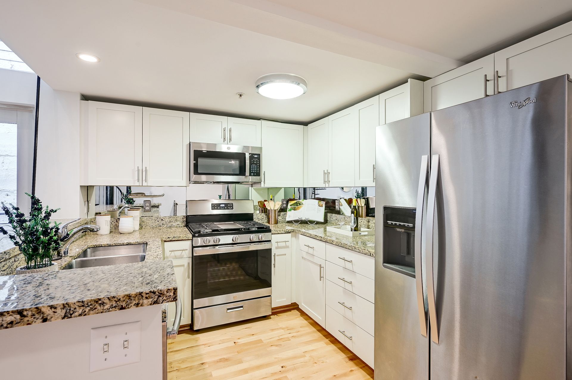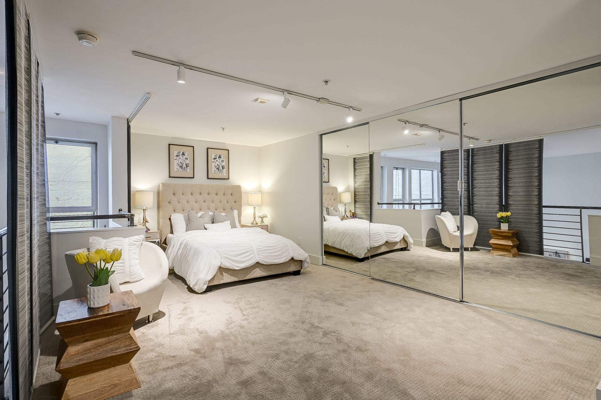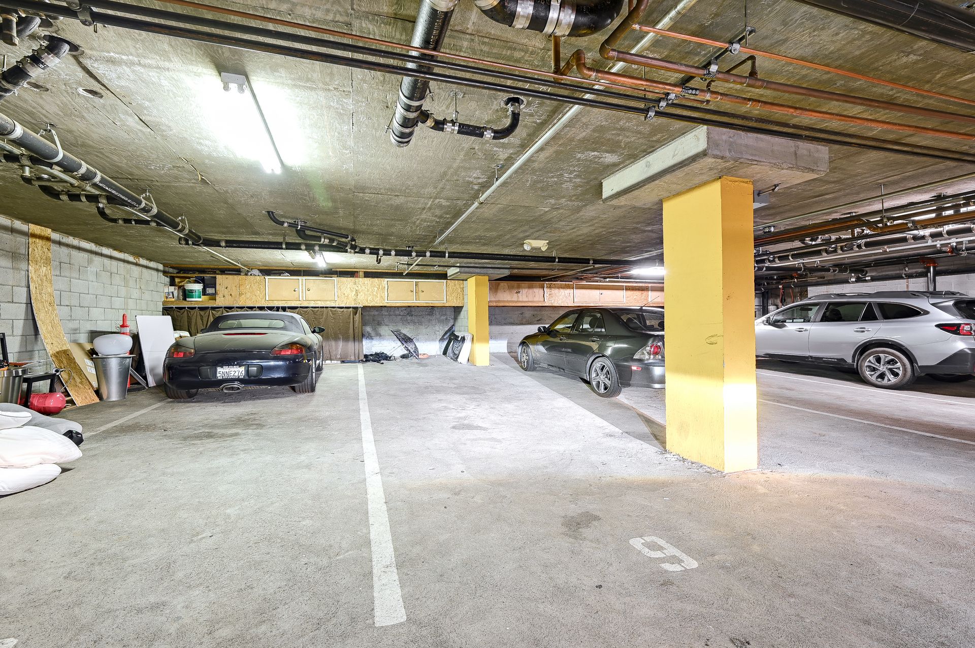 Sunny, dramatic, and centrally located, this tri-level loft features soaring ceilings, two bedrooms, two and one-half baths and two deeded tandem parking spaces with storage. The first level consists of a spacious master suite with ample closet space; it has direct access to a large patio and a half bath for guests. The main level showcases an open floor plan with a soaring ceiling and expansive windows allowing for an abundance of natural light. The open layout is ideal for entertaining with a combination living and dining room and a sizable U-shaped kitchen with granite countertops and stainless-steel appliances. The spacious loft bedroom with an ensuite bathroom overlooks the main living space. Hardwood floors, an in-unit washer and dryer and a shared roof deck with a barbeque area truly makes this loft desirable. This boutique live/work building is on a peaceful block in close proximity to the Civic Center, Bart/Muni, Main Library, Yerba Buena, Hayes Valley, Uber HQ and Twitter HQ. This address has a walk Score of 98 and a Bike Score of 99 according to walkscore.com.