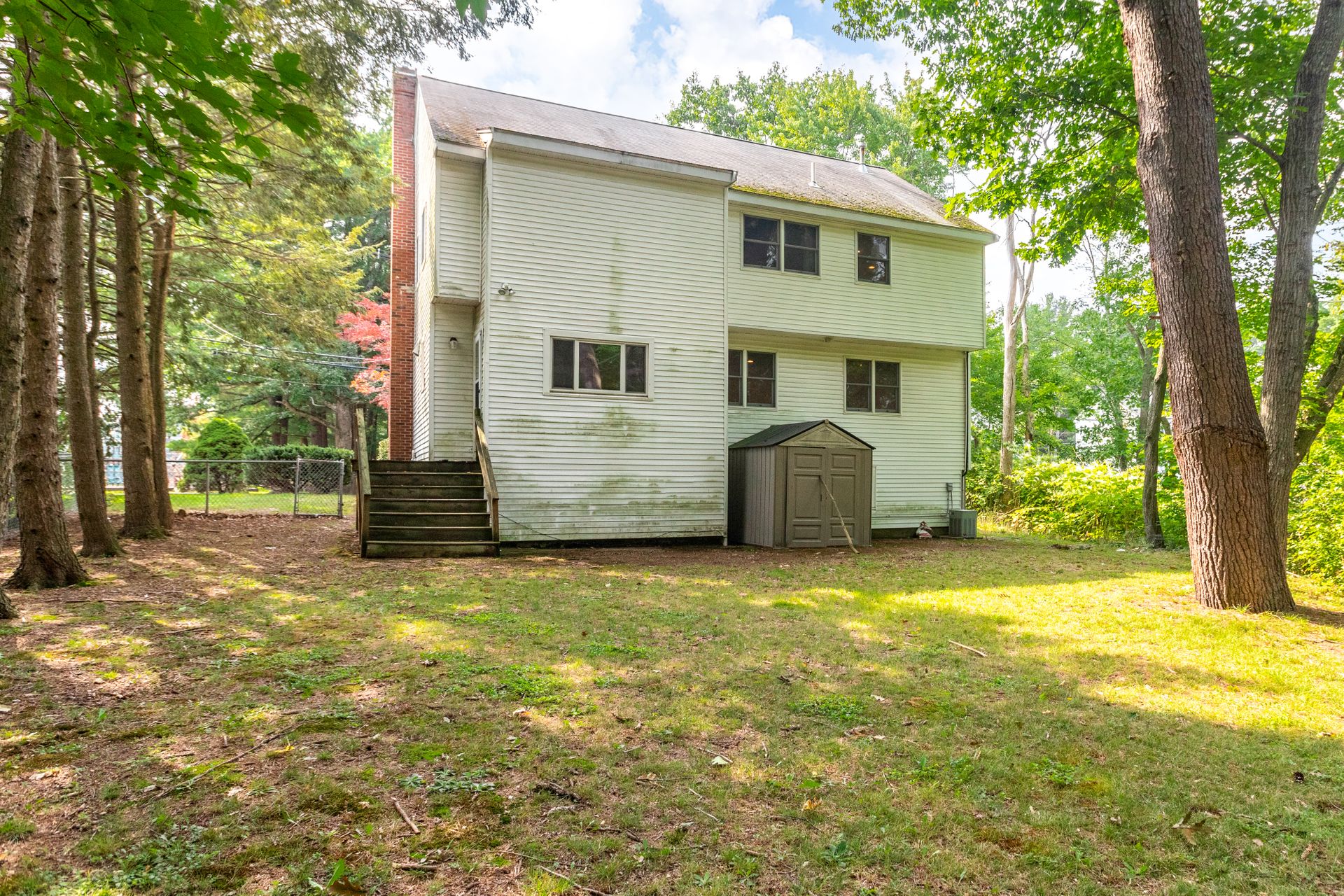 Welcome to this four bedroom, three full bath Colonial style home located in the desirable Fox Hill neighborhood. Convenient to major highways, shopping, dining and public transportation. The main level offers charming living room with brick fireplace, and picturesque windows to Rahanis Park. An open floor plan kitchen, dining area, bedroom or office space, and a full bath complete this level. Upstairs you will find a master bedroom with a walk-in closet and en-suite bathroom, two additional bedrooms and a full bathroom with second floor laundry. The finished lower level has great flexibility for additional living space and storage. Gas heat, central AC, newer hot water heater, and 200 amps electrical.