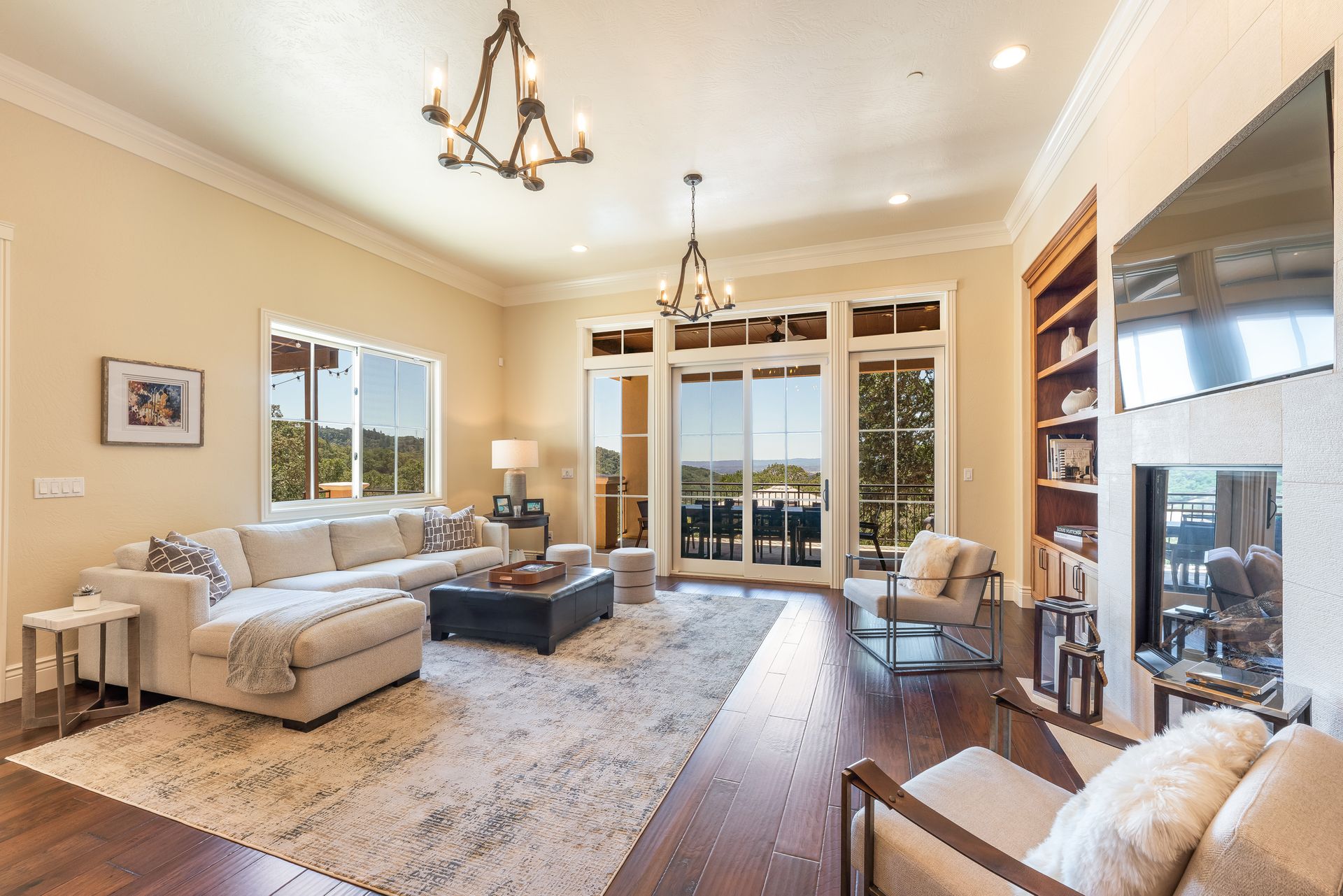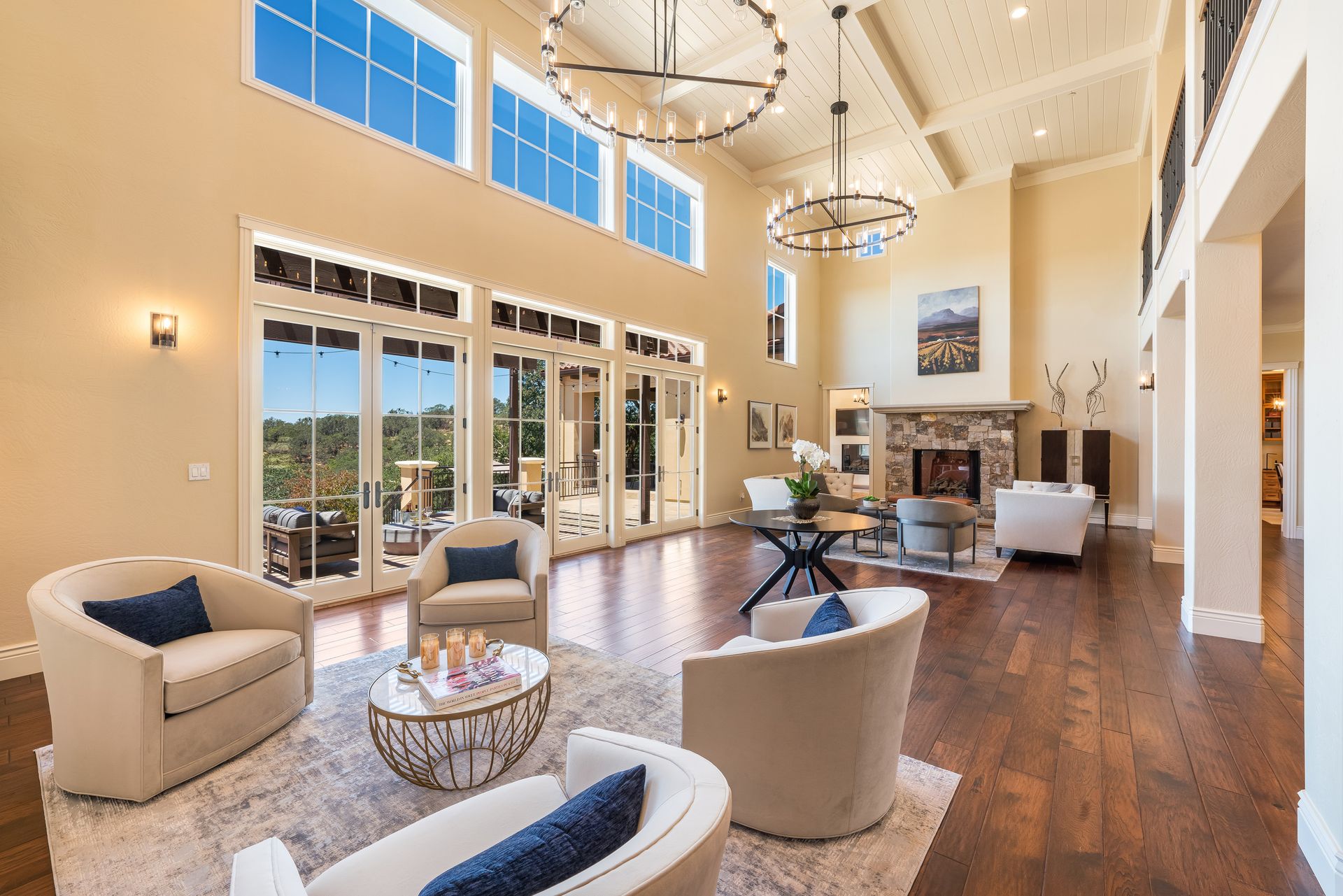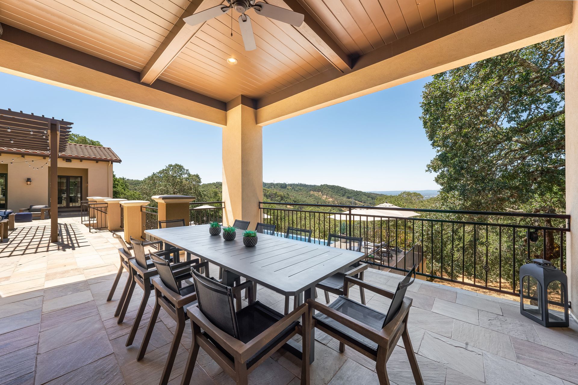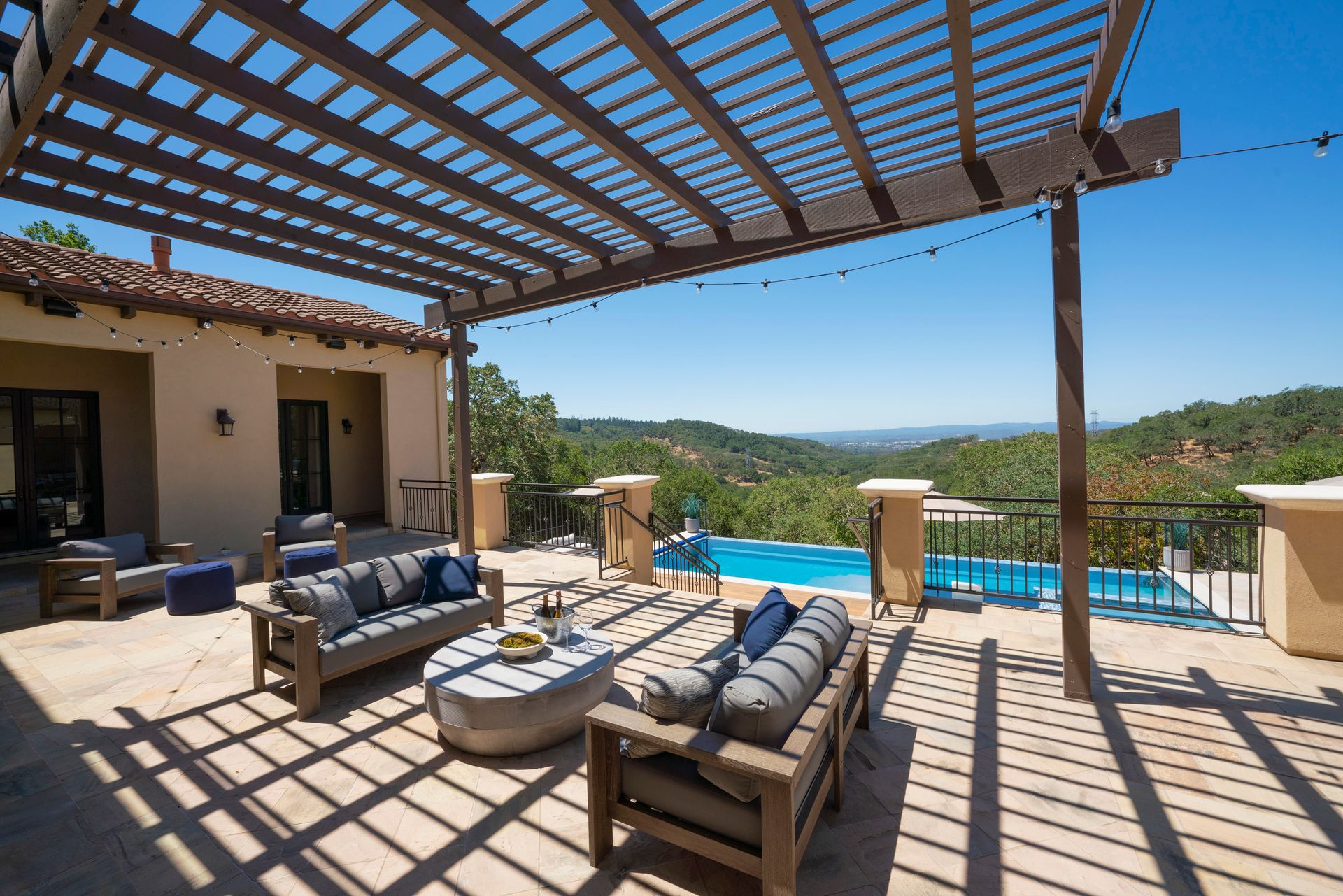 This is an exceptional opportunity to live in the desirable gated community of Shiloh Estates. Delightfully set in Sonoma County Wine Country on approximately 10.5 private acres with hills and valley views. Subtle elegant appointments throughout harmonize both formal and casual living. Enter this home through double glass wrought iron entry doors. The main residence boasts more than 6,200 square feet of living space with 4 bedrooms, 4.5 baths, great room and dining room, a family room open to the chef’s kitchen and breakfast area, a home office, gym and wine cellar. An array of French doors lead to multiple terraces and outdoor entertaining spaces. Enjoy the views from the infinity edge pool and spa with a waterfall rim, bocce court and fire pit. There is a pool retreat with a full bath convenient for guests and a separate guest house that provides a kitchen, bedroom, and full bath. The outdoor entertaining space boasts an ironwood deck for al-fresco dining by the built-in outdoor kitchen. For the car enthusiast, there is a 2-car attached garage and a detached 3-car garage joined by the paver auto court. This lifestyle estate sits adjacent to prestigious Mayacama Golf Club and just minutes from Sonoma County Airport.