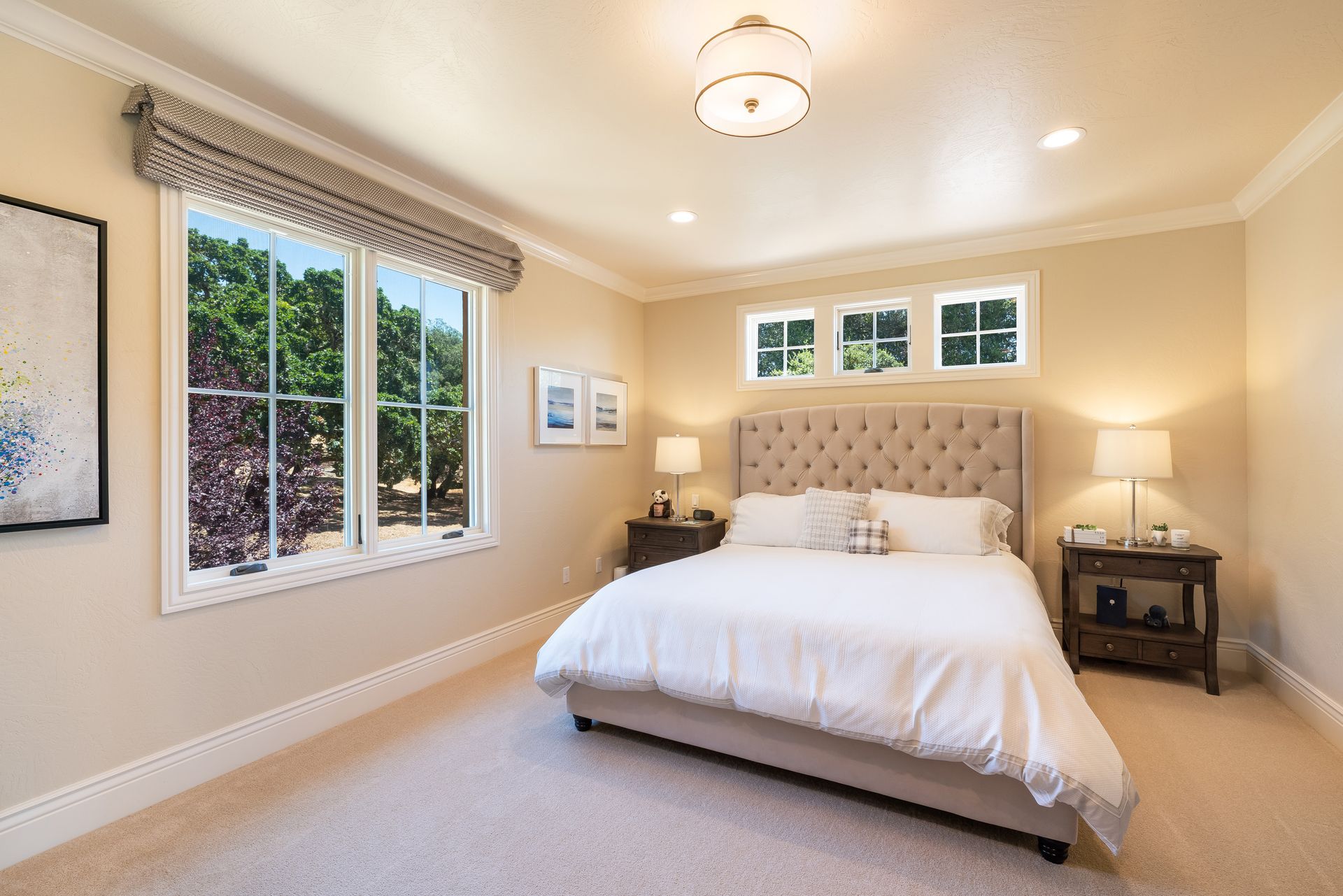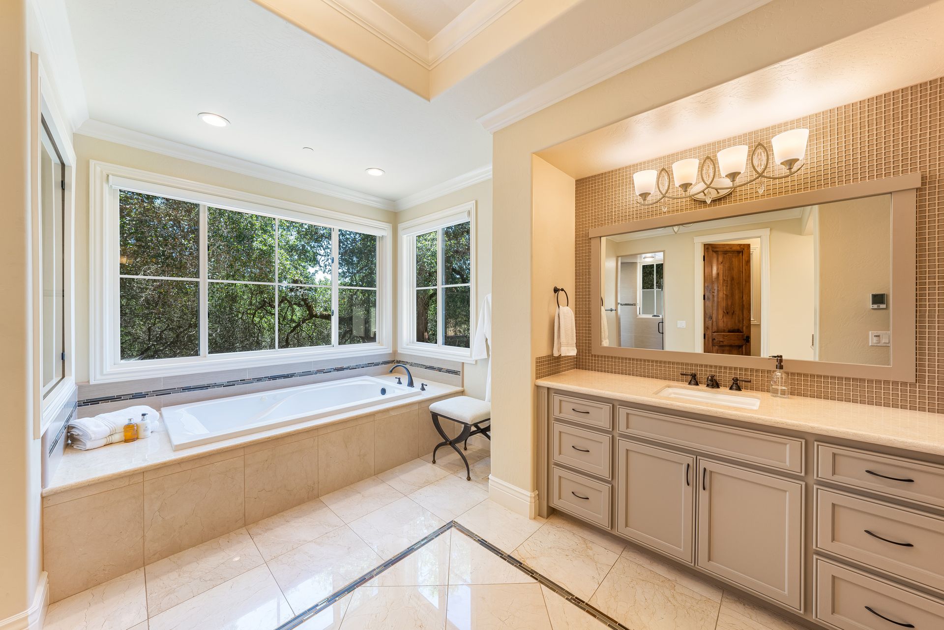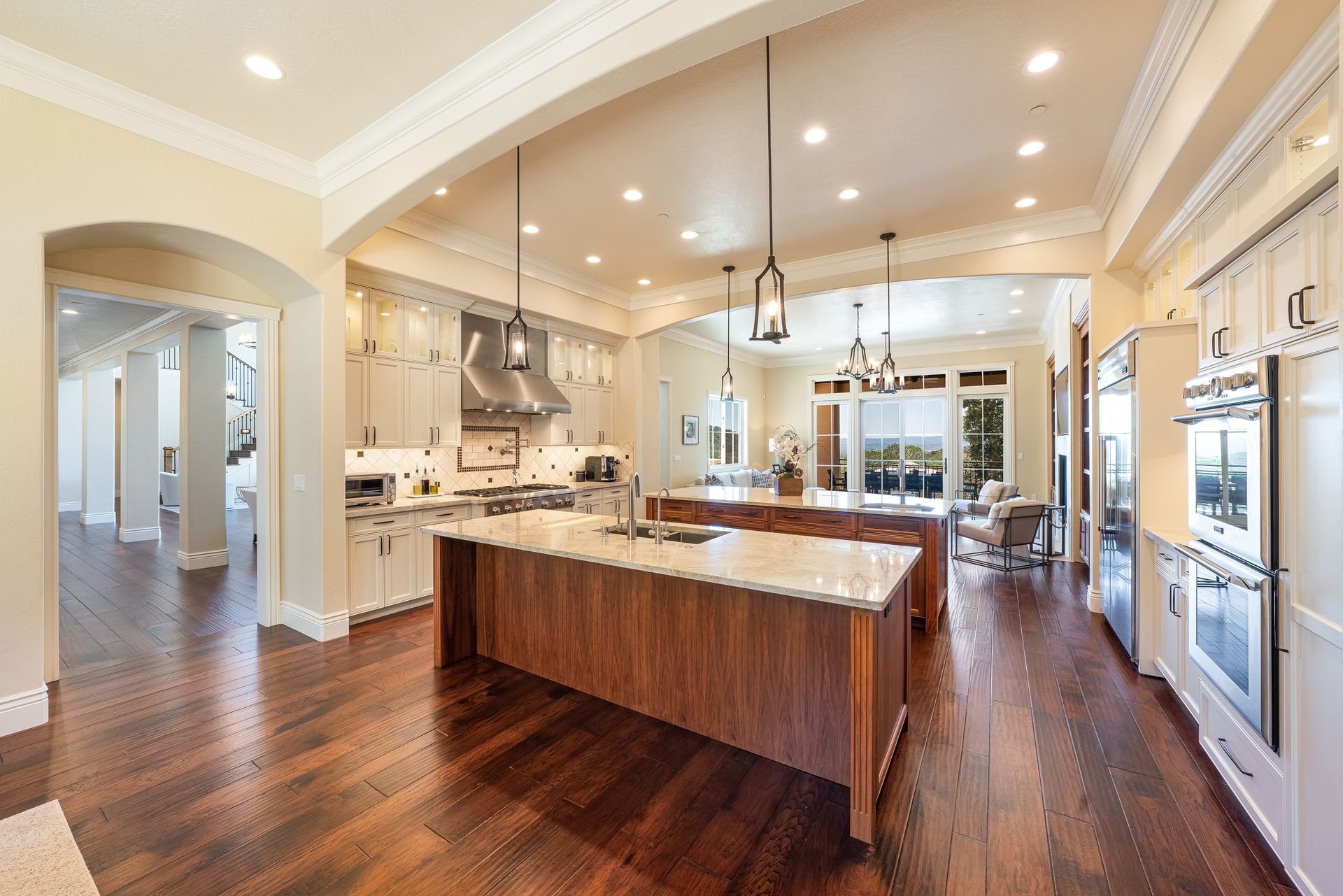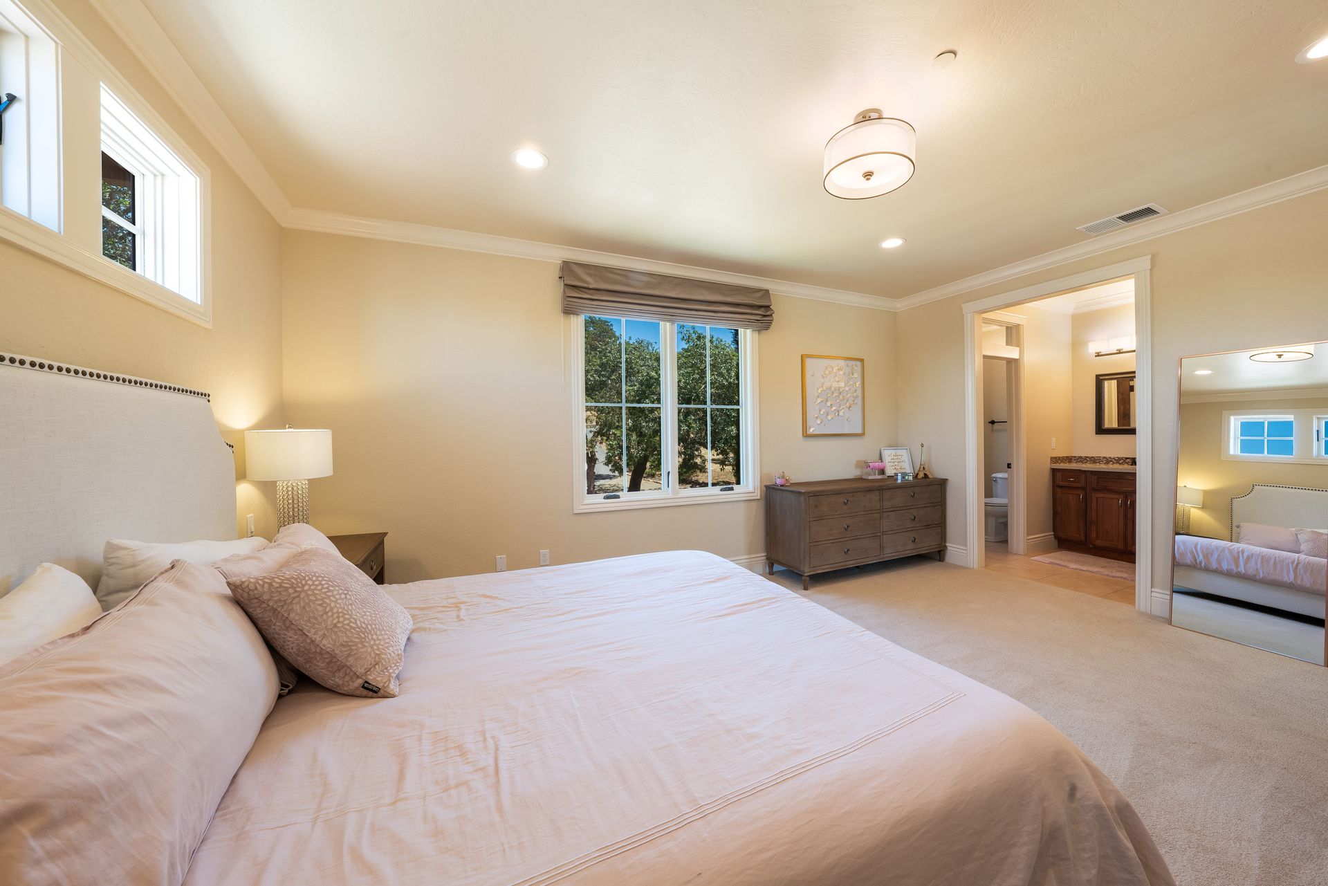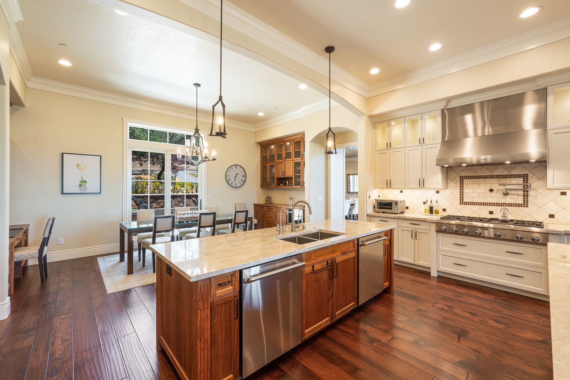This is an exceptional opportunity to live in the desirable gated community of Shiloh Estates. Delightfully set in Sonoma County Wine Country on approximately 10.5 private acres with hills and valley views. Subtle elegant appointments throughout harmonize both formal and casual living. Enter this home through double glass wrought iron entry doors. The main residence boasts more than 6,200 square feet of living space with 4 bedrooms, 4.5 baths, great room and dining room, a family room open to the chef’s kitchen and breakfast area, a home office, gym and wine cellar. An array of French doors lead to multiple terraces and outdoor entertaining spaces. Enjoy the views from the infinity edge pool and spa with a waterfall rim, bocce court and fire pit. There is a pool retreat with a full bath convenient for guests and a separate guest house that provides a kitchen, bedroom, and full bath. The outdoor entertaining space boasts an ironwood deck for al-fresco dining by the built-in outdoor kitchen. For the car enthusiast, there is a 2-car attached garage and a detached 3-car garage joined by the paver auto court. This lifestyle estate sits adjacent to prestigious Mayacama Golf Club and just minutes from Sonoma County Airport.