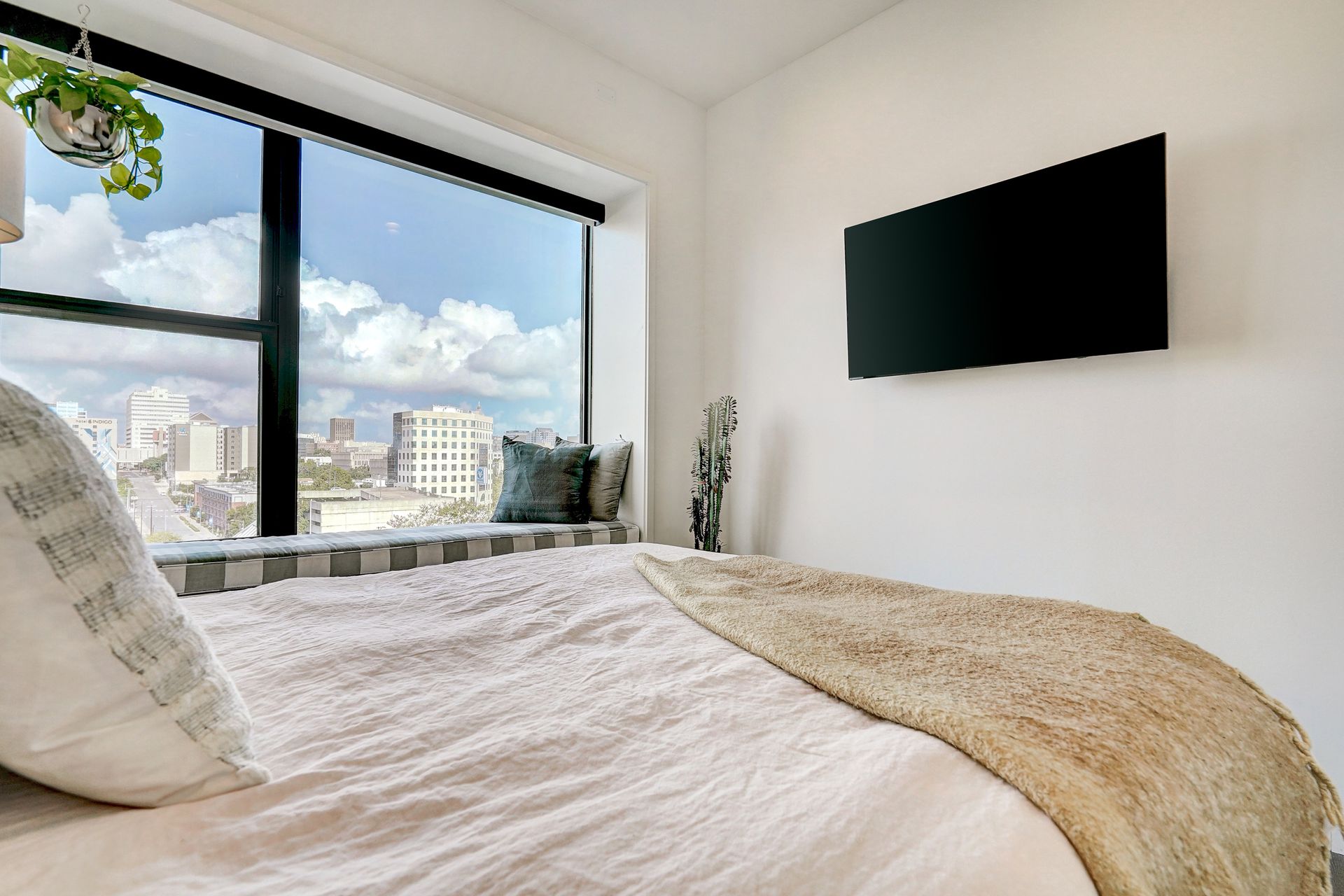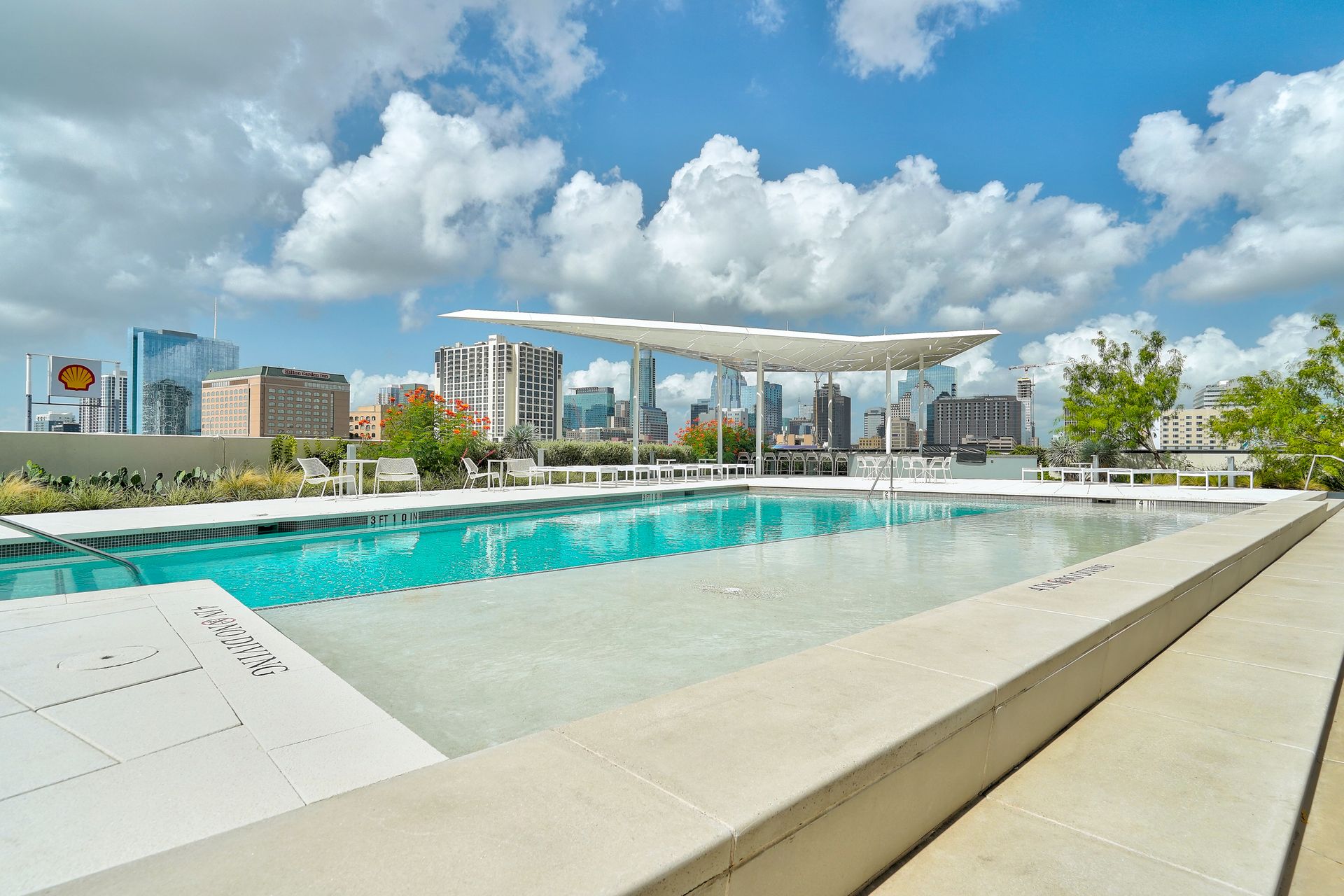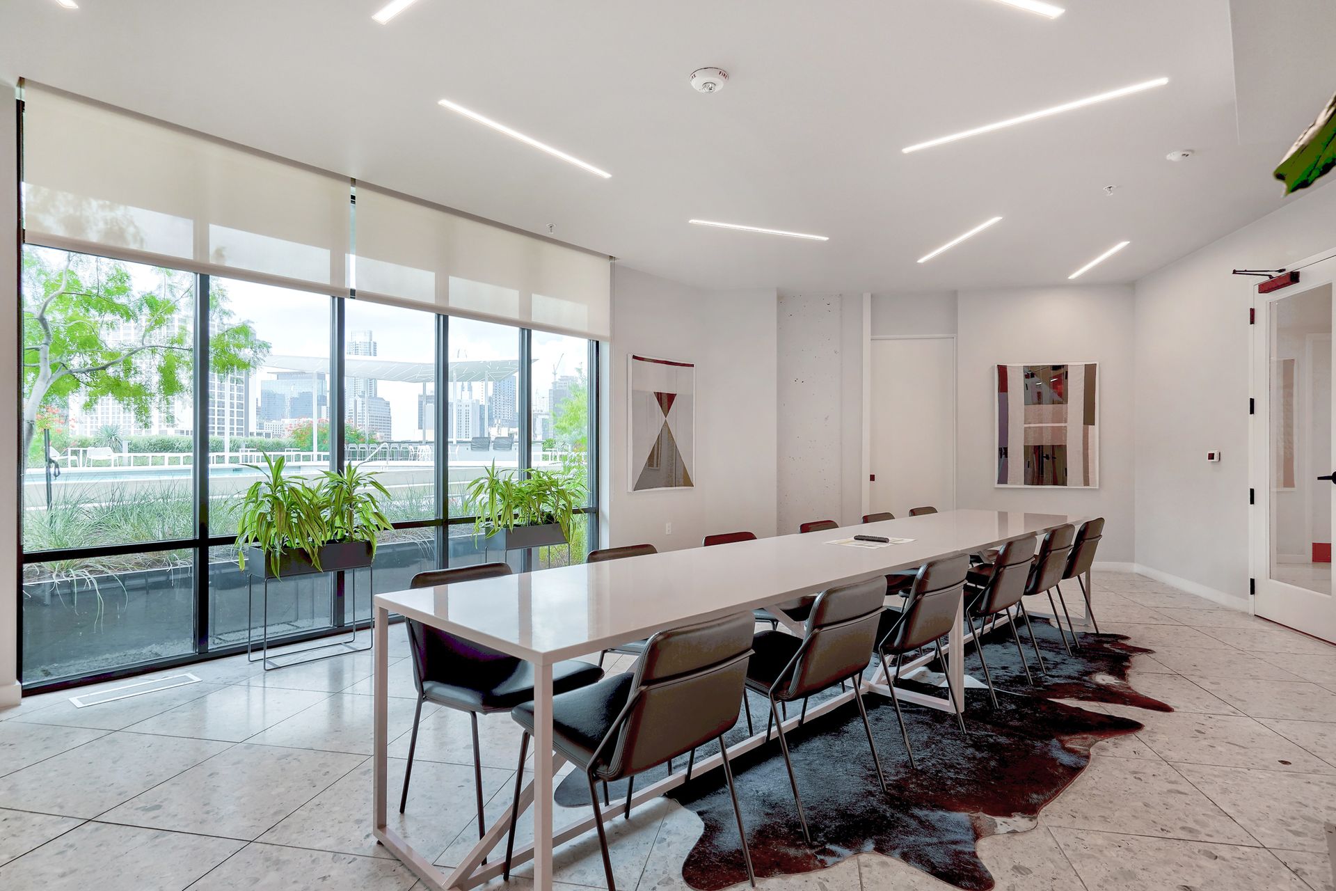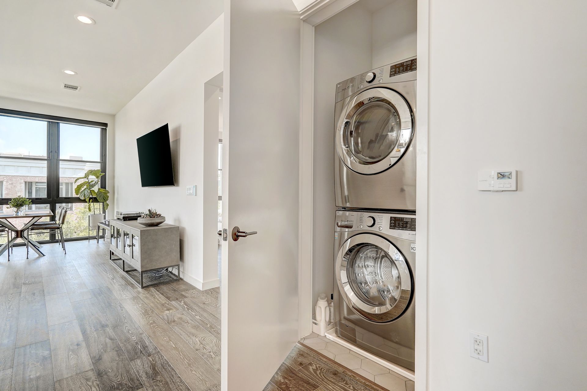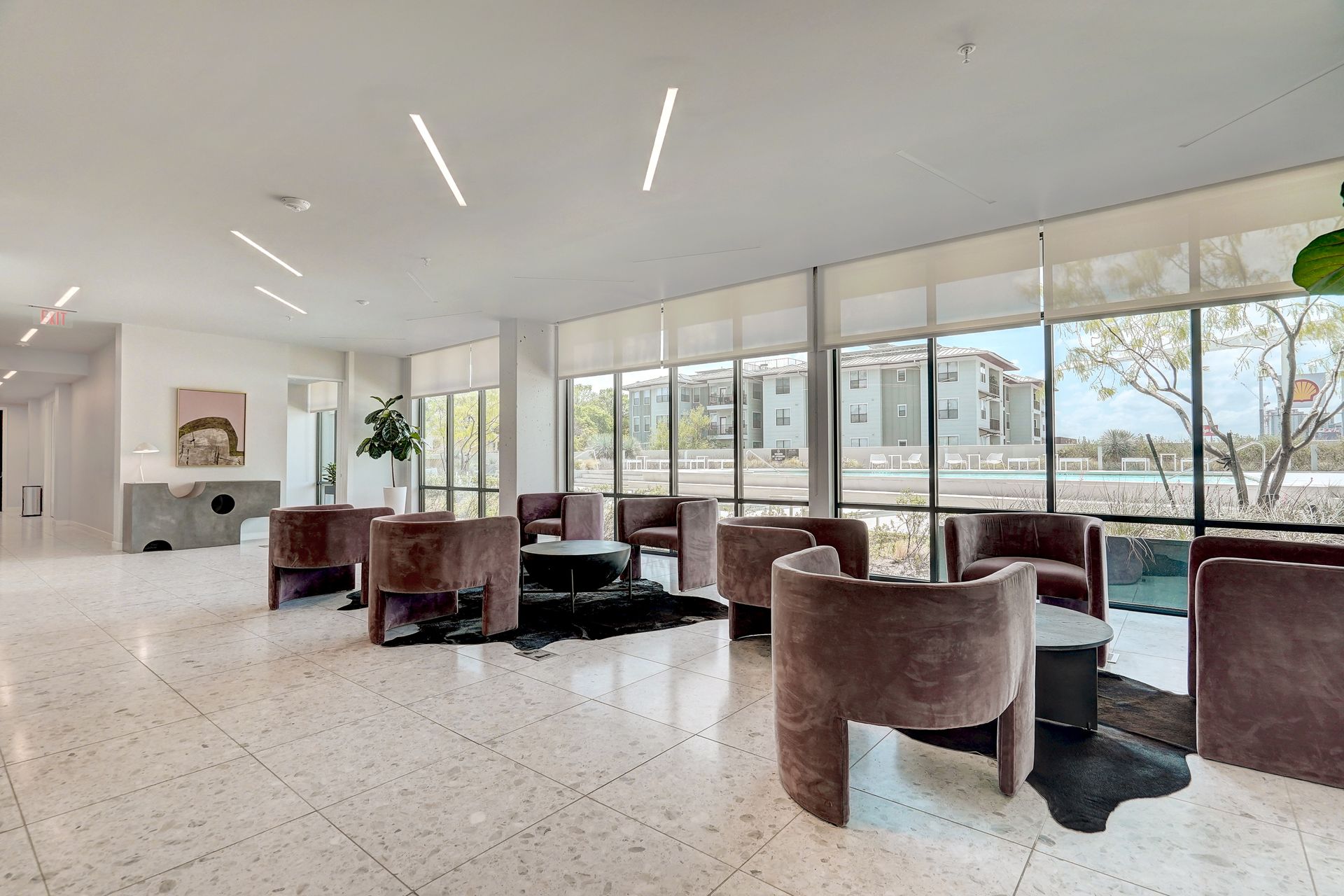 Welcome to this spacious, East Downtown Condo at the Tyndall. This home has exceptional views, amenities & the best floor plan. Admire the stunning 2 bedroom, 2 bathroom corner unit with an office/flex room, open kitchen/living and dining room and superb finishes, including stainless steel appliances, quartz countertops, wood floors and indoor utilities. Located on the Northwest corner of the Tyndall, the bedrooms, kitchen & living/dining rooms have downtown Austin views with floor to ceiling windows to catch a glimpse of the Capital and the city. Each window is shaded with automatic blinds for maximum privacy, including blackout shades in both bedrooms. This is a highly sought after unit with maximum views and a mother-in-law floor plan separating the primary from the secondary bedroom and bonus room. There's a walk-in closet in the primary bedroom adjacent to the spa-like primary bath. The Tyndall community has everything you need for living, working and entertaining in a modern, luxury downtown building. Amenities include 24/7 concierge service, a relaxing, refreshing, pool and sundeck with downtown views, covered grills, 2 dog runs, a business center & conference room, private courtyard, indoor/outdoor clubhouse, 2 parking spaces along with plenty of guest parking.