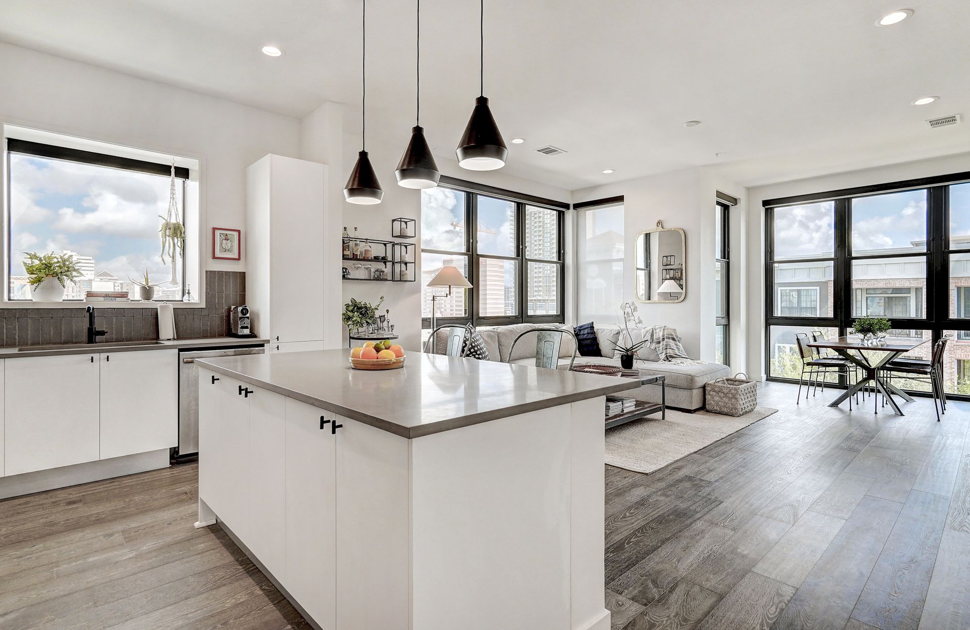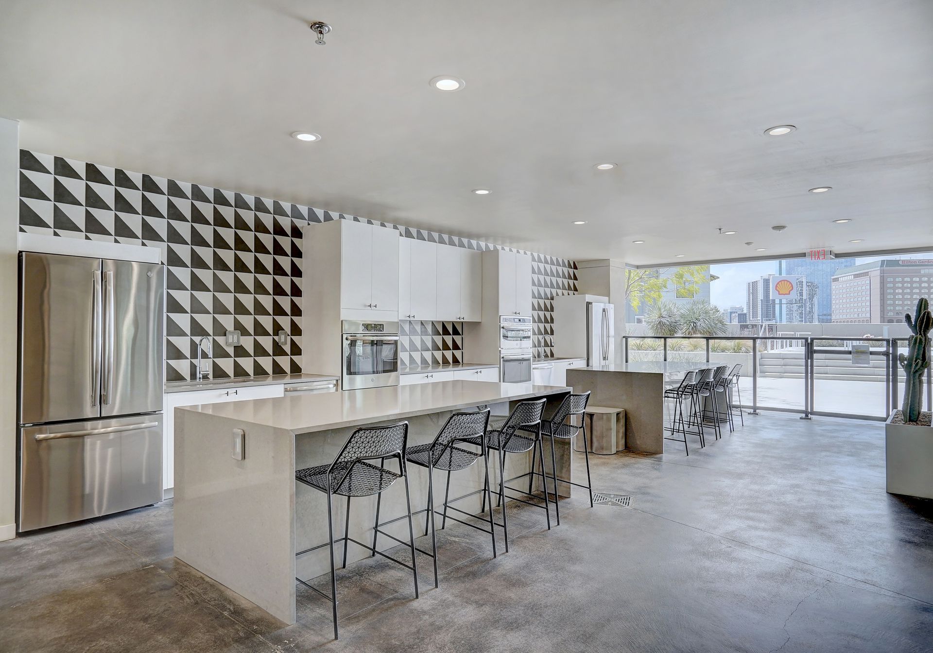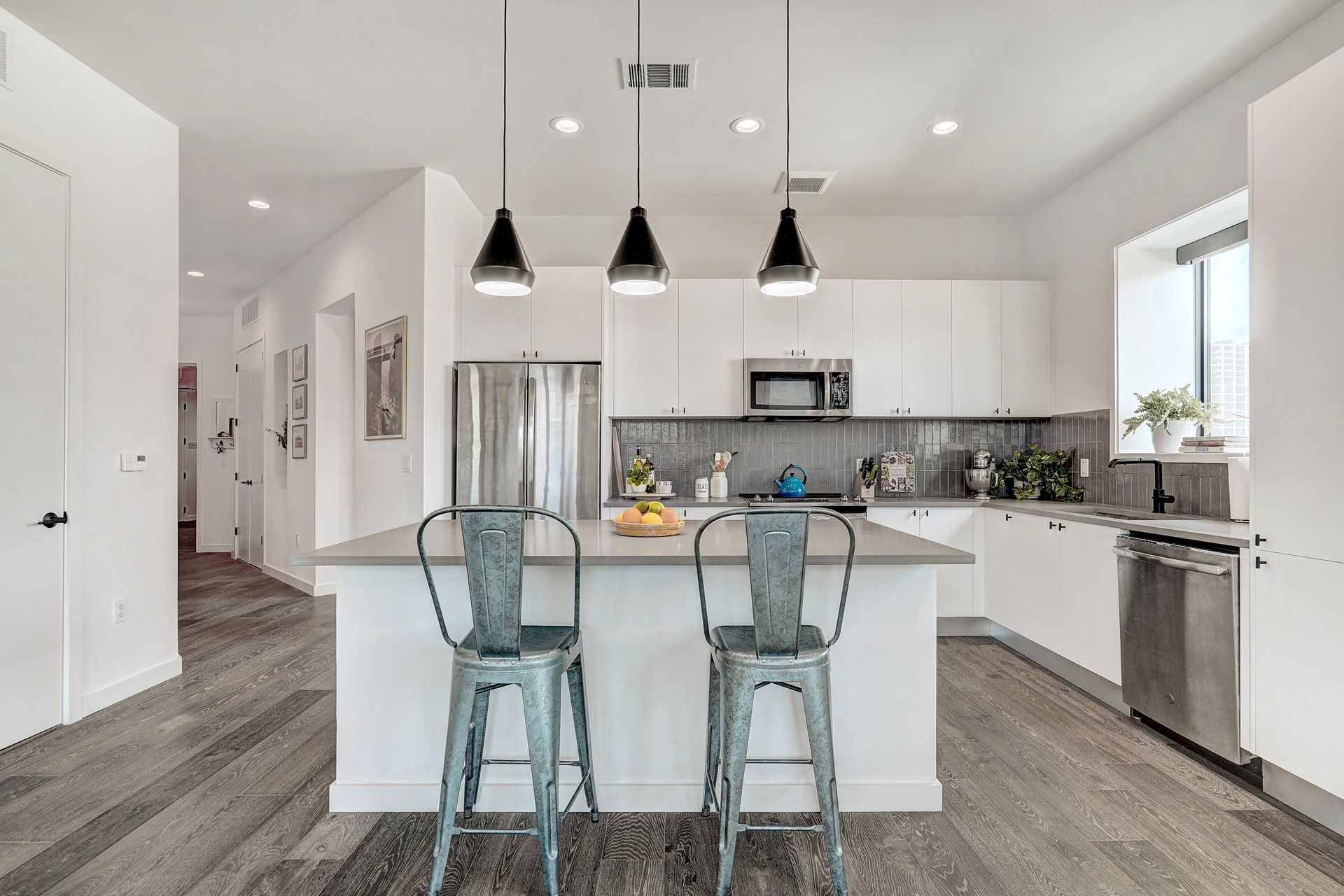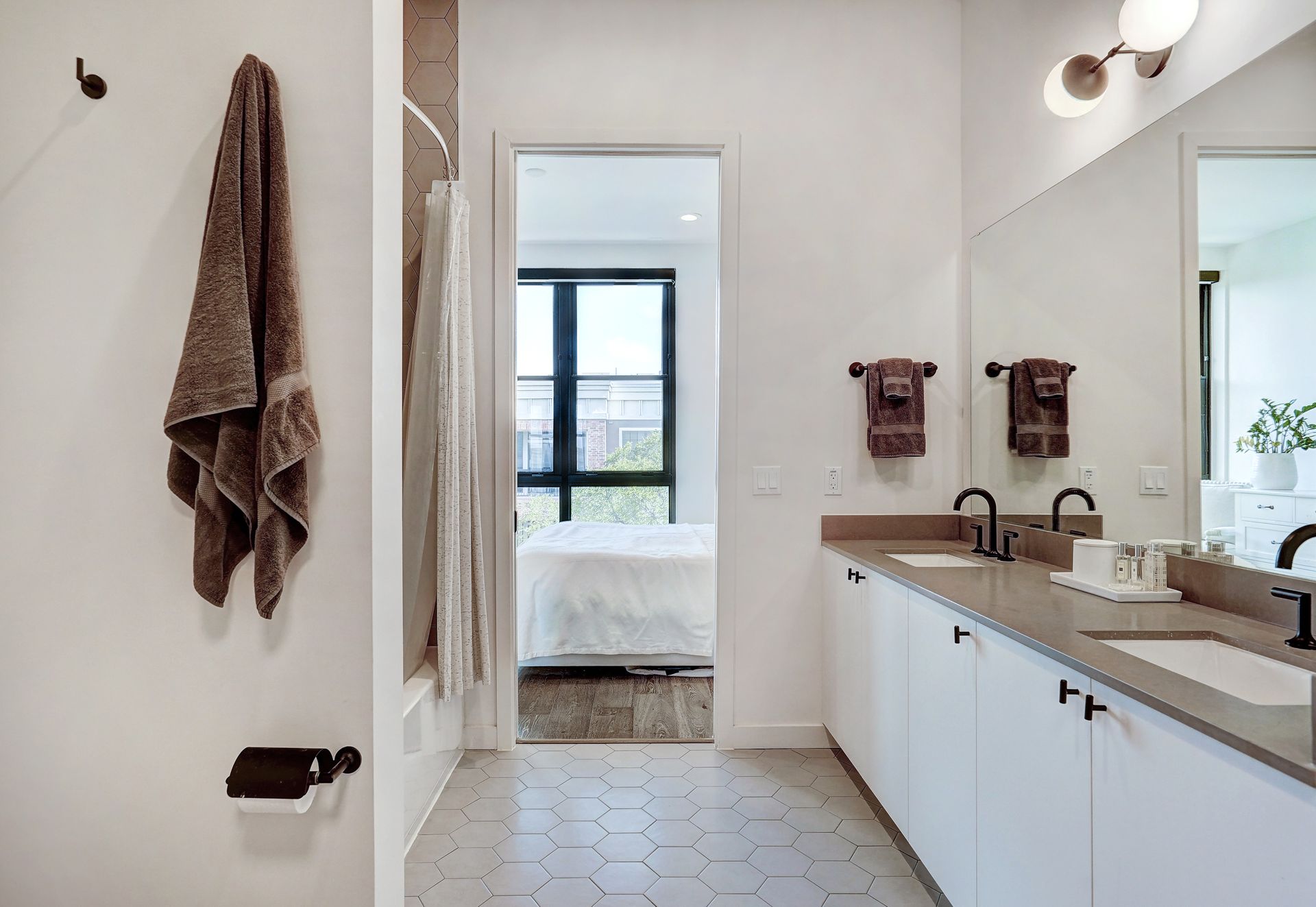 Welcome to this spacious, East Downtown Condo at the Tyndall. This home has exceptional views, amenities & the best floor plan. Admire the stunning 2 bedroom, 2 bathroom corner unit with an office/flex room, open kitchen/living and dining room and superb finishes, including stainless steel appliances, quartz countertops, wood floors and indoor utilities. Located on the Northwest corner of the Tyndall, the bedrooms, kitchen & living/dining rooms have downtown Austin views with floor to ceiling windows to catch a glimpse of the Capital and the city. Each window is shaded with automatic blinds for maximum privacy, including blackout shades in both bedrooms. This is a highly sought after unit with maximum views and a mother-in-law floor plan separating the primary from the secondary bedroom and bonus room. There's a walk-in closet in the primary bedroom adjacent to the spa-like primary bath. The Tyndall community has everything you need for living, working and entertaining in a modern, luxury downtown building. Amenities include 24/7 concierge service, a relaxing, refreshing, pool and sundeck with downtown views, covered grills, 2 dog runs, a business center & conference room, private courtyard, indoor/outdoor clubhouse, 2 parking spaces along with plenty of guest parking.