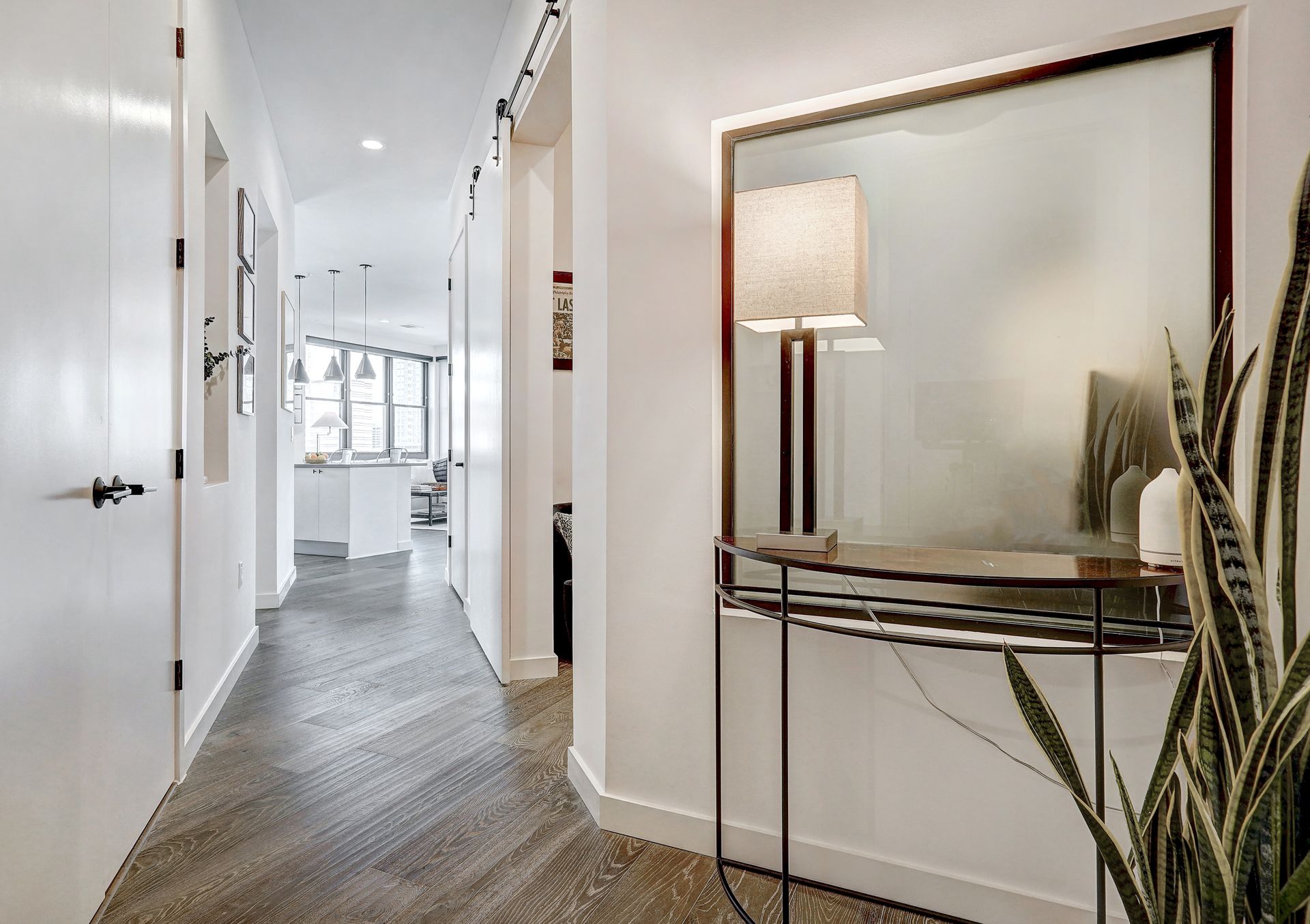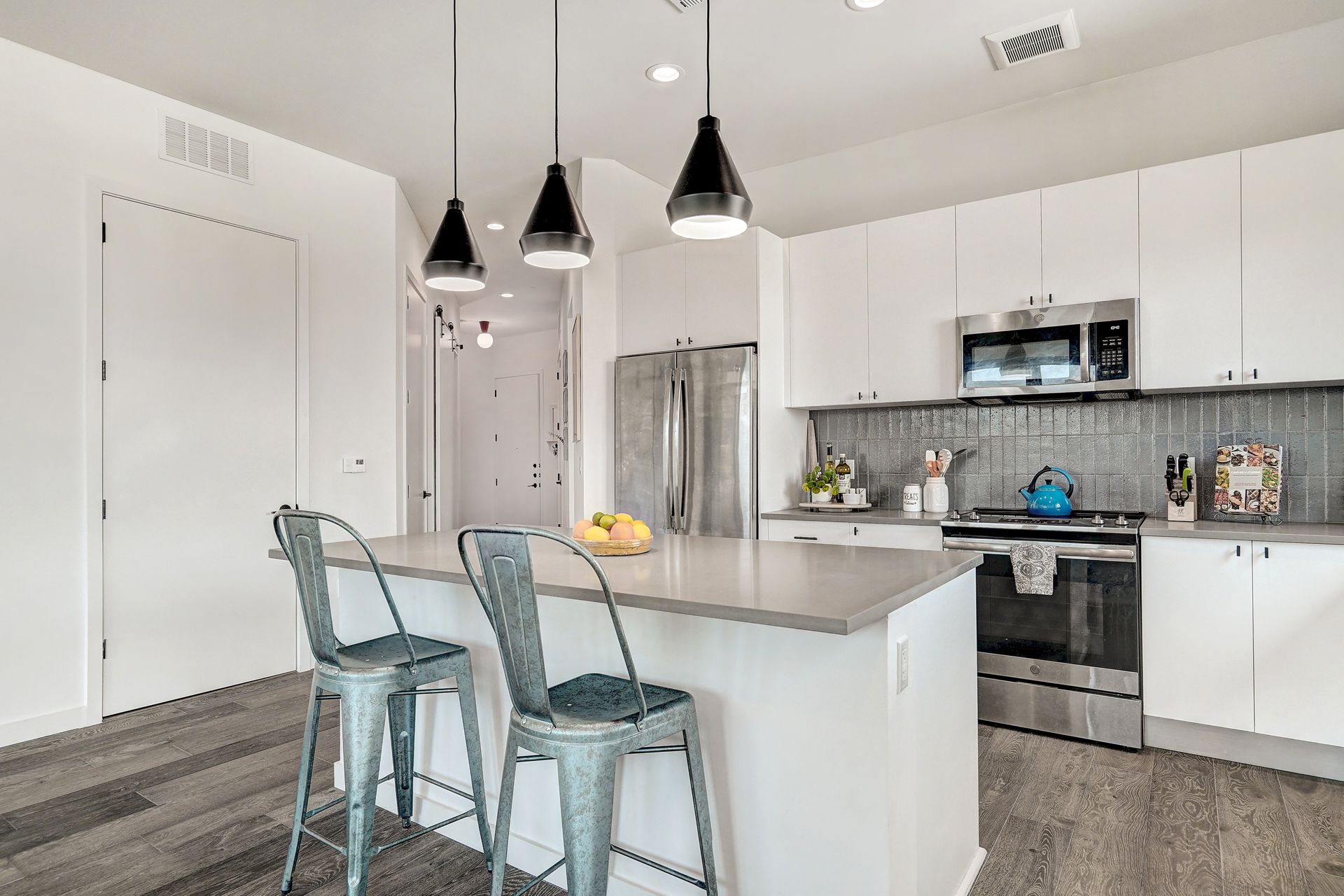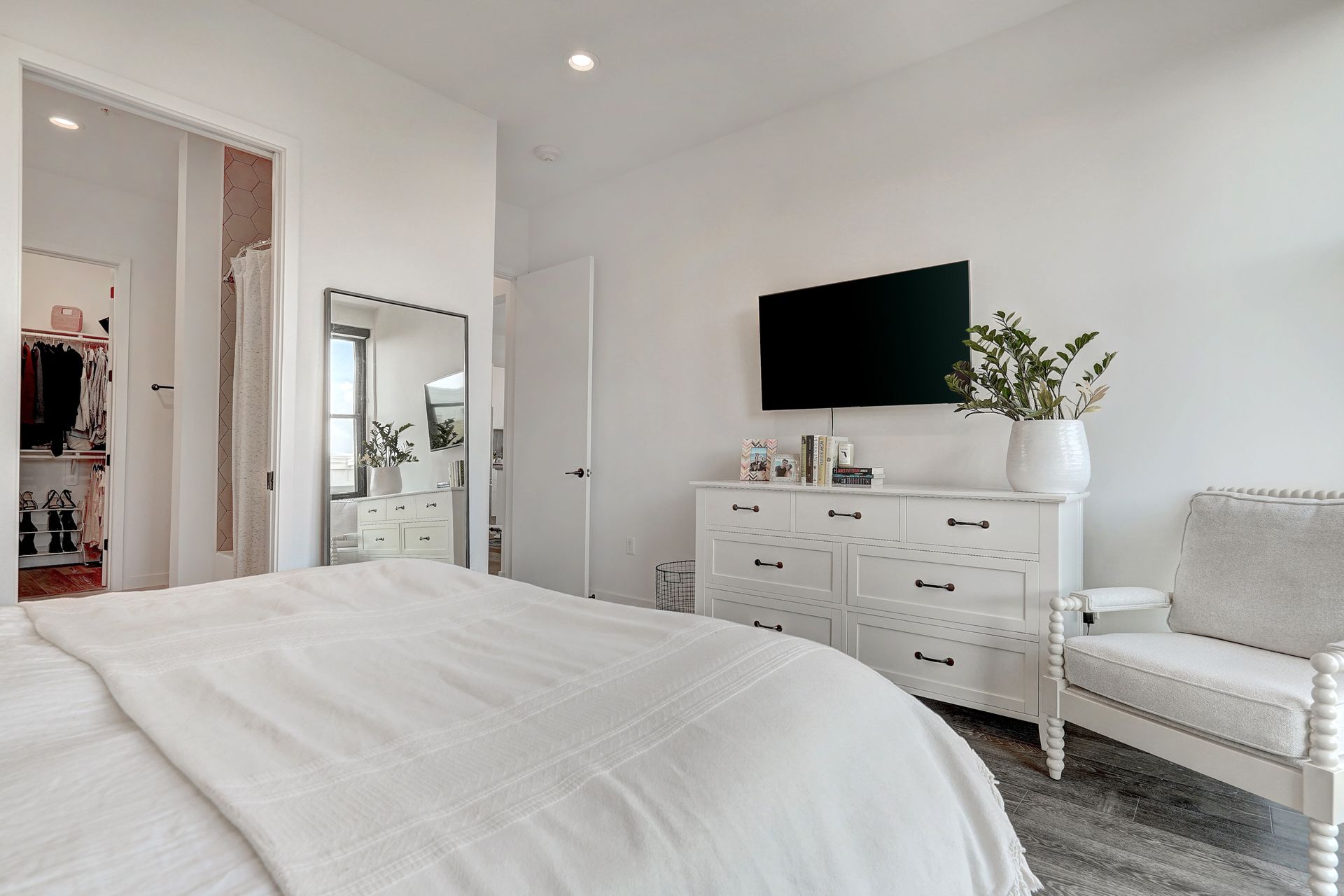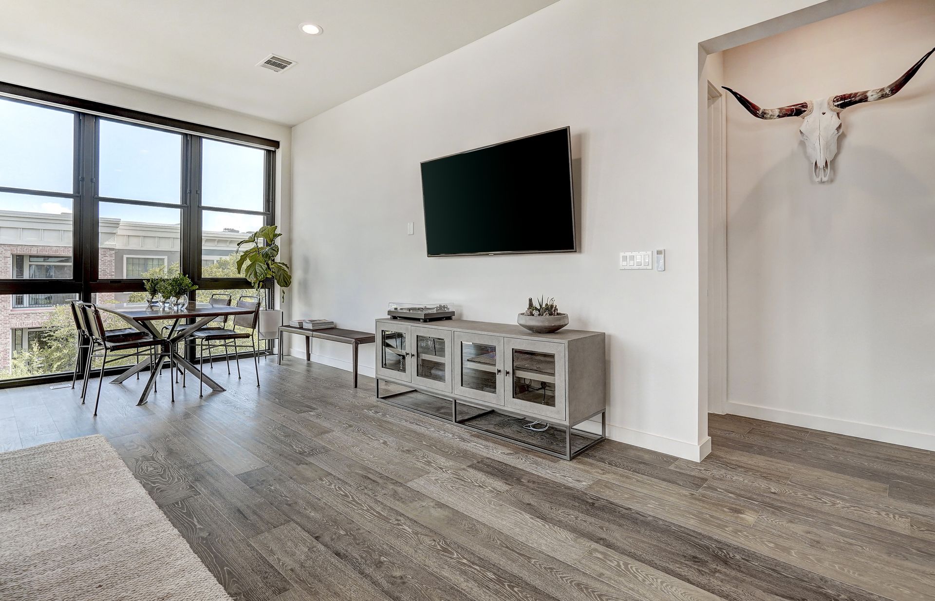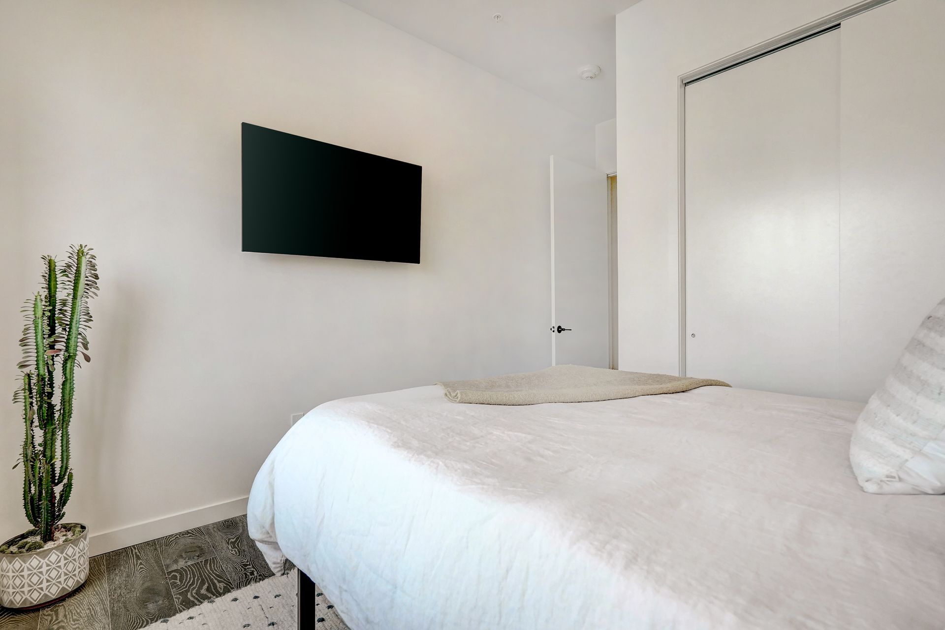 Welcome to this spacious, East Downtown Condo at the Tyndall. This home has exceptional views, amenities & the best floor plan. Admire the stunning 2 bedroom, 2 bathroom corner unit with an office/flex room, open kitchen/living and dining room and superb finishes, including stainless steel appliances, quartz countertops, wood floors and indoor utilities. Located on the Northwest corner of the Tyndall, the bedrooms, kitchen & living/dining rooms have downtown Austin views with floor to ceiling windows to catch a glimpse of the Capital and the city. Each window is shaded with automatic blinds for maximum privacy, including blackout shades in both bedrooms. This is a highly sought after unit with maximum views and a mother-in-law floor plan separating the primary from the secondary bedroom and bonus room. There's a walk-in closet in the primary bedroom adjacent to the spa-like primary bath. The Tyndall community has everything you need for living, working and entertaining in a modern, luxury downtown building. Amenities include 24/7 concierge service, a relaxing, refreshing, pool and sundeck with downtown views, covered grills, 2 dog runs, a business center & conference room, private courtyard, indoor/outdoor clubhouse, 2 parking spaces along with plenty of guest parking.