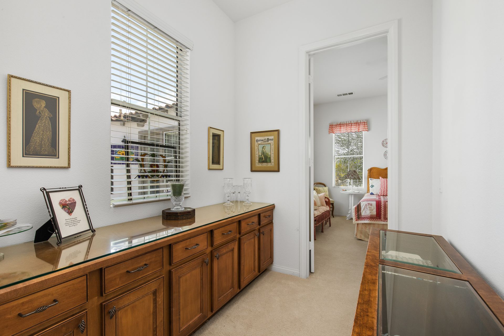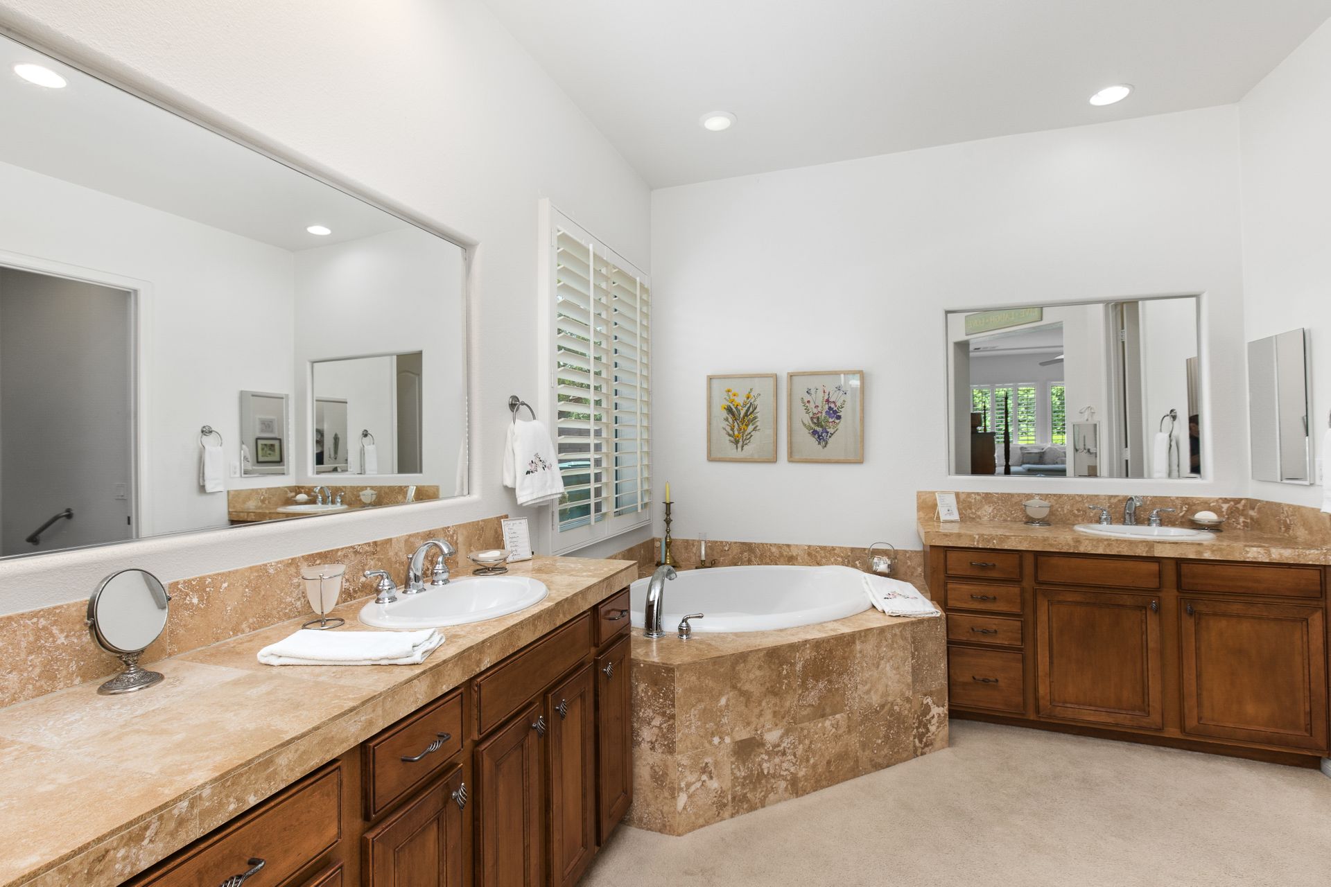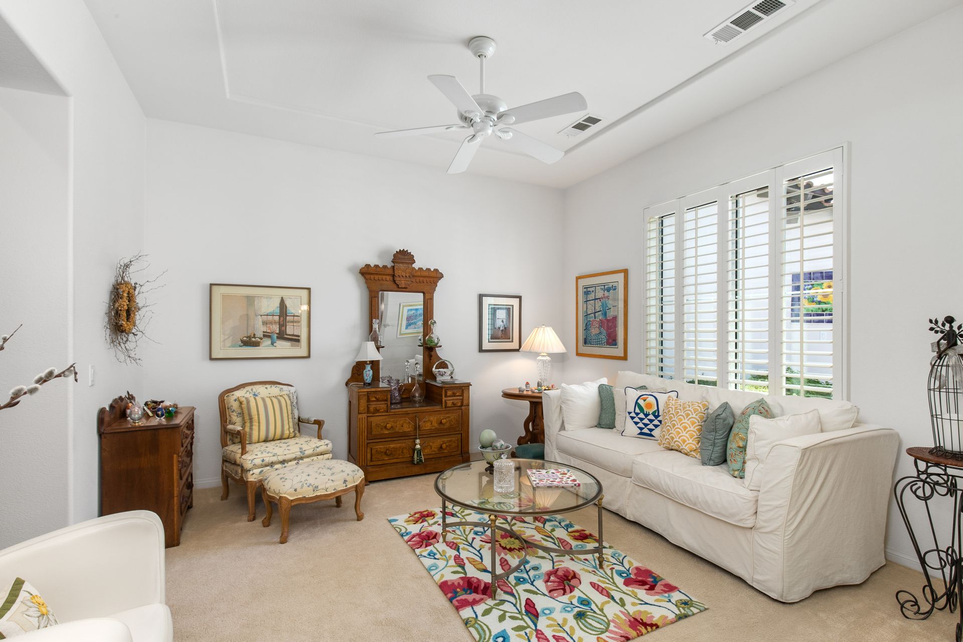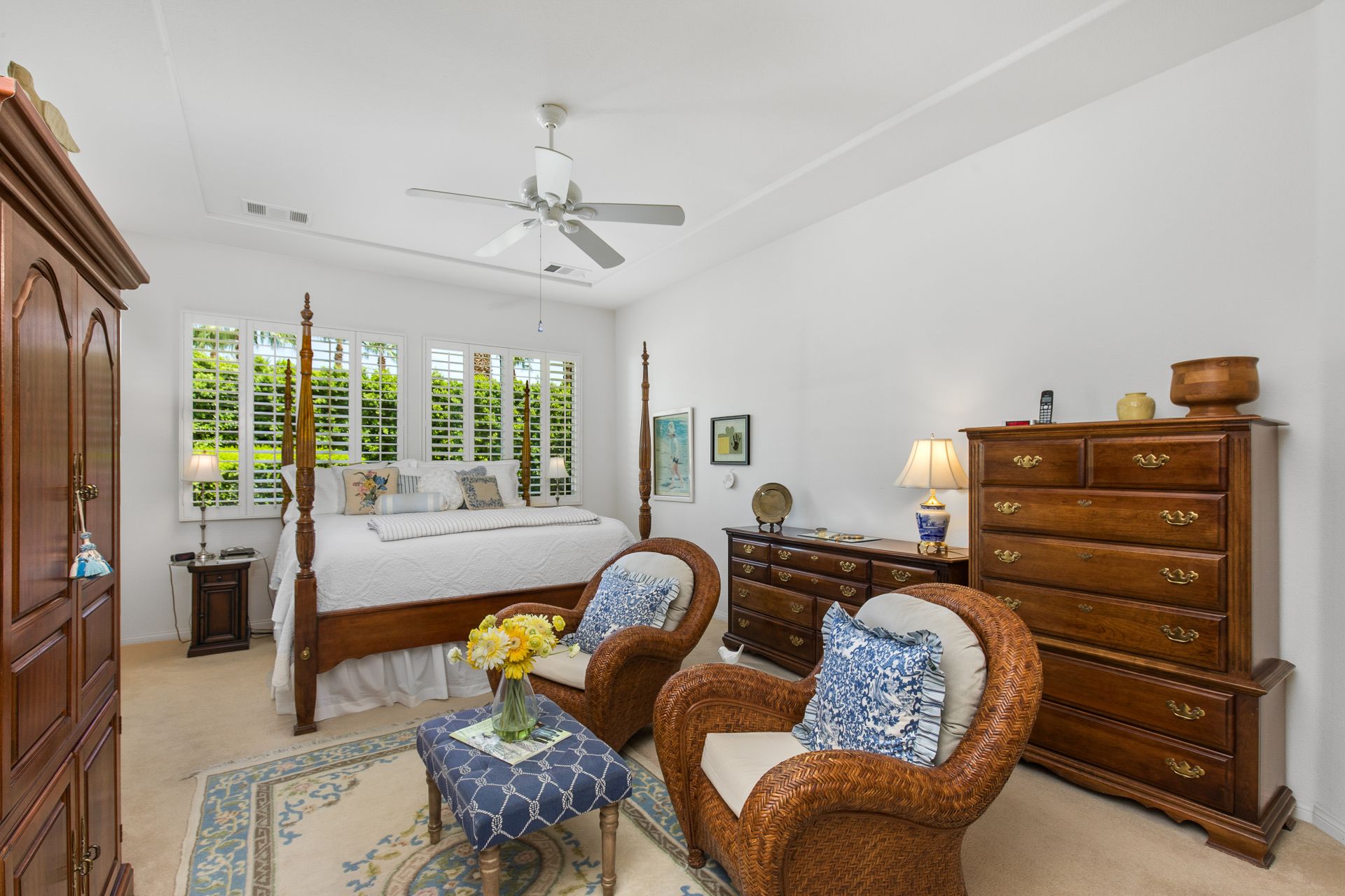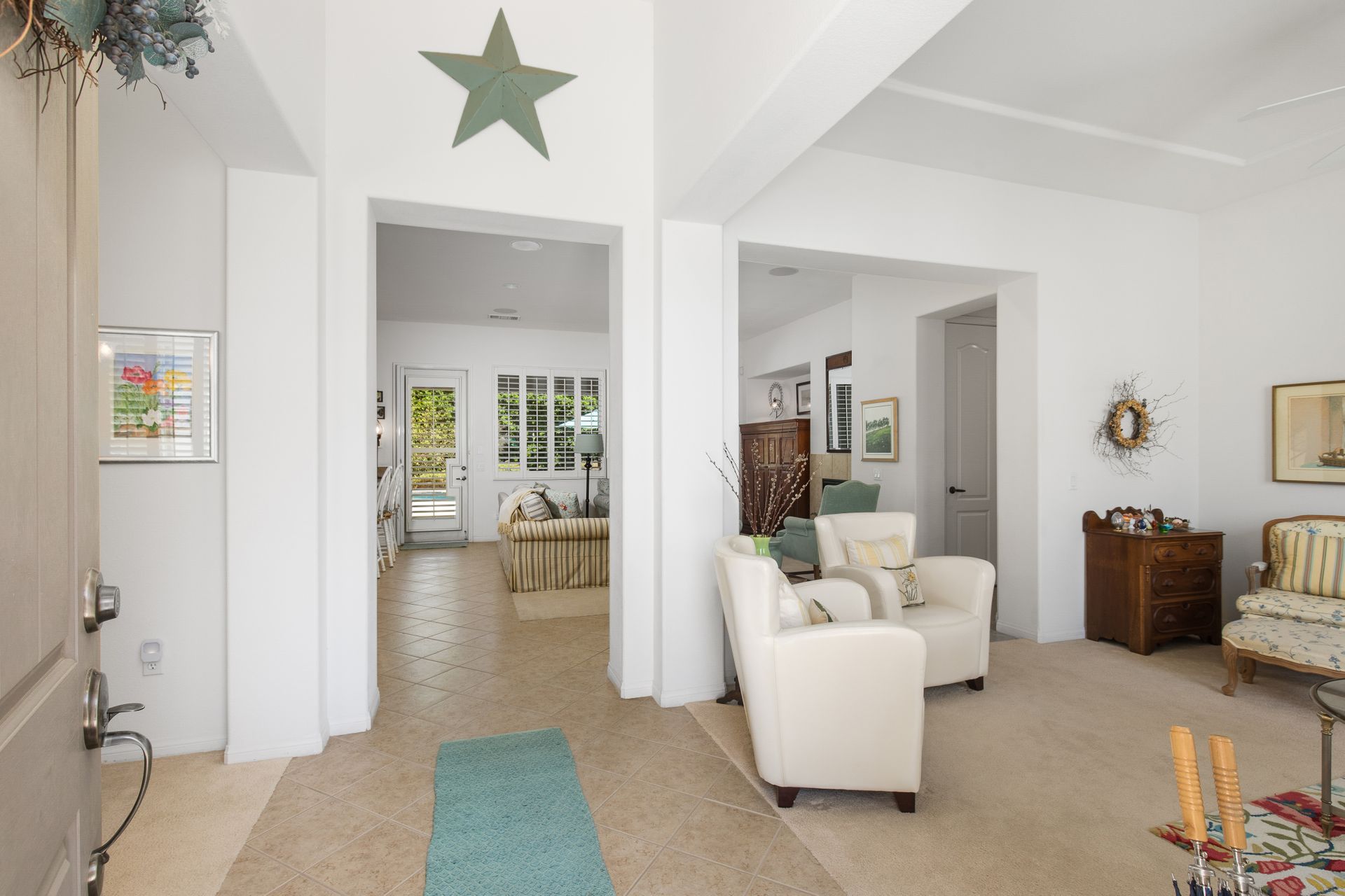 Huge $100,000 Price Improvement! This stunning single-story home sits on a vast lot, offering unparalleled space and comfort for both family living and entertainment. Located approximately 1 mile from the renowned Empire Polo Grounds, home to famous music festivals, this home perfectly combines luxury and convenience. Inside features 5BR including a separate casita, ideal for guests or an in-law suite. Enter through a charming courtyard w/a fireplace, setting the tone for elegance within. Enjoy the spacious layout w/ soaring 10+ft ceilings, Shutters throughout, separate formal living/dining room for refined entertaining. Cozy family room w/ a warm fireplace for family gatherings. Gourmet kitchen equipped w/ custom birch cabinetry, custom hardware, custom pendant lighting, double ovens, built-in microwave, granite countertops w/bar, and a breakfast nook. Large guest BR features Jack-in-Jill BA, plus one BR has its own private BA. Primary suite Features tray ceilings, a private exit to the backyard. Primary BA features travertine countertops and shower, double vanity sinks, huge soaking tub, massive walk-in closet. Walk outside to a tropical Oasis! Sit in your pool/spa and enjoy the mountain views. Also featuring a fully covered patio. Ideal for outdoor dining. Don't miss the opportunity to make this exquisite property your own! Low HOA. The Orchards HOA allows STRs for music festivals and Tennis weekends.