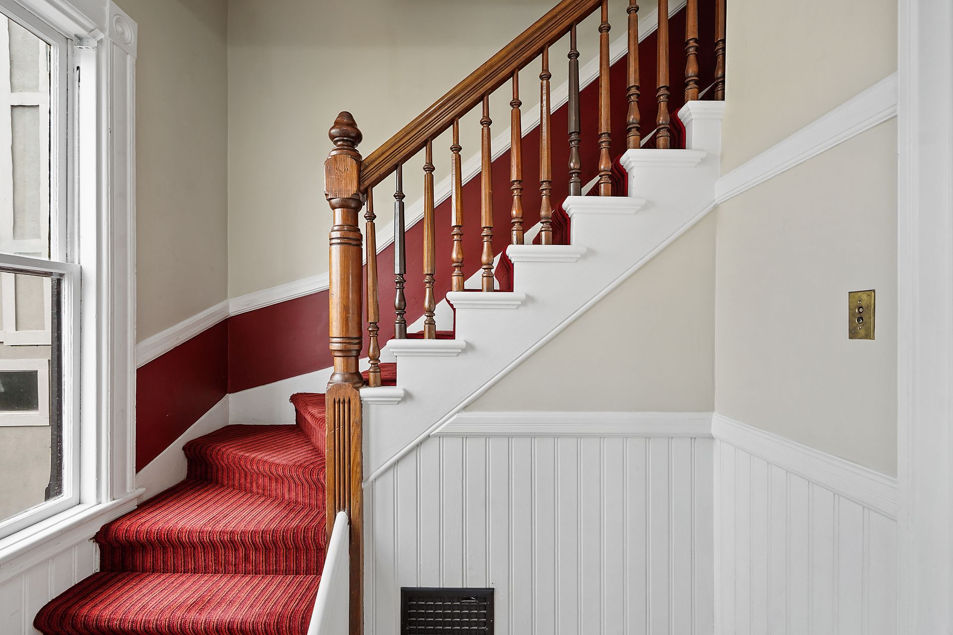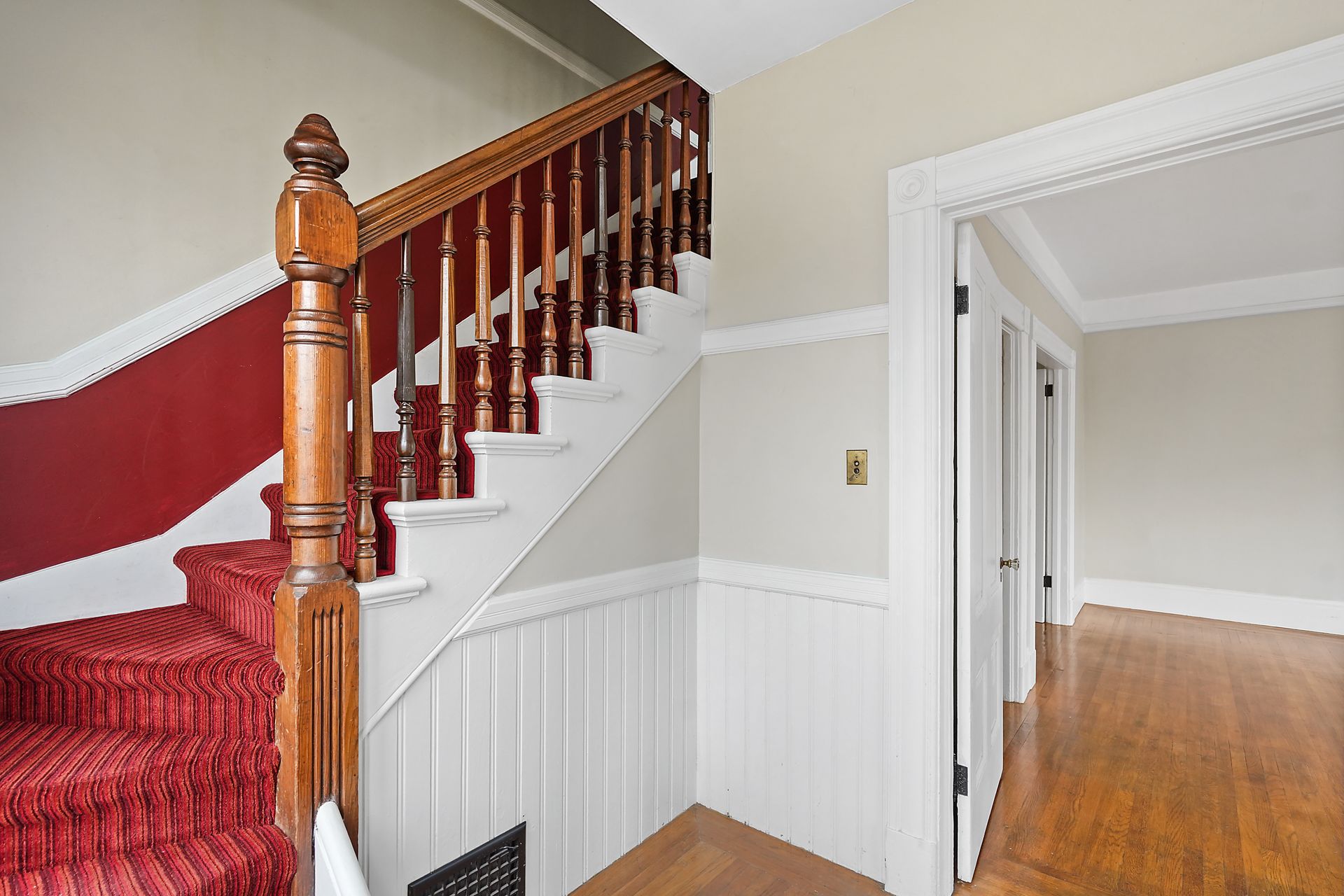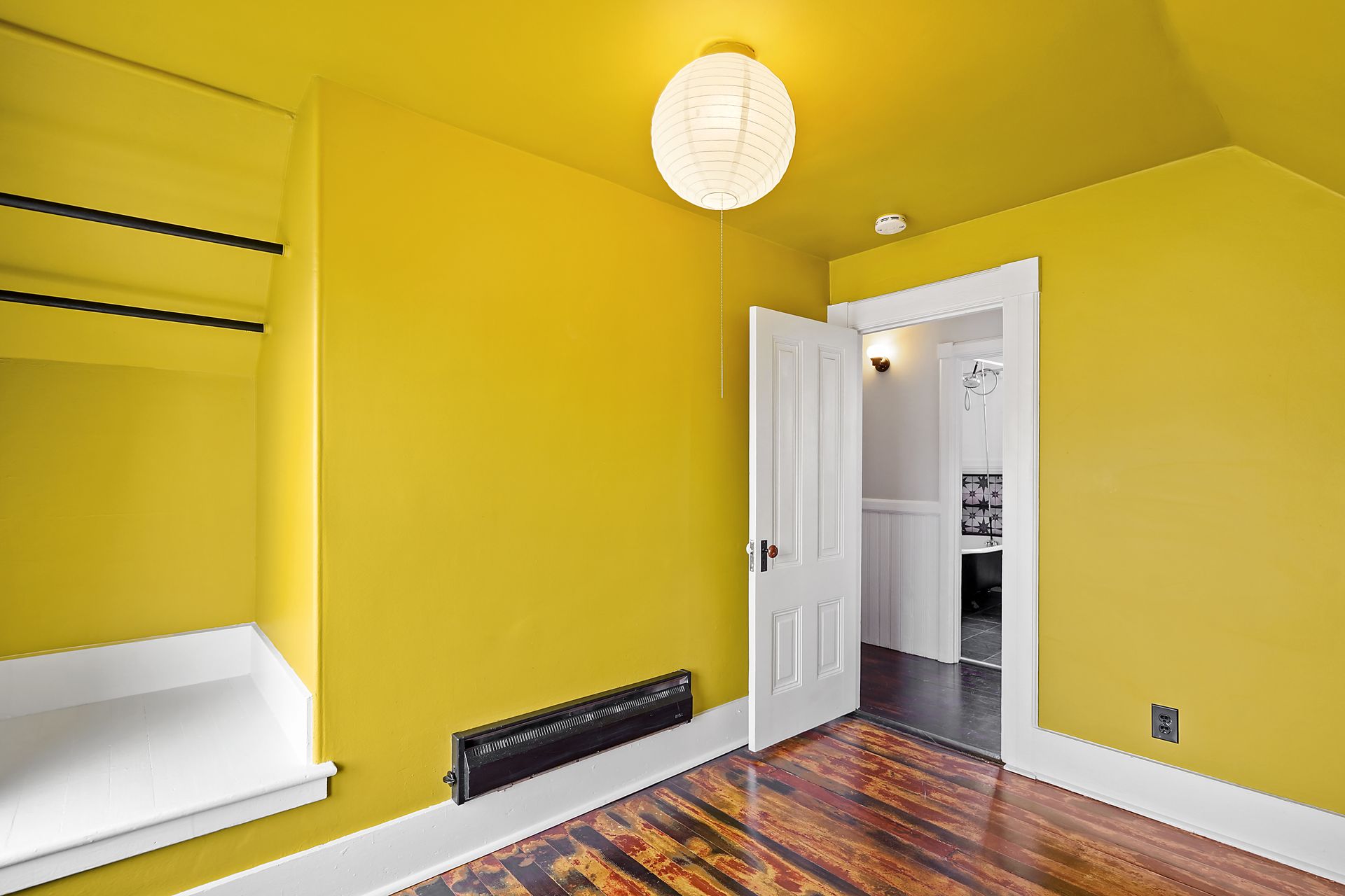 • Main Floor: formal entry and stairway up, west-facing living room, kitchen with dining room, small office and half bath.