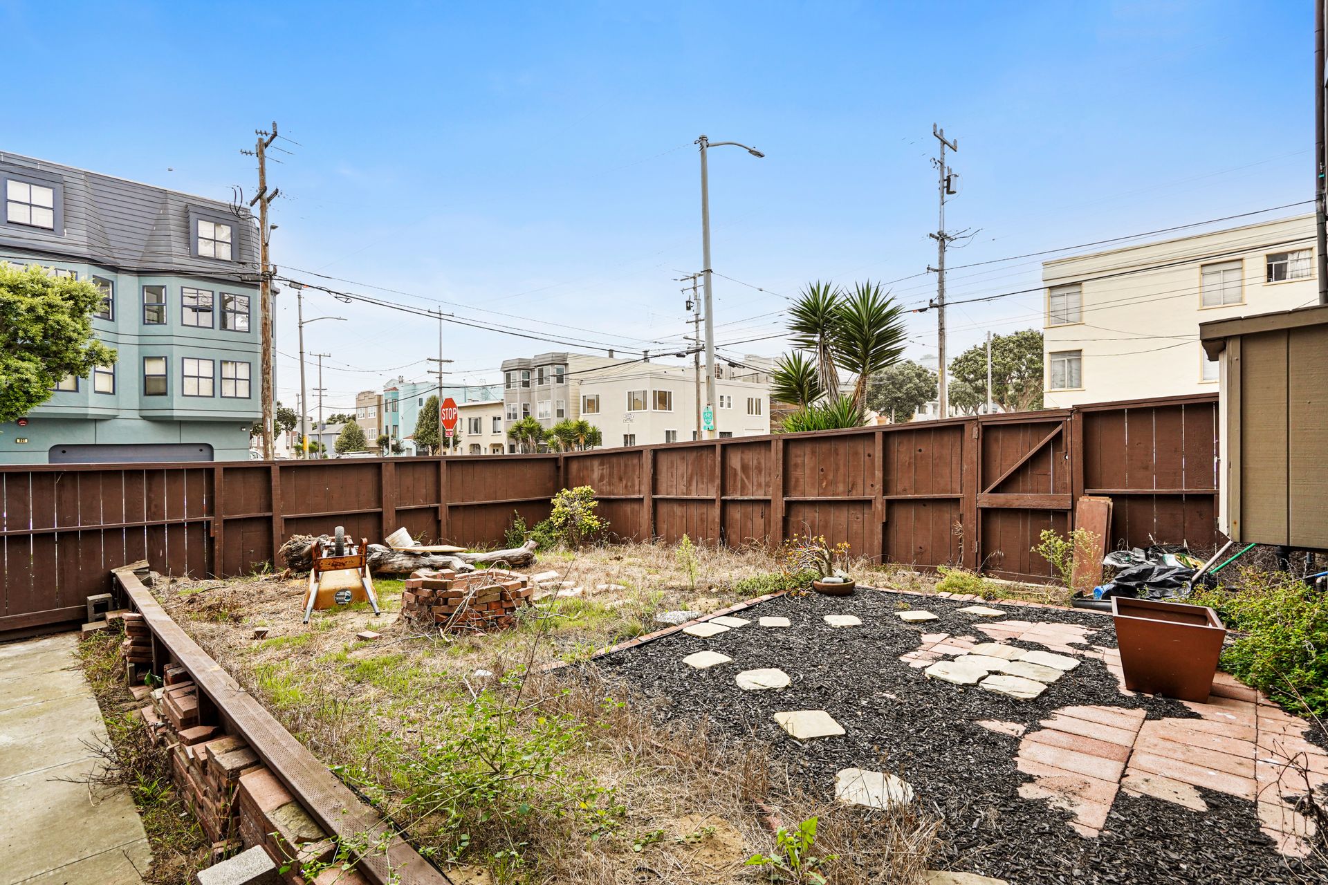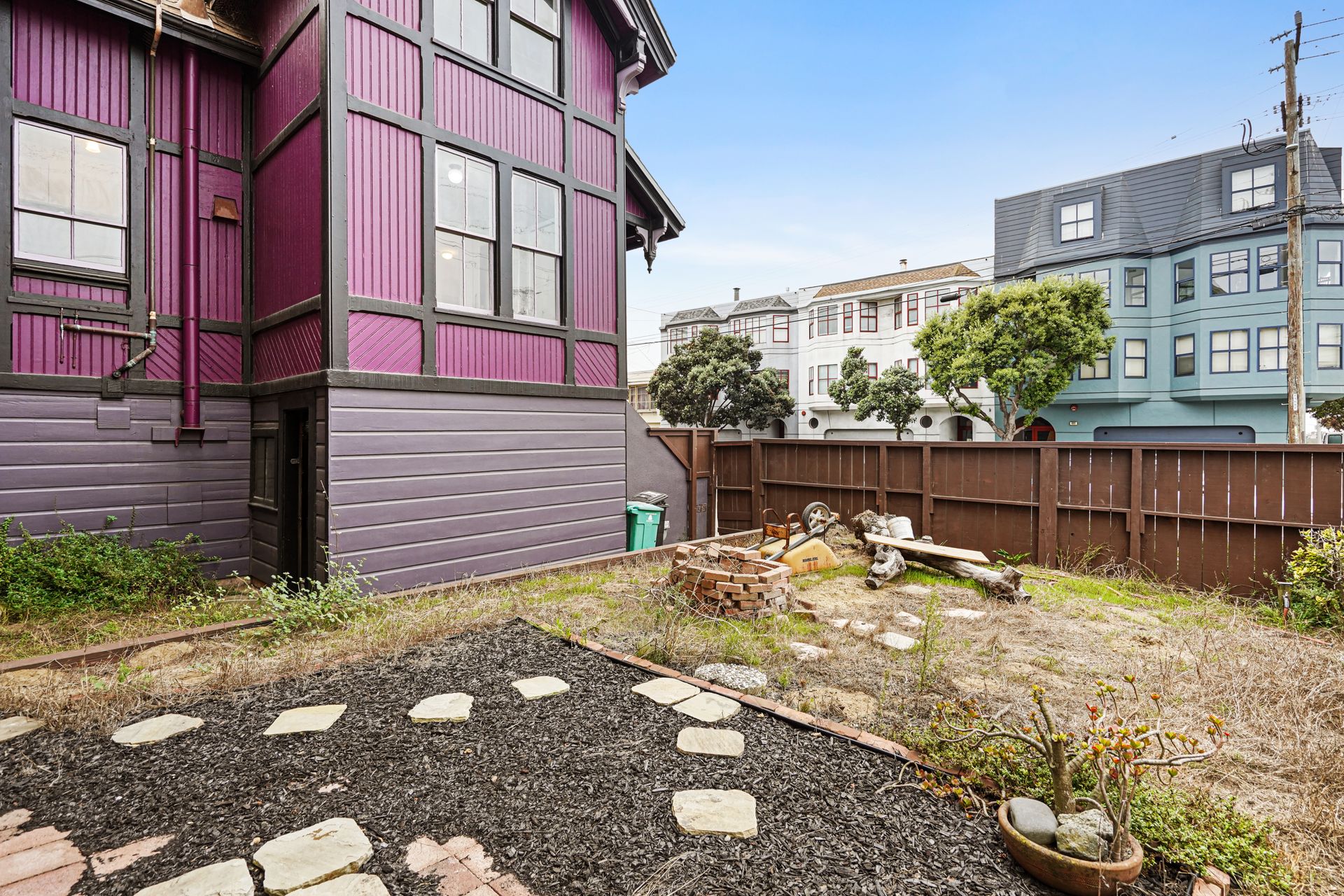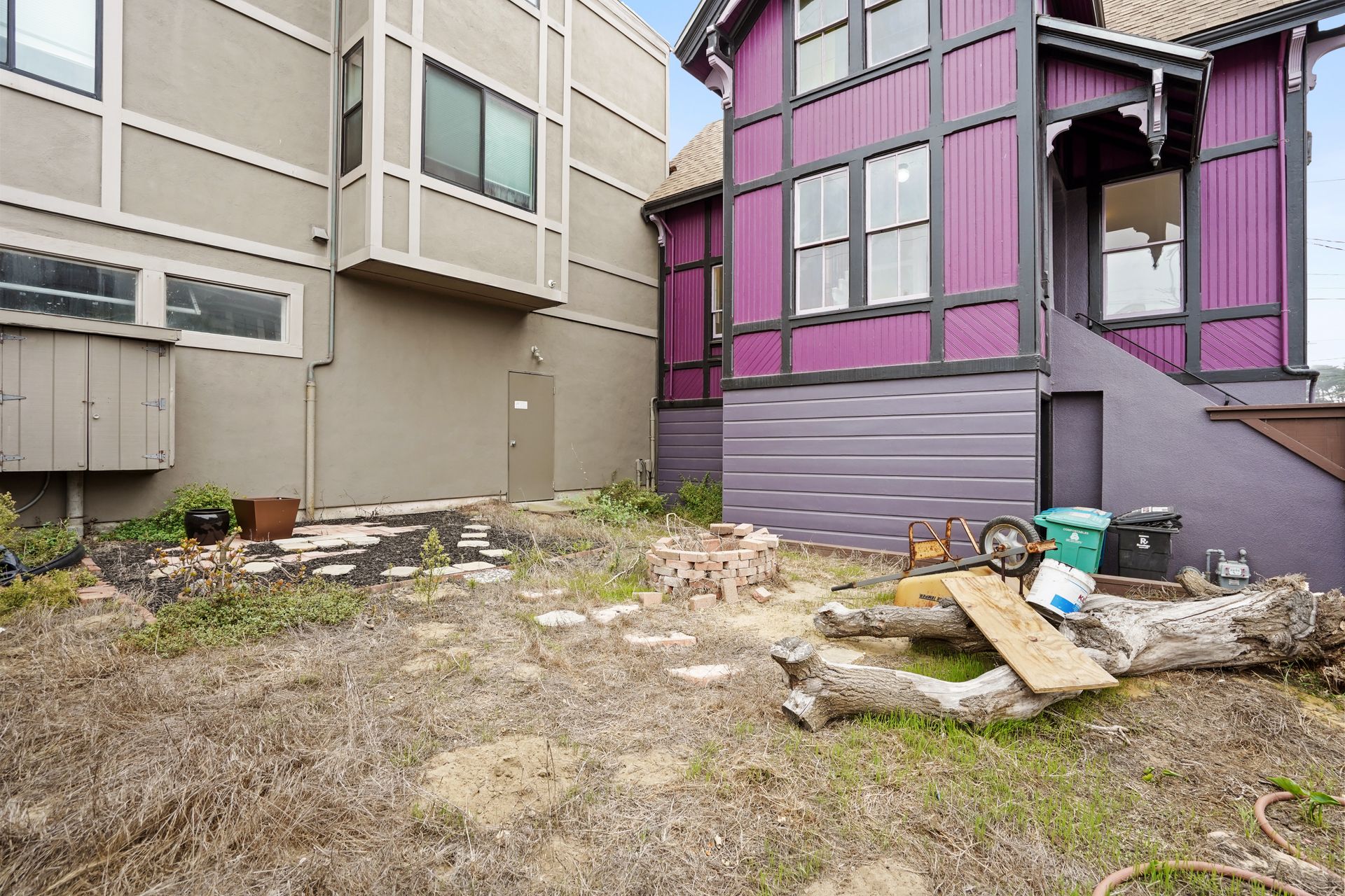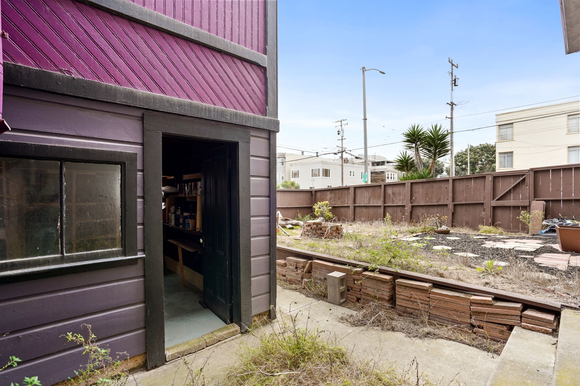 A large corner garden and a backyard is shared with the 5 units around the corner at 4575 Cabrillo Street. This home lives separately from the other building, with its own garage, driveway, and entry on 47th Avenue.