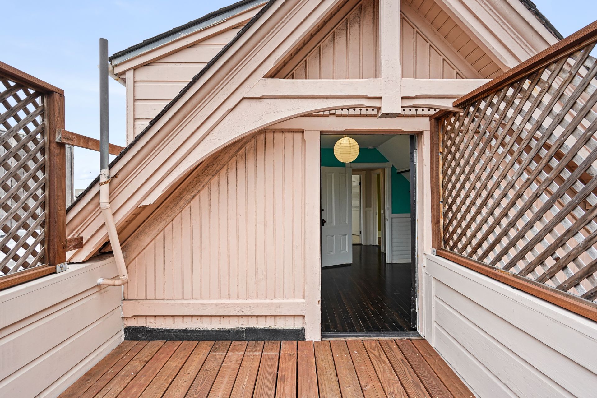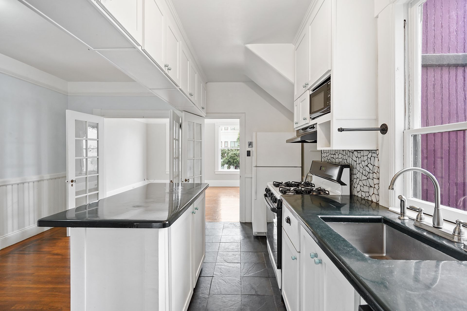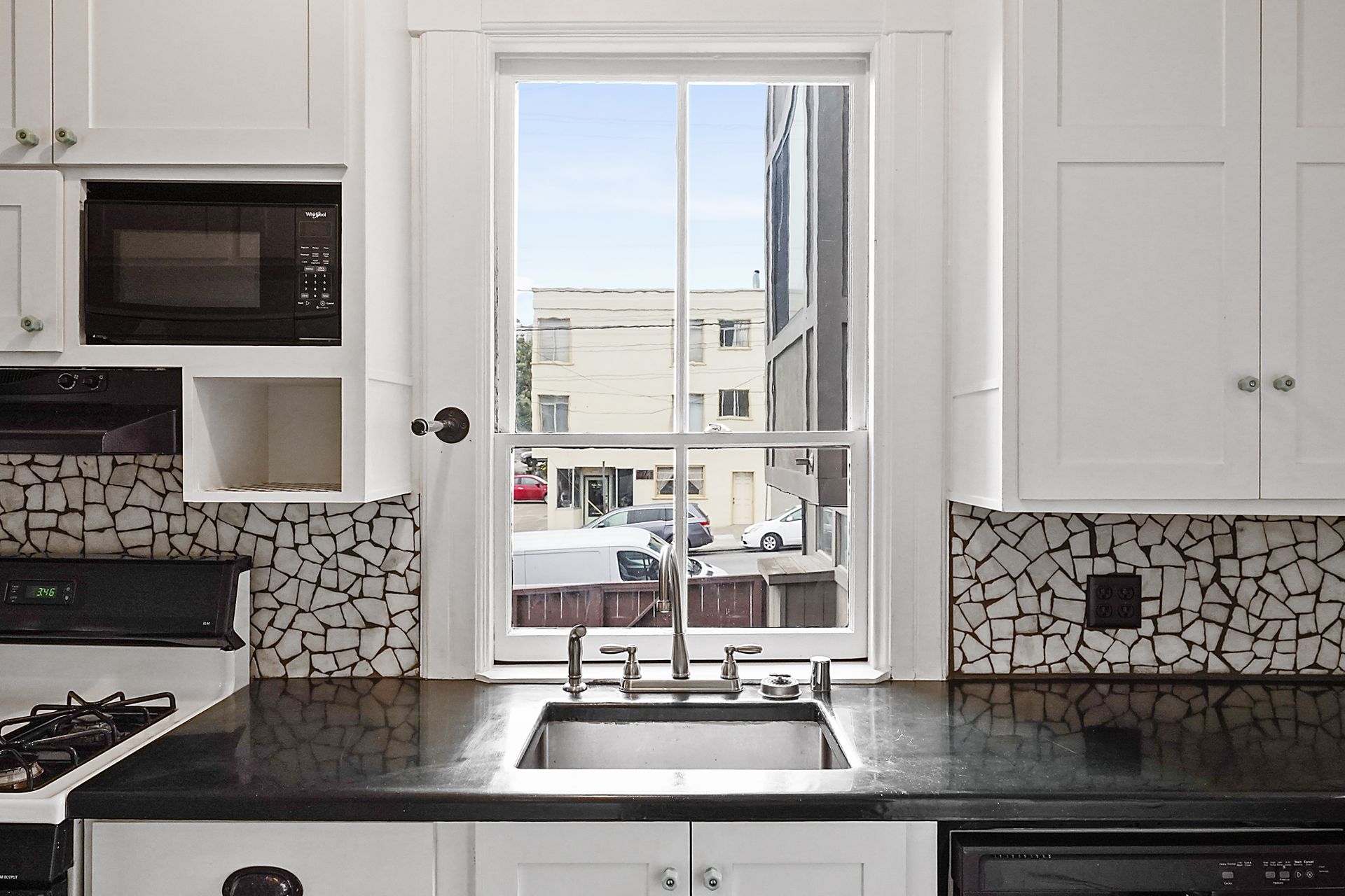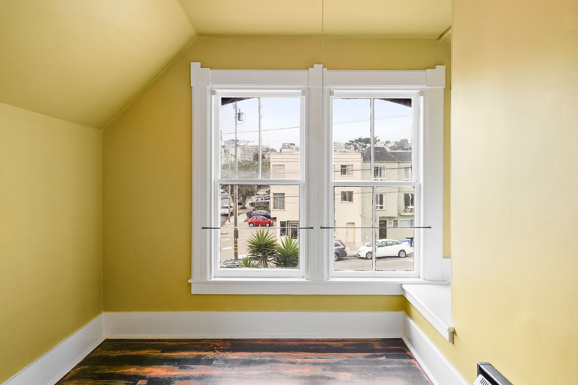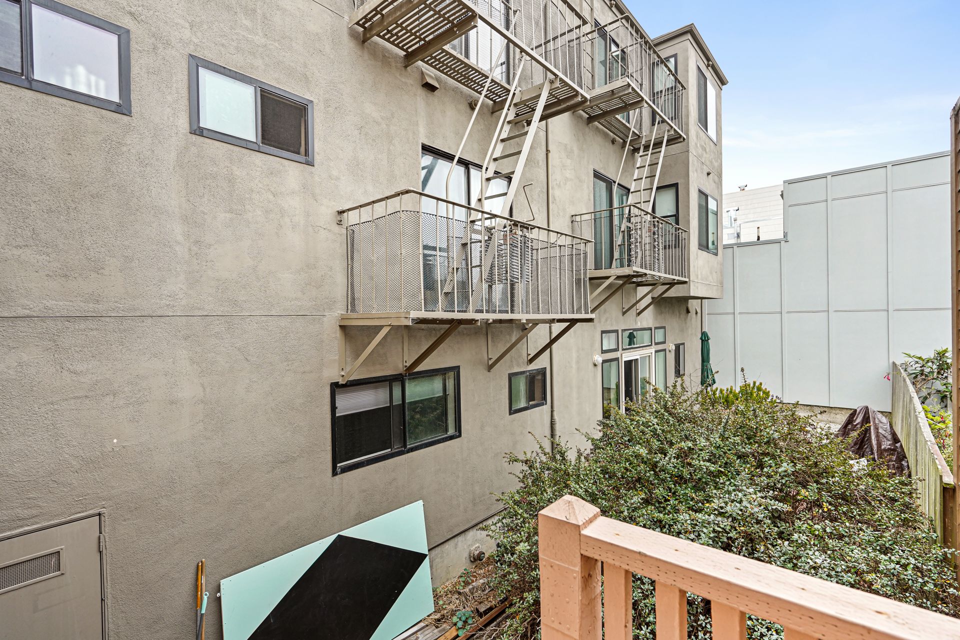 A large corner garden and a backyard is shared with the 5 units around the corner at 4575 Cabrillo Street. This home lives separately from the other building, with its own garage, driveway, and entry on 47th Avenue.