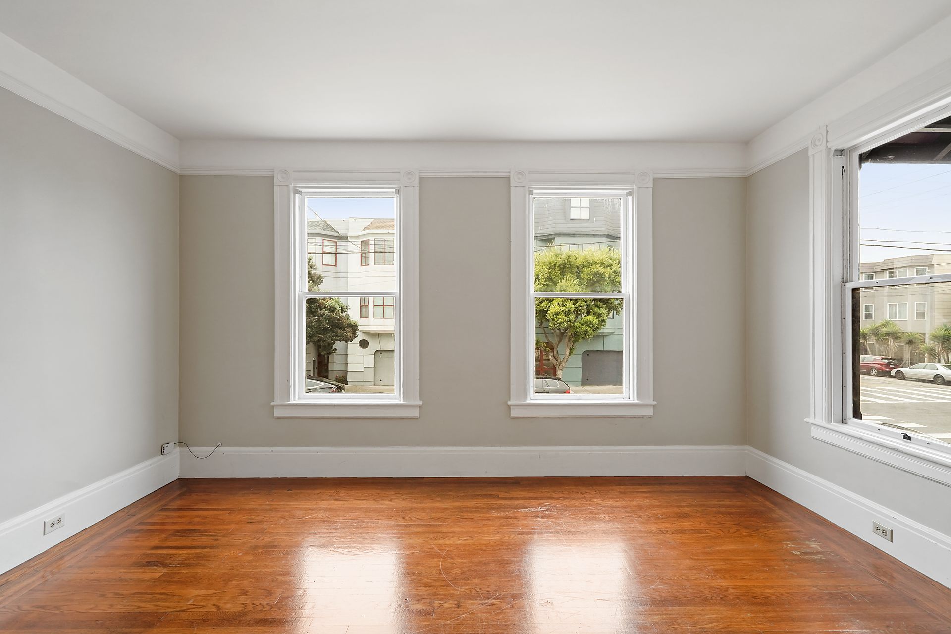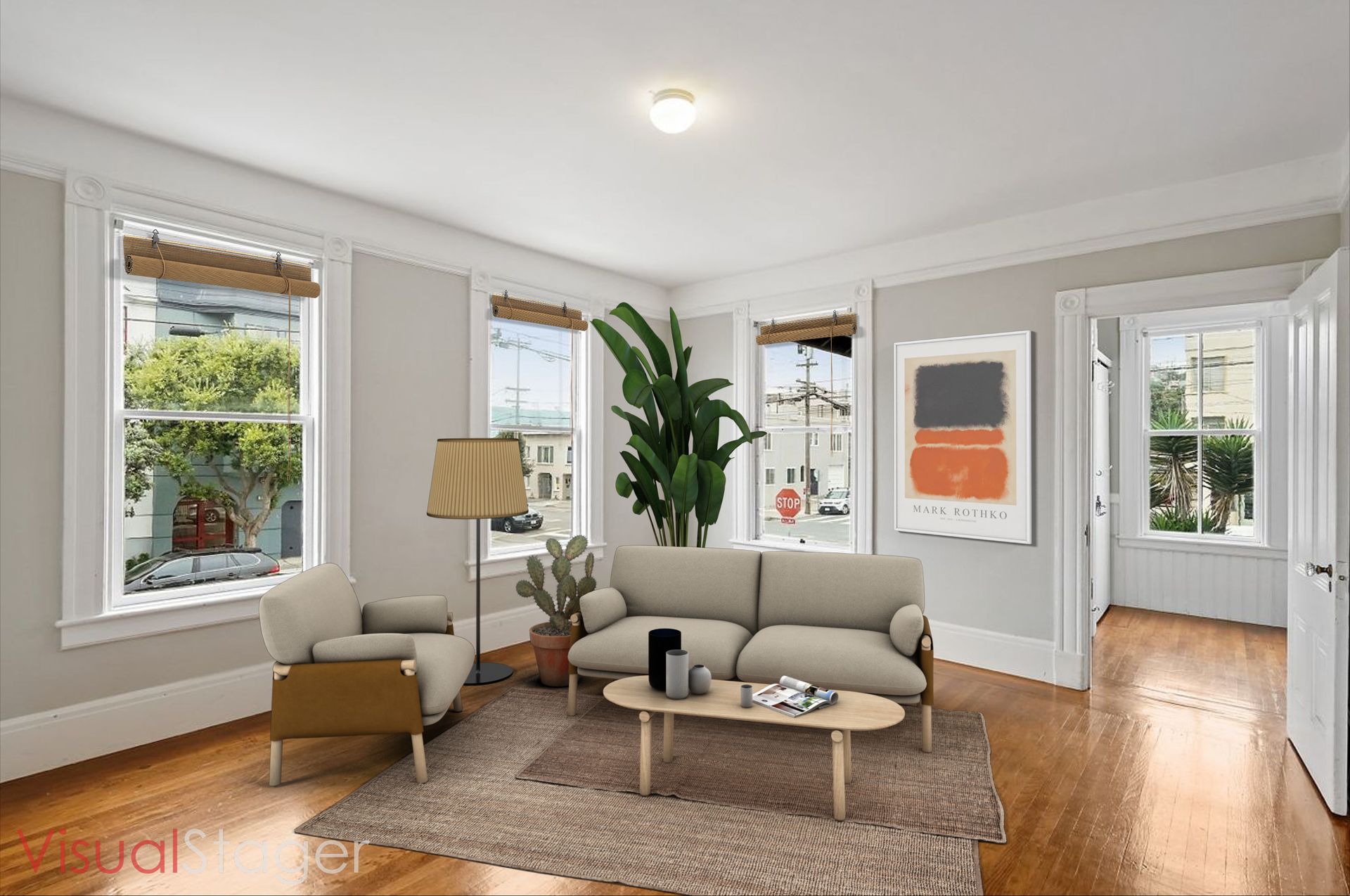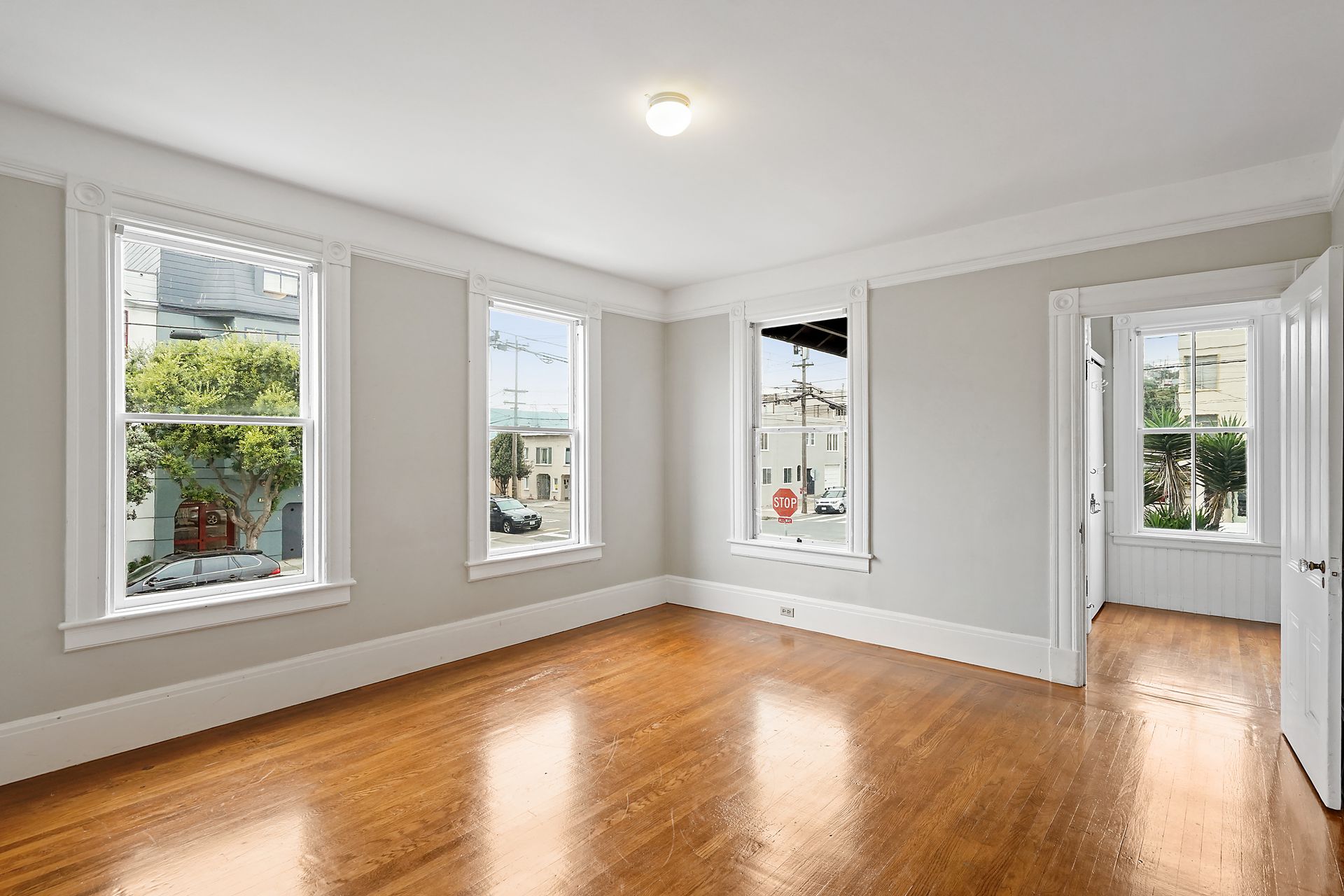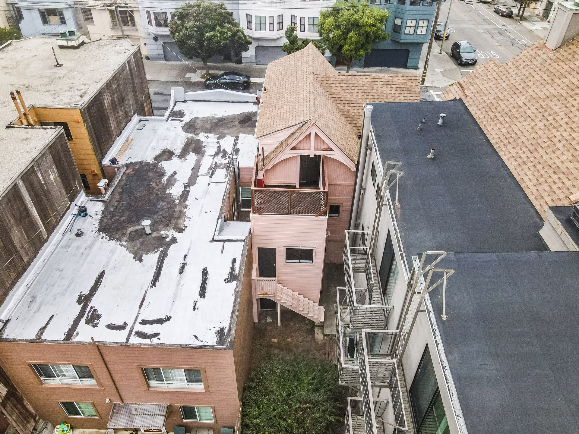 A large corner garden and a backyard is shared with the 5 units around the corner at 4575 Cabrillo Street. This home lives separately from the other building, with its own garage, driveway, and entry on 47th Avenue.