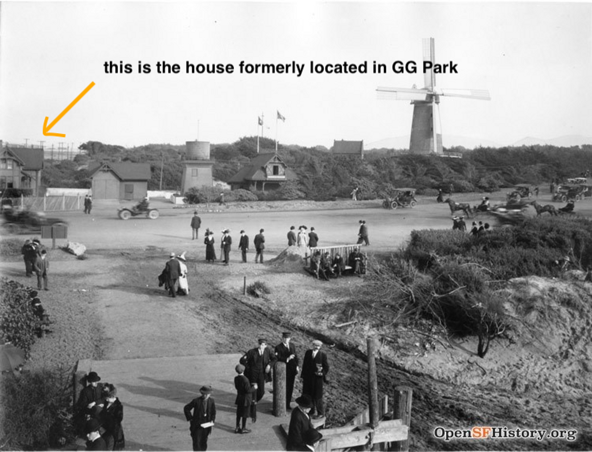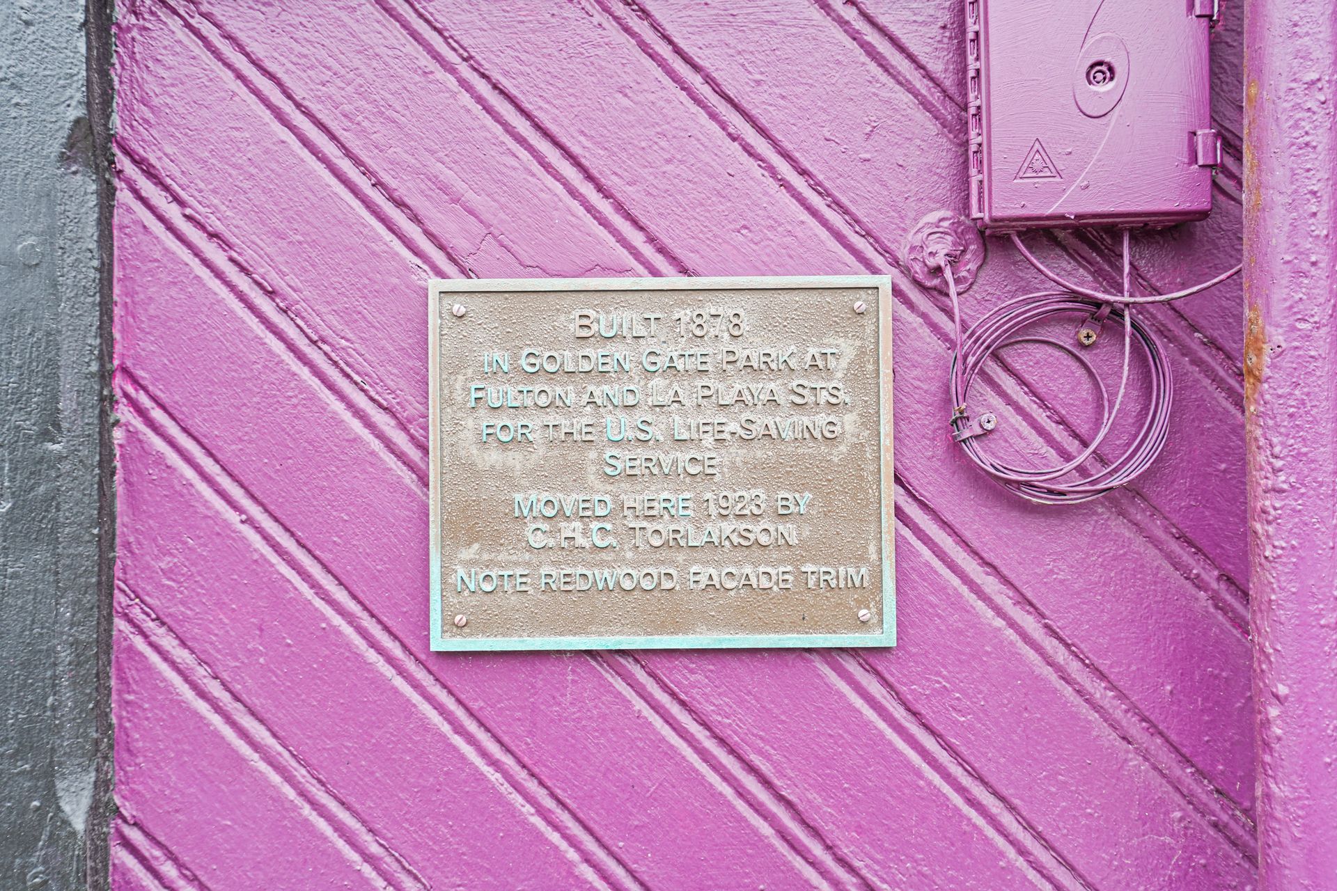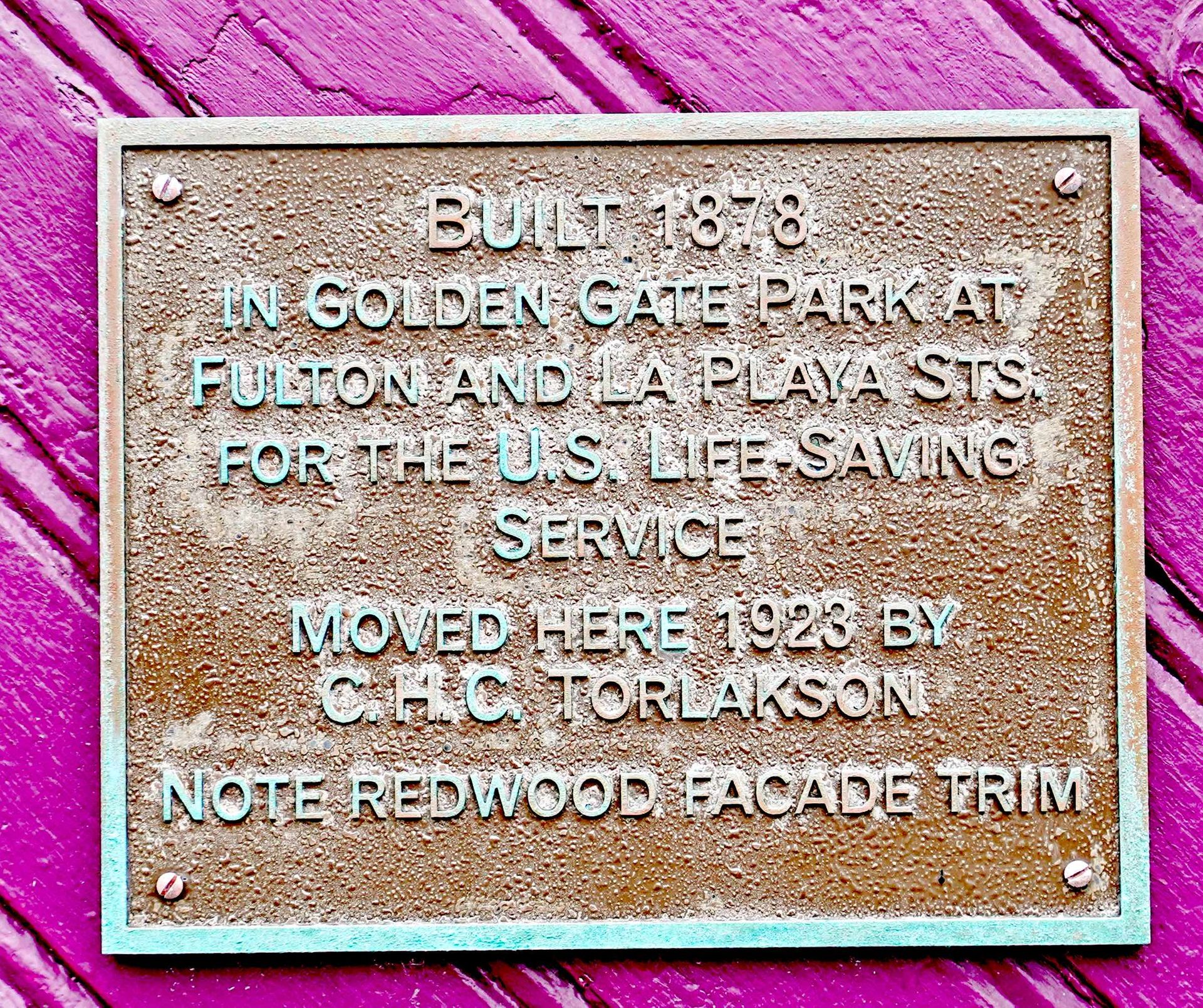 Built in 1878 at Great Highway/Fulton Ave, this was one of the First Coast Guard structures here, known as the Golden Gate Lifesaving Station, from which the crew braved the surf to rescue shipwrecked sailors. In 1923, the house was moved to its current location and lifted up onto a new foundation and garage.