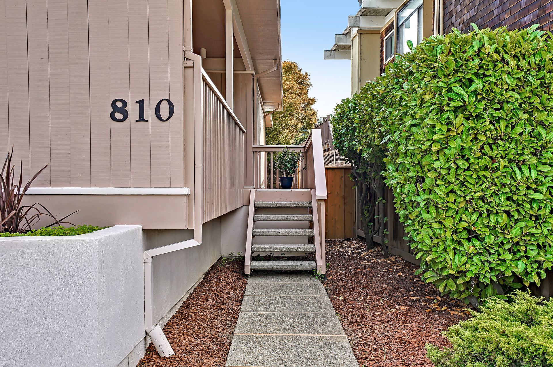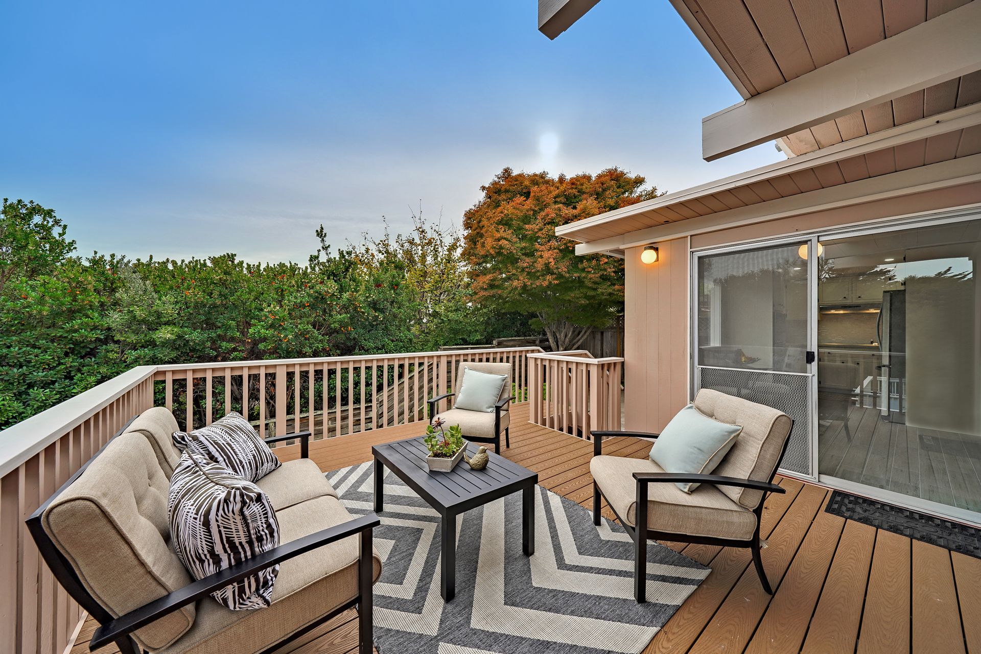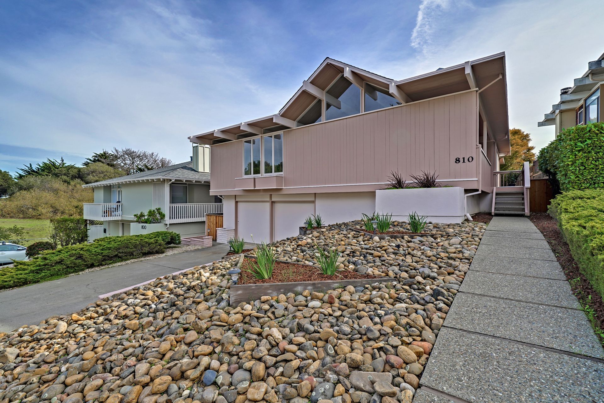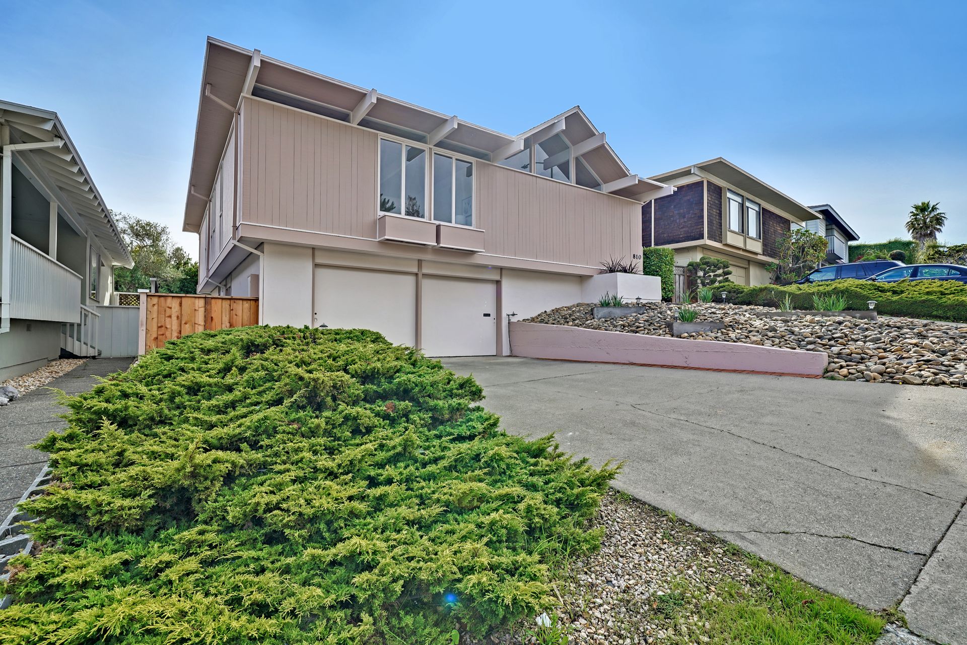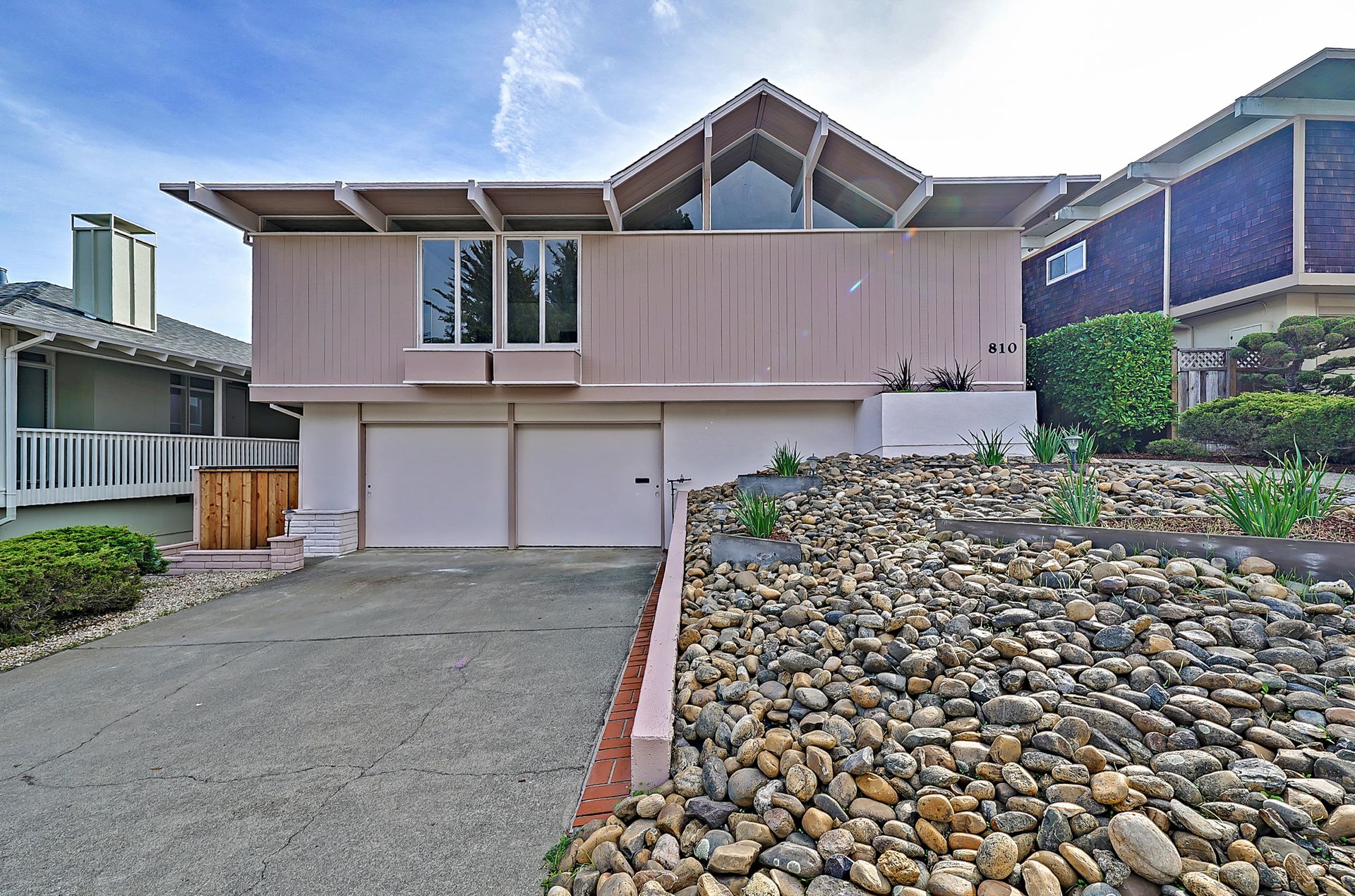 This lovely three bedroom, two bath split-level home is located in the desirable Meadows neighborhood of Millbrae. Features include a tiled formal entryway; a remodeled kitchen with quartz countertops, glass backsplash, stainless steel appliances and a breakfast bar; a breakfast nook with an adjacent, recently rebuilt deck; a formal dining room; a living room with dramatic vaulted beamed ceilings and a fireplace; a family room also with vaulted beamed ceilings; refinished hardwood floors and a freshly painted interior. There is a primary bedroom suite with a walk-in closet and an updated primary bathroom with a quartz topped vanity, dual sinks, a skylight, shower stall and tiled floors. The updated hall bathroom offers a skylight and quartz topped vanity. Additional features include an attached two-car garage with a spacious full basement, attractive landscaped yards and more. Located at the peaceful end of Larkspur Drive, it is nearby the Meadows Swim Club and Regional Park. With approximately 1,950 square feet of livable space, this home sits on an approximately 5,252 square foot lot. www.810Larkspur.com