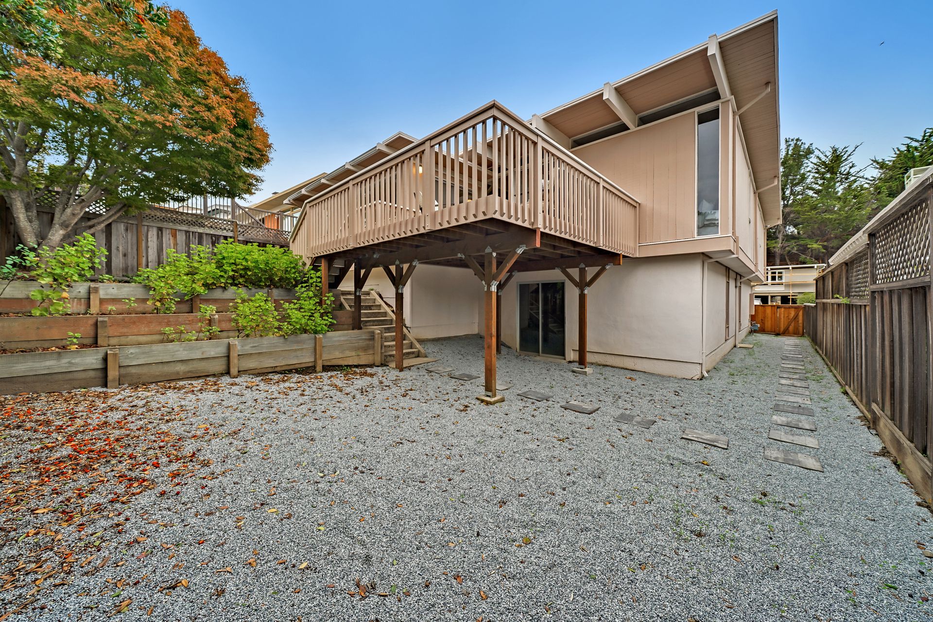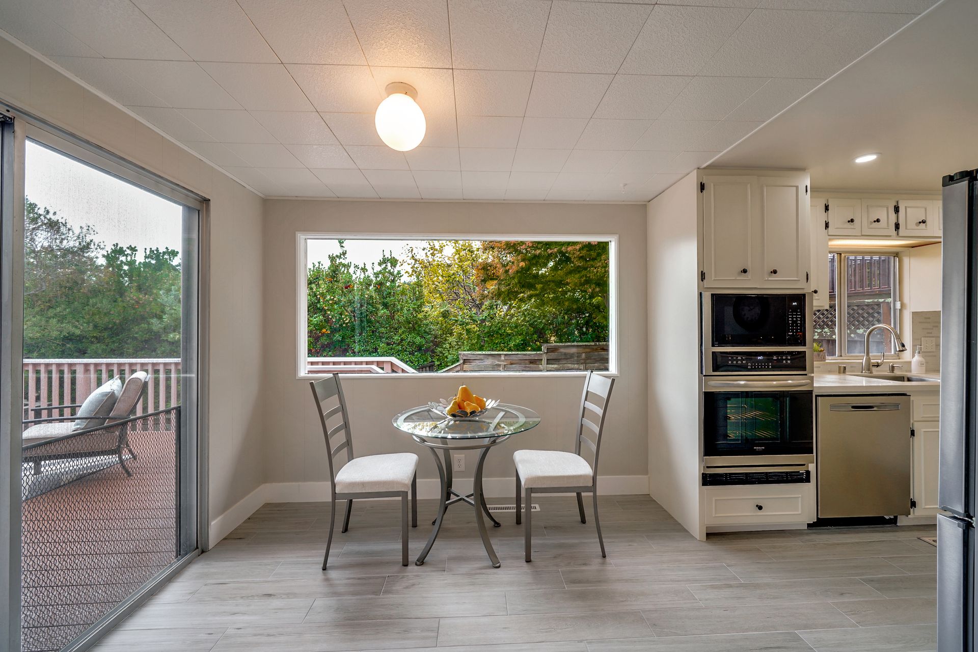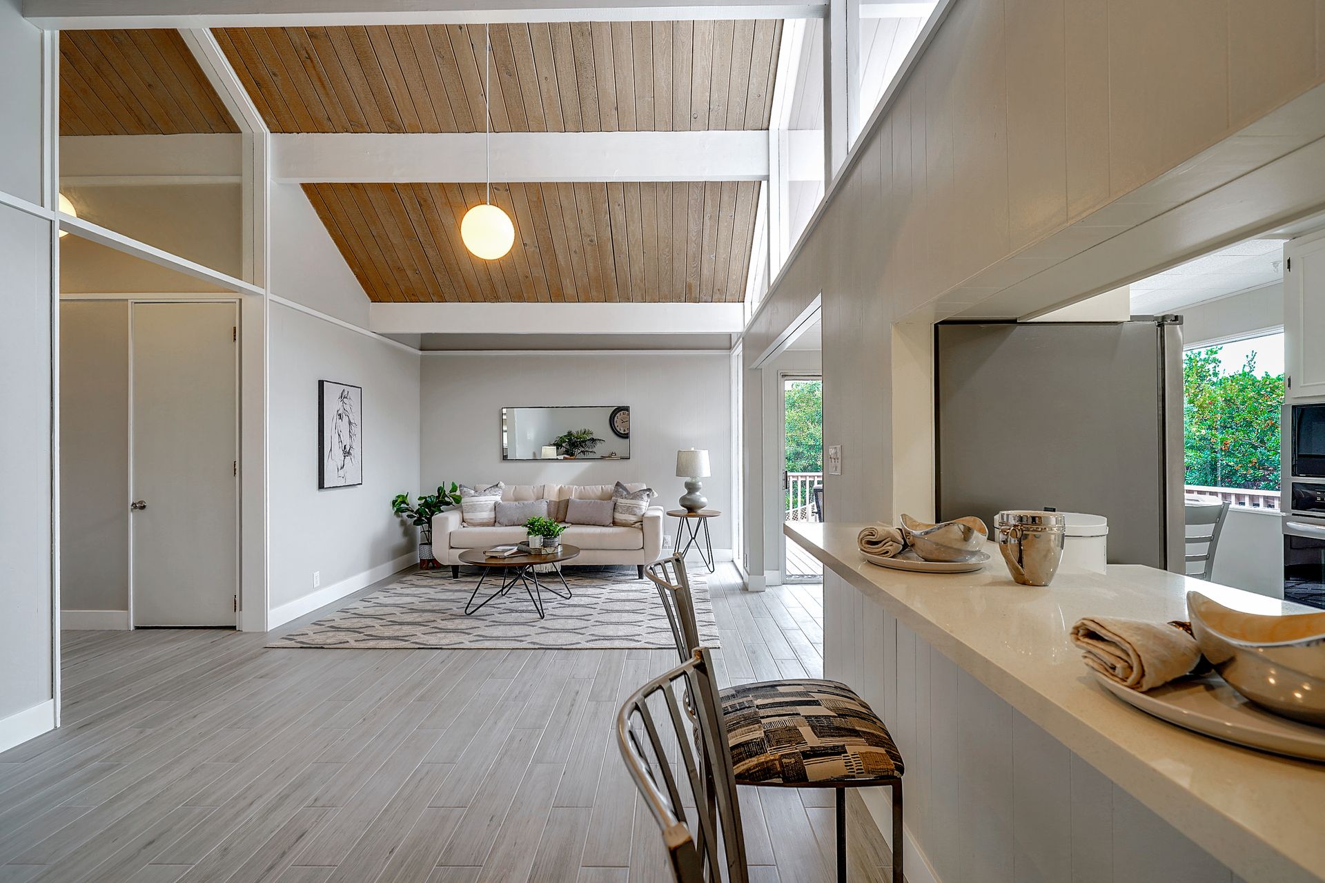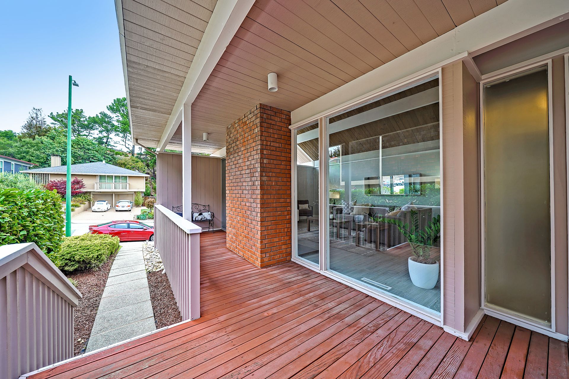 This lovely three bedroom, two bath split-level home is located in the desirable Meadows neighborhood of Millbrae. Features include a tiled formal entryway; a remodeled kitchen with quartz countertops, glass backsplash, stainless steel appliances and a breakfast bar; a breakfast nook with an adjacent, recently rebuilt deck; a formal dining room; a living room with dramatic vaulted beamed ceilings and a fireplace; a family room also with vaulted beamed ceilings; refinished hardwood floors and a freshly painted interior. There is a primary bedroom suite with a walk-in closet and an updated primary bathroom with a quartz topped vanity, dual sinks, a skylight, shower stall and tiled floors. The updated hall bathroom offers a skylight and quartz topped vanity. Additional features include an attached two-car garage with a spacious full basement, attractive landscaped yards and more. Located at the peaceful end of Larkspur Drive, it is nearby the Meadows Swim Club and Regional Park. With approximately 1,950 square feet of livable space, this home sits on an approximately 5,252 square foot lot. www.810Larkspur.com