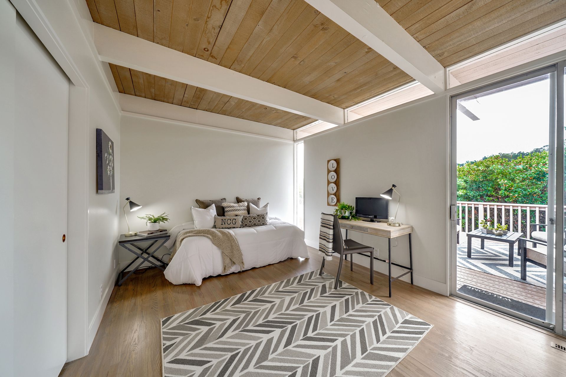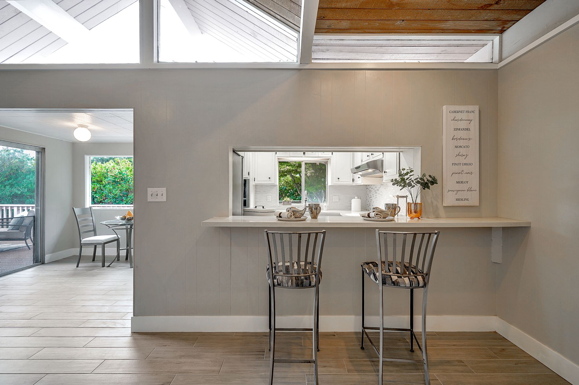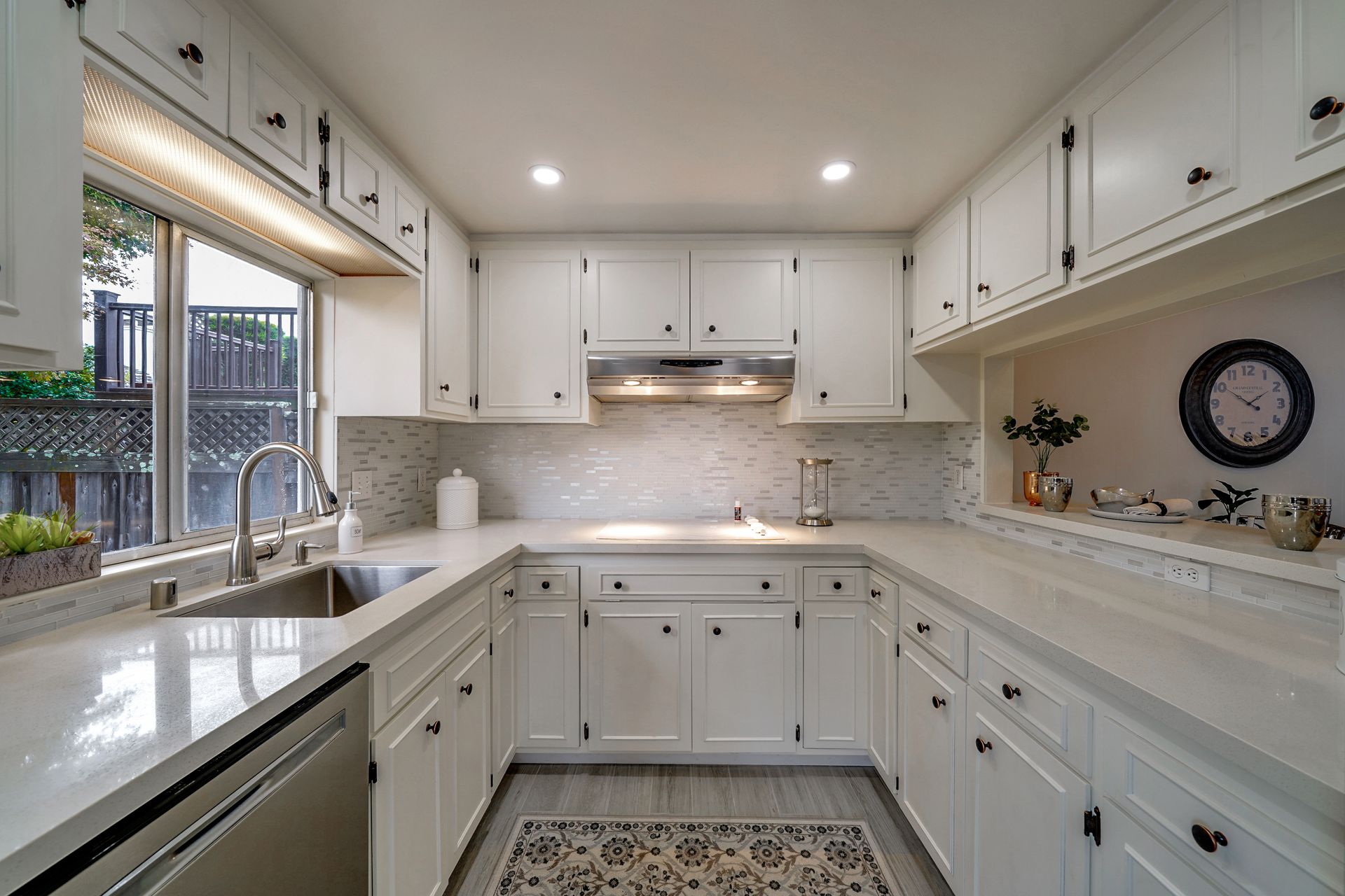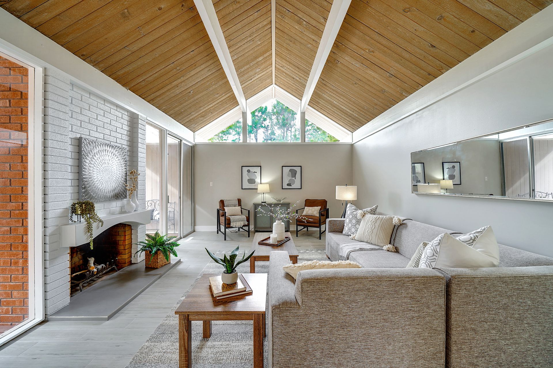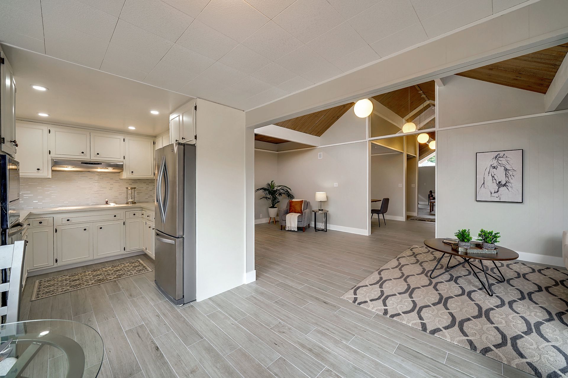 This lovely three bedroom, two bath split-level home is located in the desirable Meadows neighborhood of Millbrae. Features include a tiled formal entryway; a remodeled kitchen with quartz countertops, glass backsplash, stainless steel appliances and a breakfast bar; a breakfast nook with an adjacent, recently rebuilt deck; a formal dining room; a living room with dramatic vaulted beamed ceilings and a fireplace; a family room also with vaulted beamed ceilings; refinished hardwood floors and a freshly painted interior. There is a primary bedroom suite with a walk-in closet and an updated primary bathroom with a quartz topped vanity, dual sinks, a skylight, shower stall and tiled floors. The updated hall bathroom offers a skylight and quartz topped vanity. Additional features include an attached two-car garage with a spacious full basement, attractive landscaped yards and more. Located at the peaceful end of Larkspur Drive, it is nearby the Meadows Swim Club and Regional Park. With approximately 1,950 square feet of livable space, this home sits on an approximately 5,252 square foot lot. www.810Larkspur.com