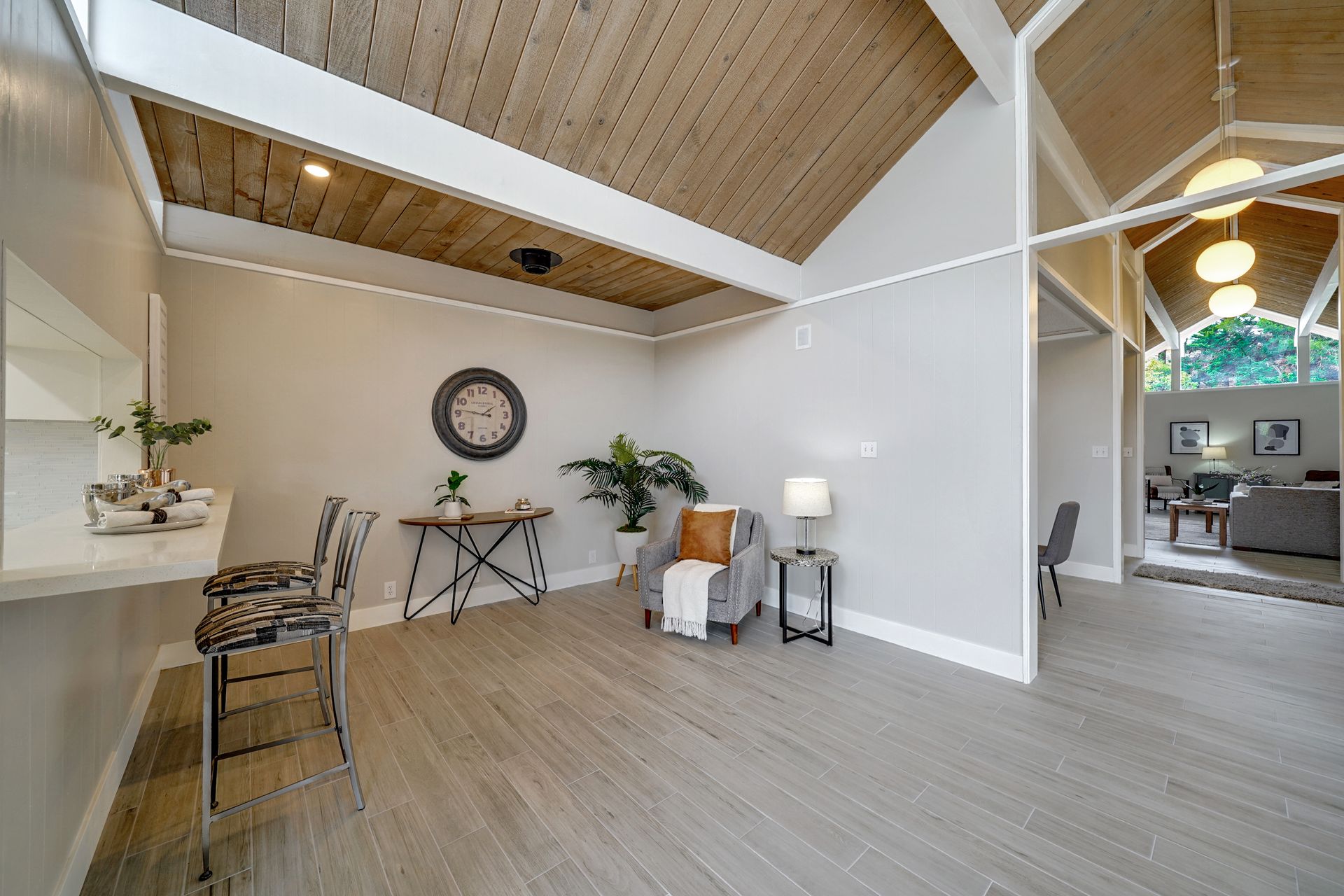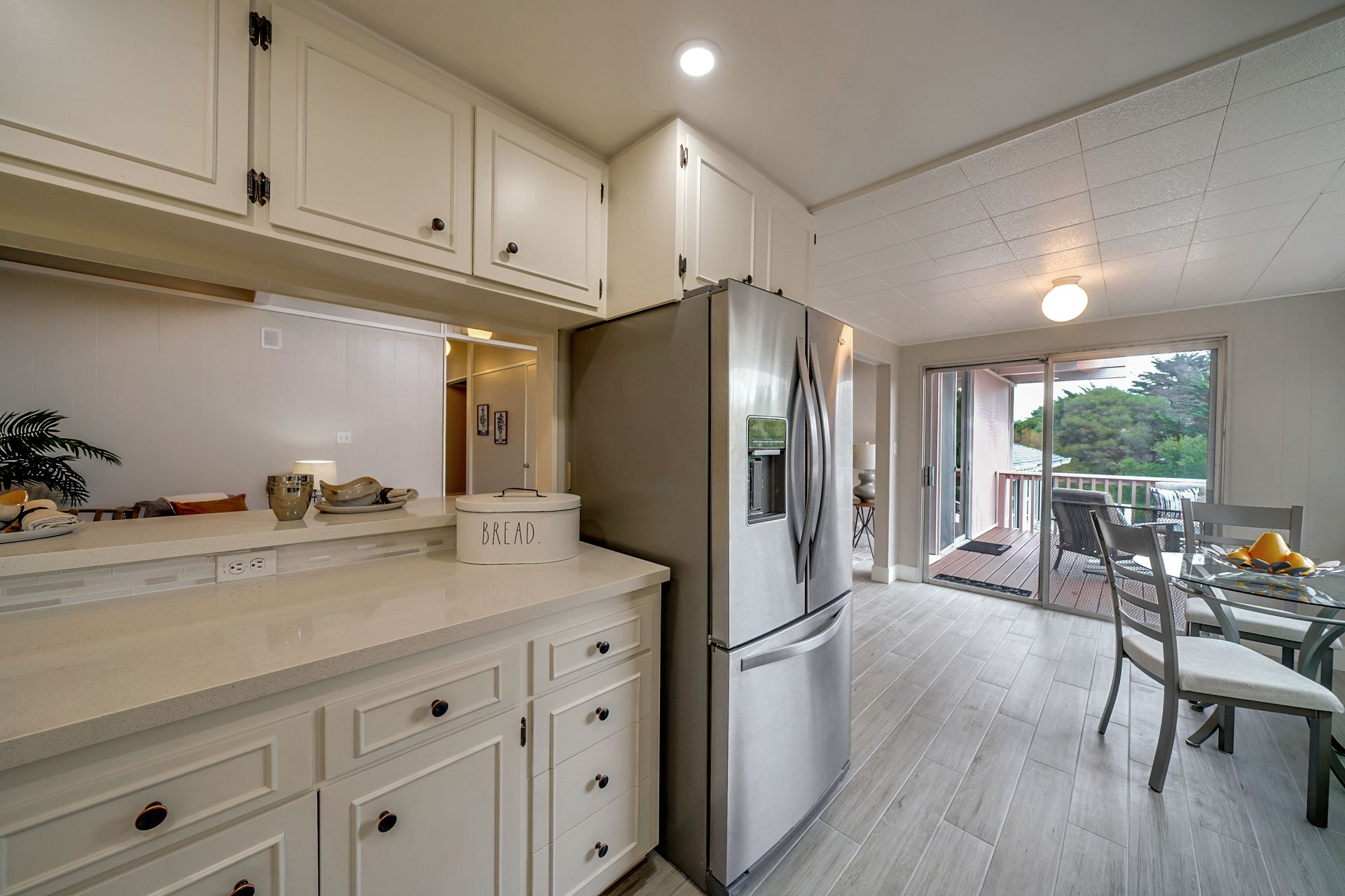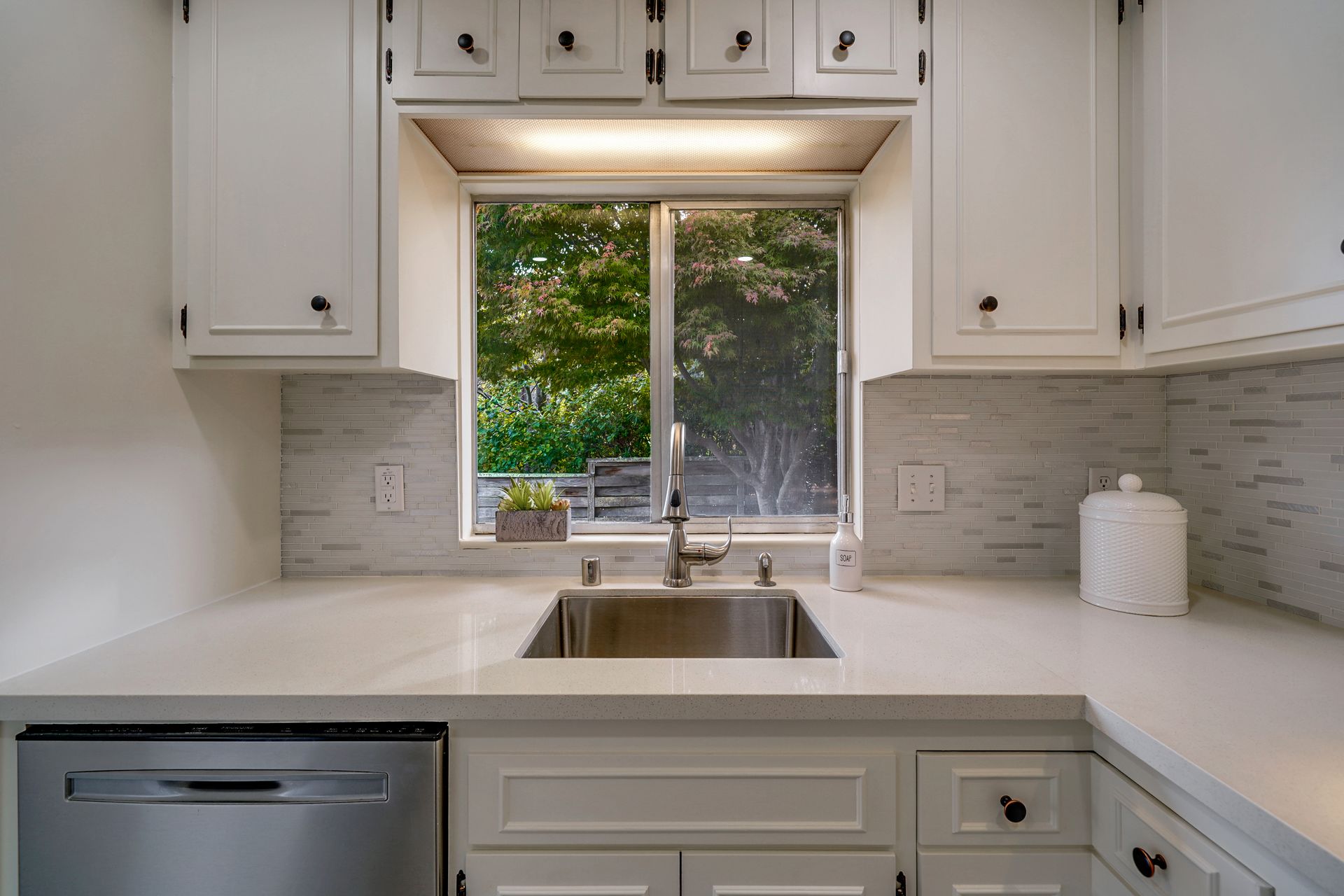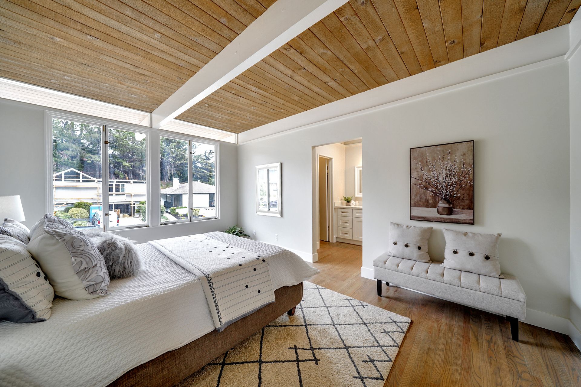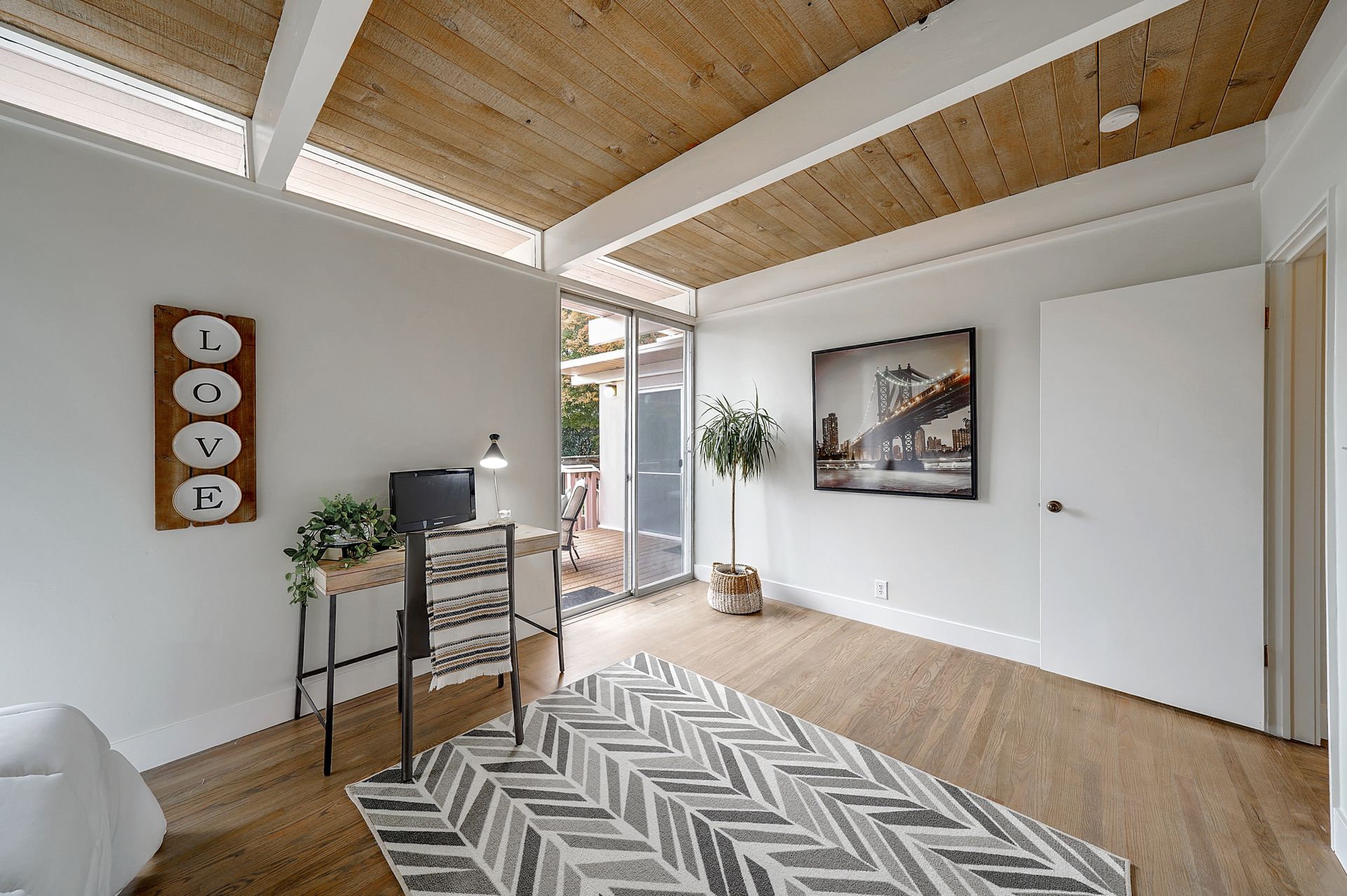 This lovely three bedroom, two bath split-level home is located in the desirable Meadows neighborhood of Millbrae. Features include a tiled formal entryway; a remodeled kitchen with quartz countertops, glass backsplash, stainless steel appliances and a breakfast bar; a breakfast nook with an adjacent, recently rebuilt deck; a formal dining room; a living room with dramatic vaulted beamed ceilings and a fireplace; a family room also with vaulted beamed ceilings; refinished hardwood floors and a freshly painted interior. There is a primary bedroom suite with a walk-in closet and an updated primary bathroom with a quartz topped vanity, dual sinks, a skylight, shower stall and tiled floors. The updated hall bathroom offers a skylight and quartz topped vanity. Additional features include an attached two-car garage with a spacious full basement, attractive landscaped yards and more. Located at the peaceful end of Larkspur Drive, it is nearby the Meadows Swim Club and Regional Park. With approximately 1,950 square feet of livable space, this home sits on an approximately 5,252 square foot lot. www.810Larkspur.com