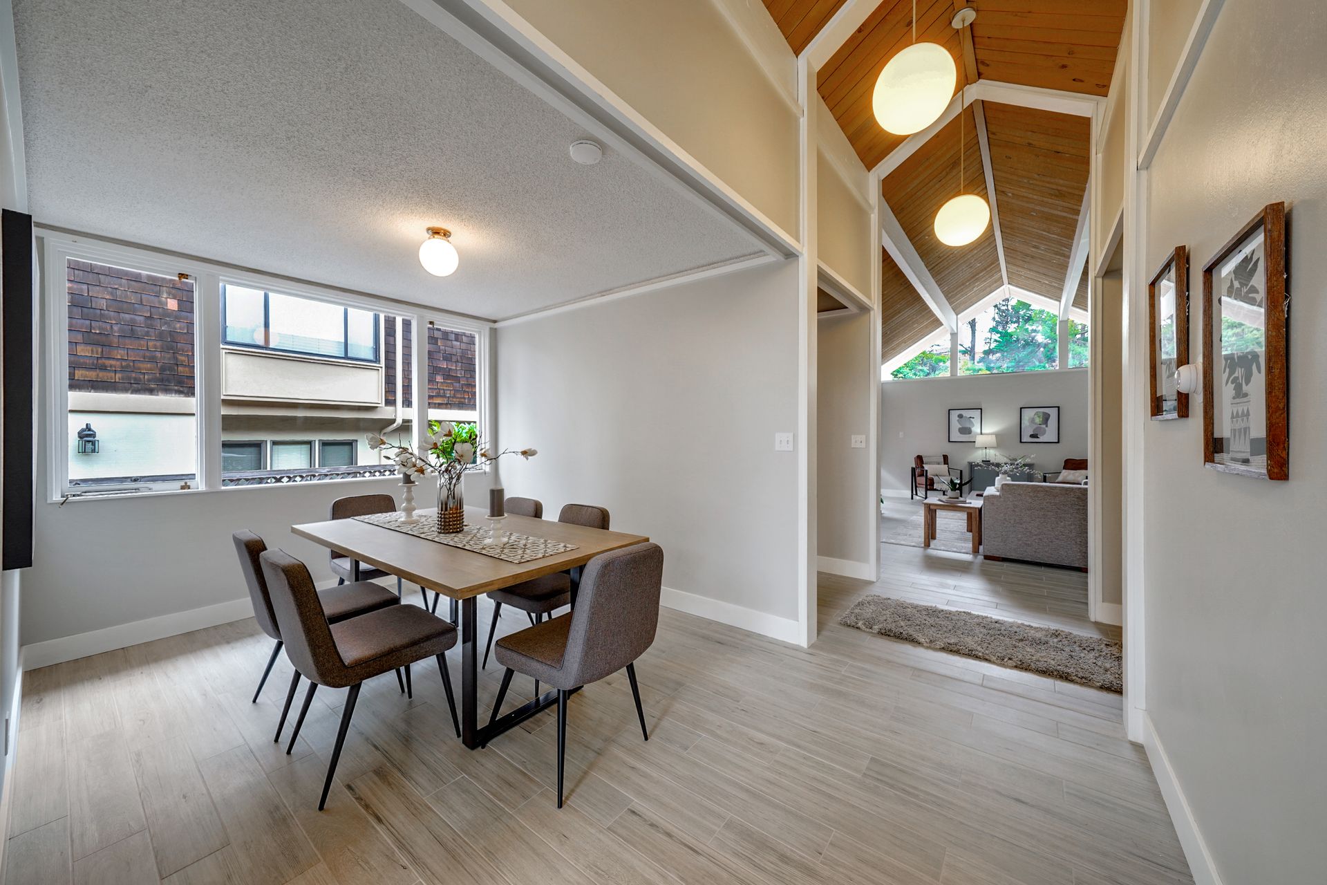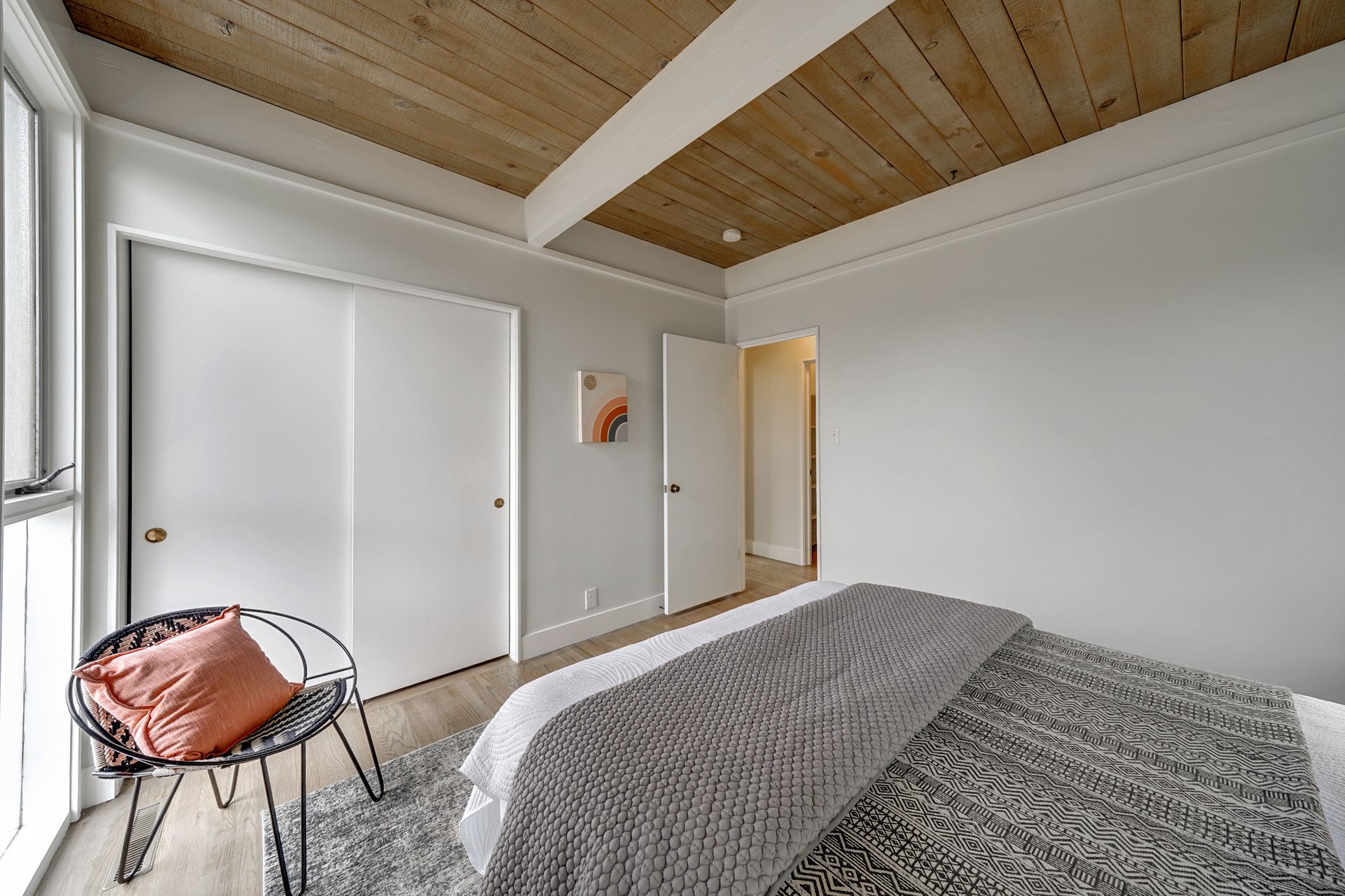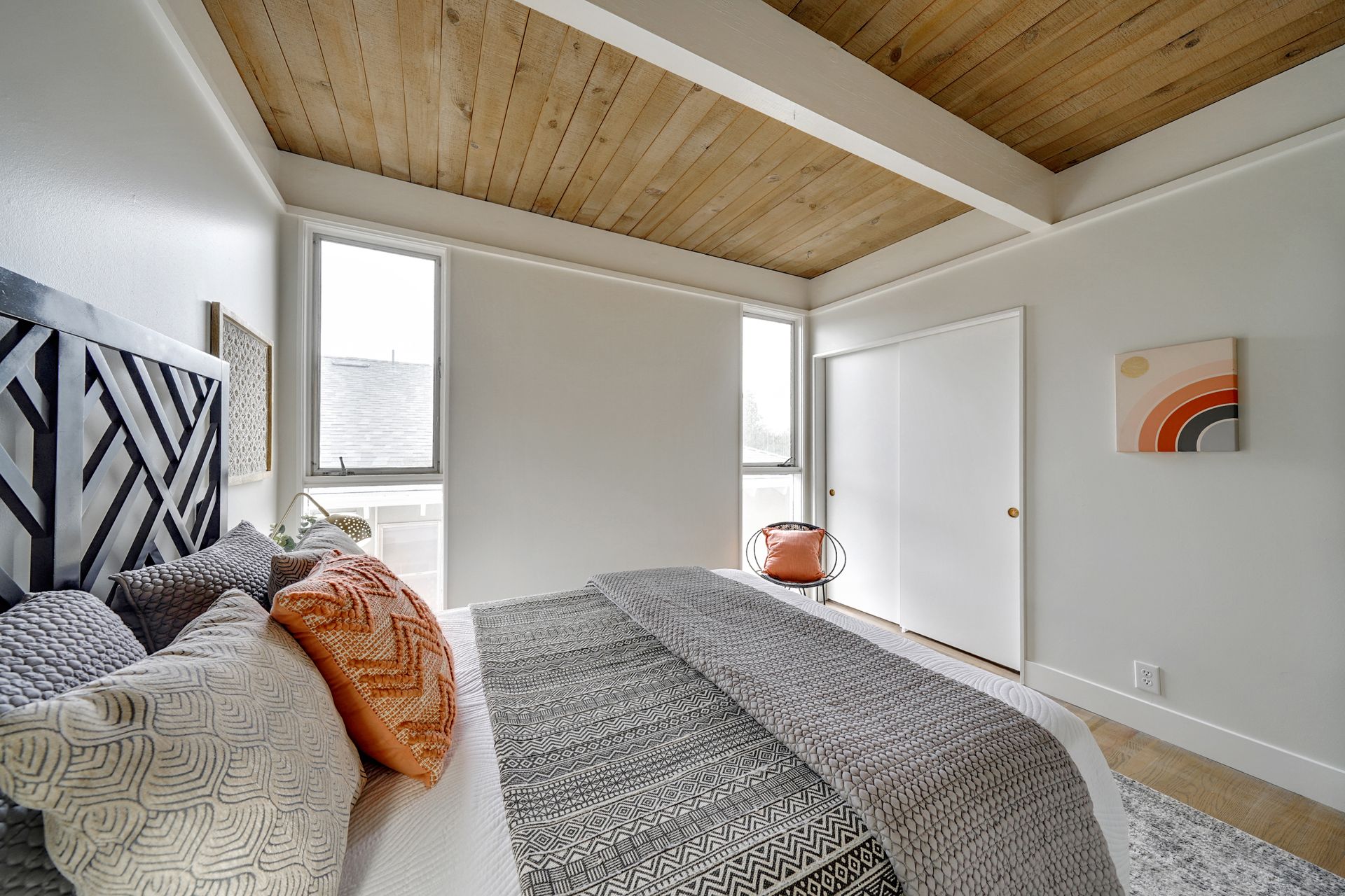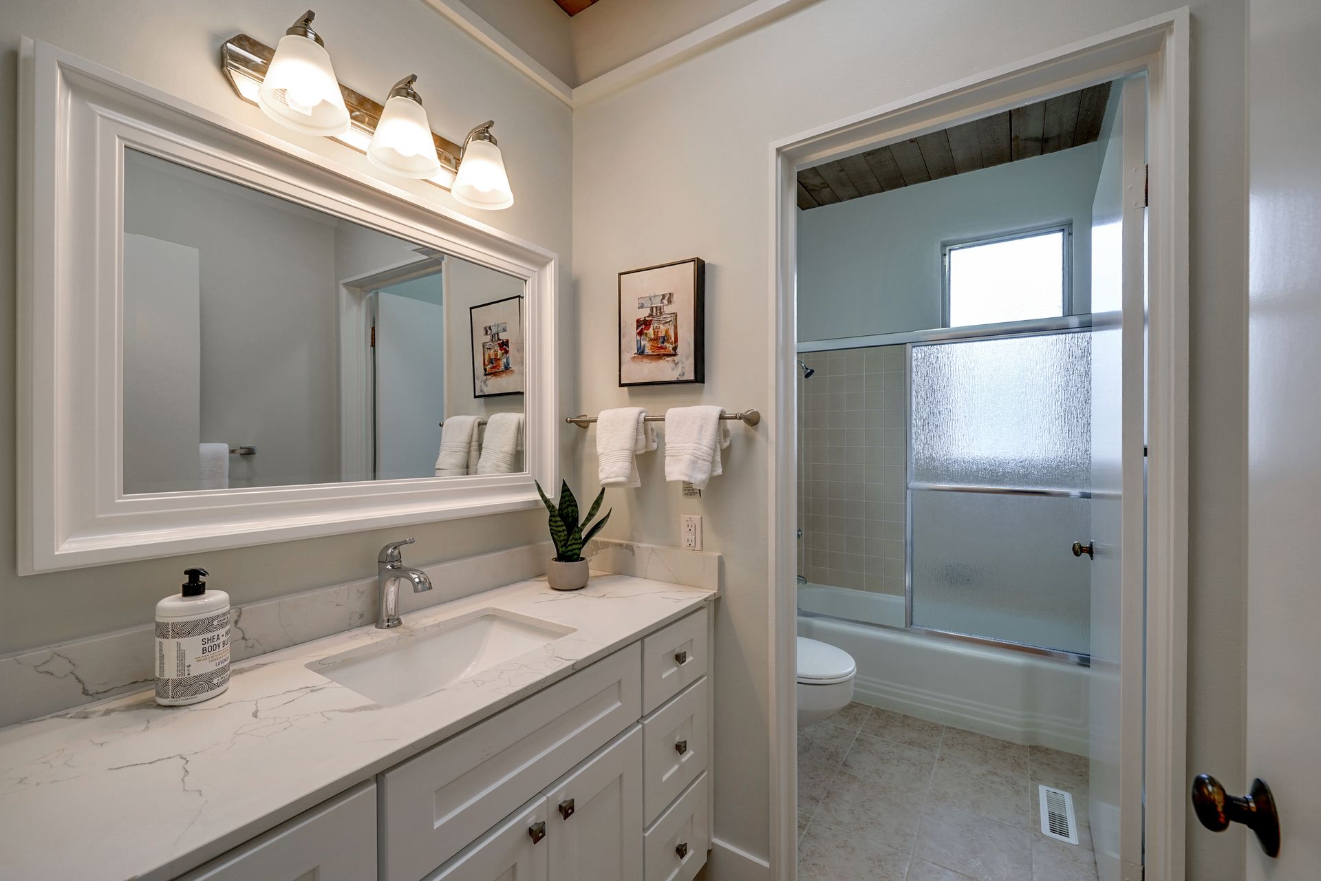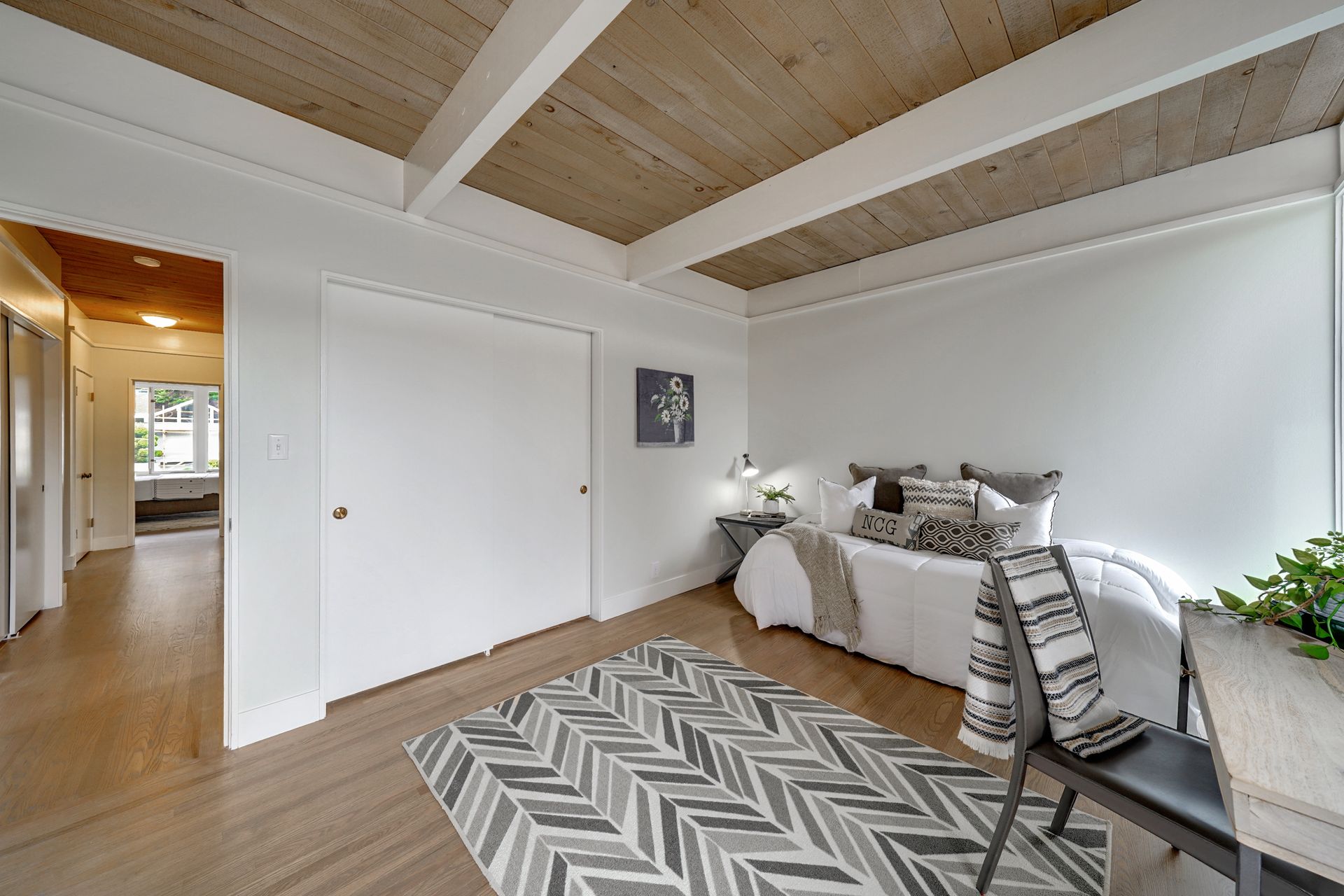 This lovely three bedroom, two bath split-level home is located in the desirable Meadows neighborhood of Millbrae. Features include a tiled formal entryway; a remodeled kitchen with quartz countertops, glass backsplash, stainless steel appliances and a breakfast bar; a breakfast nook with an adjacent, recently rebuilt deck; a formal dining room; a living room with dramatic vaulted beamed ceilings and a fireplace; a family room also with vaulted beamed ceilings; refinished hardwood floors and a freshly painted interior. There is a primary bedroom suite with a walk-in closet and an updated primary bathroom with a quartz topped vanity, dual sinks, a skylight, shower stall and tiled floors. The updated hall bathroom offers a skylight and quartz topped vanity. Additional features include an attached two-car garage with a spacious full basement, attractive landscaped yards and more. Located at the peaceful end of Larkspur Drive, it is nearby the Meadows Swim Club and Regional Park. With approximately 1,950 square feet of livable space, this home sits on an approximately 5,252 square foot lot. www.810Larkspur.com