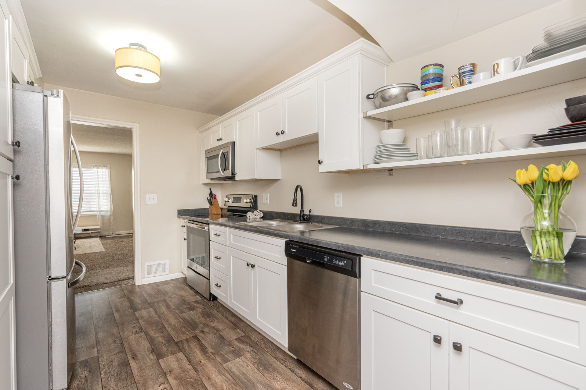 Charming South Ogden brick rambler nestled on a quiet street. Enjoy an updated kitchen with newer stainless appliances and shaker-style cabinets. The main living area features a beautiful and bright bonus room with newer windows and a walkout door to the patio. This home features an updated air-conditioning unit, water heater, windows, blinds, paint and sprinkler system. Newer rain gutters were installed in 2020. This prime location has mountain views and is close to Weber State University, downtown Ogden, multiple hiking and biking trailheads and close to Ogden Valley Ski Resorts.