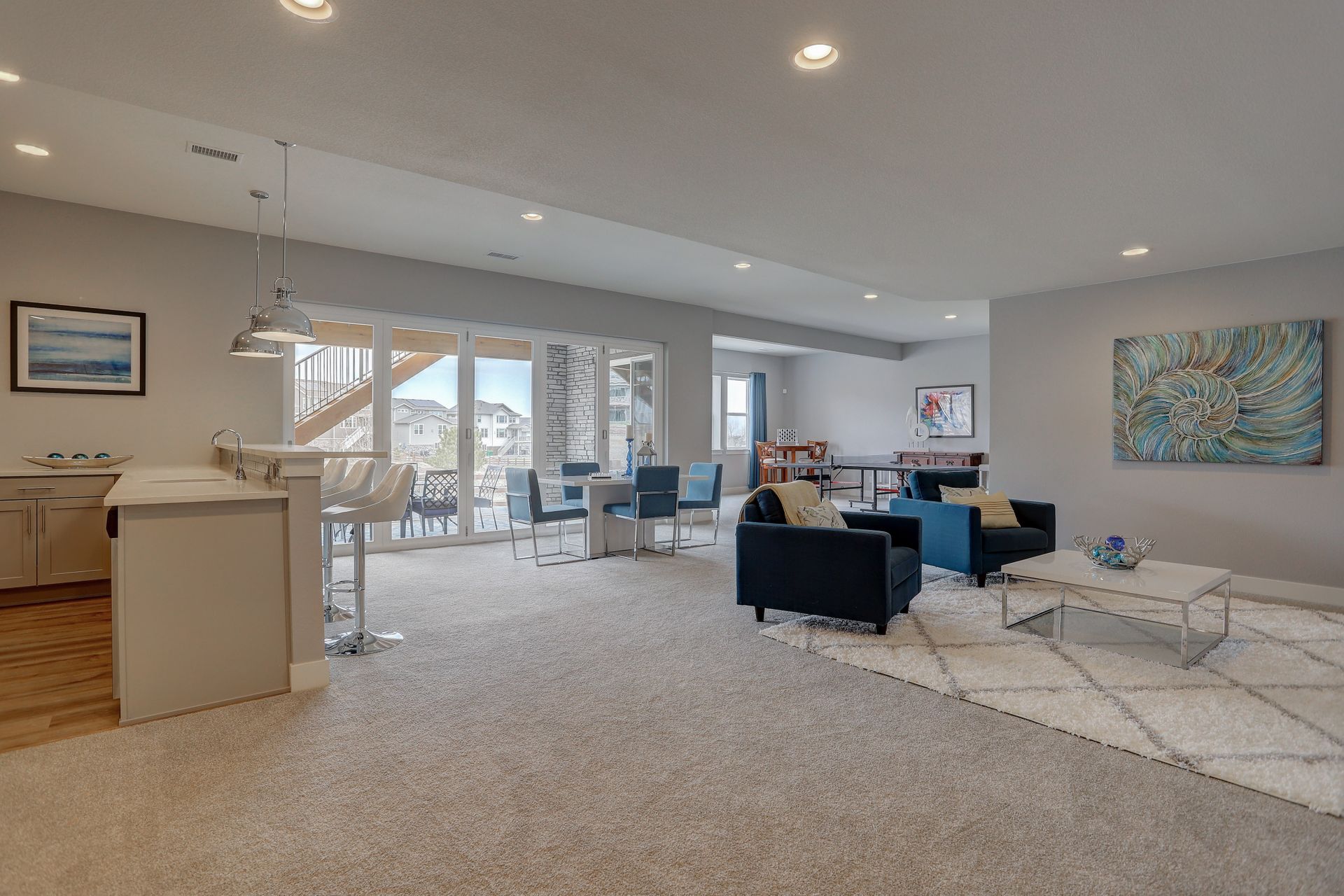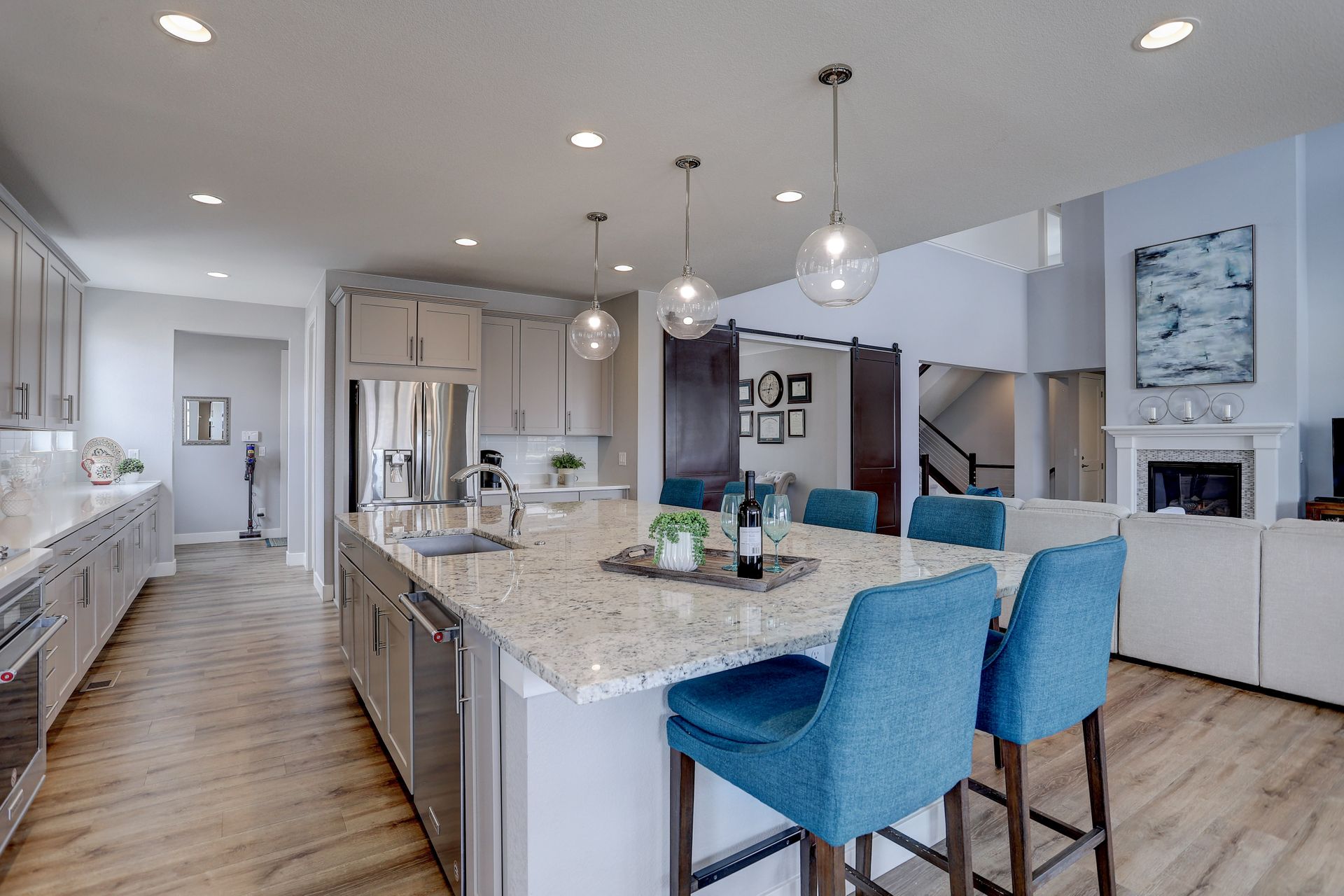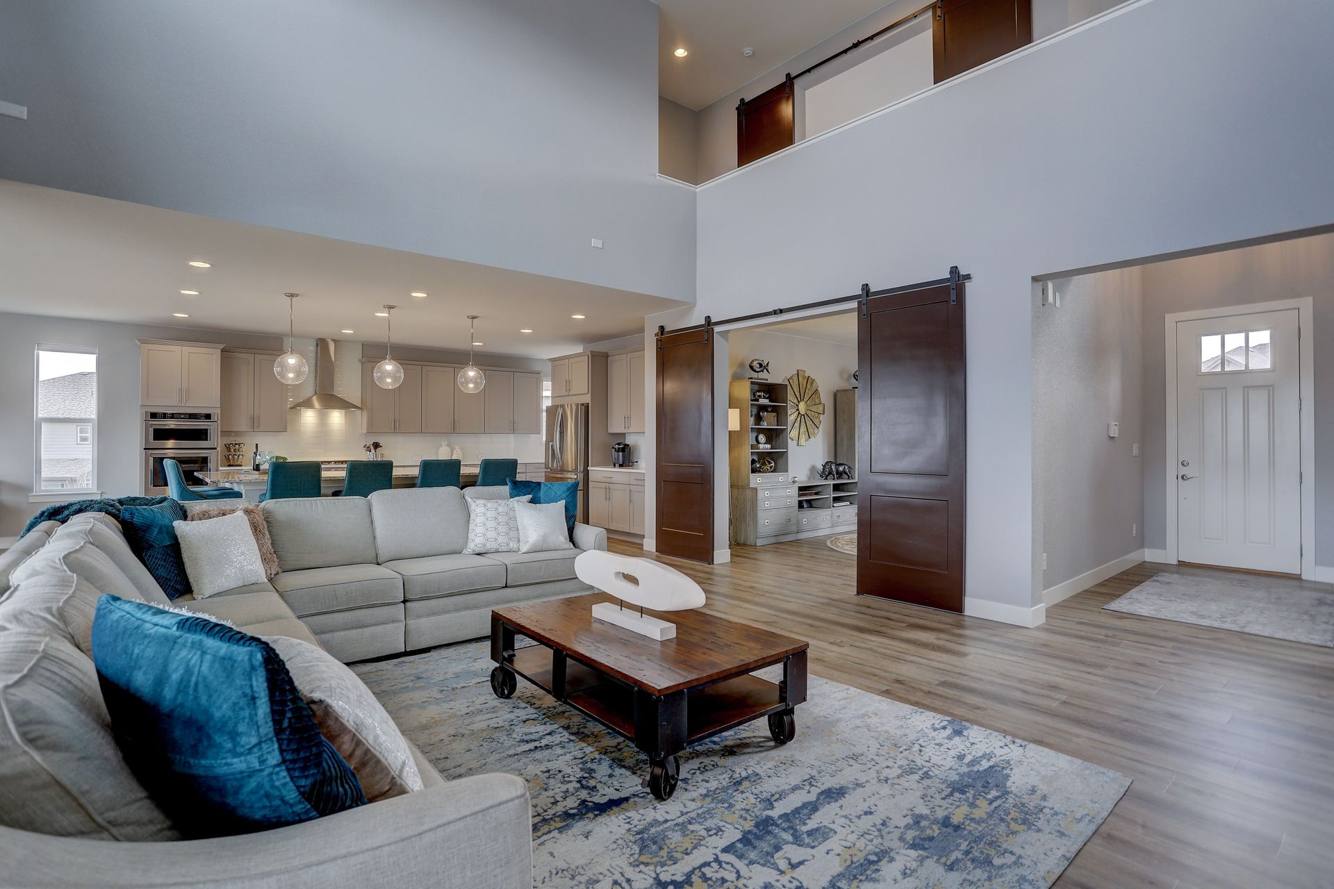 Don’t miss this opportunity to own your ideal Staycation Home! This sun drenched open floor plan with an amazing walkout basement and both an upper covered deck and lower patio backing to a generous greenbelt will satisfy all your entertaining needs. The main floor boasts soaring ceilings in the family room overlooking the upper covered deck, a main floor guest suite, your DREAM kitchen and a bonus room that opens with double barn doors. Employ this bonus space as your new office or a formal dining room. The chef’s kitchen flows seamlessly into the family room and spacious dining area with easy access to the covered upper deck. Enjoy endless cabinetry with quartz counters and subway tile backsplash, a massive central island with slab granite, a large walk-in pantry and stainless appliances. On the upper level, you will discover the luxurious master suite, two additional en suite bedrooms and a second bonus room …office, second family room or playroom???….adorned with double barn doors. The secluded entrance to the master retreat welcomes you into the spacious bedroom with a tray ceiling and views of the front range. The spa like bath with huge Euro shower, double walk-in closets, and a stunning soaking tub is the perfect place to unwind at the end of the day. You’ll consider spending all of your weekends at home when you see this walk-out basement! Mike Drop! Serve your favorite drinks at the wet bar, enjoy games in the rec area, and watch the latest movie release in your own home theater with 7.1 surround sound and raised platform seating. Open up the folding patio doors to the lower level patio and end the evening roasting marshmallows and warming up next to the fire pit. The fifth bedroom, located in the basement is ideal for a home gym or yoga studio. A three-quarter bath is also located in the basement. Whispering Pines enjoys a clubhouse, a pool, an extensive trail system and multiple playgrounds. Located in Cherry Creek School District.