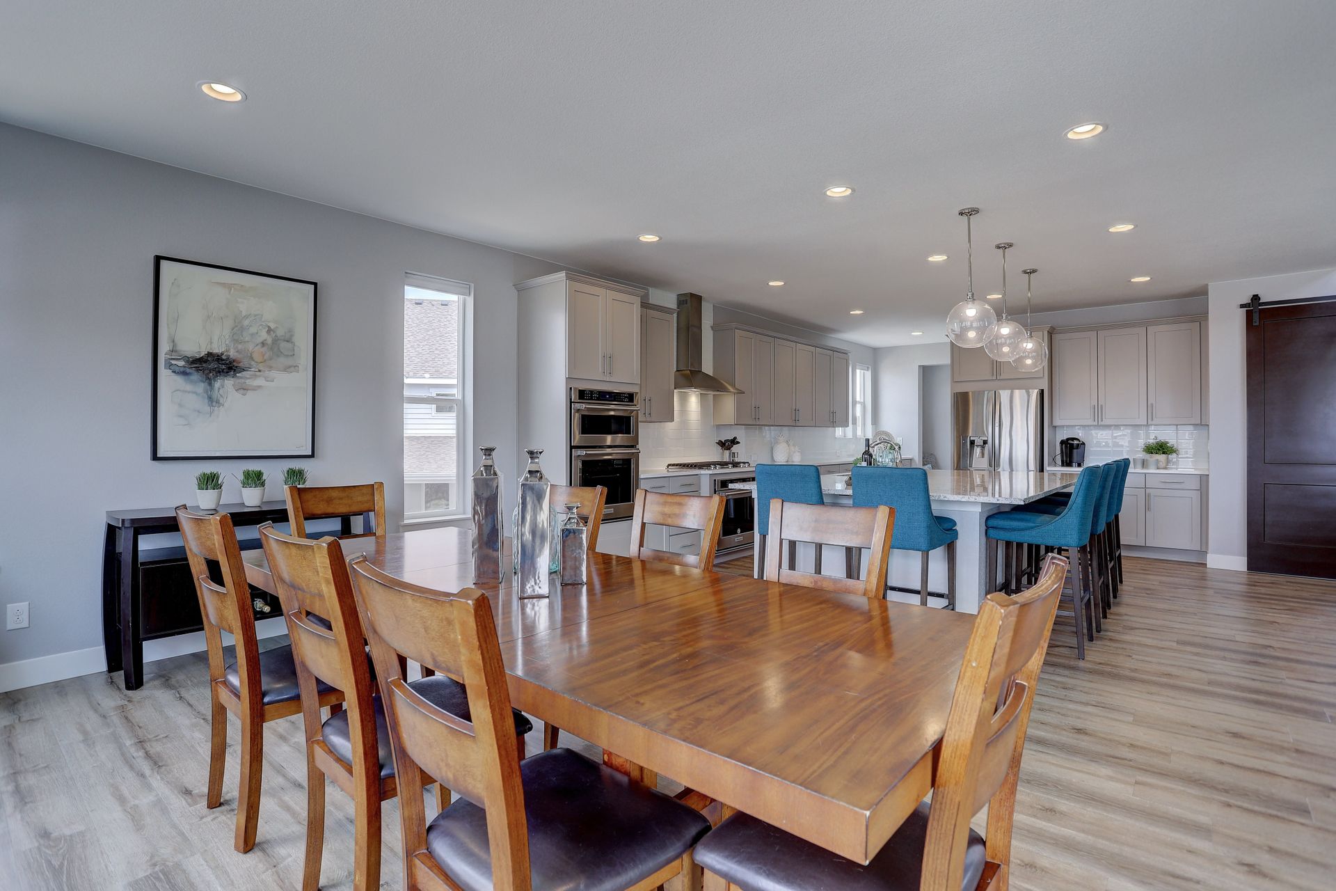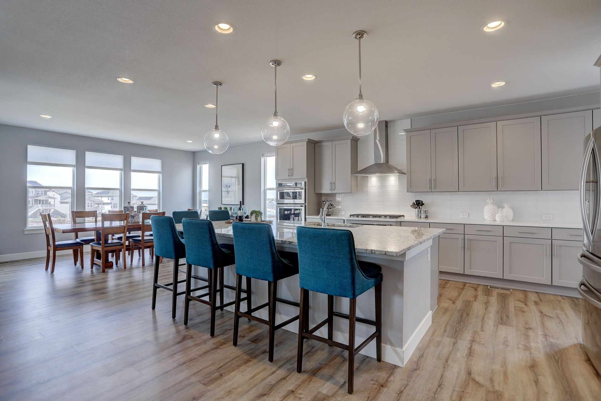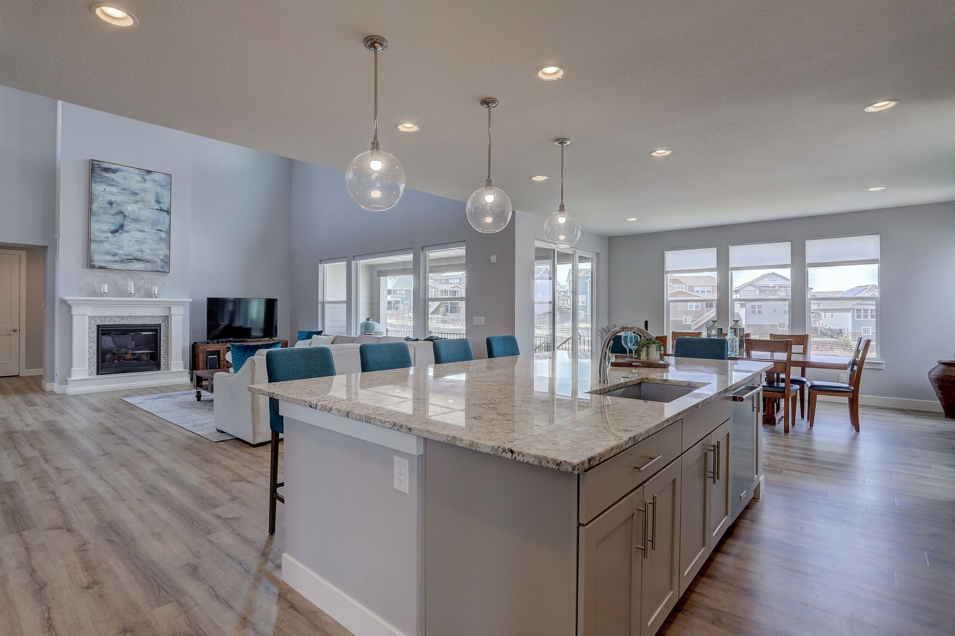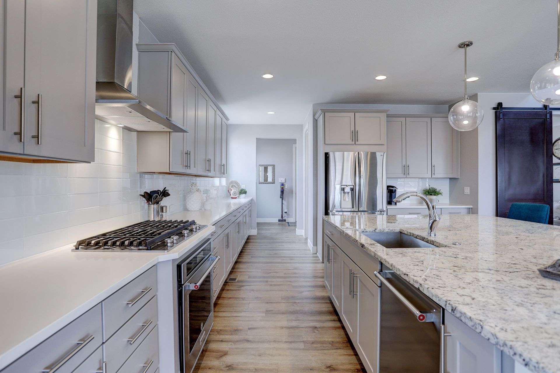 Don’t miss this opportunity to own your ideal Staycation Home! This sun drenched open floor plan with an amazing walkout basement and both an upper covered deck and lower patio backing to a generous greenbelt will satisfy all your entertaining needs. The main floor boasts soaring ceilings in the family room overlooking the upper covered deck, a main floor guest suite, your DREAM kitchen and a bonus room that opens with double barn doors. Employ this bonus space as your new office or a formal dining room. The chef’s kitchen flows seamlessly into the family room and spacious dining area with easy access to the covered upper deck. Enjoy endless cabinetry with quartz counters and subway tile backsplash, a massive central island with slab granite, a large walk-in pantry and stainless appliances. On the upper level, you will discover the luxurious master suite, two additional en suite bedrooms and a second bonus room …office, second family room or playroom???….adorned with double barn doors. The secluded entrance to the master retreat welcomes you into the spacious bedroom with a tray ceiling and views of the front range. The spa like bath with huge Euro shower, double walk-in closets, and a stunning soaking tub is the perfect place to unwind at the end of the day. You’ll consider spending all of your weekends at home when you see this walk-out basement! Mike Drop! Serve your favorite drinks at the wet bar, enjoy games in the rec area, and watch the latest movie release in your own home theater with 7.1 surround sound and raised platform seating. Open up the folding patio doors to the lower level patio and end the evening roasting marshmallows and warming up next to the fire pit. The fifth bedroom, located in the basement is ideal for a home gym or yoga studio. A three-quarter bath is also located in the basement. Whispering Pines enjoys a clubhouse, a pool, an extensive trail system and multiple playgrounds. Located in Cherry Creek School District.