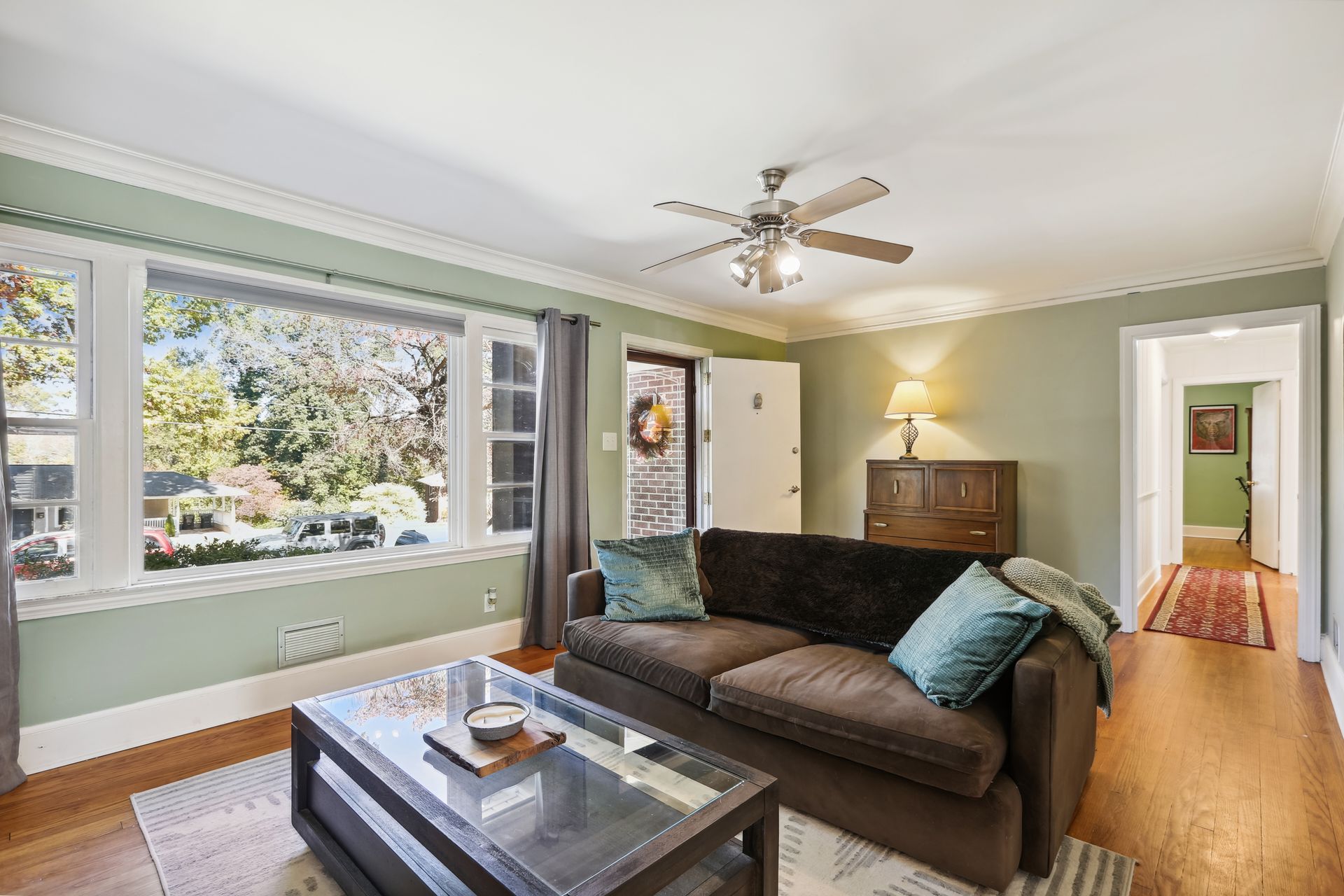 Classic all brick Mid-Century Modern ranch has a new kitchen featuring granite countertops, backsplash, gas range (electric hookup also) and new flooring. Hardwood floors have been lovingly refinished throughout the home. The living room boasts a wood burning (gas hookup is capped) fireplace and a large picture window overlooking the shady green front lawn. An enclosed side porch offers a multi-purpose space easily accessible from the living room, driveway and back yard. Three bedrooms off the main hallway offer beautiful views from each window. The bathroom has been updated and has plenty of storage space. A new roof was installed in Spring 2022. The hot water heater was installed in 2018. The long driveway extends beyond the fence providing ample parking for cars, etc. The fenced in back yard is large and level. Gorgeous azaleas along the front of the home provide dazzling blooms each Spring. The established neighborhood is lined with beautiful trees and sidewalks on each side. Walking distance to Northside Elementary, Northside Recreation Center and the Northside Greenway.