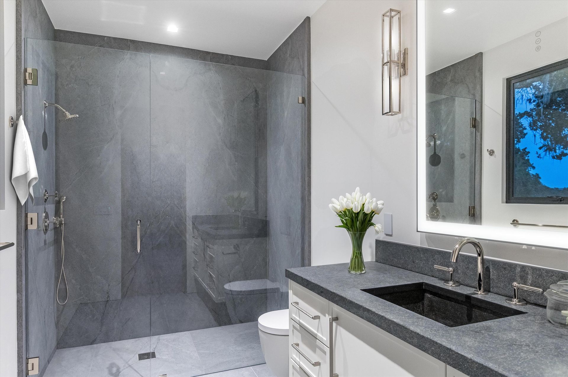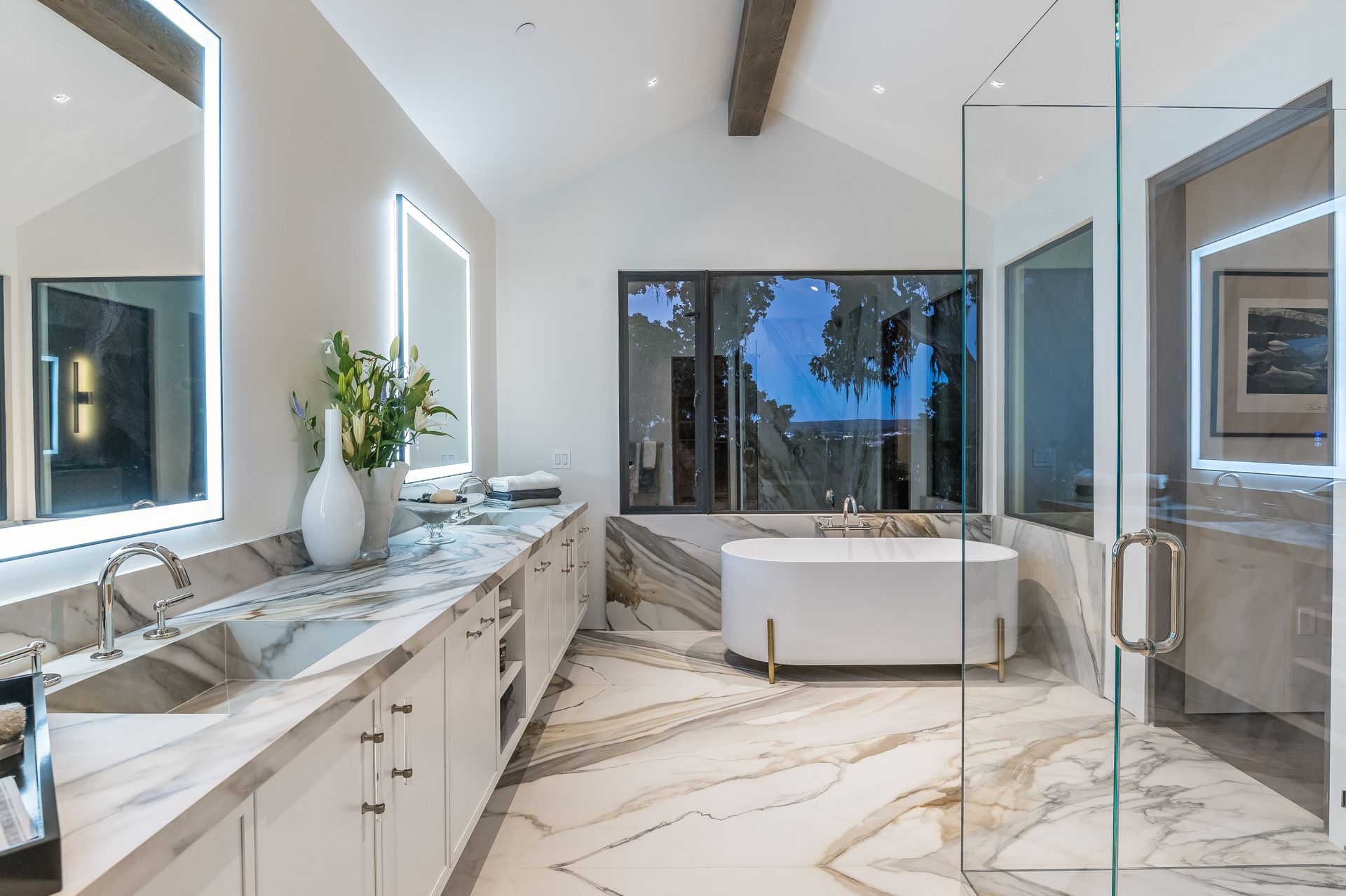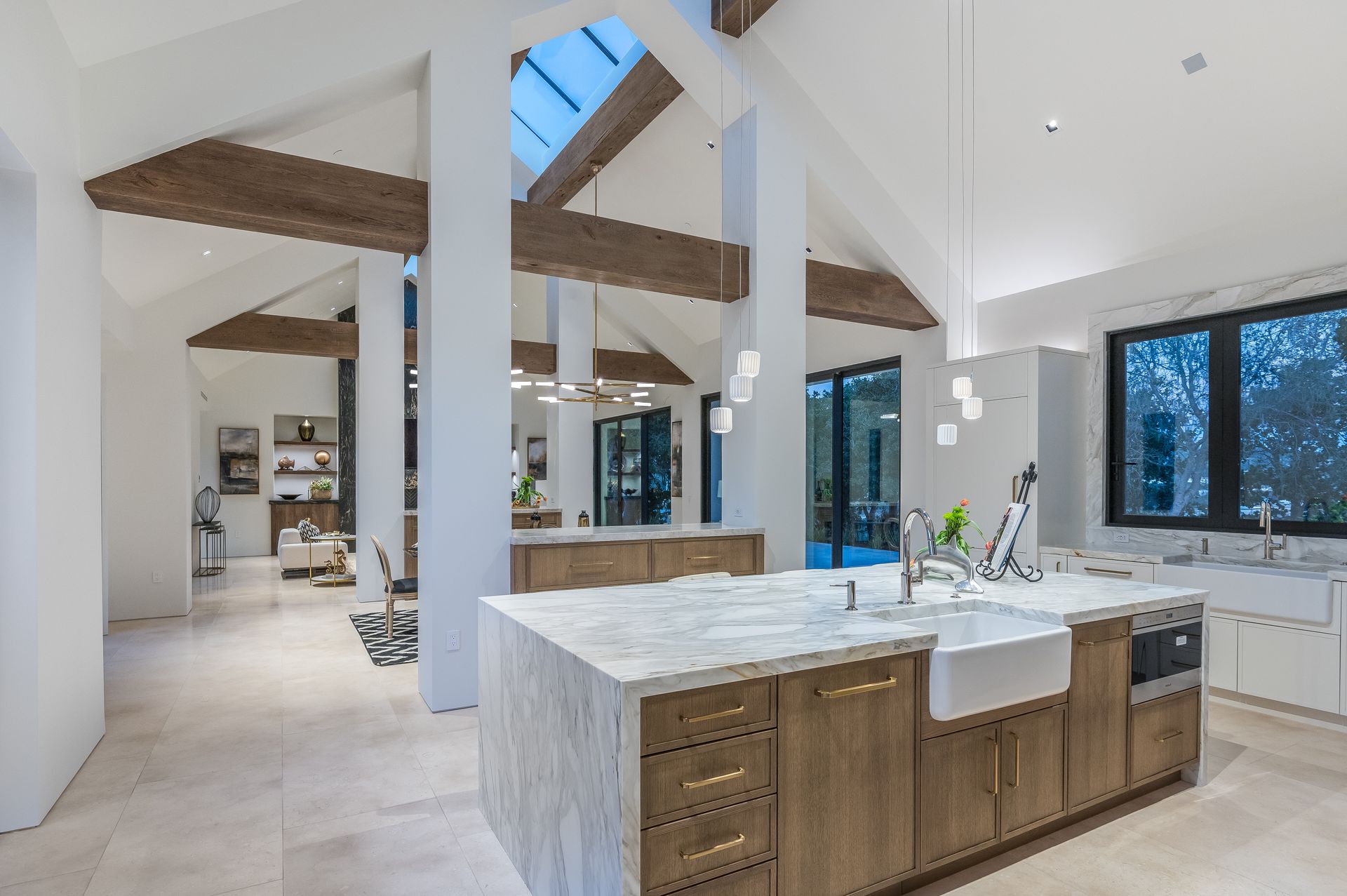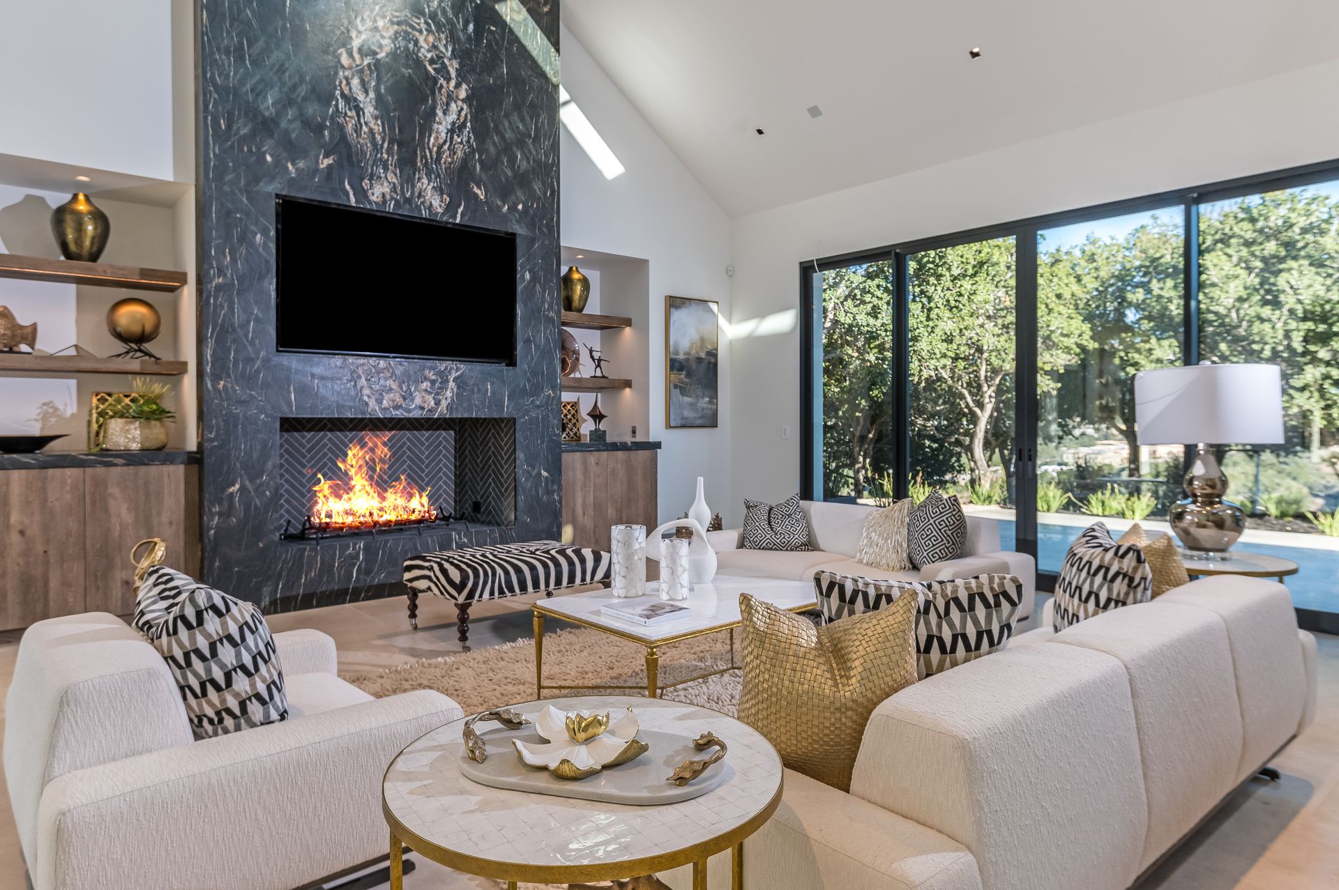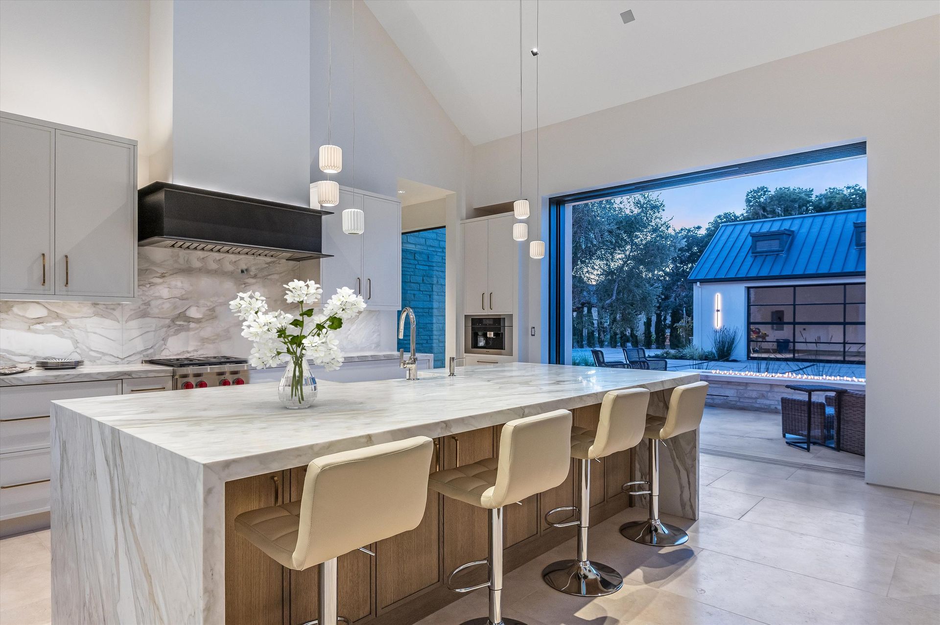 Presenting a, newly constructed one-level estate with a 4 bed and 4 bath main house and a separate guest house/ADU. There is a total of 4,834 sq. ft. of living space. Nestled behind the exclusive gates of Monterra, this residence exemplifies unparalleled quality in construction and design. Harmonizing craftsmanship and design, the property seamlessly integrates expansive windows and glass doors that capture awe-inspiring vistas of oak-dotted hills, surrounded by enchanting trees and meticulously landscaped courtyards. The main residence boasts four ensuite bedrooms, each featuring refined natural wood and stone flooring, accompanied by private patios. Honed limestone graces the primary living areas and extends seamlessly to all patios, fostering a fluid connection between indoor and outdoor spaces for an elevated entertainment experience. A generously sized fully enclosed courtyard beckons gatherings, providing an oasis of tranquility. The kitchen, showcases Calacatta marble counters and backsplash, a Wolf range, multiple Sub-Zero refrigerators/freezers, a dedicated coffee/espresso area, and wine/beverage area. For the discerning auto enthusiast, a substantial 1300-square-foot, 4-bay garage offers an ideal space to accommodate various needs.