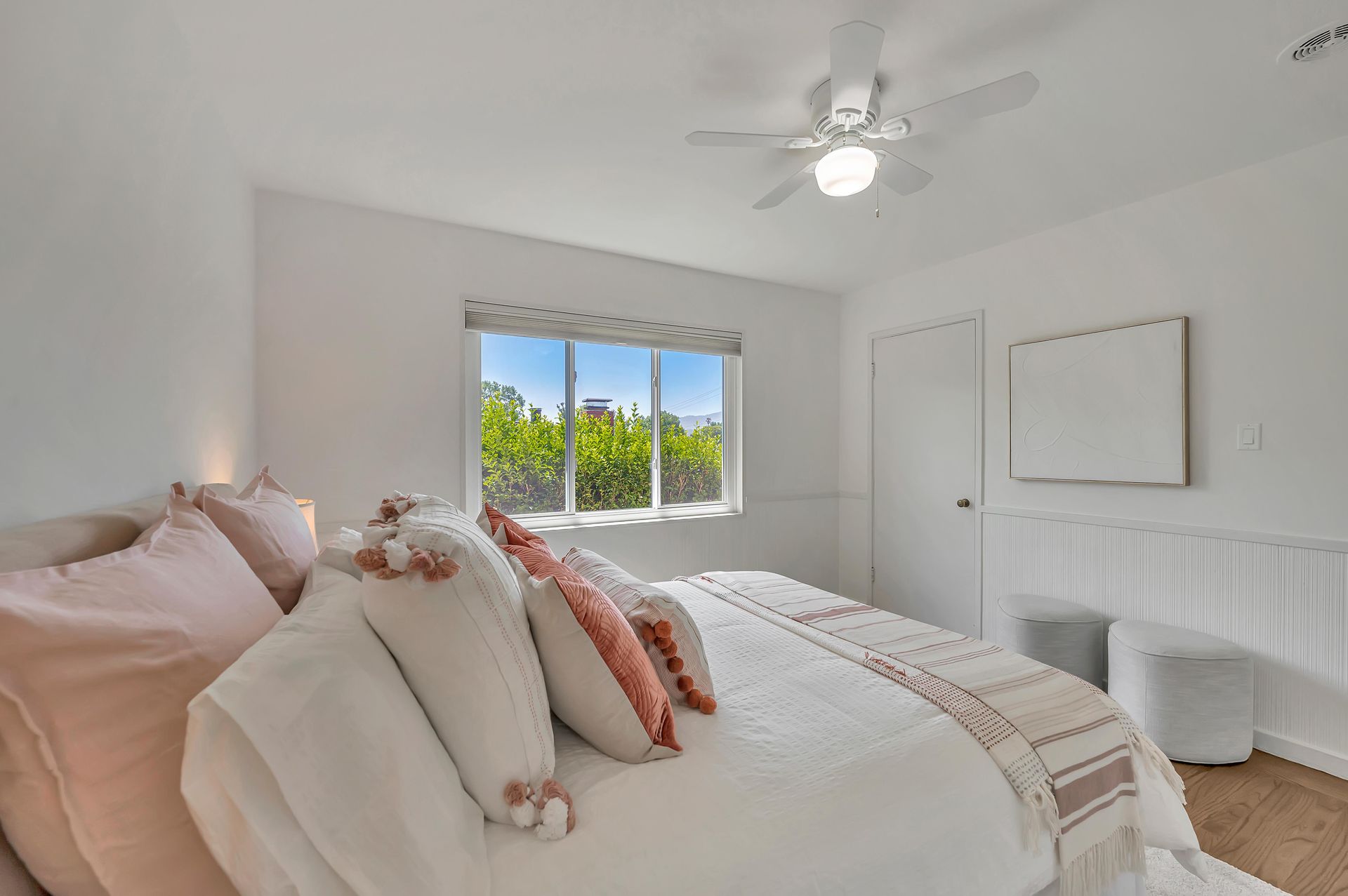 Open the French doors and enjoy entertaining and dining al fresco in the spacious backyard.