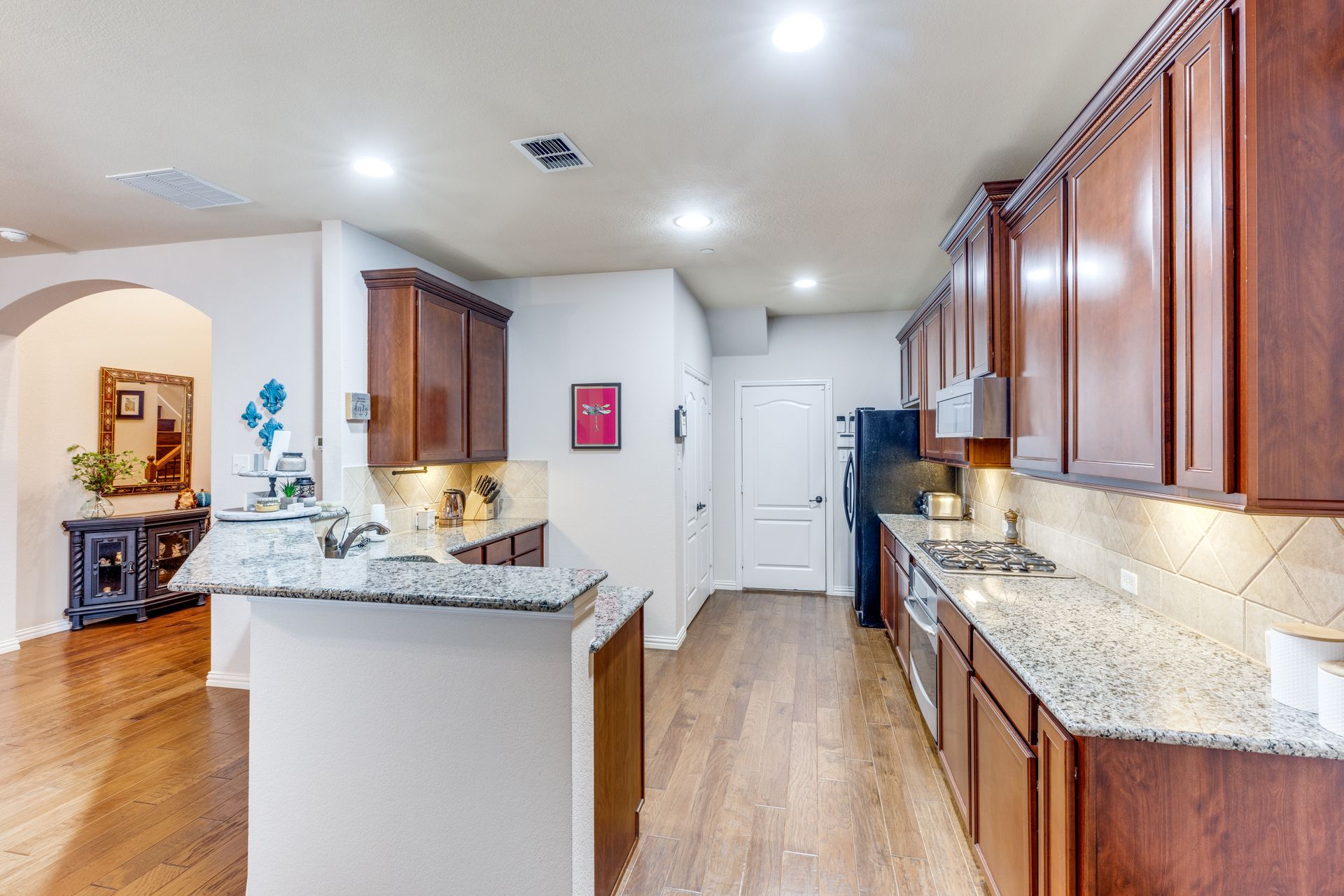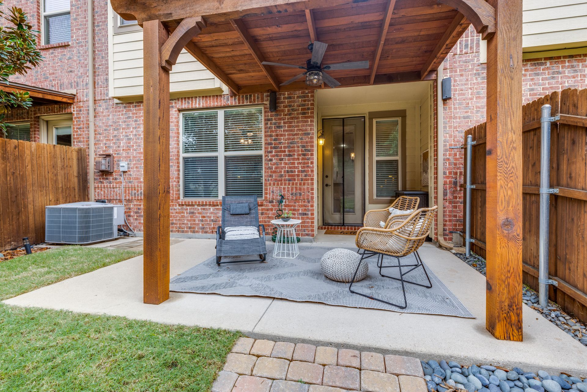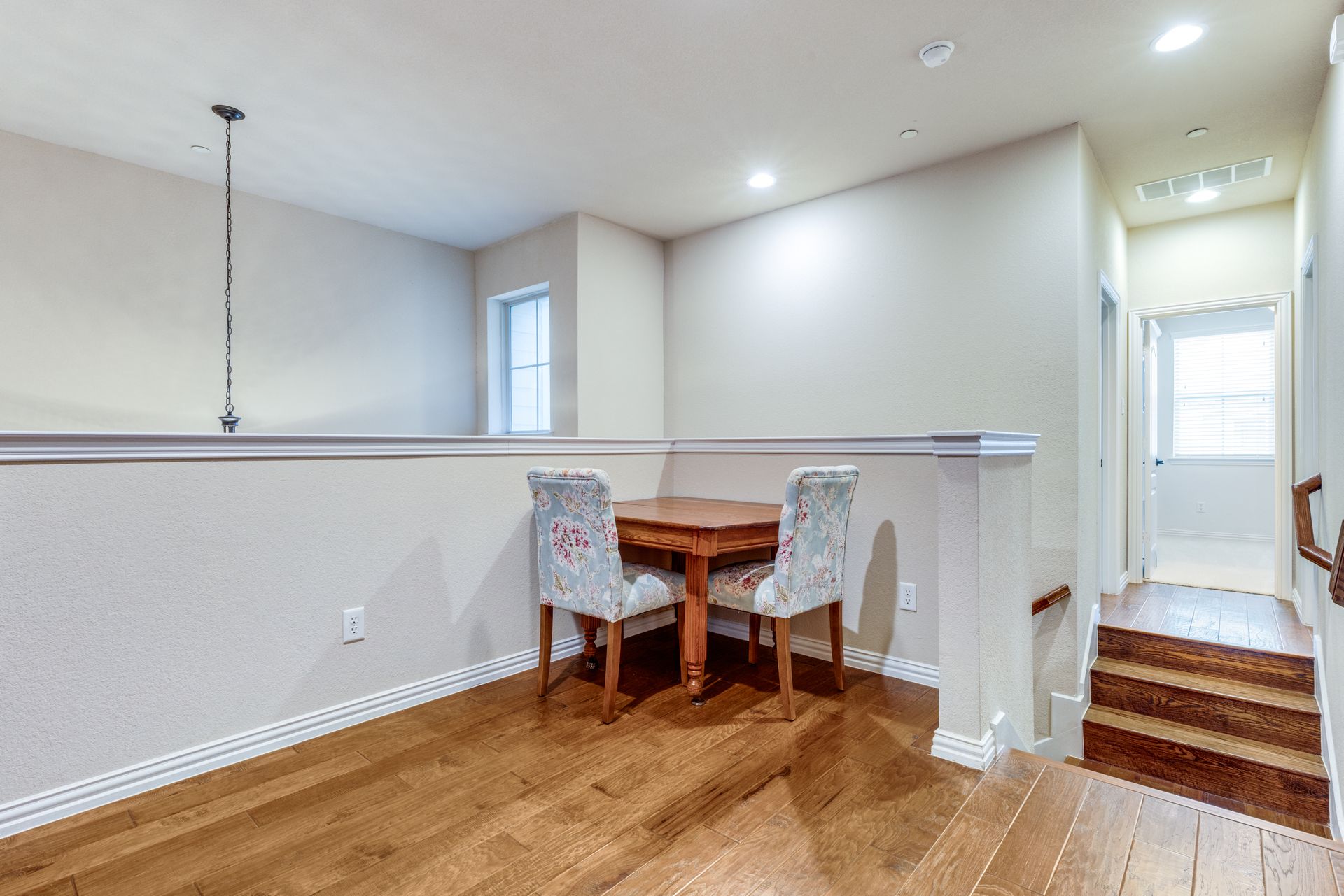 So many upgrades in this beautiful townhome conveniently located off Hedgcoxe near Custer, SH 121, 75, Watters Creek in a quiet neighborhood with a community pool and walking trails. Wood floors welcome you at the front entry and flow throughout the living area, stairs and hallway. Open-concept, eat-in kitchen with granite counters, gas range, pantry and GE Profile stainless steel appliances, open to spacious family room with gas log fireplace, perfect for cool cozy evenings. Enjoy relaxing on the covered patio that backs to quiet green space within the neighborhood. Private, spacious, second-floor primary bedroom, split from secondary bedrooms, has a large walk-in closet and ensuite bath with dual vanities, granite counters and an oversized shower. Secondary bedrooms have an adjacent full bath with dual sinks and granite counters. A versatile, second-floor bonus room could be a home office, game room, TV room, reading, sitting area and more. Laundry conveniently located upstairs near bedrooms. Plano ISD! Enjoy the community pool and amenities, nearby shopping and dining in both Allen and Plano.