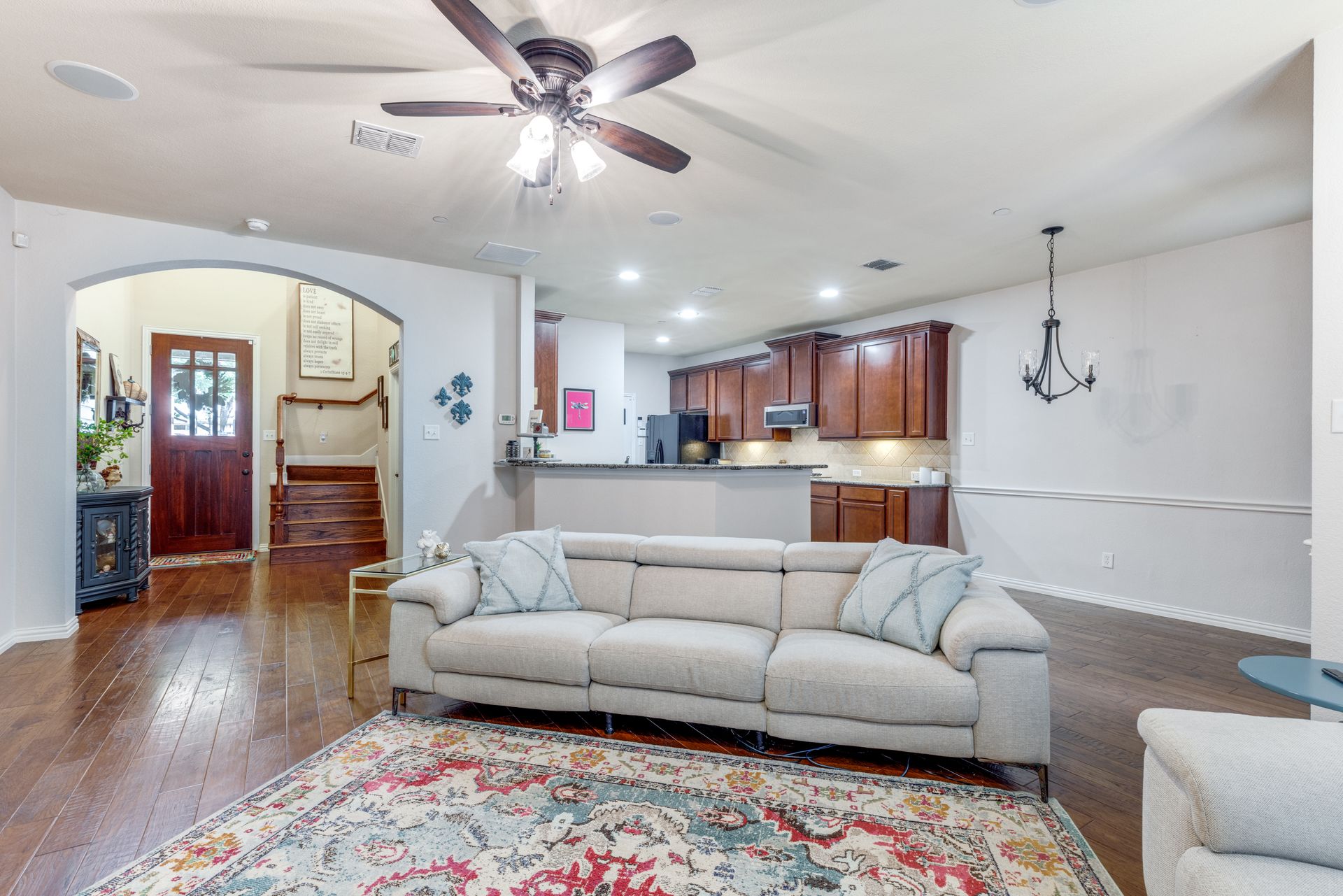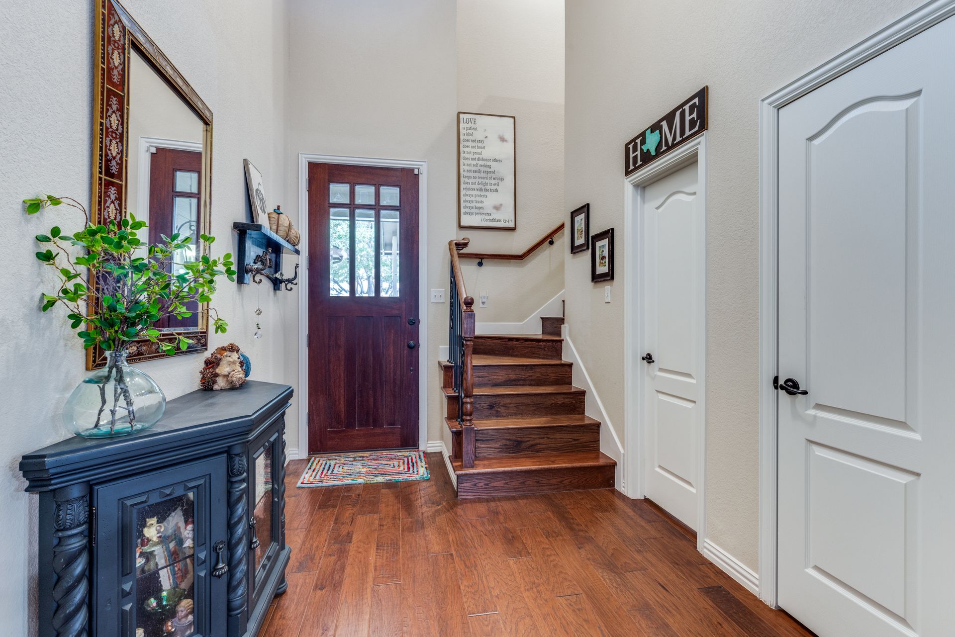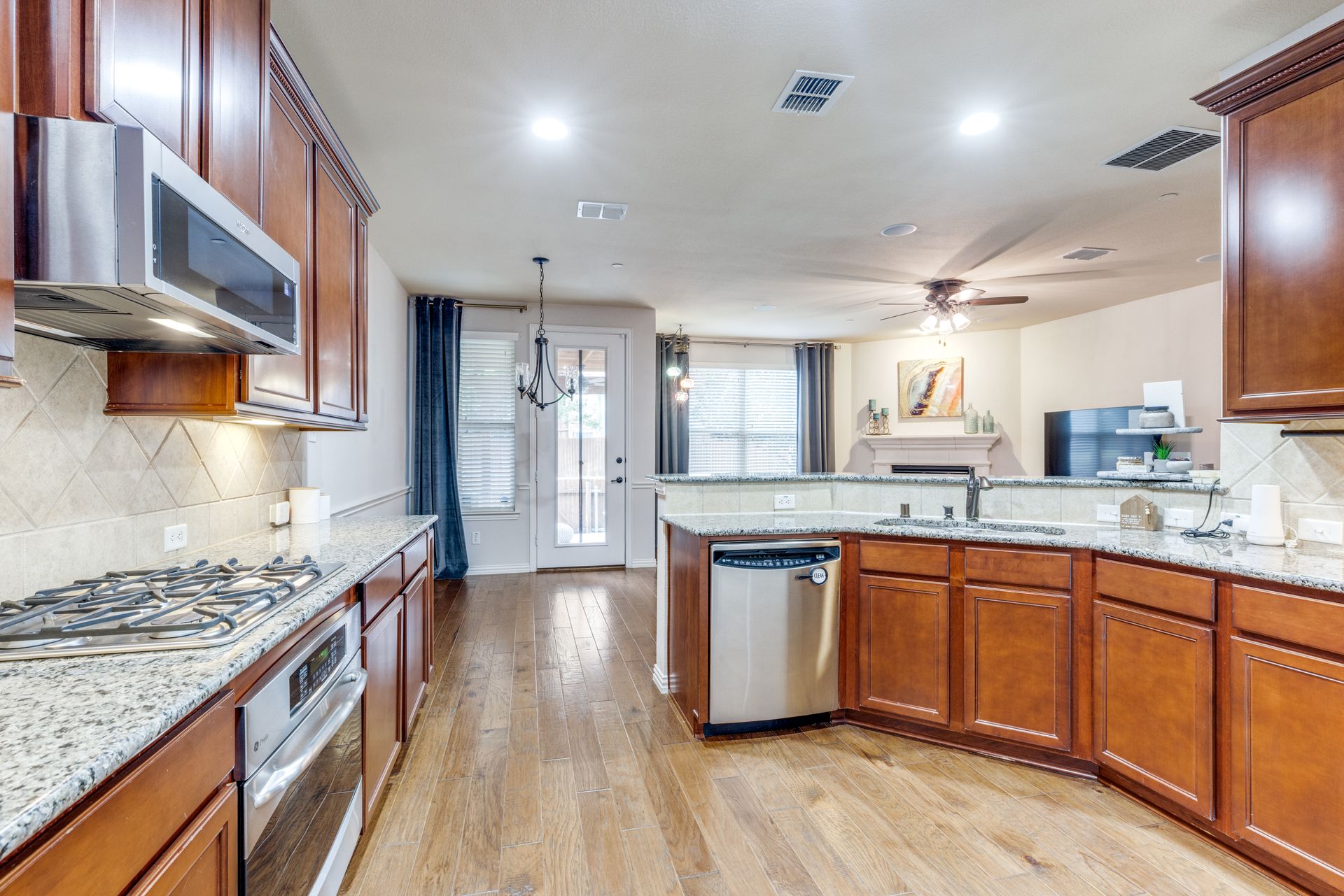 So many upgrades in this beautiful townhome conveniently located off Hedgcoxe near Custer, SH 121, 75, Watters Creek in a quiet neighborhood with a community pool and walking trails. Wood floors welcome you at the front entry and flow throughout the living area, stairs and hallway. Open-concept, eat-in kitchen with granite counters, gas range, pantry and GE Profile stainless steel appliances, open to spacious family room with gas log fireplace, perfect for cool cozy evenings. Enjoy relaxing on the covered patio that backs to quiet green space within the neighborhood. Private, spacious, second-floor primary bedroom, split from secondary bedrooms, has a large walk-in closet and ensuite bath with dual vanities, granite counters and an oversized shower. Secondary bedrooms have an adjacent full bath with dual sinks and granite counters. A versatile, second-floor bonus room could be a home office, game room, TV room, reading, sitting area and more. Laundry conveniently located upstairs near bedrooms. Plano ISD! Enjoy the community pool and amenities, nearby shopping and dining in both Allen and Plano.