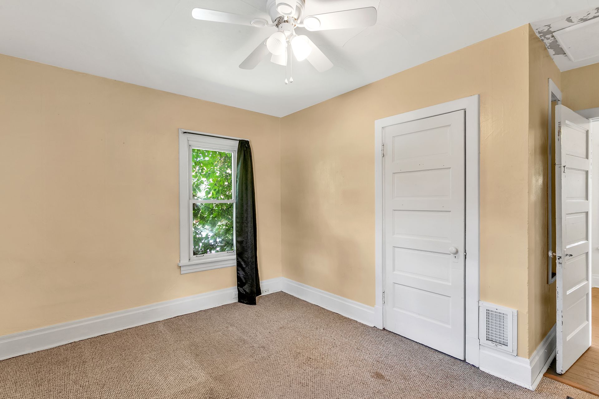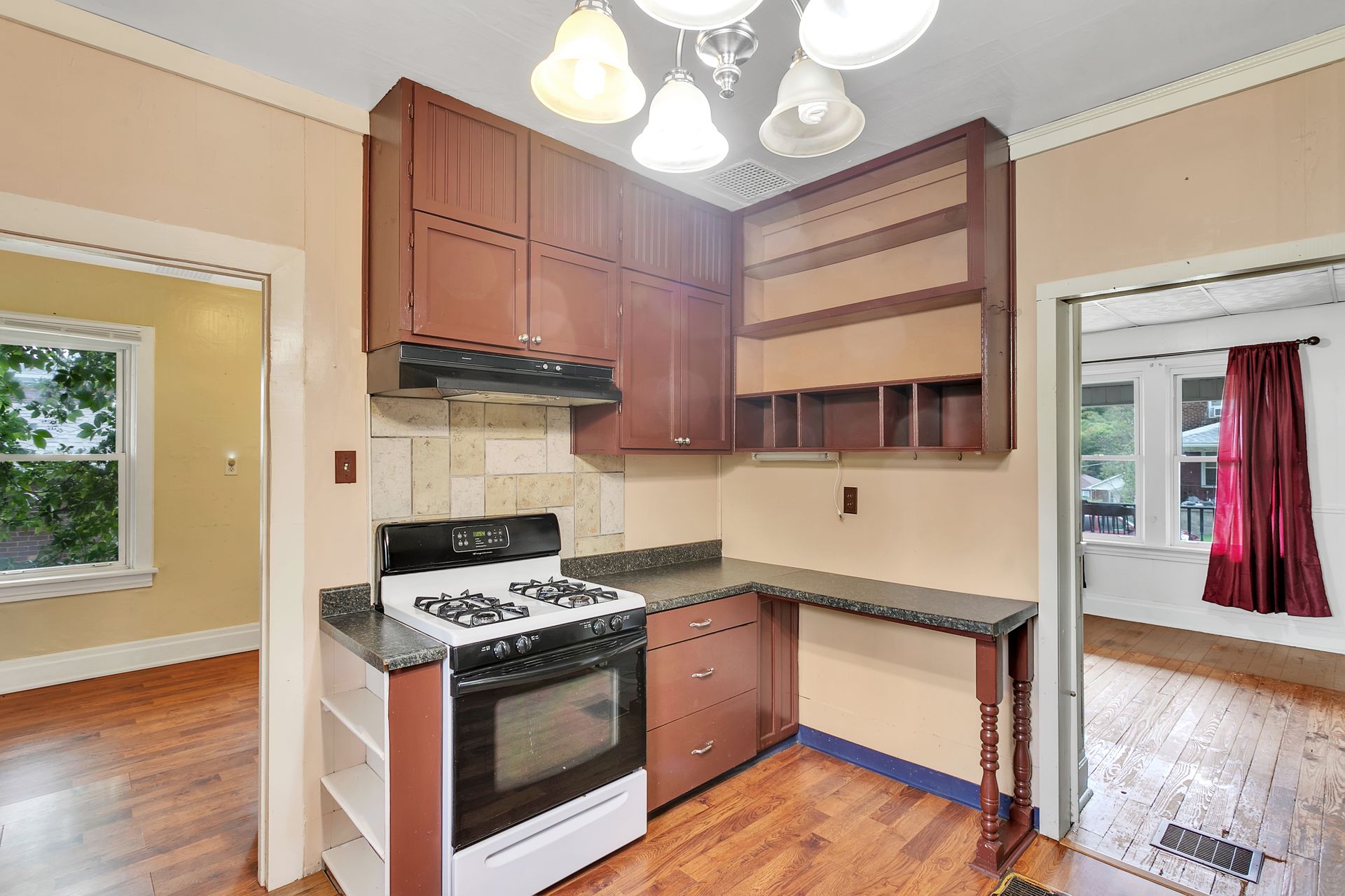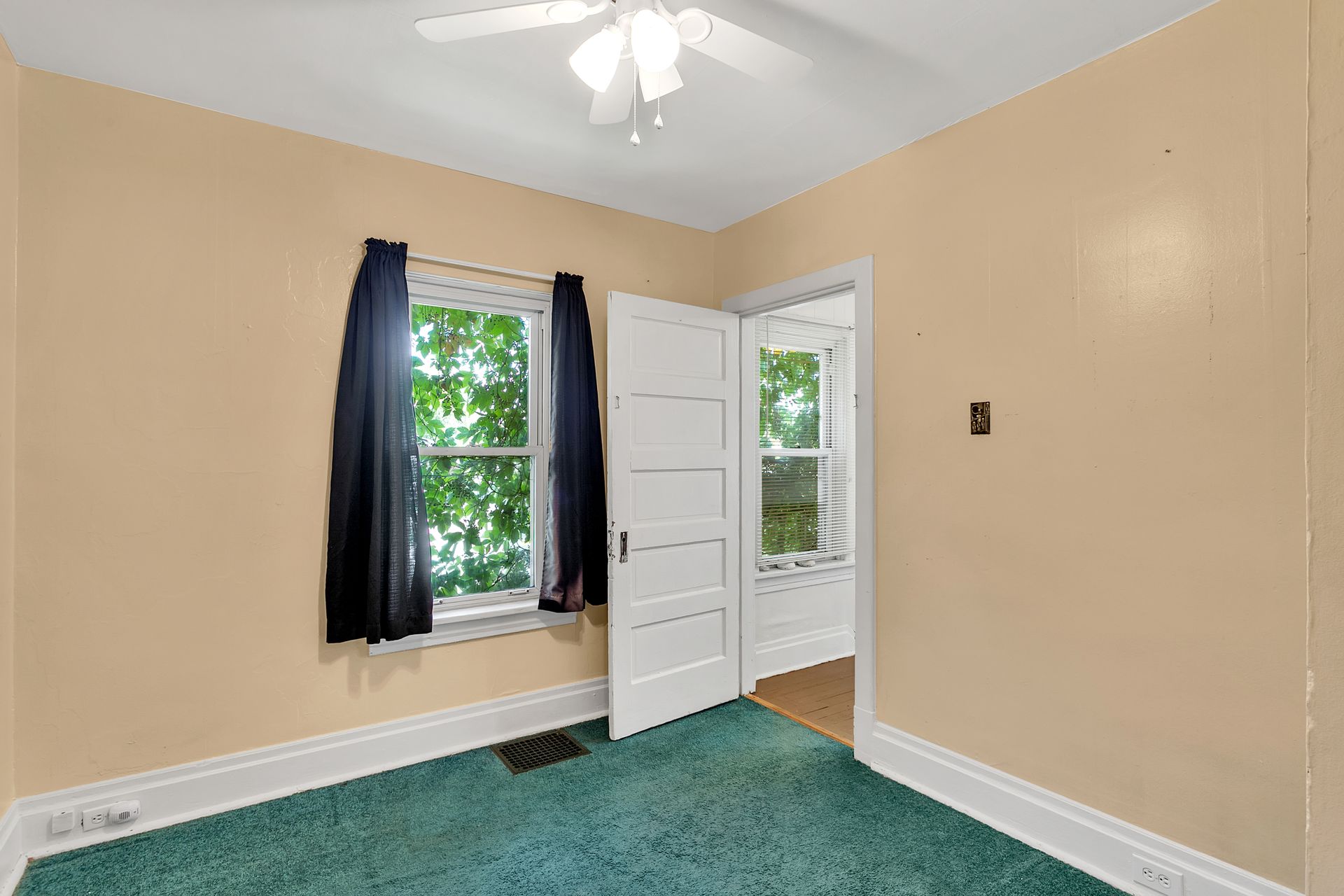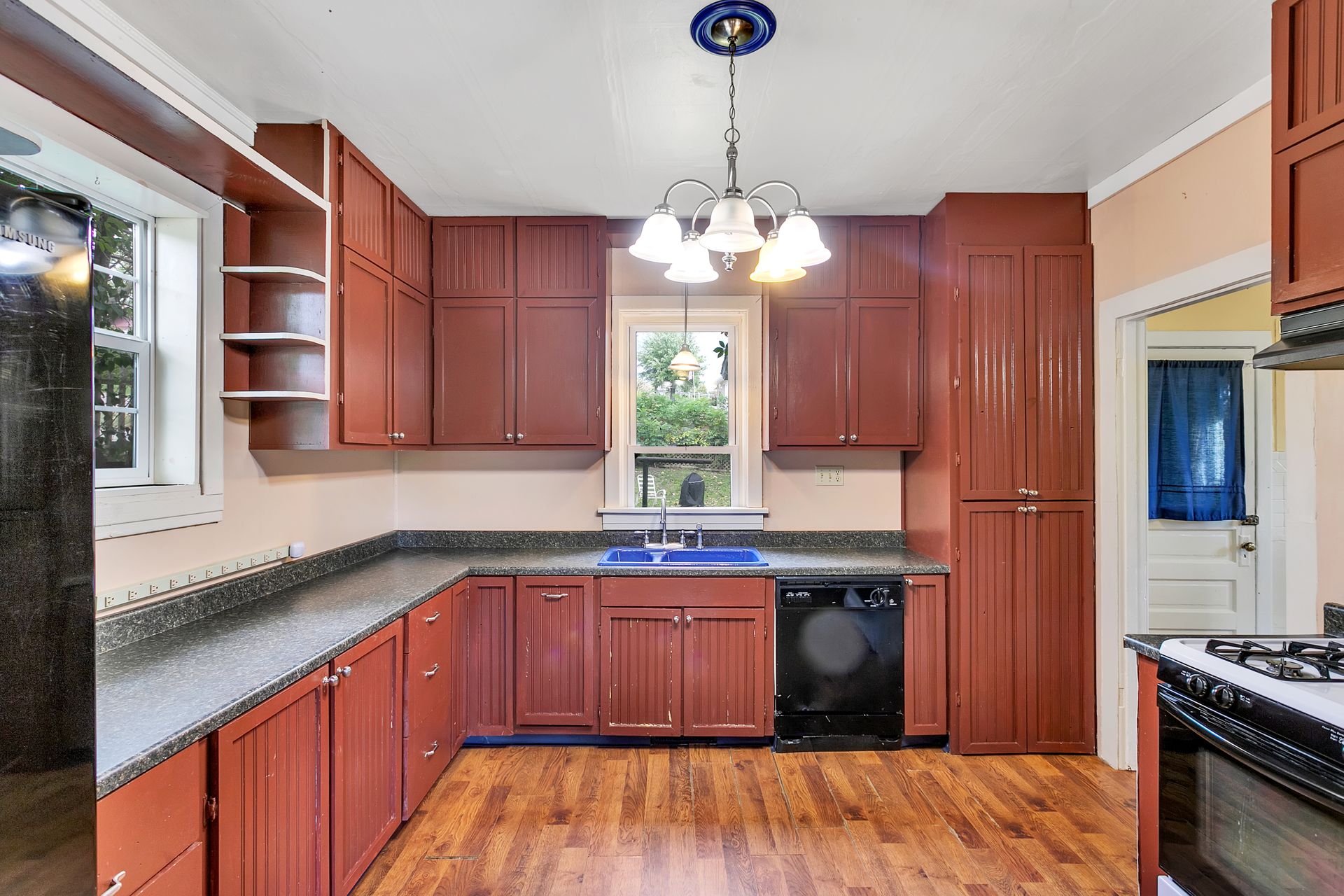 This all-brick home sits on a fenced-in corner lot with two spaces for off-street parking. A covered front porch welcomes you into the spacious foyer with beautiful original woodwork and hardwood floors. The expansive kitchen will please any cook with an abundance of cabinets and counter space plus all appliances, including a refrigerator, gas stove/oven and dishwasher. There are three nice-sized bedrooms and one full and one half bath. The full basement features exterior access. A dryer and shed are included. A home warranty is included as well.
