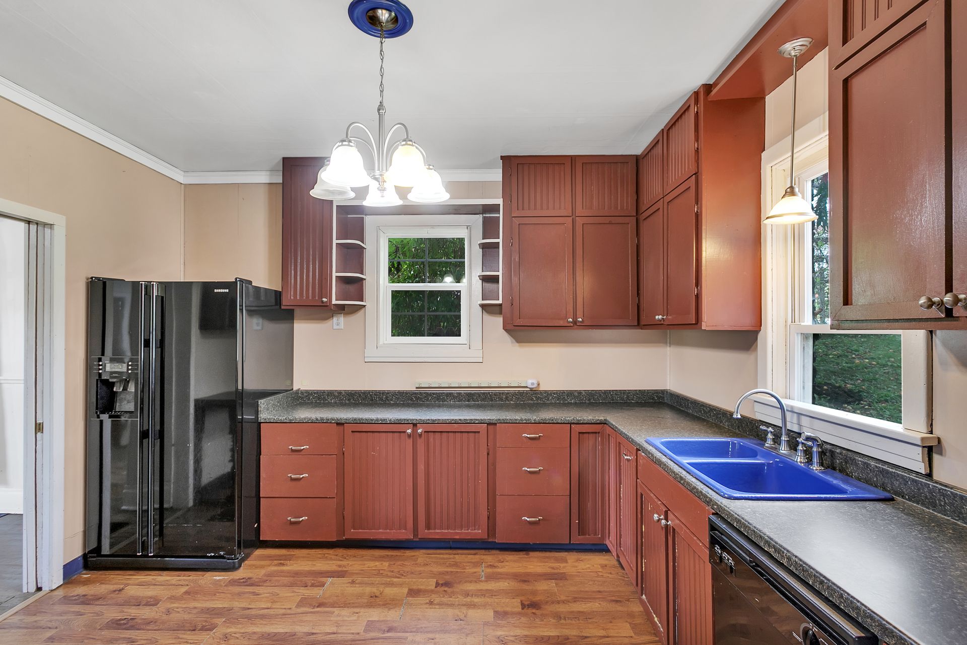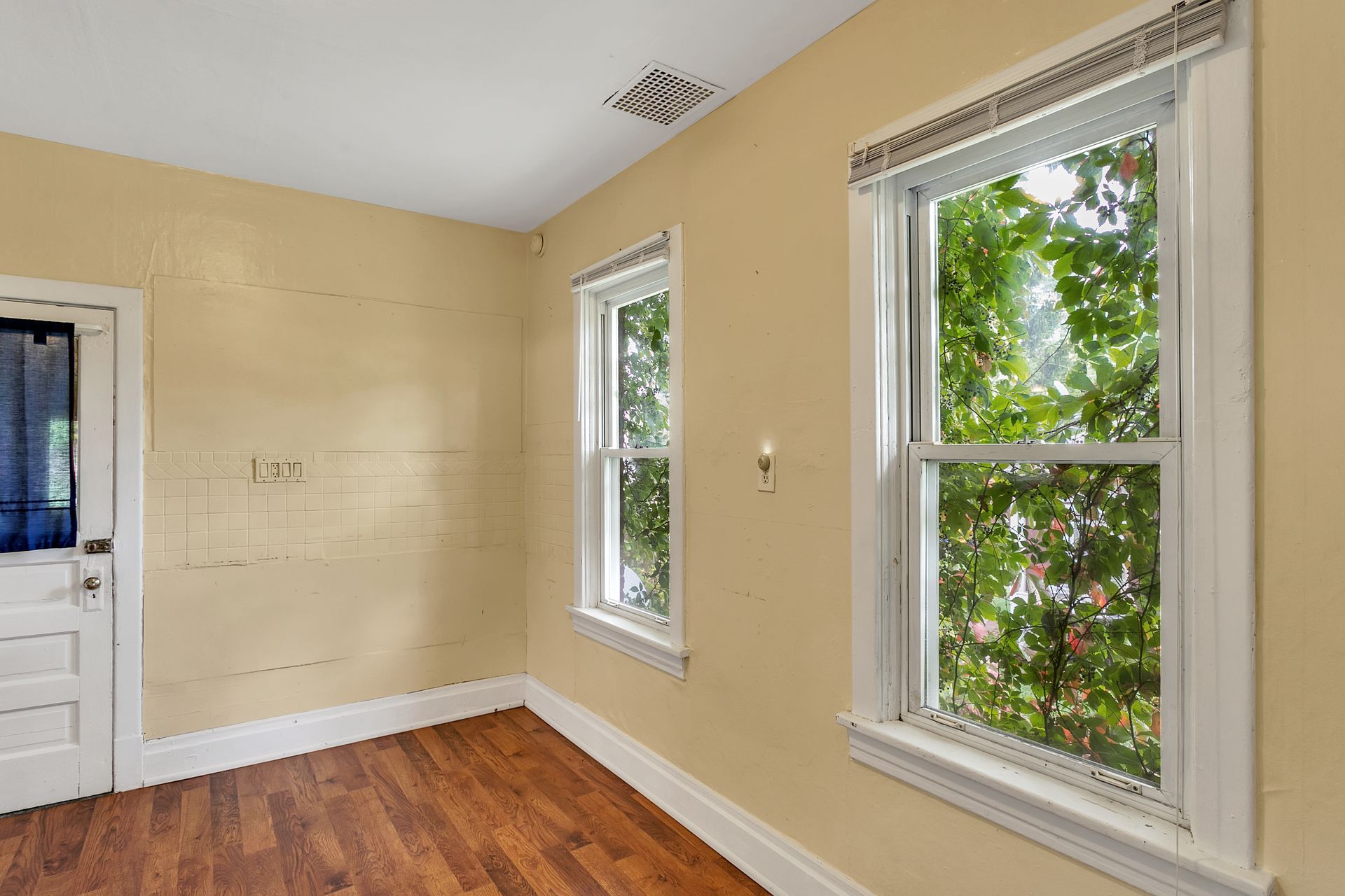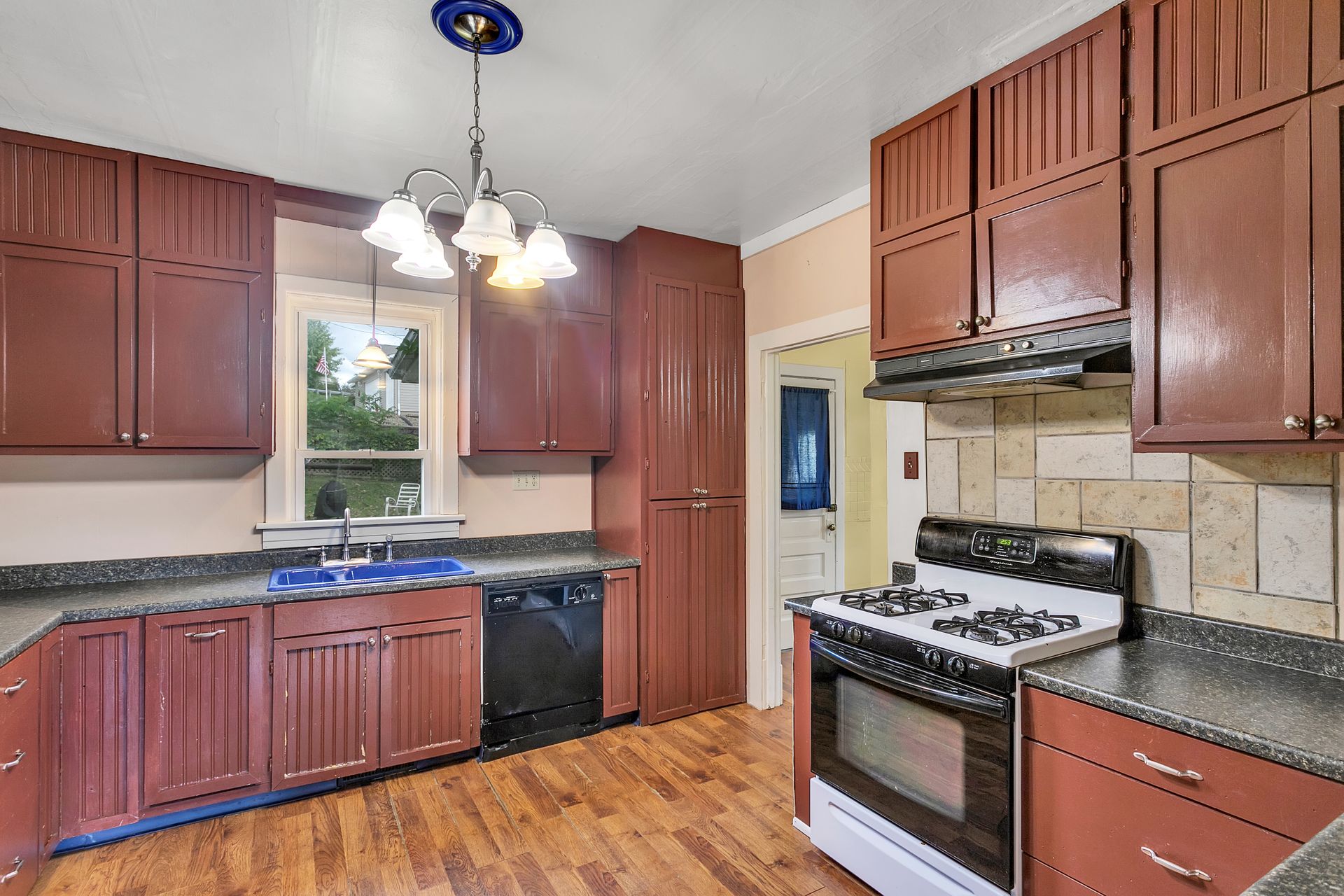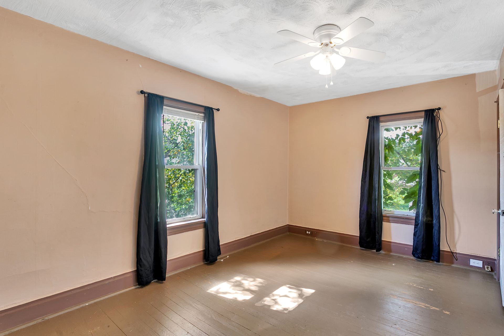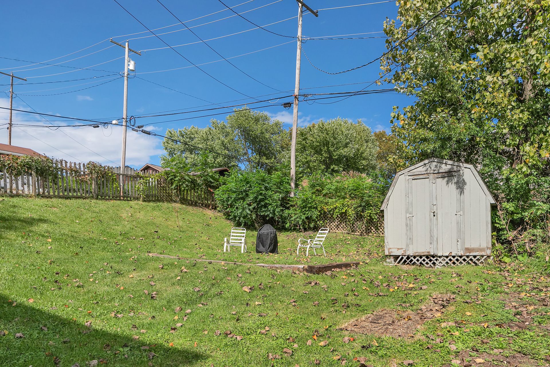 This all-brick home sits on a fenced-in corner lot with two spaces for off-street parking. A covered front porch welcomes you into the spacious foyer with beautiful original woodwork and hardwood floors. The expansive kitchen will please any cook with an abundance of cabinets and counter space plus all appliances, including a refrigerator, gas stove/oven and dishwasher. There are three nice-sized bedrooms and one full and one half bath. The full basement features exterior access. A dryer and shed are included. A home warranty is included as well.