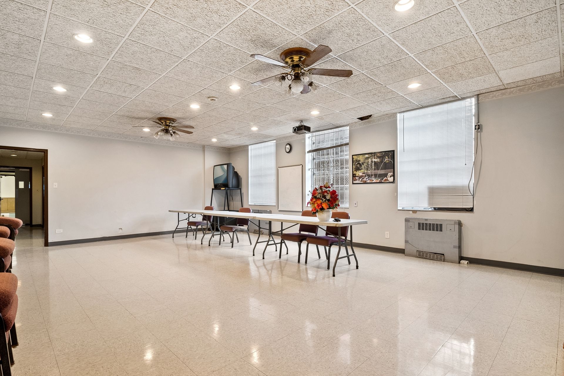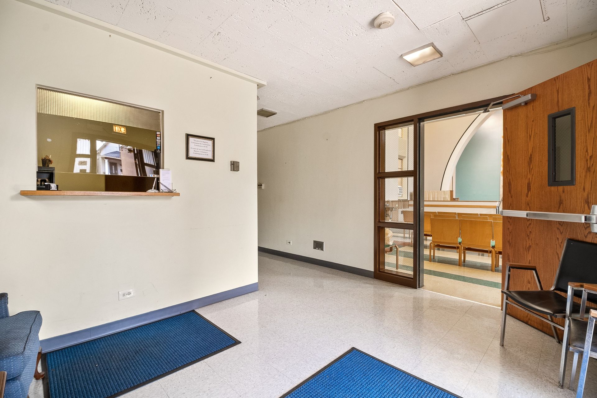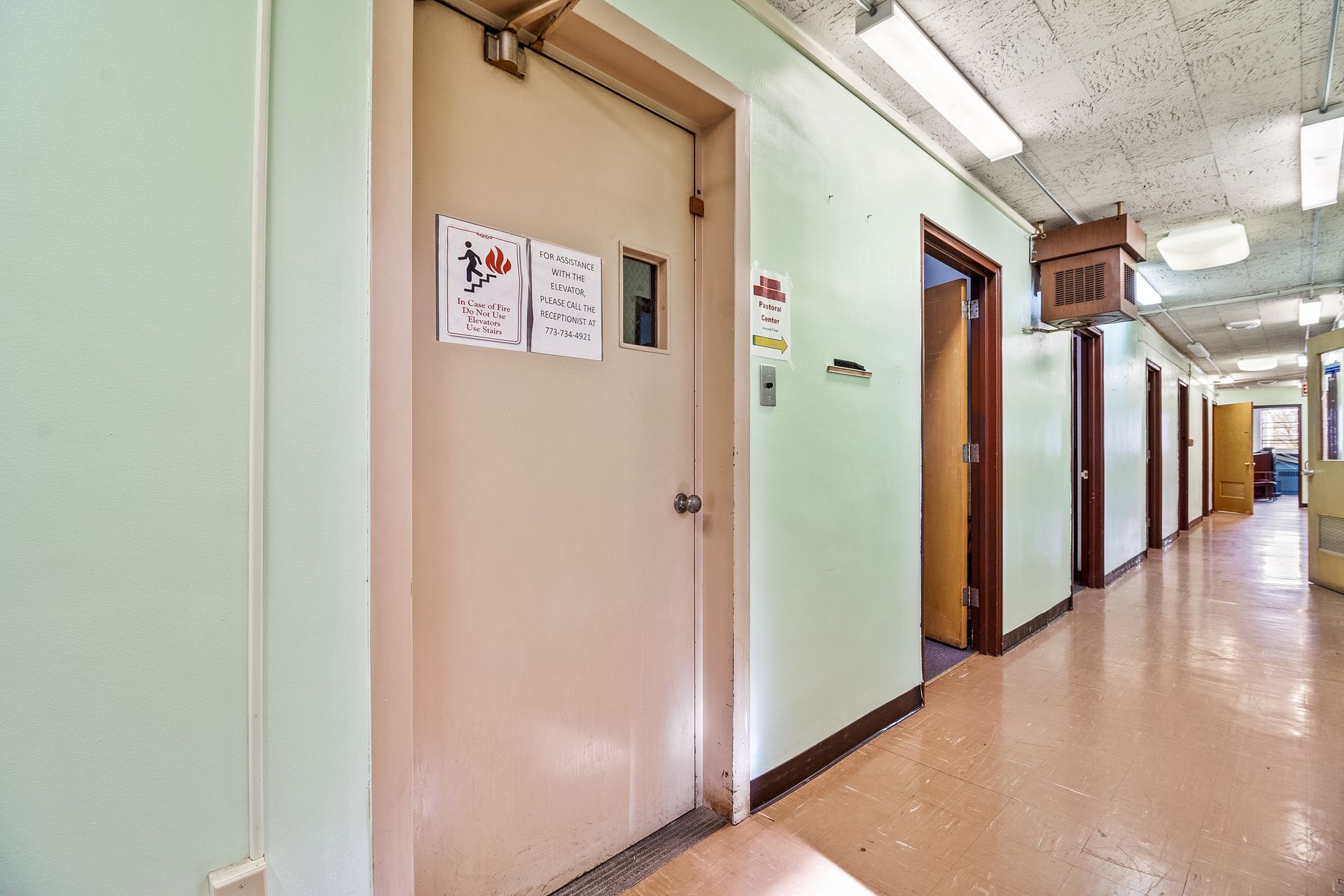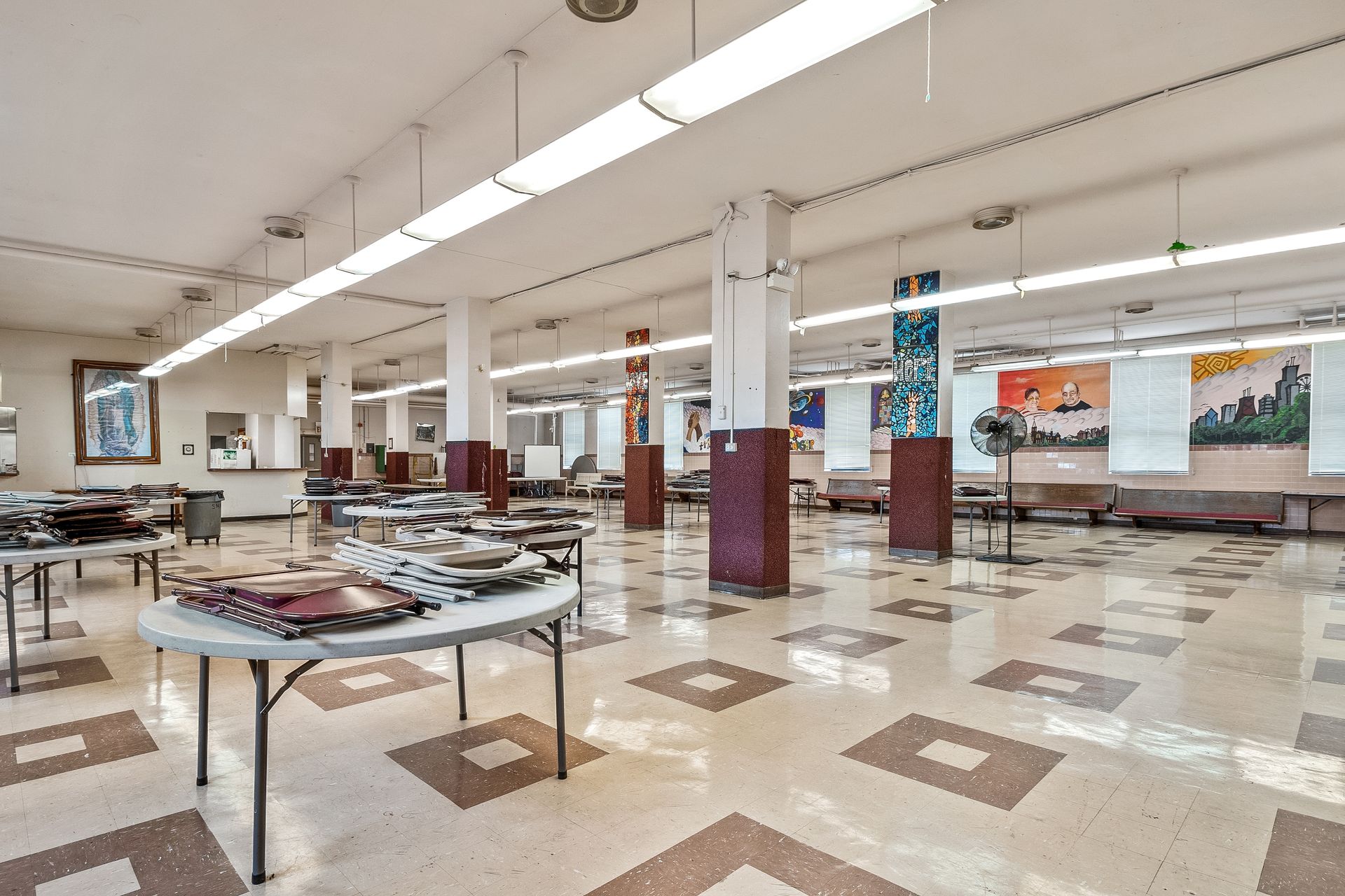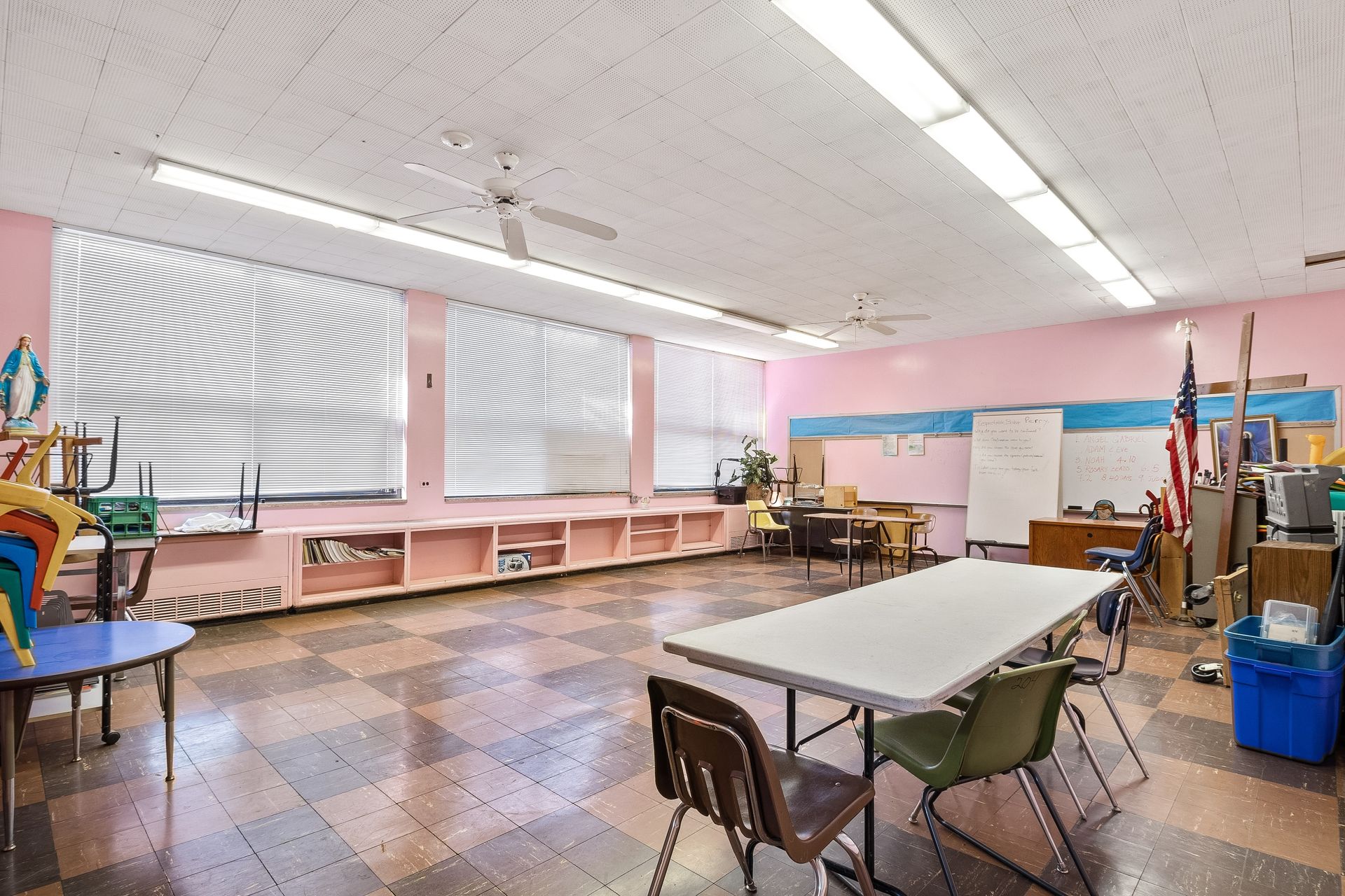The former St. Michael Catholic school is a three-story building with 12 classrooms, two multi-stall bathrooms, a basement food preparation area, and a lunchroom/recreation hall. The one-story school annex has three classrooms, two multi-stall bathrooms, and a food preparation area.