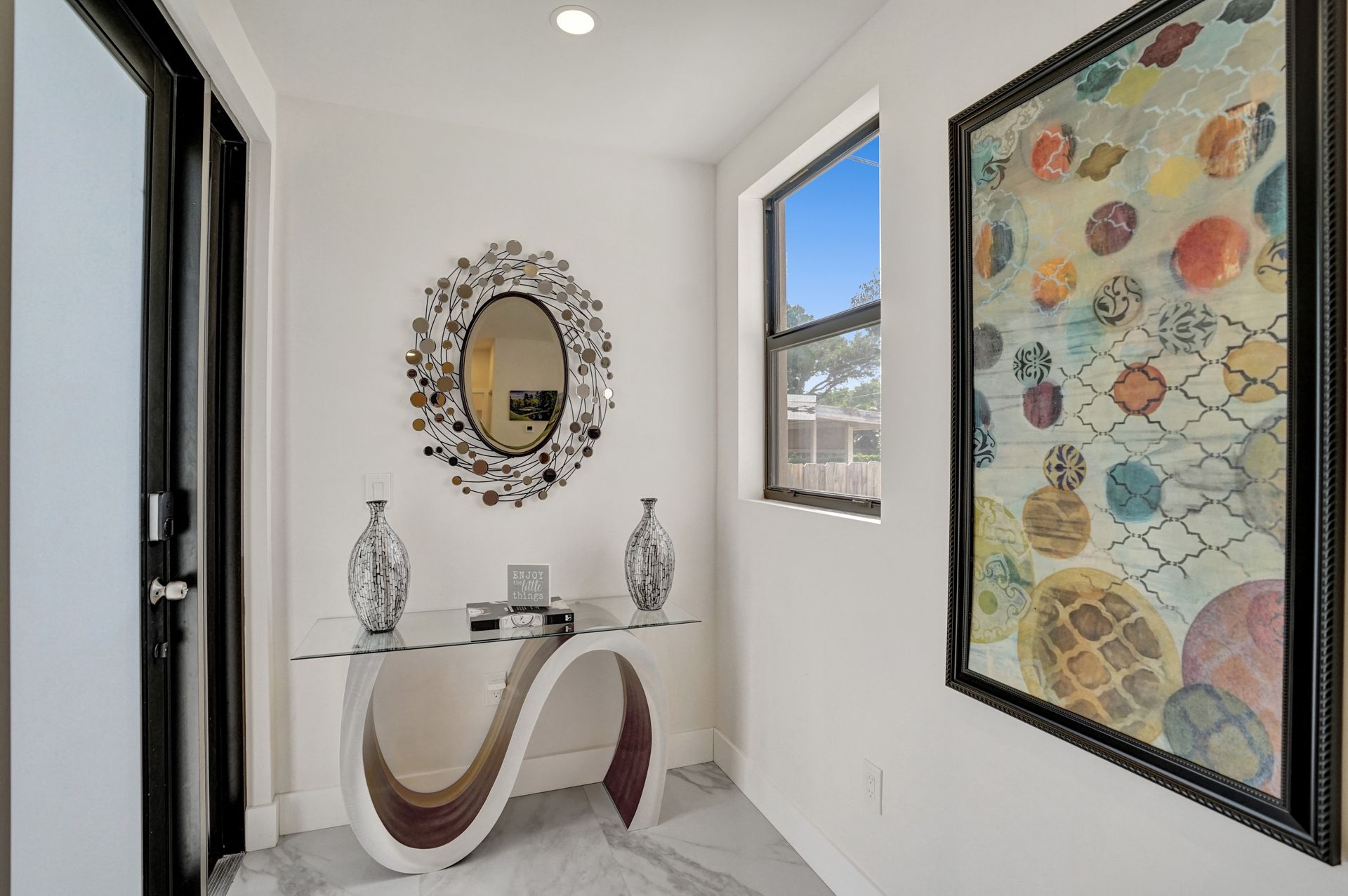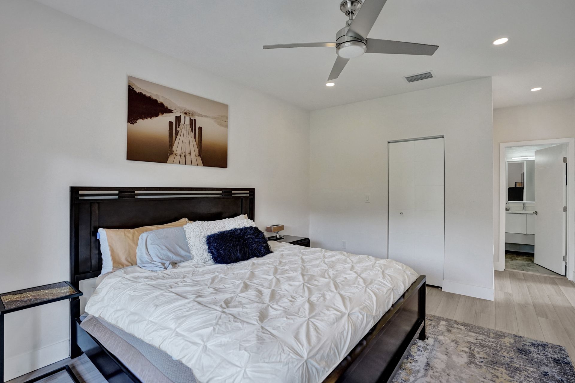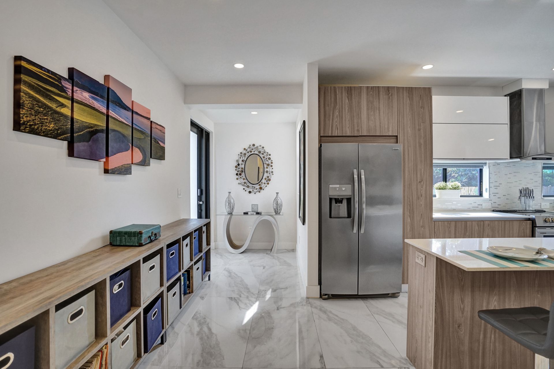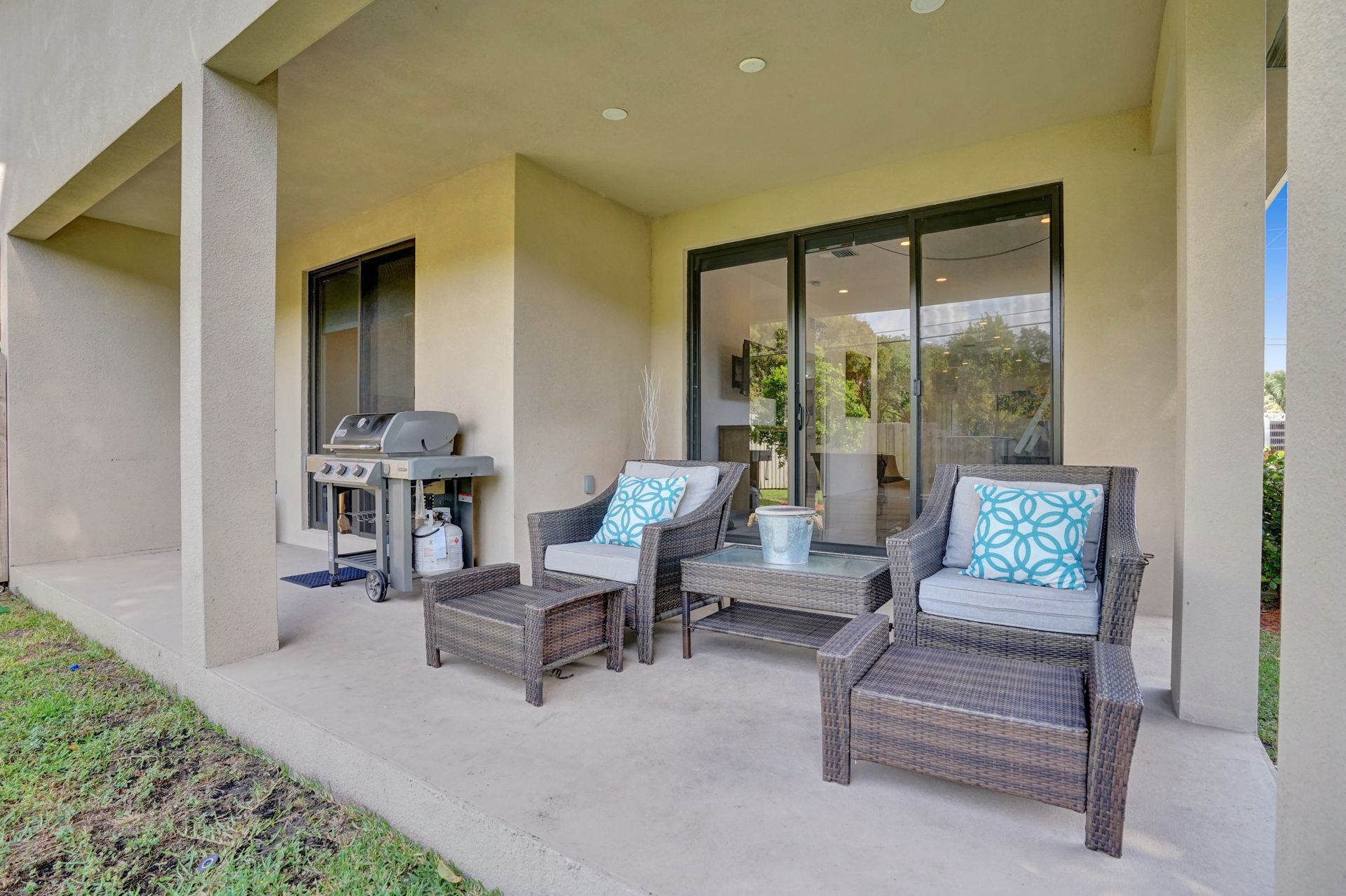 Some of the home's highlights include 10' ceilings, 24x48 porcelain tile in main living area, plank tile in bedrooms, LED lighting, SS appliances, wine cooler, counter bar, walk-in closets and laundry room. European custom closets throughout along with quartz countertops. Impact windows and doors along with one-car garage. The lot is completely fenced-in with plenty of privacy. There's room for pets, a pool or playground. Covered patio to grill & chill.