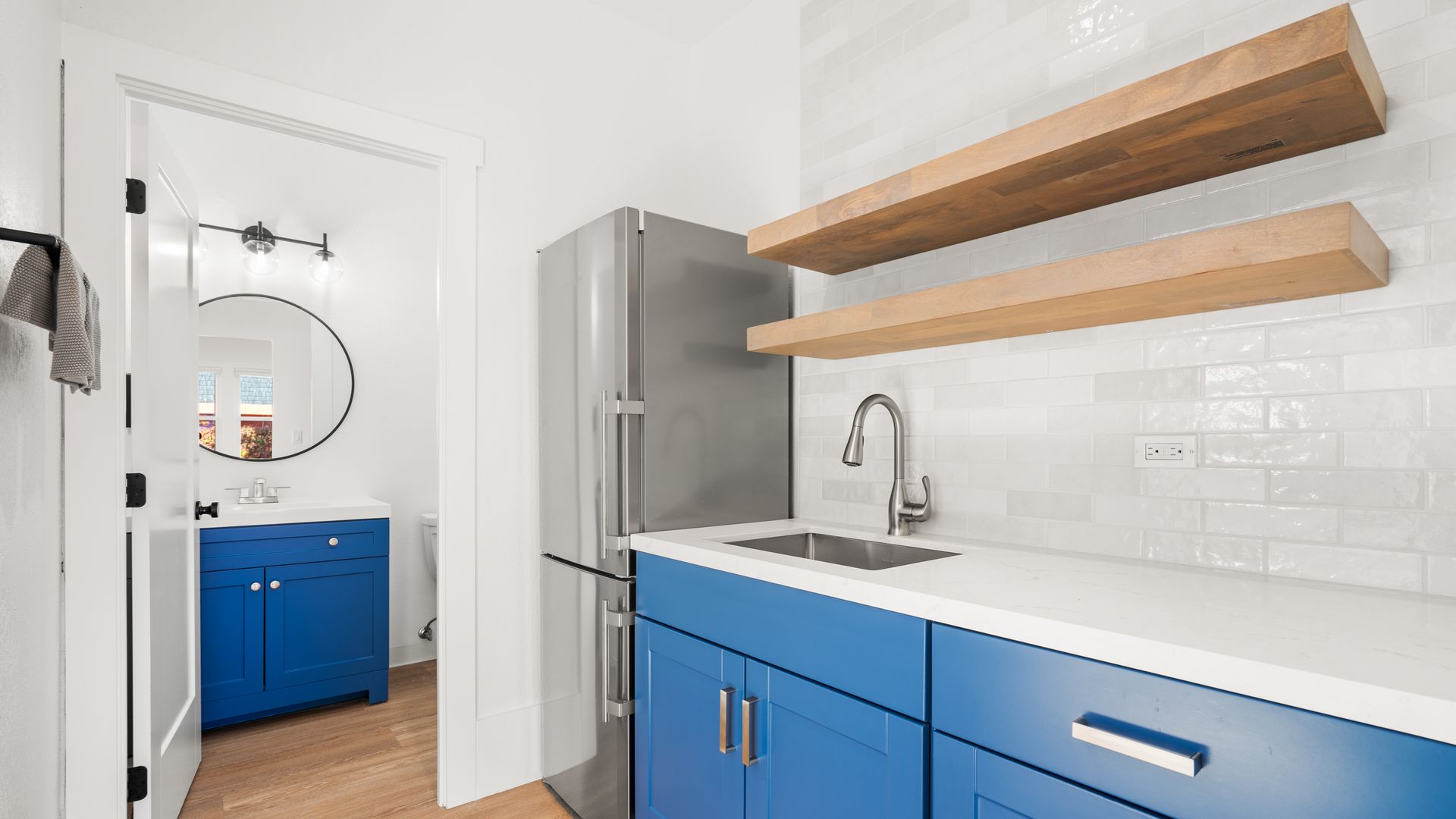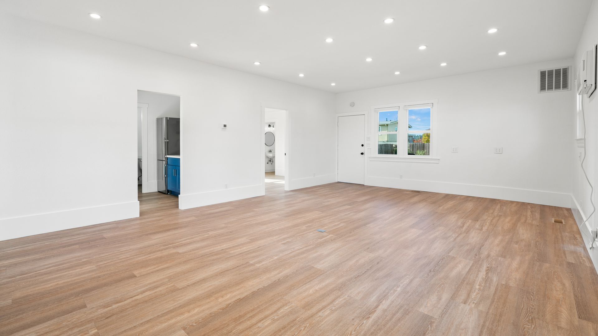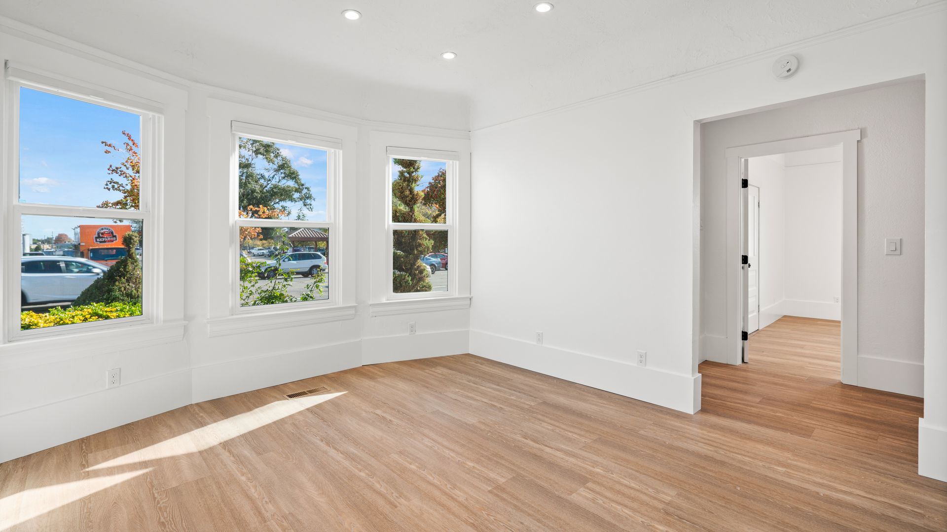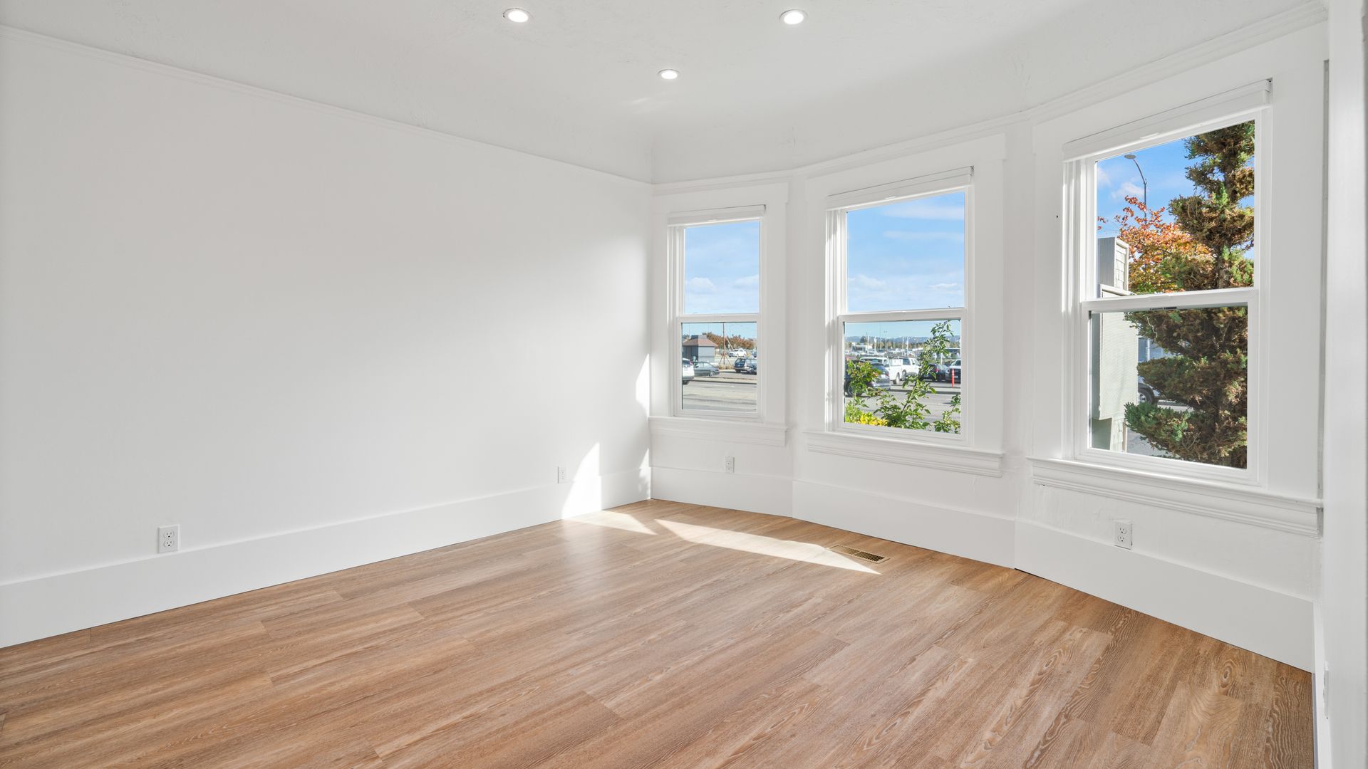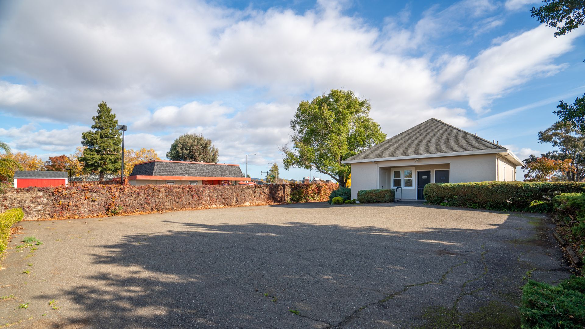 Smack dab in the center of Petaluma, situated close to everything you could ask for! Ready for work and play? You’ll be hard pressed to find anything you won’t love here. The manicured shrubbery lines the path to the covered porch and inside where you’ll find laminate flooring and recessed lighting throughout. Fresh paint inside and out makes everything shine. A spacious front-facing room features a bay window filled with natural light and coved ceiling. An additional front-facing room with porch access sits across and provides a door to the gorgeous kitchenette with quartz countertops, Liebherr fridge, shelving, and tile wall. A half bath with modern vanity completes that space. Venture to the main room surrounded in windows and enjoying a wall A/C unit and tons of power outlet access including in the center of the floor. A final backroom with exterior access and half bath rounds out the interior. The back of the building includes utility closet and locked storage as well as tons of private parking spaces! The ideal location, home to Cliff King’s insurance business for over 30 years, makes this an incredibly unique opportunity ready for new owners!
