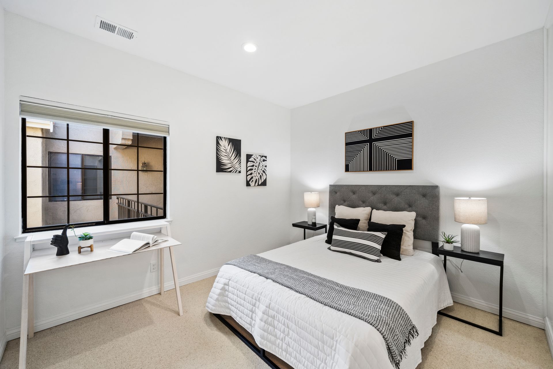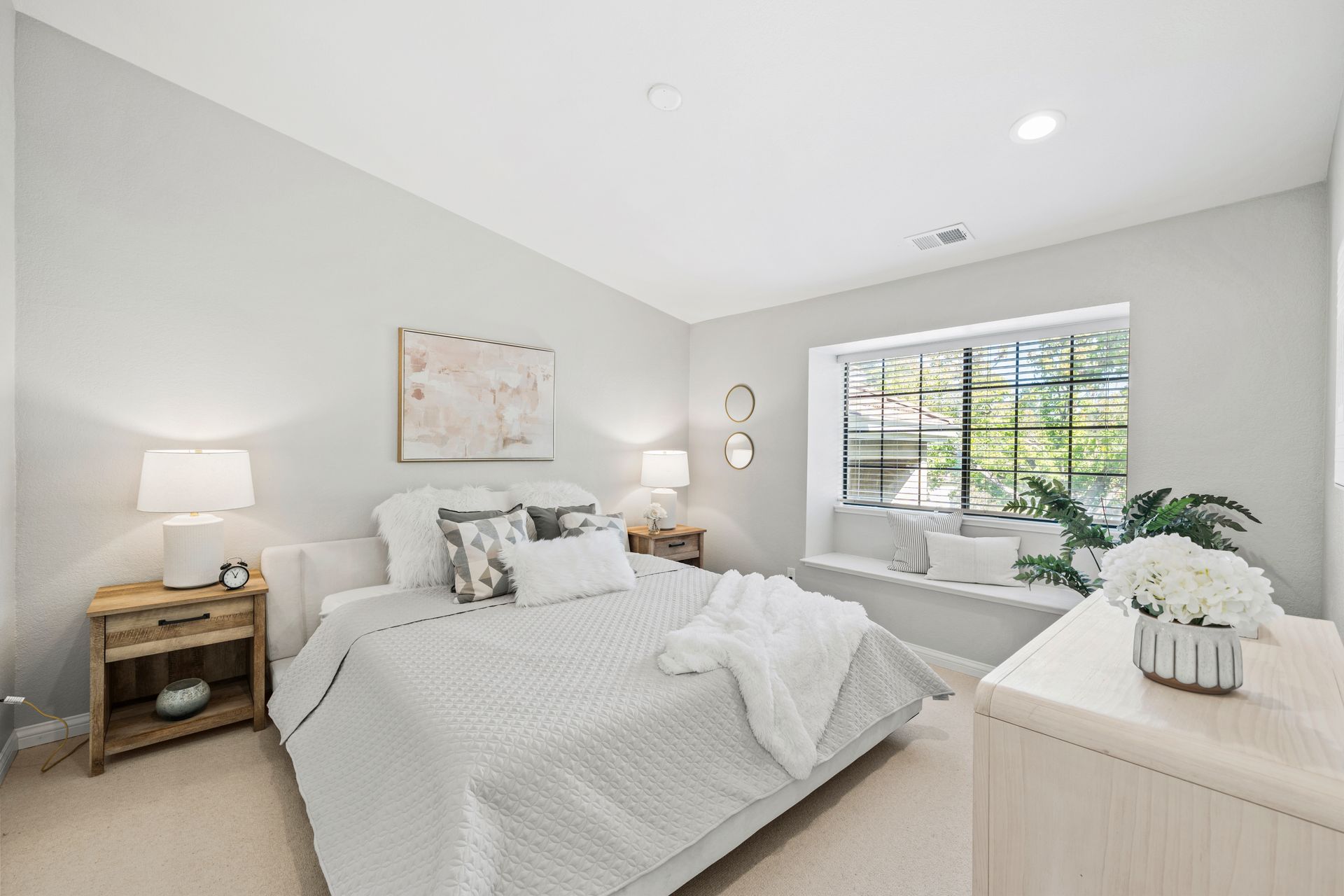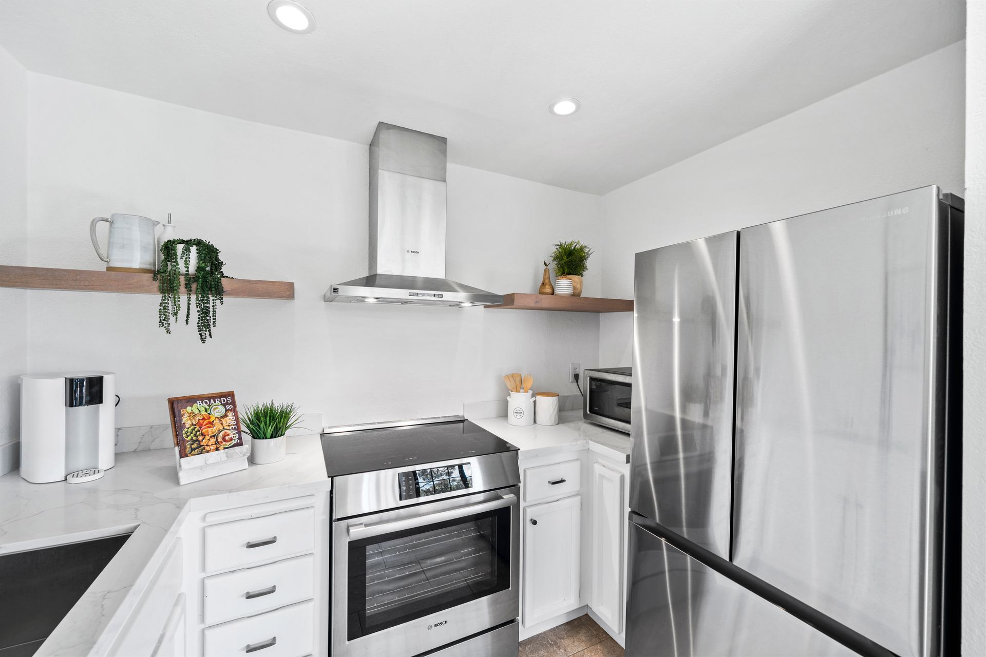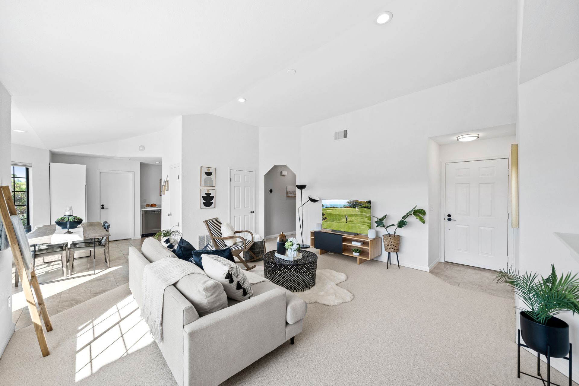 This is a very special opportunity to live in a gated resort-like community, in an updated unit (approximately 1,250-square-feet) with INCREDIBLE VIEWS of the Las Trampas Ridgeline and Greenbelt! The captivating views greet you upon entering and immediately set the tone for peace and calm. The vaulted ceilings and neutral color scheme let the outdoors come in and fill the rooms with the lush greenery of the hills and nature. The large deck is ideal for relaxing and soaking in the sun while you enjoy the peaceful scenery. With impeccable upgrades and renovations and ideally located in the community close to the pools, lake, tennis courts, picnic area and paths, it is impossible not to fall in love. The kitchen features quartz countertops, Bosch stainless steel induction stove/hood, Miele dishwasher, Samsung French door refrigerator, built-in pantry and opens to the spacious dining area. The primary suite has recently installed blinds and a fully remodeled bath with Pottery Barn vanity. There are two additional bedrooms and a hall bath. This “smart” home features EV plug in garage, “smart” smoke alarms, front and back door locks, thermostat, video doorbell and Wi-Fi garage opener! Award-winning San Ramon schools, Bishop Ranch Business Park, City Center, Costco, shopping and dining are all in close proximity, making this a super convenient location to live and play!
