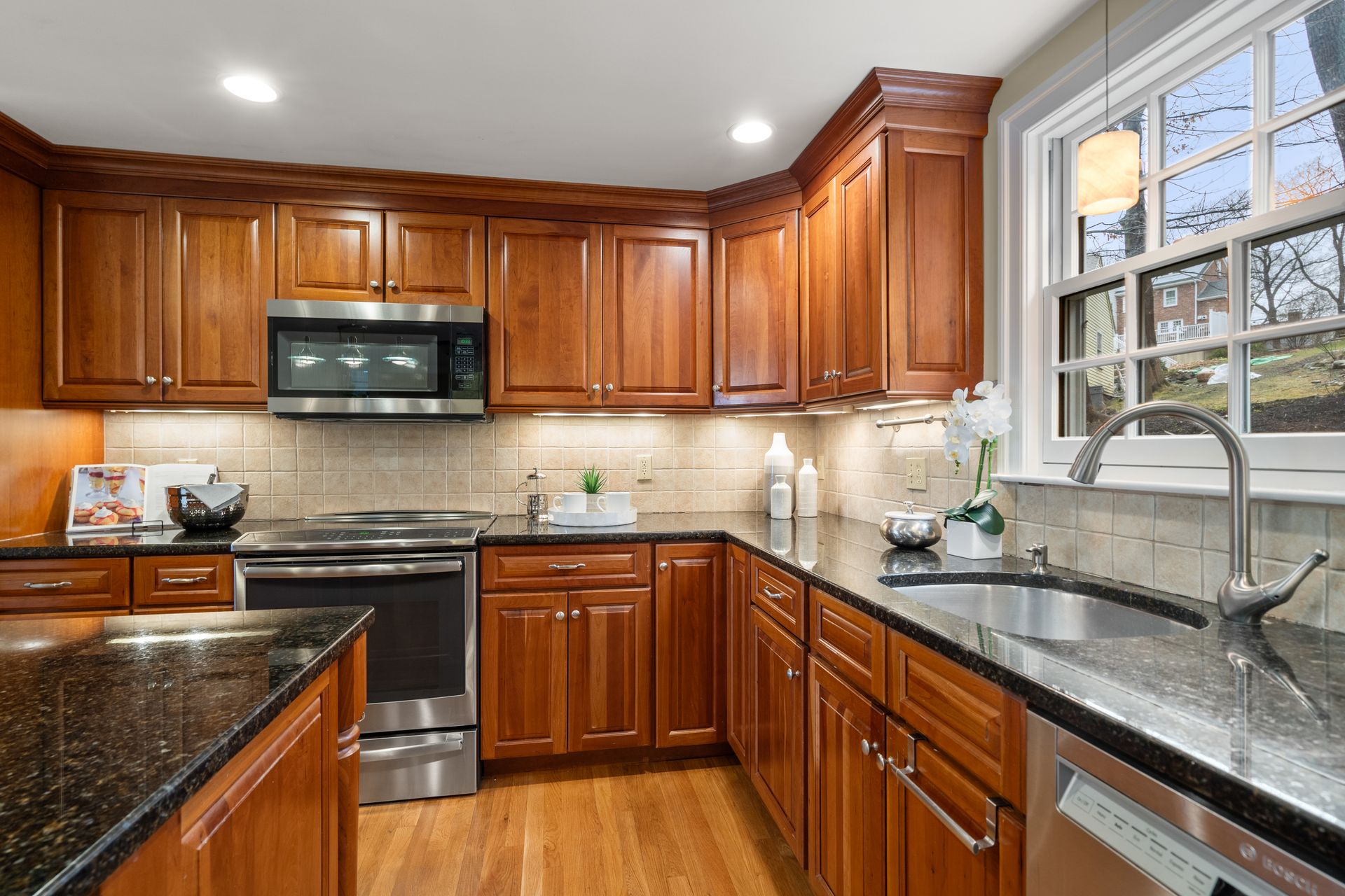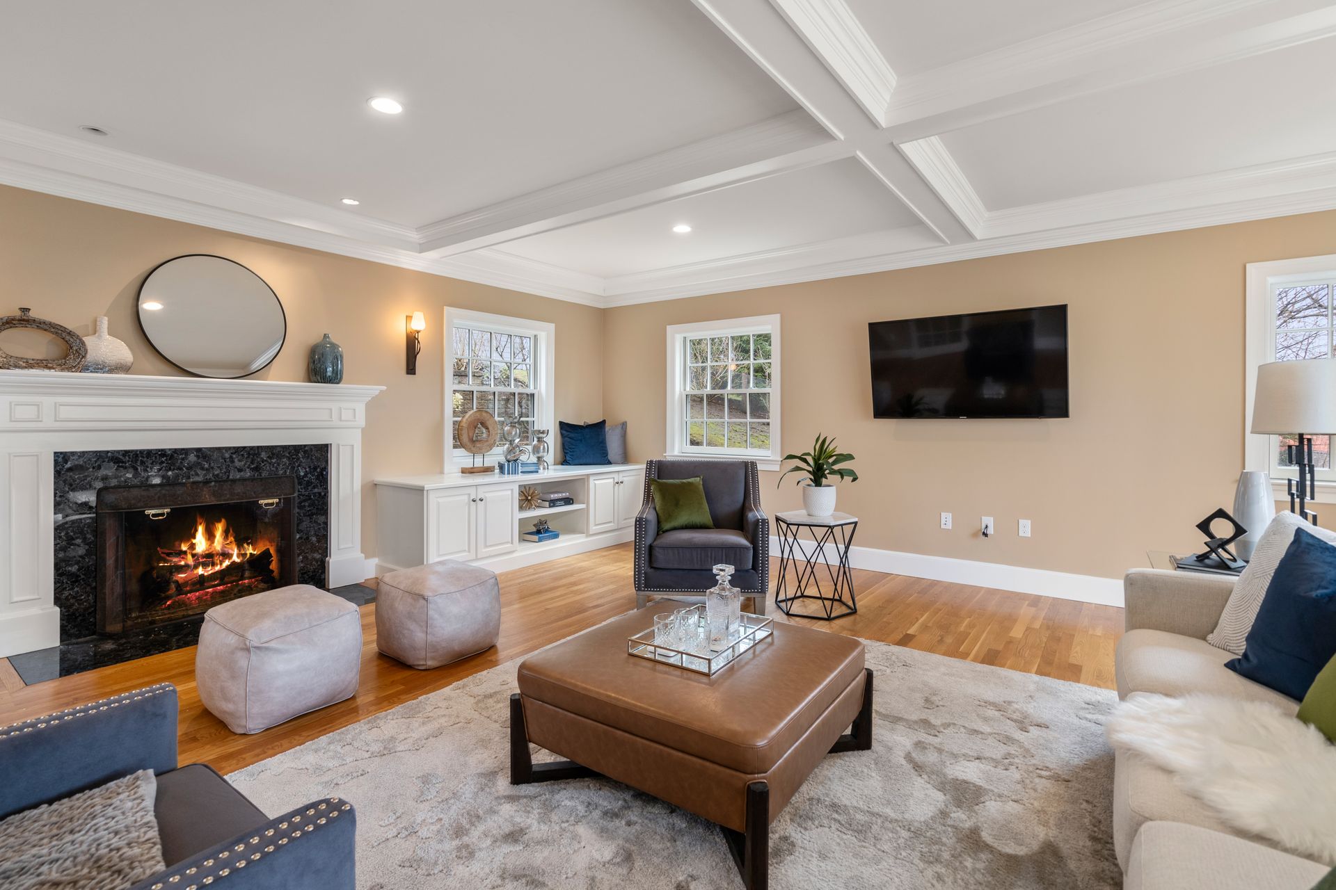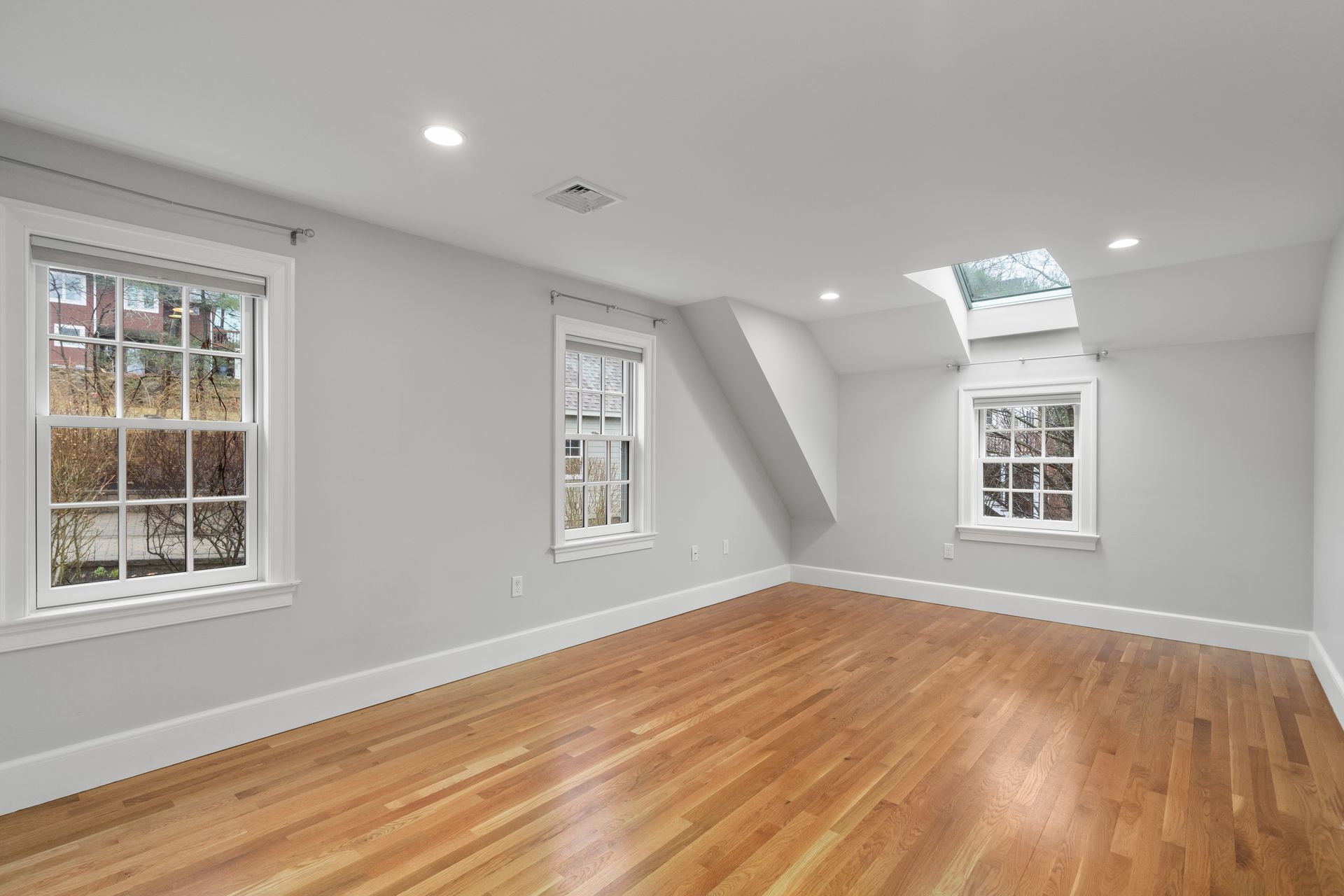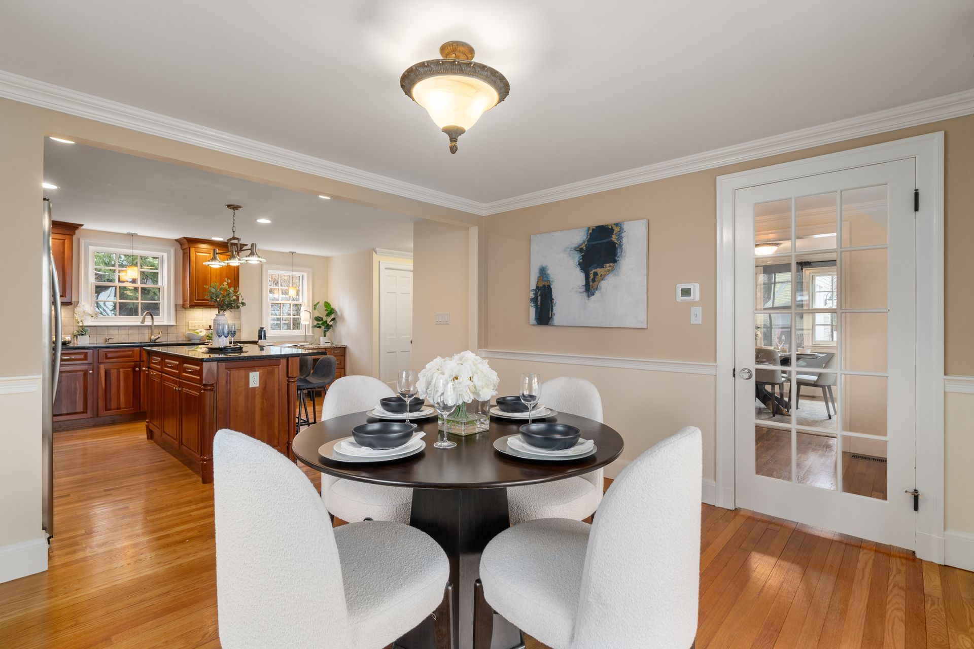 Tranquility and privacy describe this four bedroom/three and a half bath home located in a coveted Bird's Hill neighborhood. The sundrenched open concept first floor features a chef's kitchen with custom cabinets, stainless steel appliances, granite counters and a lovely island that leads into a formal dining room. The spacious family room with fireplace has French doors leading out to an expansive deck perfect for hours of outdoor living and incredible sunsets. Completing the main level is a mudroom and powder room. The second floor features an oversized primary ensuite with a lovely bathroom and walk in closet. Three additional family bedrooms, a full bathroom and laundry area complete this level. The finished lower level offers a playroom, office, full bathroom and a large bonus room with exterior access perfect for an au pair or in-law suite. Completing this home is two car detached garage with additional loft space perfect for a private office. Close to the commuter rail and everything Needham Center has to offer!
