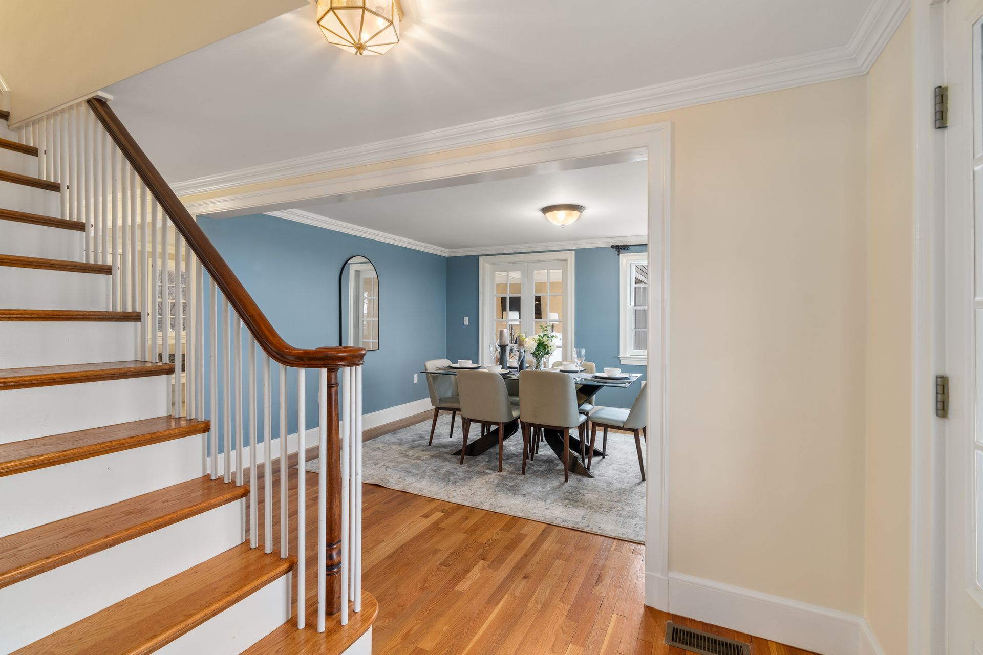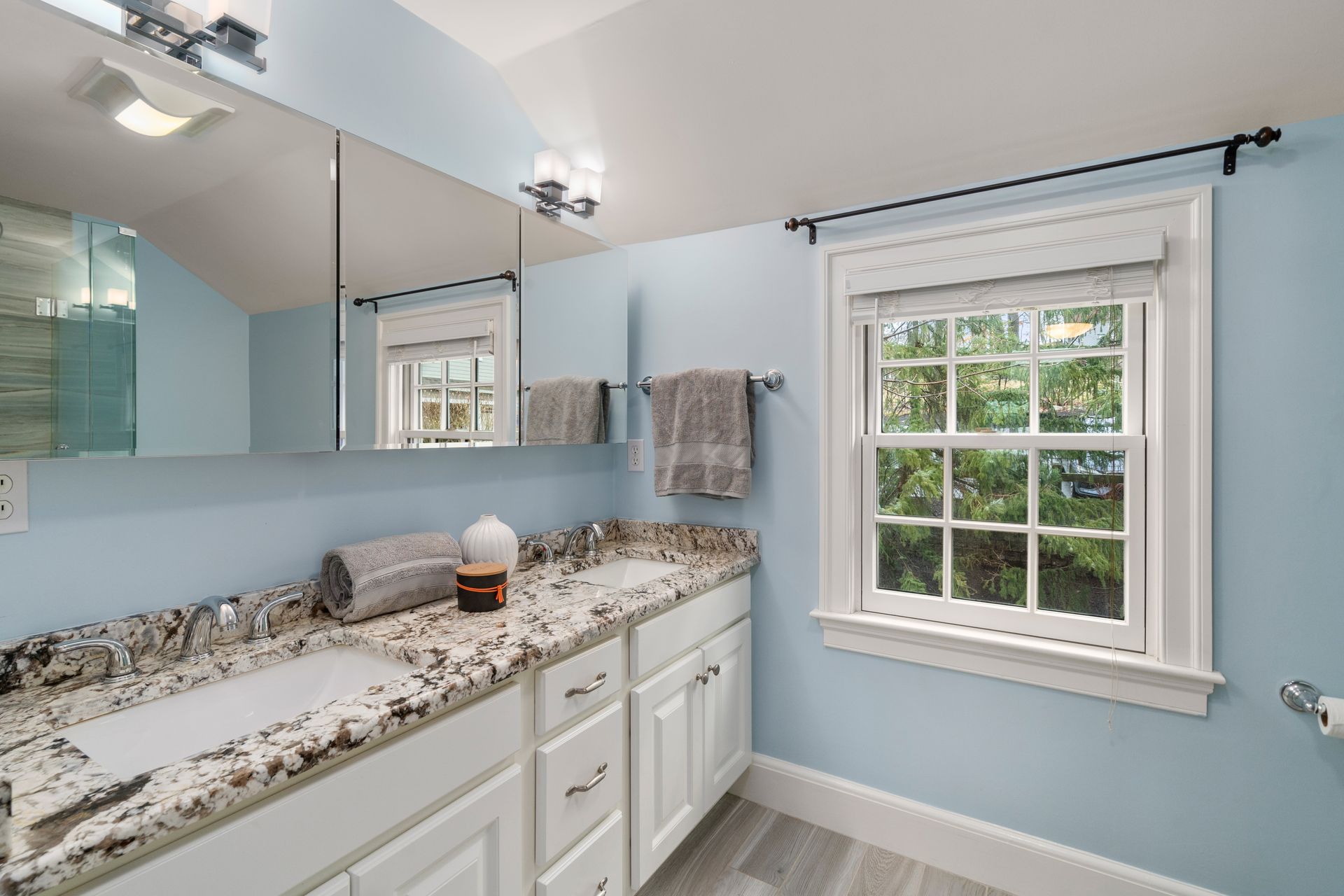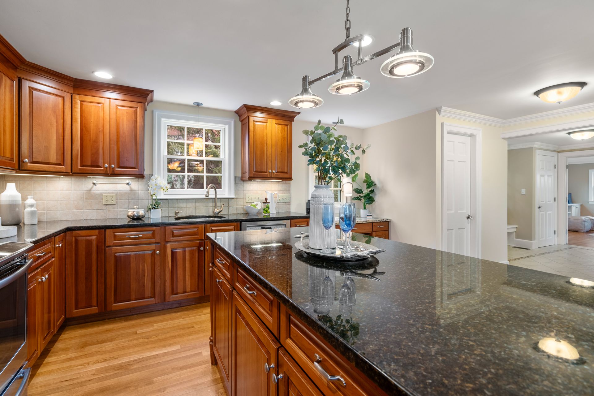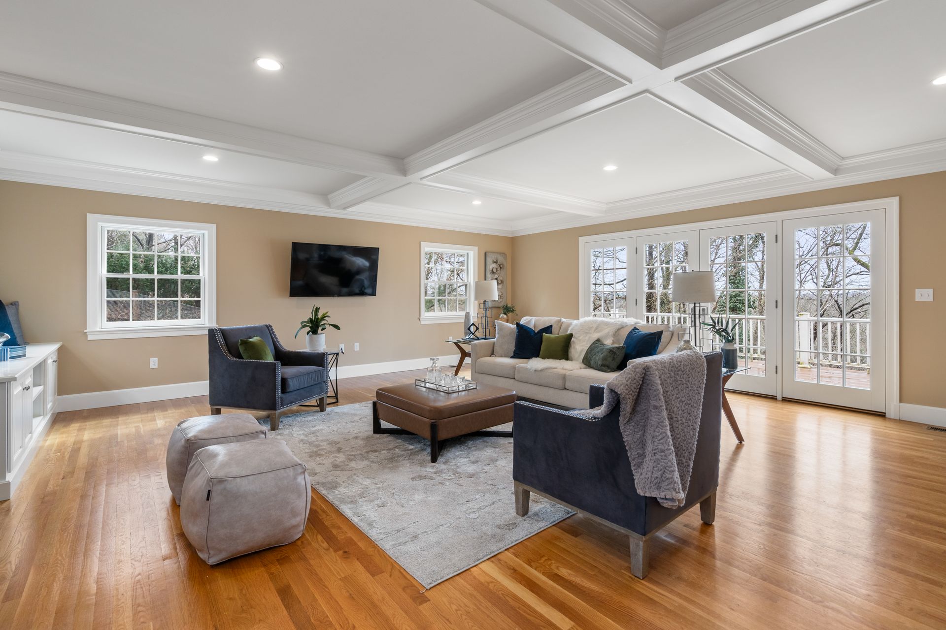 Tranquility and privacy describe this four bedroom/three and a half bath home located in a coveted Bird's Hill neighborhood. The sundrenched open concept first floor features a chef's kitchen with custom cabinets, stainless steel appliances, granite counters and a lovely island that leads into a formal dining room. The spacious family room with fireplace has French doors leading out to an expansive deck perfect for hours of outdoor living and incredible sunsets. Completing the main level is a mudroom and powder room. The second floor features an oversized primary ensuite with a lovely bathroom and walk in closet. Three additional family bedrooms, a full bathroom and laundry area complete this level. The finished lower level offers a playroom, office, full bathroom and a large bonus room with exterior access perfect for an au pair or in-law suite. Completing this home is two car detached garage with additional loft space perfect for a private office. Close to the commuter rail and everything Needham Center has to offer!