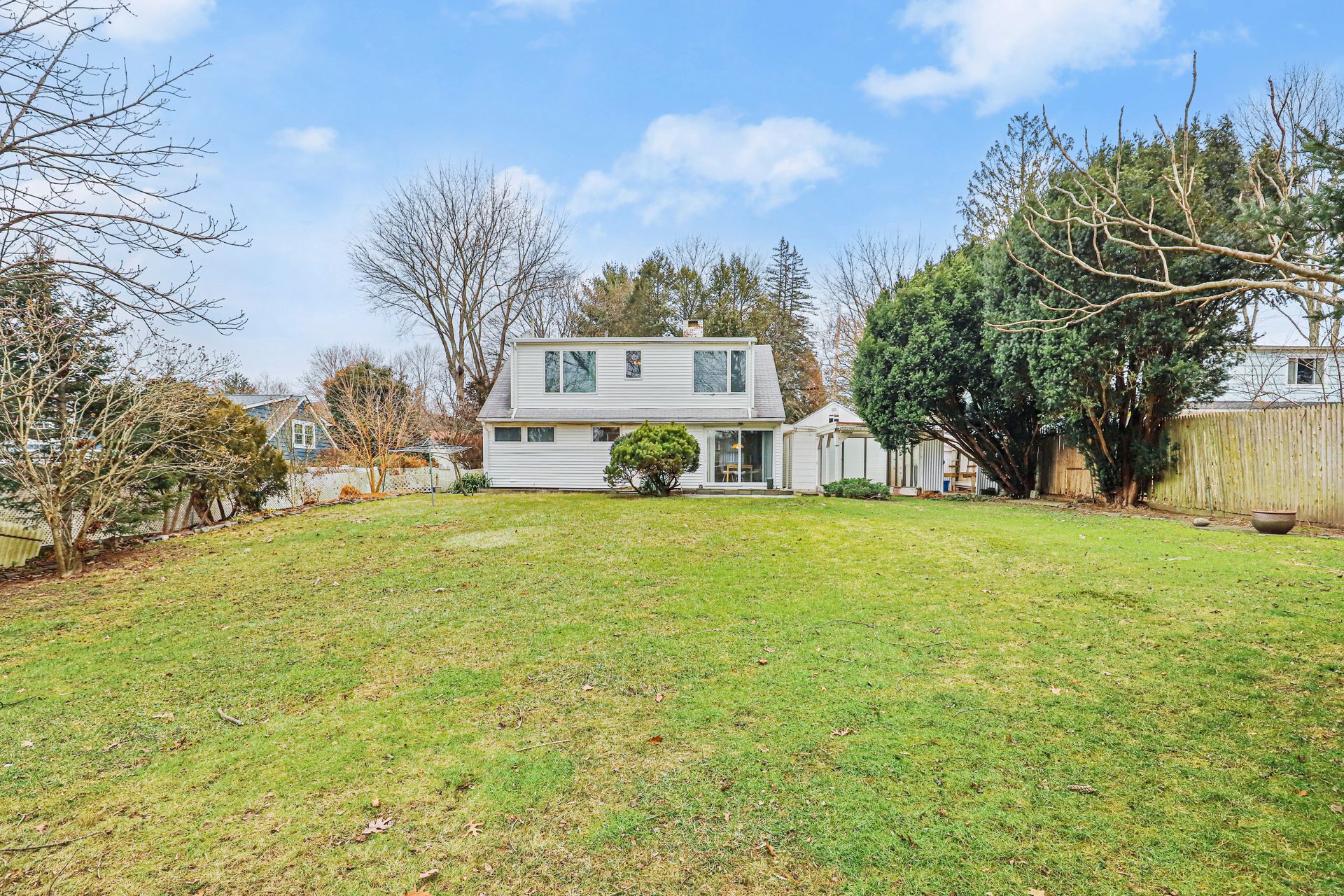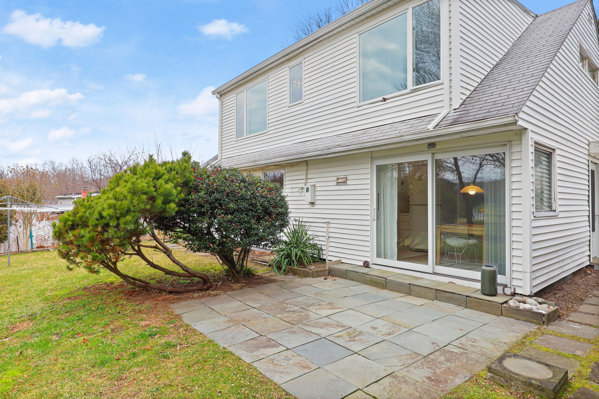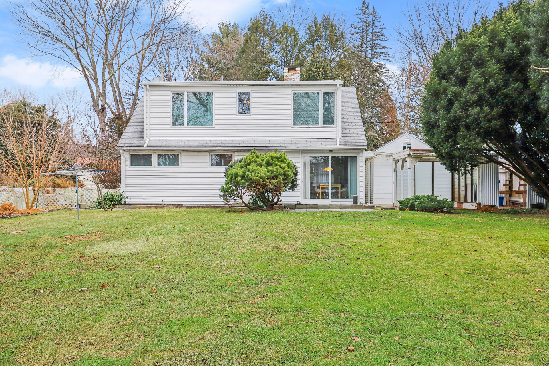 On this less traveled lane in Mt. Kisco is a Contemporary Cape Cod Home with a Mid-Century Modern flair. Enter the living room with a wood-burning fireplace and a large picture window overlooking the front lawn. The living room also has a side door for easy access from the detached one-car garage and is open to the dining room with sliding glass doors to a slate patio and level backyard overlooking the golf course of the Mt. Kisco Country Club. The kitchen has plenty of counter space and storage. Also on the main level are two nice-sized bedrooms. Each have two closets and built-in dressers. A full hall bath with tub completes the first floor. On the second floor is the Main Bedroom with two large closets, makeup niche, and a sitting area with a view of the golf course. Another large bedroom has two built-in desks, double closet and lots of natural light. A full hall bath and laundry closet complete the second floor. The fenced-in property is great for outdoor entertaining and recreation. An 8-mile drive to train station with parking.