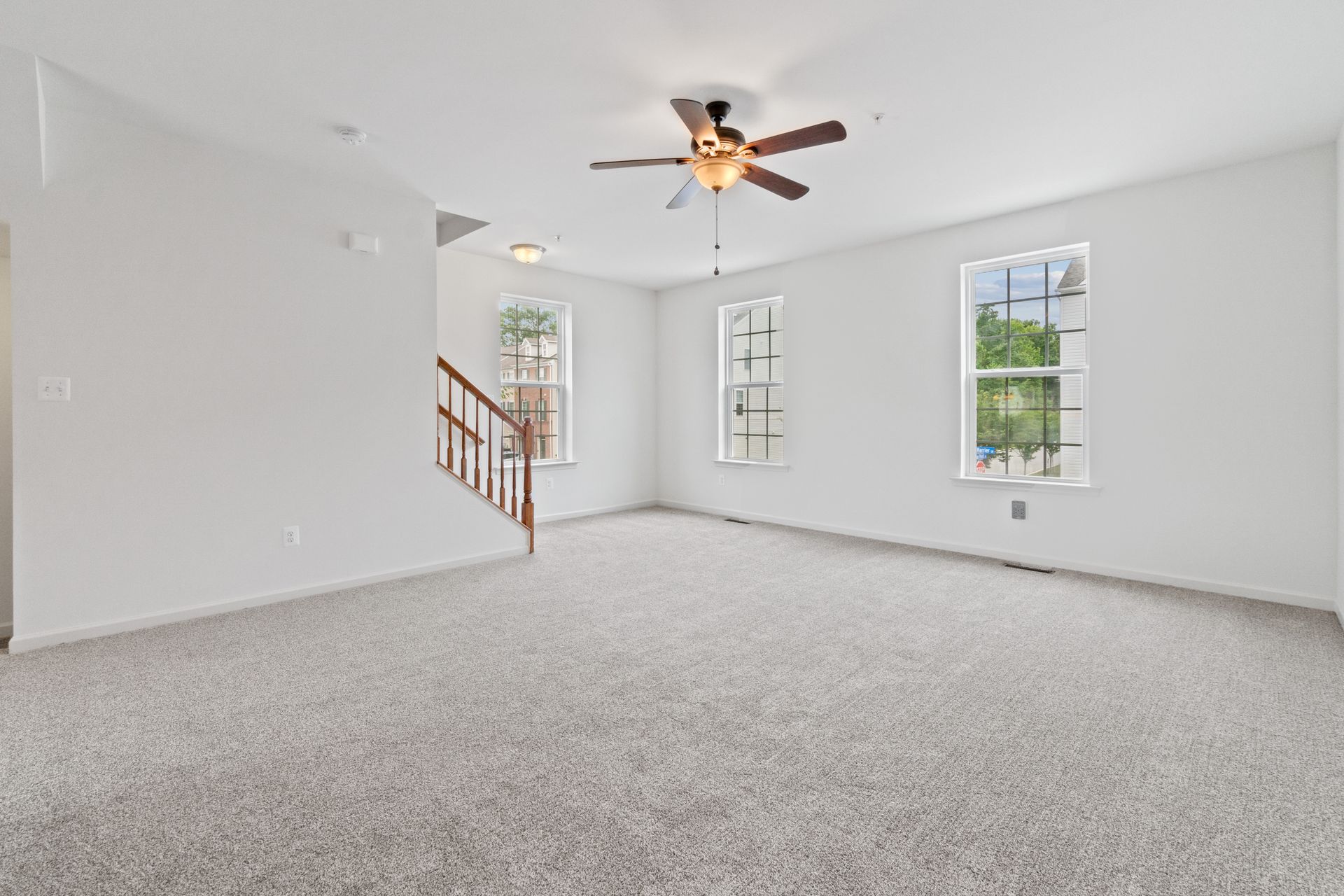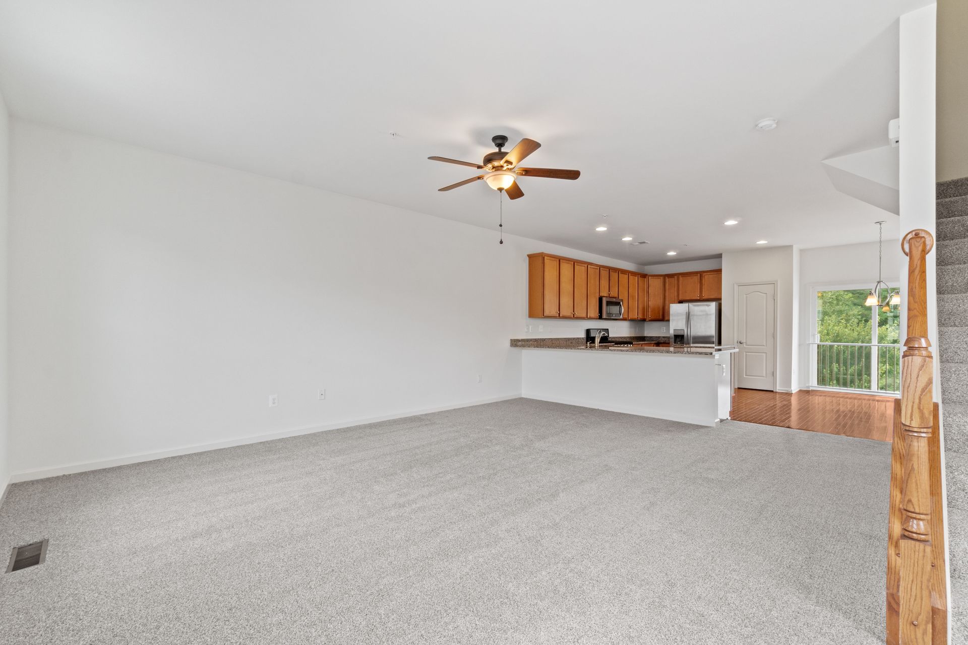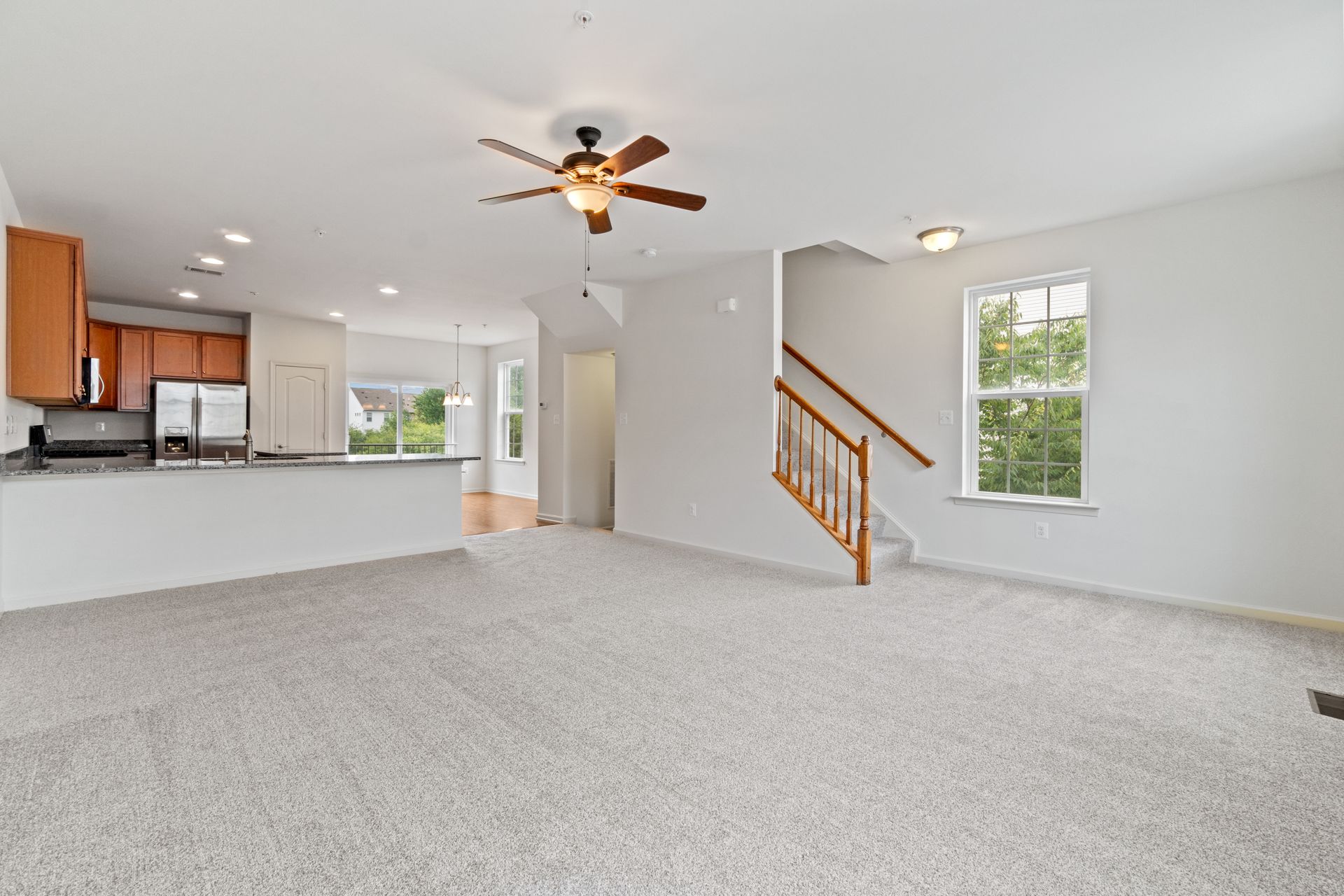 The main level showcases an open concept design with nine-foot ceilings, creating an airy and spacious atmosphere. The generously-sized kitchen provides ample space for cooking and entertaining, with a sizable dining area adjacent. The lower level includes a cozy half-bathroom, a work area, and a family room that leads out to the private, fenced-in backyard.