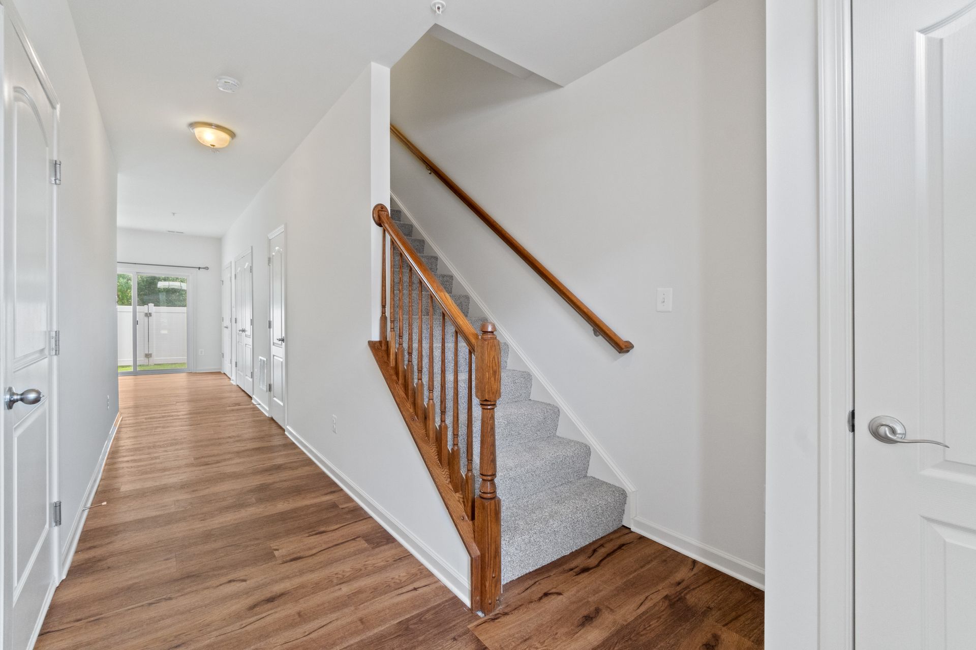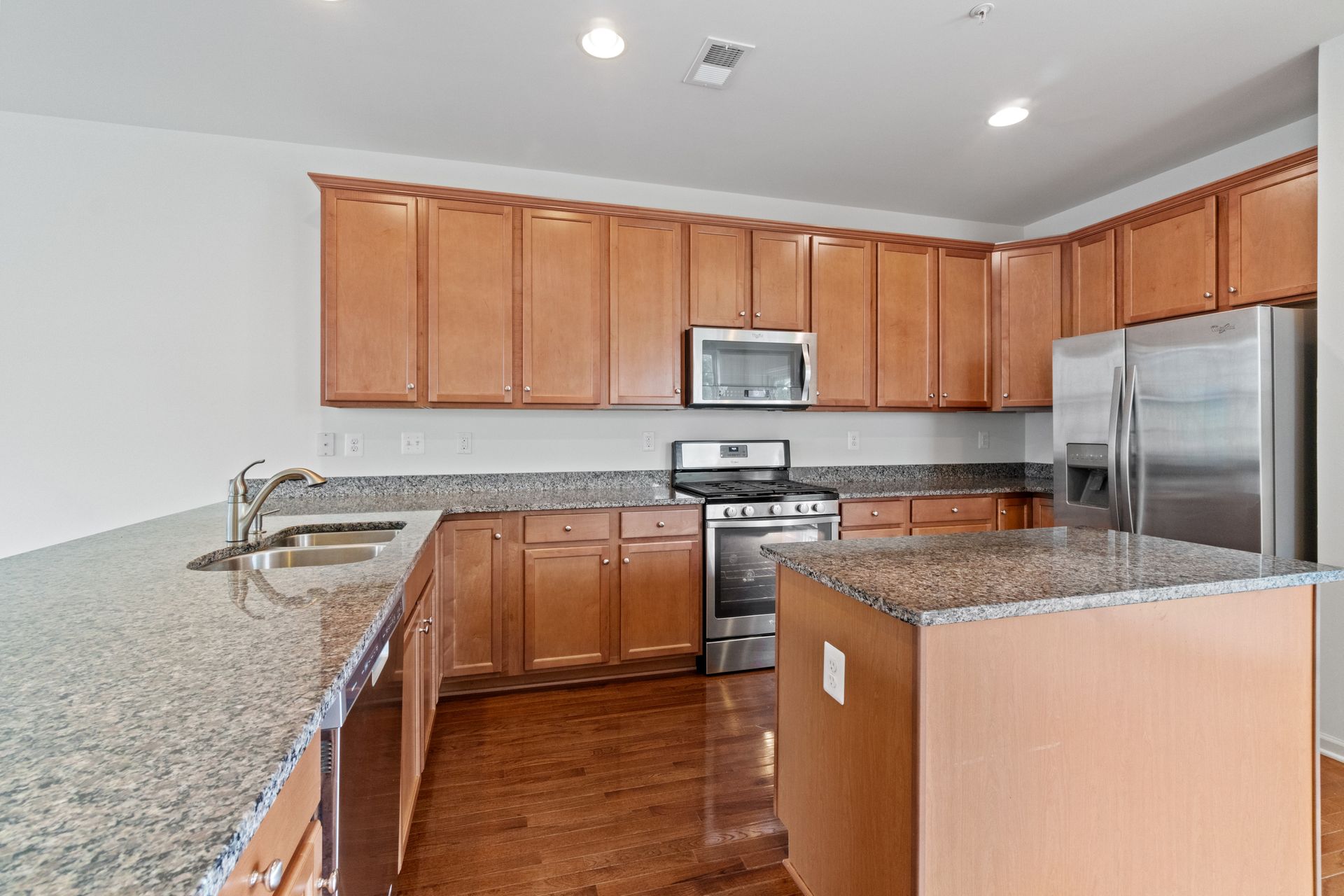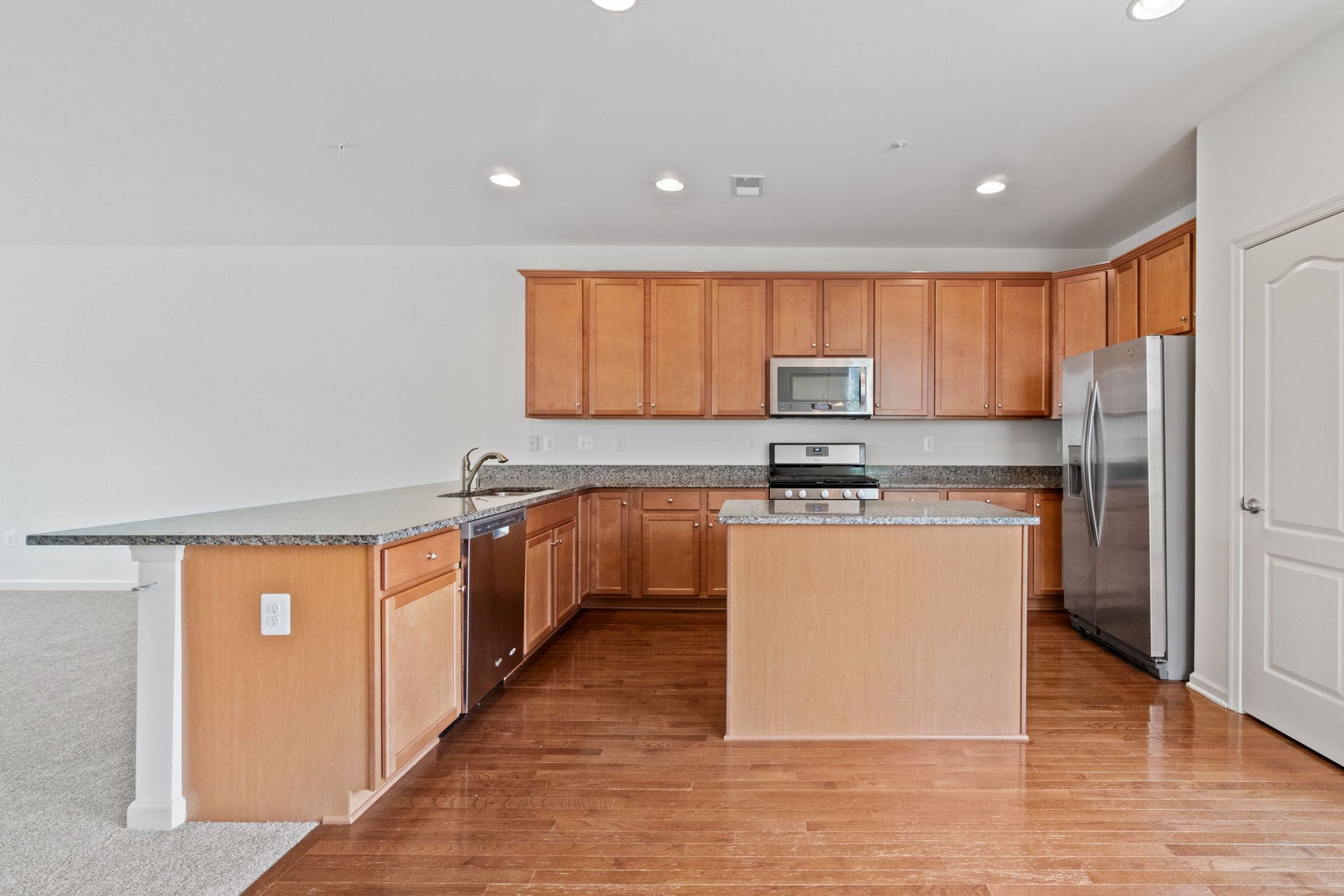 The main level showcases an open concept design with nine-foot ceilings, creating an airy and spacious atmosphere. The generously-sized kitchen provides ample space for cooking and entertaining, with a sizable dining area adjacent. The lower level includes a cozy half-bathroom, a work area, and a family room that leads out to the private, fenced-in backyard.