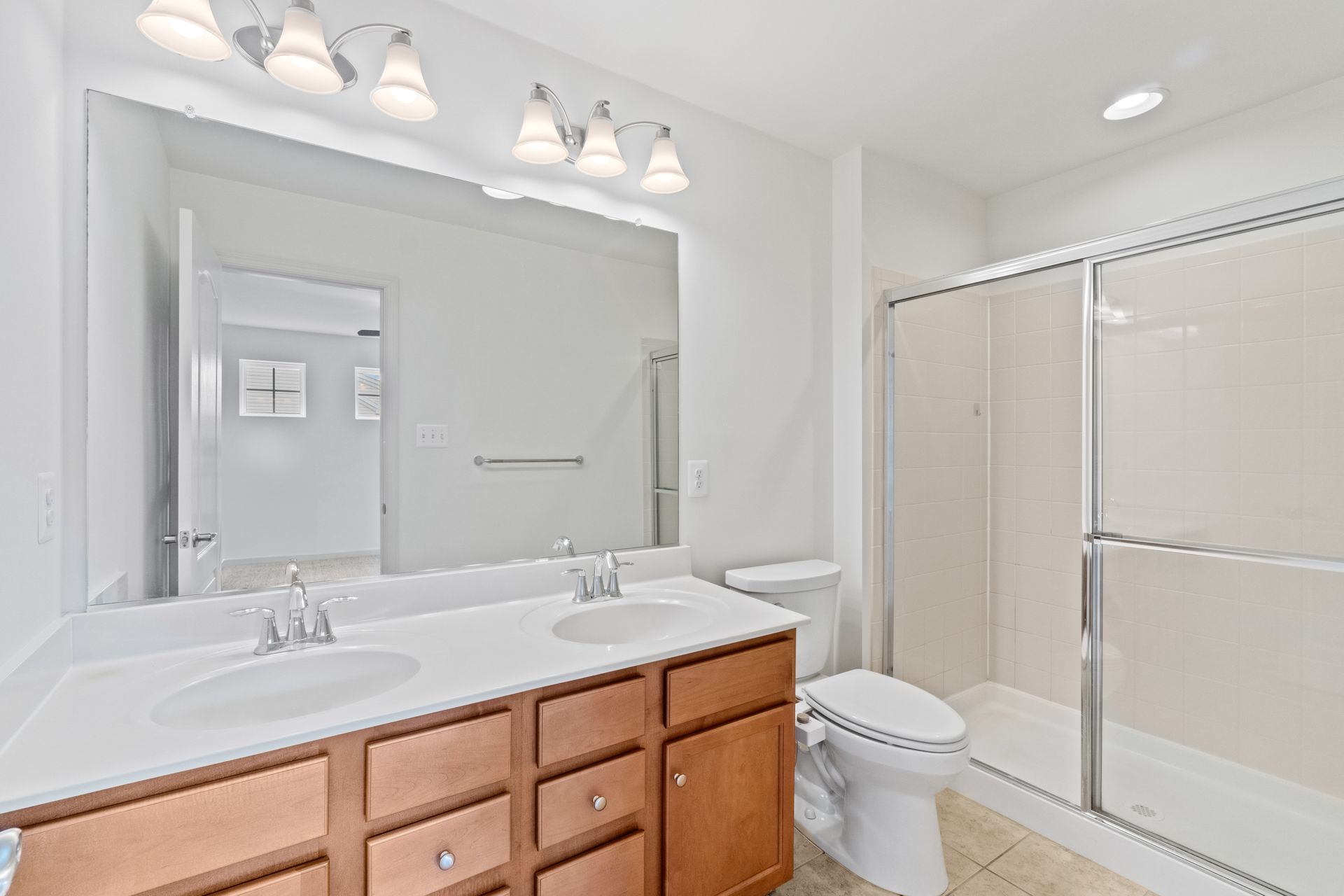 Upstairs, the primary bedroom features a full bathroom with a standalone shower. Two additional bedrooms and a hallway bathroom complete the upper level, along with a washer and dryer.