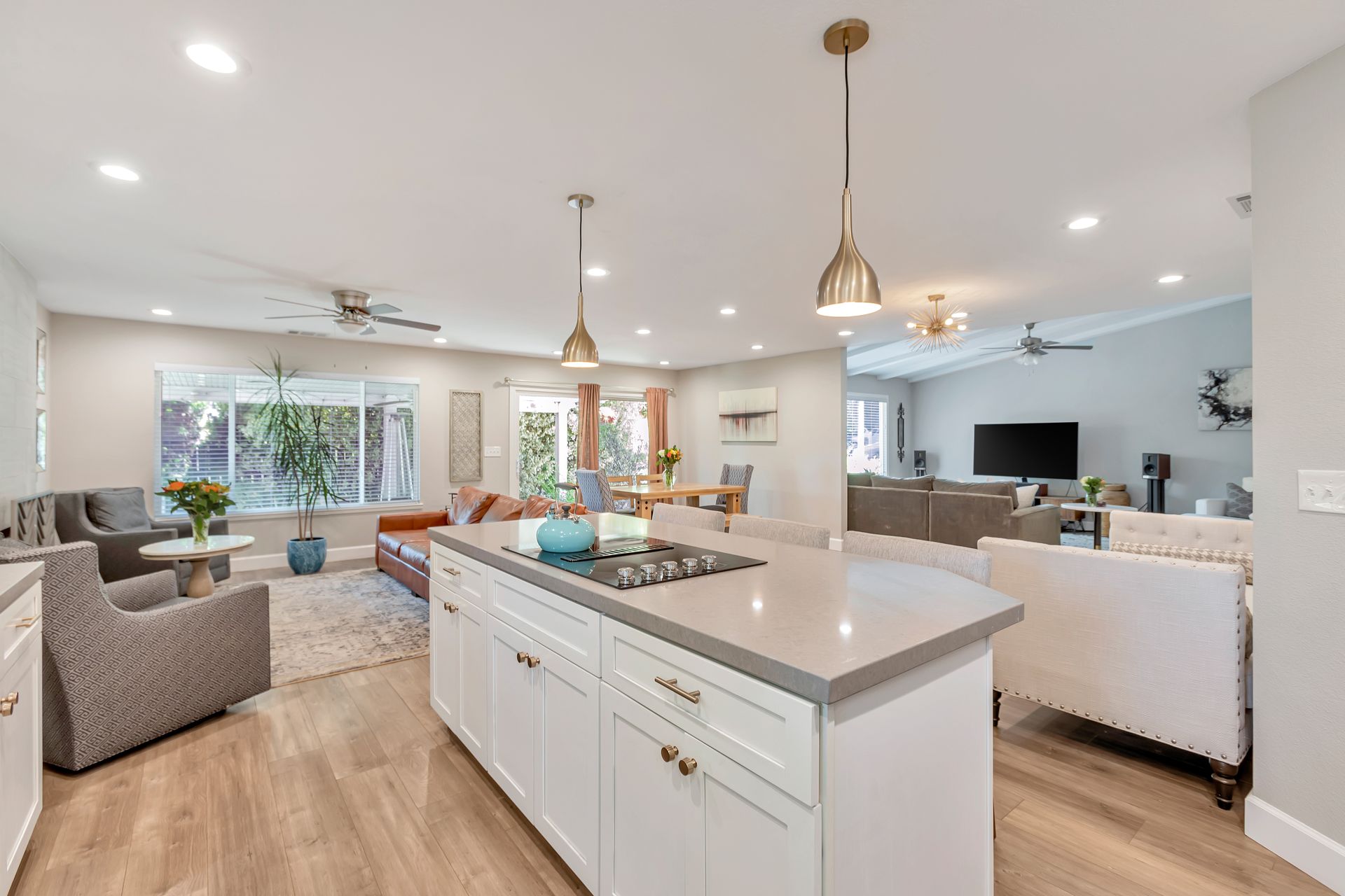 Look no further than this STUNNING hidden gem in the heart of highly desirable College Greens! The "comps" are no comparison - no kitchen to remodel, no walls to take down, no step-downs to raise and no bathrooms to gut as the entire home was recently renovated. All you have to do is move in and start enjoying a life of leisure and entertainment in this unique, sun-soaked, single story, modern open concept four bedroom, two bath situated on a beautiful corner cul-de-sac lot! Gourmet kitchen features quartz counters, a double oven, and an island with a cooktop and bar seating. Large, bright, owner's suite with sparkling tile shower and quartz vanity offers a private getaway with slider access to the backyard, while the three secondary bedrooms are located in a separate wing with a second updated bathroom. Melt your stresses away in the spacious backyard oasis with PebbleTec pool with a slide and custom waterfall, a large patio, side yards with lemon tree and mature Italian cypresses, and RV access. Meticulously landscaped with gorgeous fragrant roses, plum tree and other native plants and conveniently located near the American River Parkway, several parks, schools, shopping, Sac State and Hwy 50. Do not miss out on this one!
