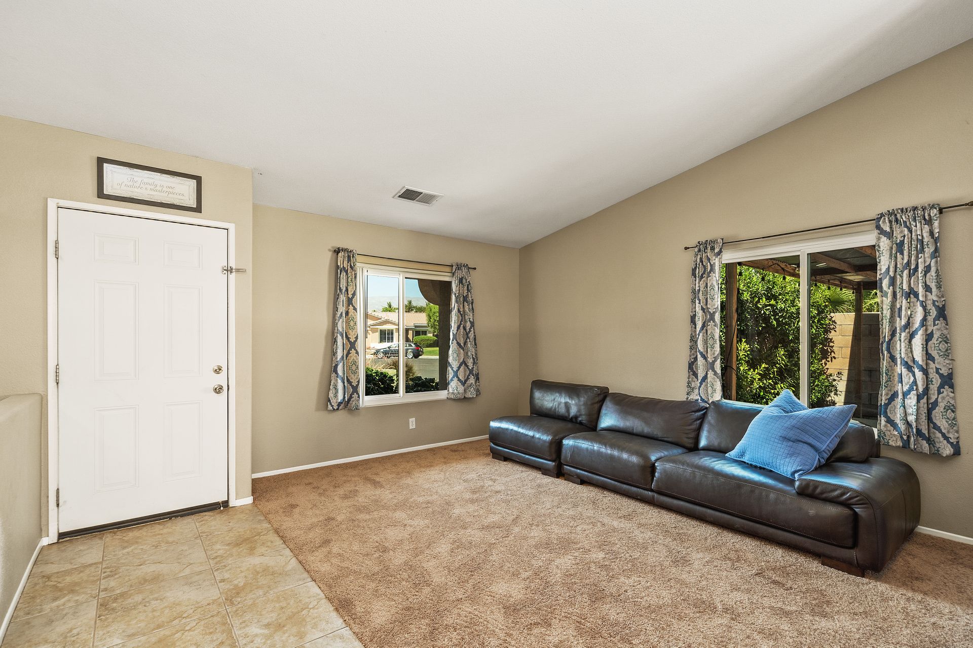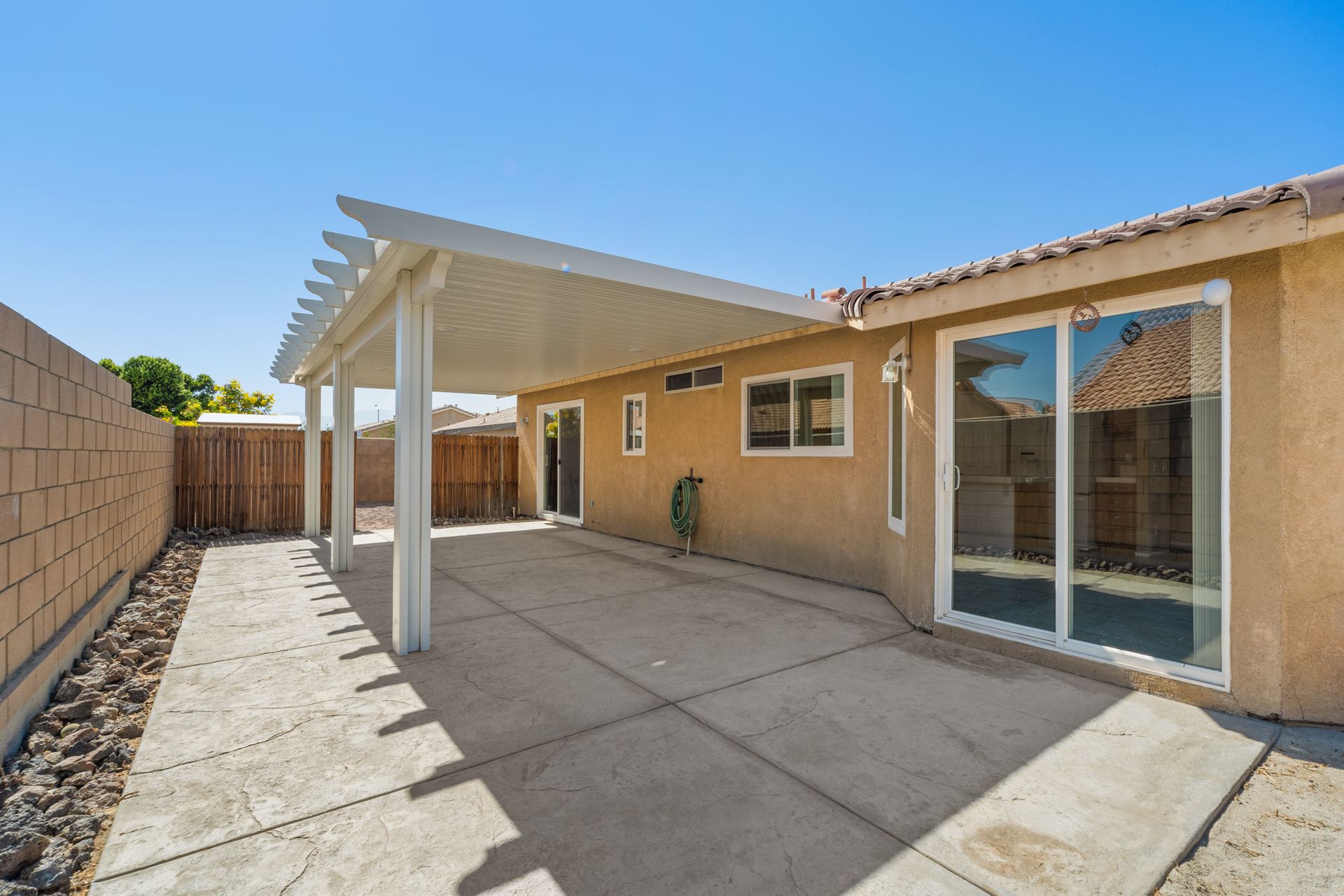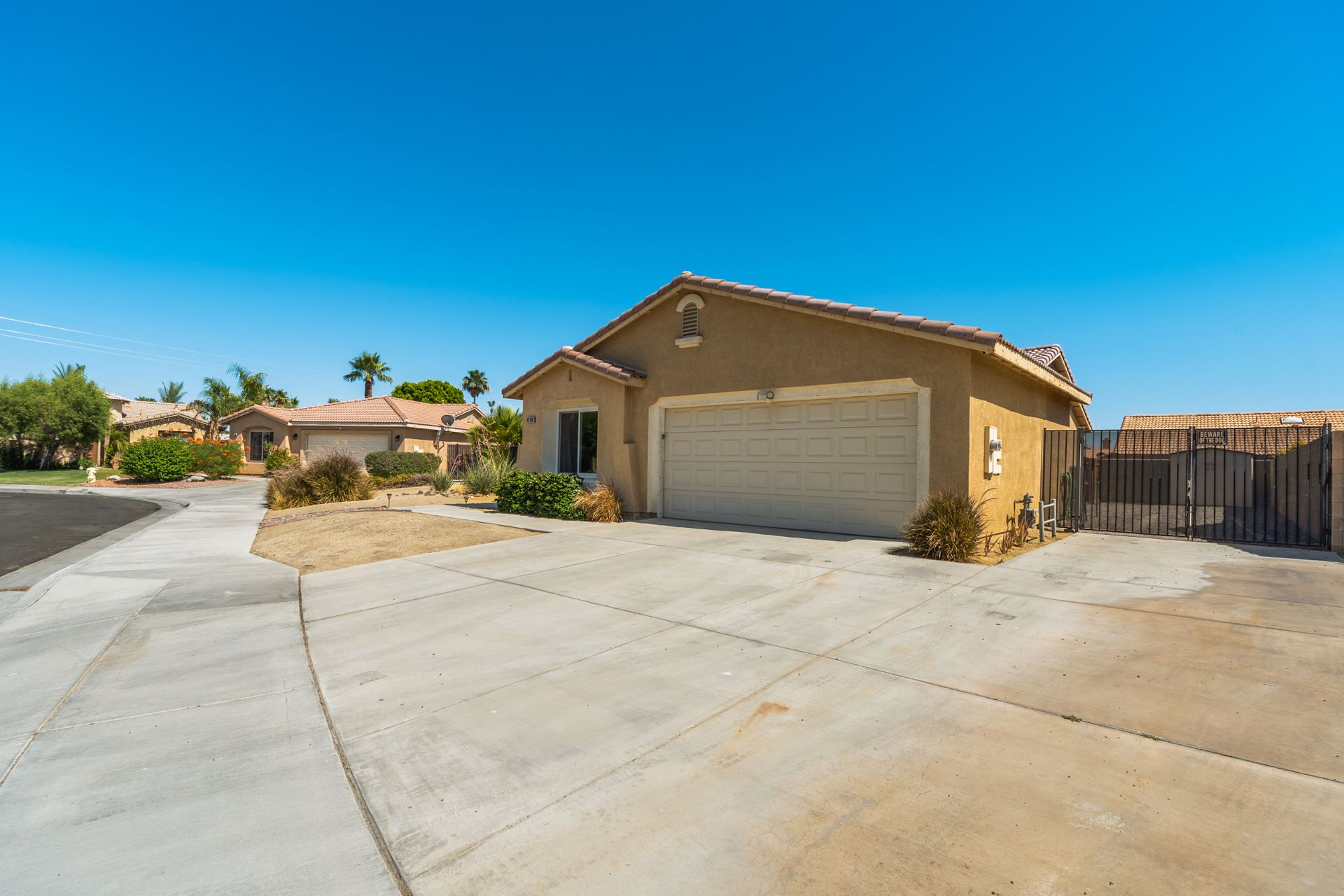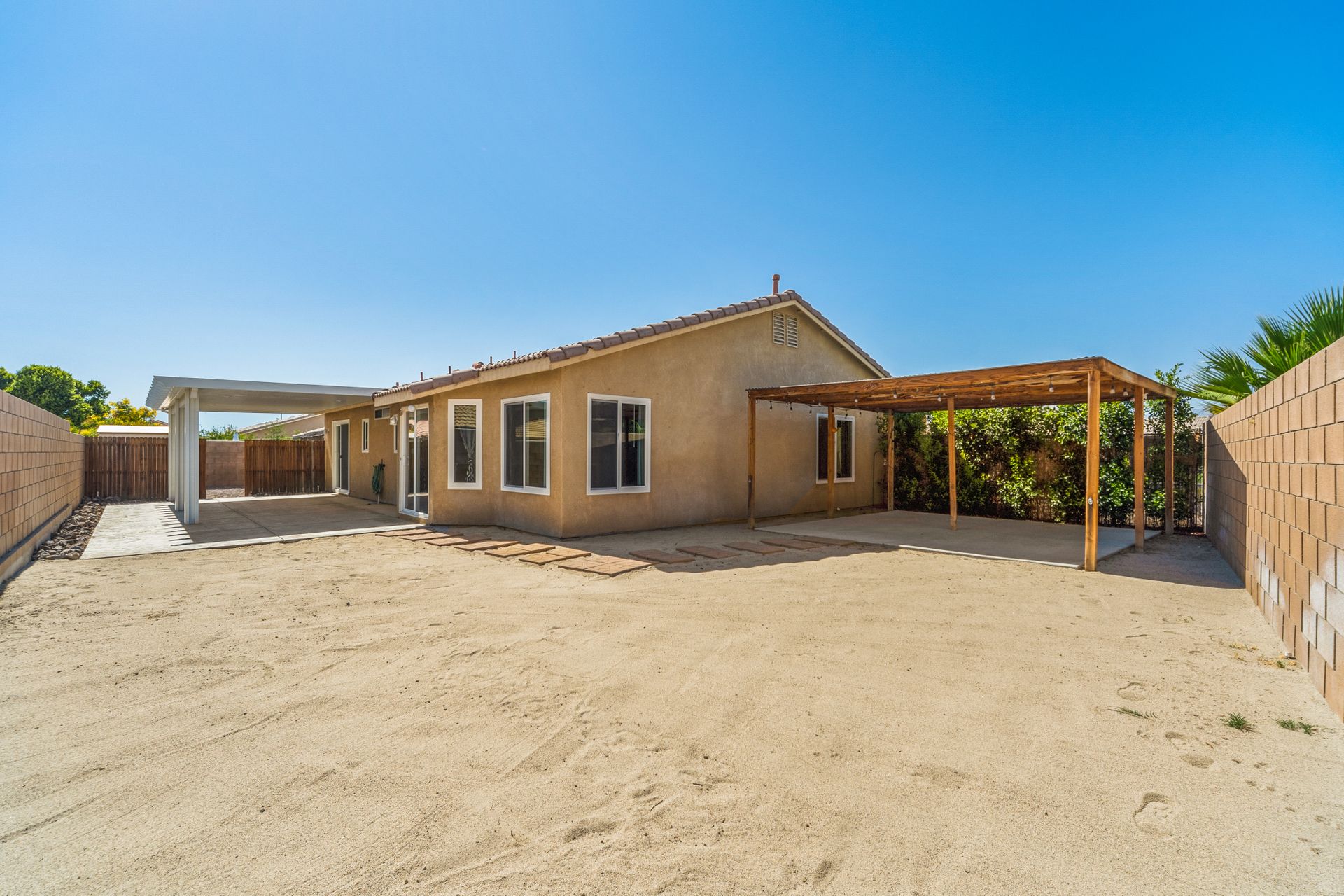 Beautiful Shadow Hills Villas property at the end of a Cul-de-Sac with Mountain Views!! Spacious and updated 3 Bedroom 2 Bathroom floor plan on a large 7841sqft lot. Open kitchen/dining room with ceramic tile flooring, kitchen island, and pantry (fridge, dishwasher, stove, and microwave are included). The dining room sliding glass door opens to a large outdoor space including two covered patios and a new long-lasting Alumawood Patio Cover. Separate great room living with new Dual Pane Windows, Paint, and Carpet. Master bedroom with ensuite and walk-in closet. Attached 2-car garage plus gated RV Parking with all of the hookups!! Fantastic location nearby the I-10 freeway access, golf, restaurants, shopping, schools, parks, and entertainment. Short-term rentals approved, low tax rate, and NO HOA!!
