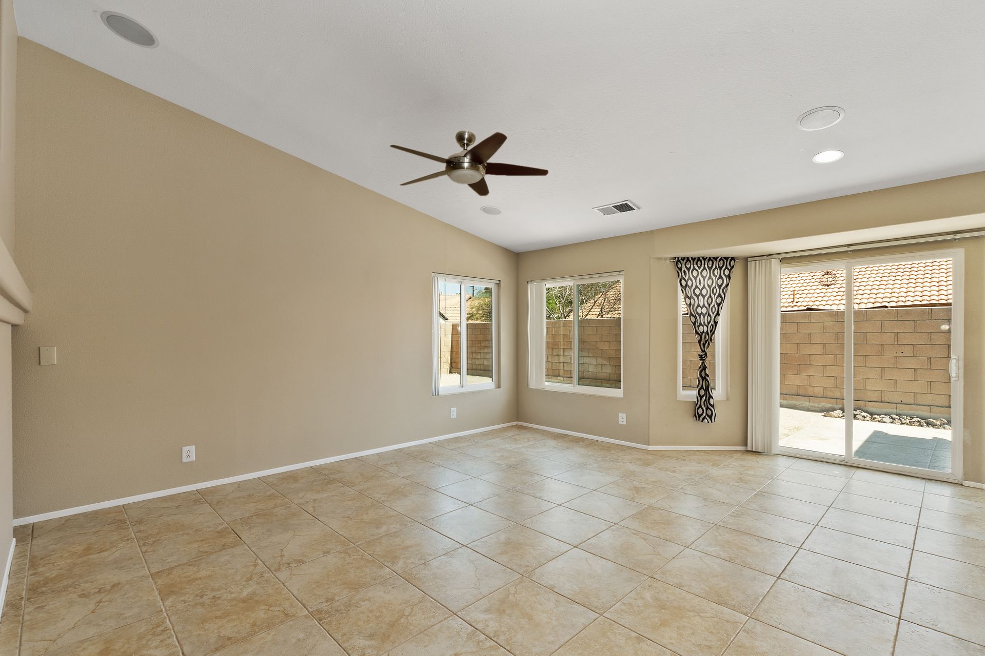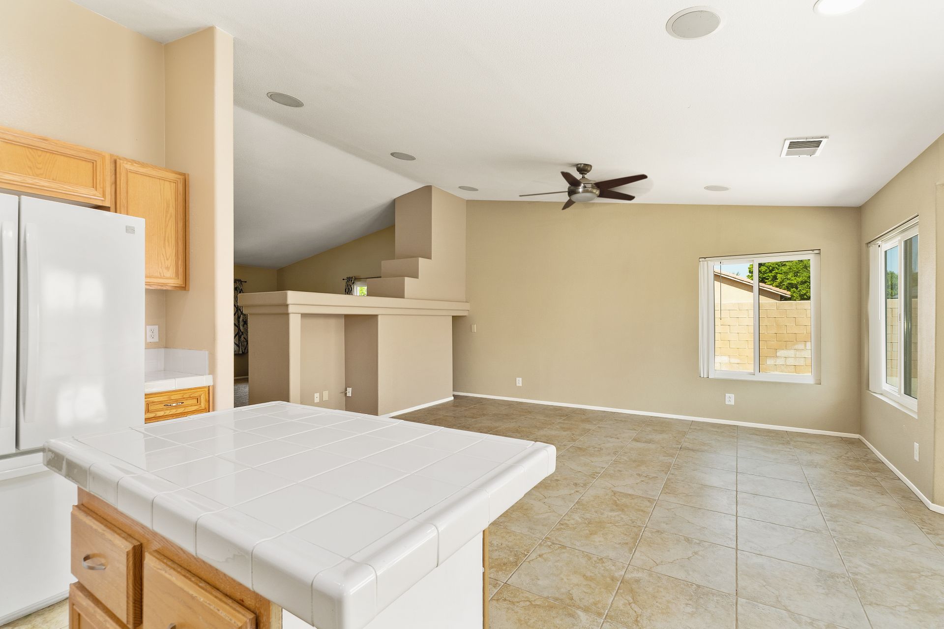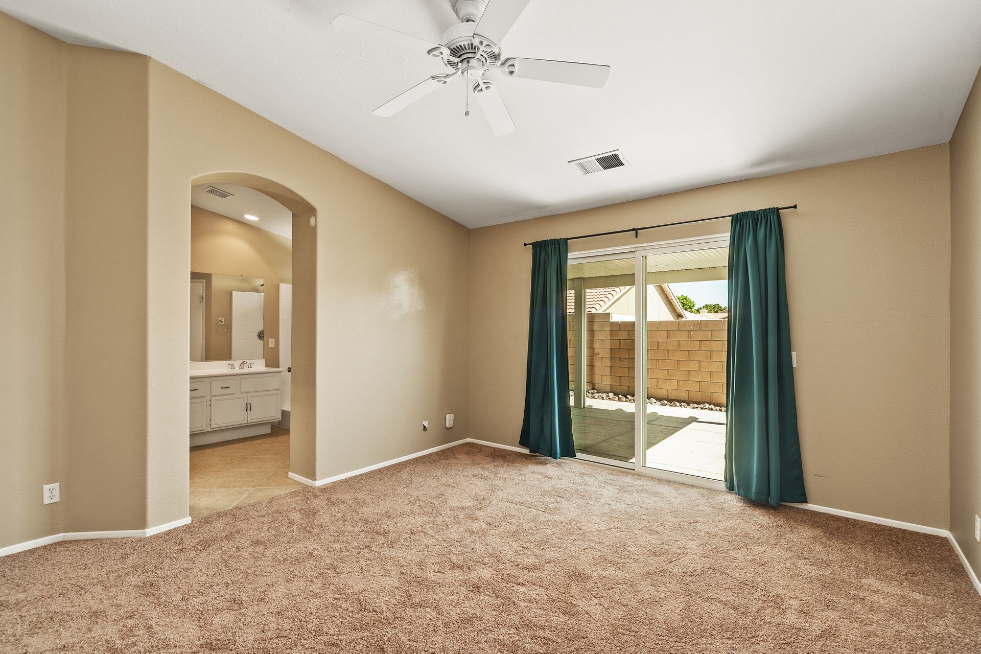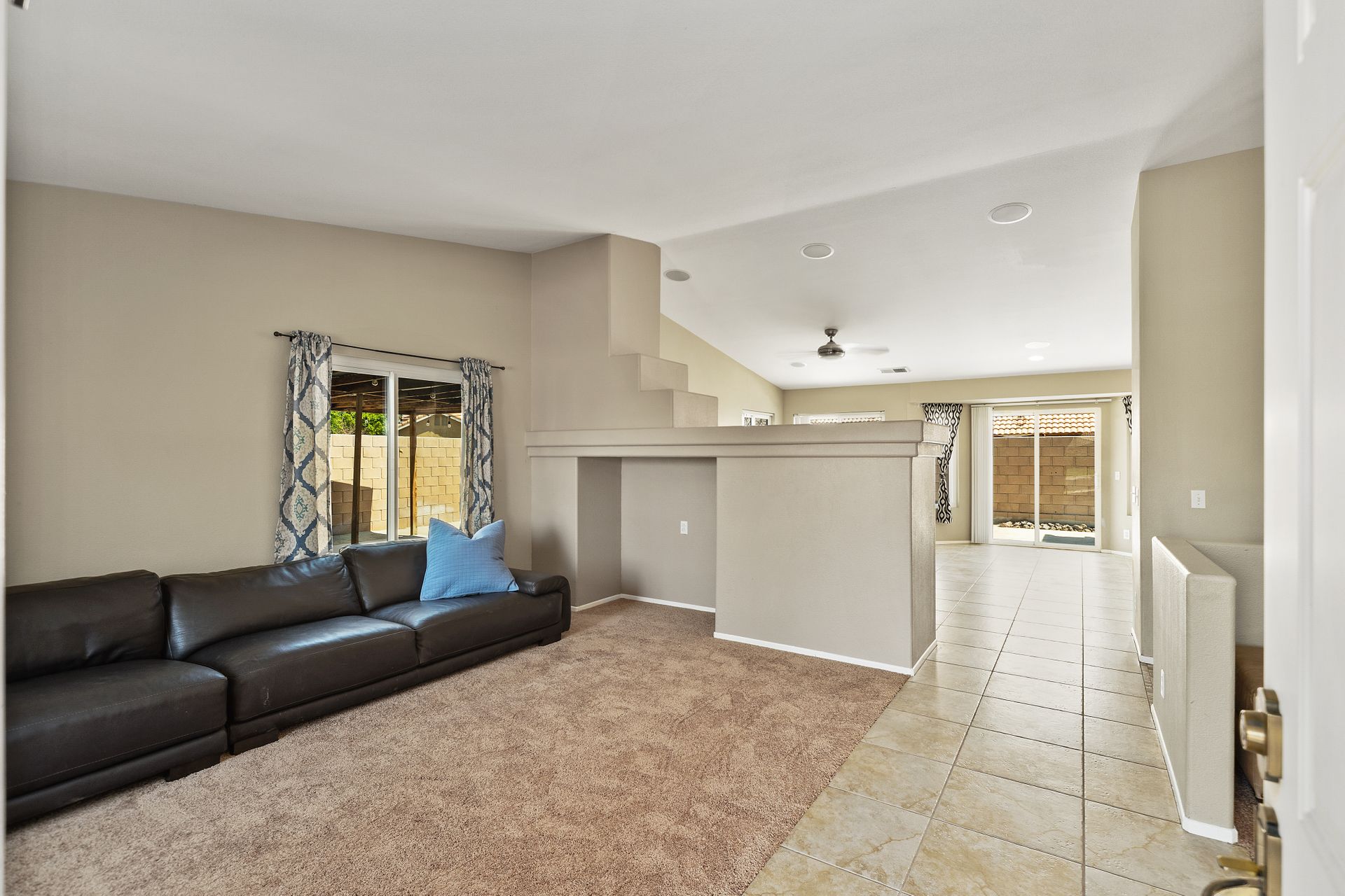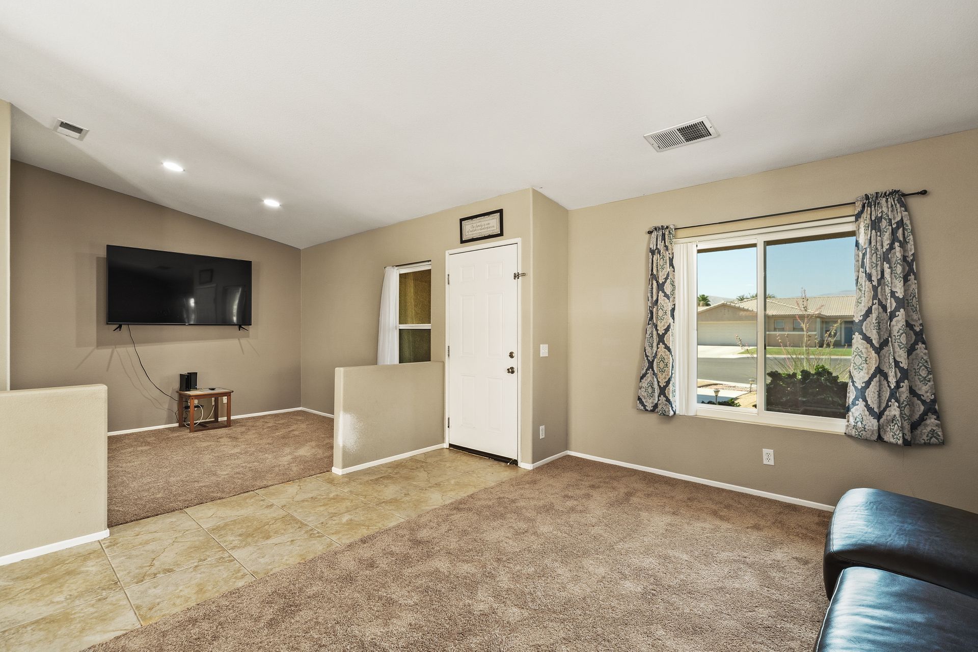 Beautiful Shadow Hills Villas property at the end of a Cul-de-Sac with Mountain Views!! Spacious and updated 3 Bedroom 2 Bathroom floor plan on a large 7841sqft lot. Open kitchen/dining room with ceramic tile flooring, kitchen island, and pantry (fridge, dishwasher, stove, and microwave are included). The dining room sliding glass door opens to a large outdoor space including two covered patios and a new long-lasting Alumawood Patio Cover. Separate great room living with new Dual Pane Windows, Paint, and Carpet. Master bedroom with ensuite and walk-in closet. Attached 2-car garage plus gated RV Parking with all of the hookups!! Fantastic location nearby the I-10 freeway access, golf, restaurants, shopping, schools, parks, and entertainment. Short-term rentals approved, low tax rate, and NO HOA!!