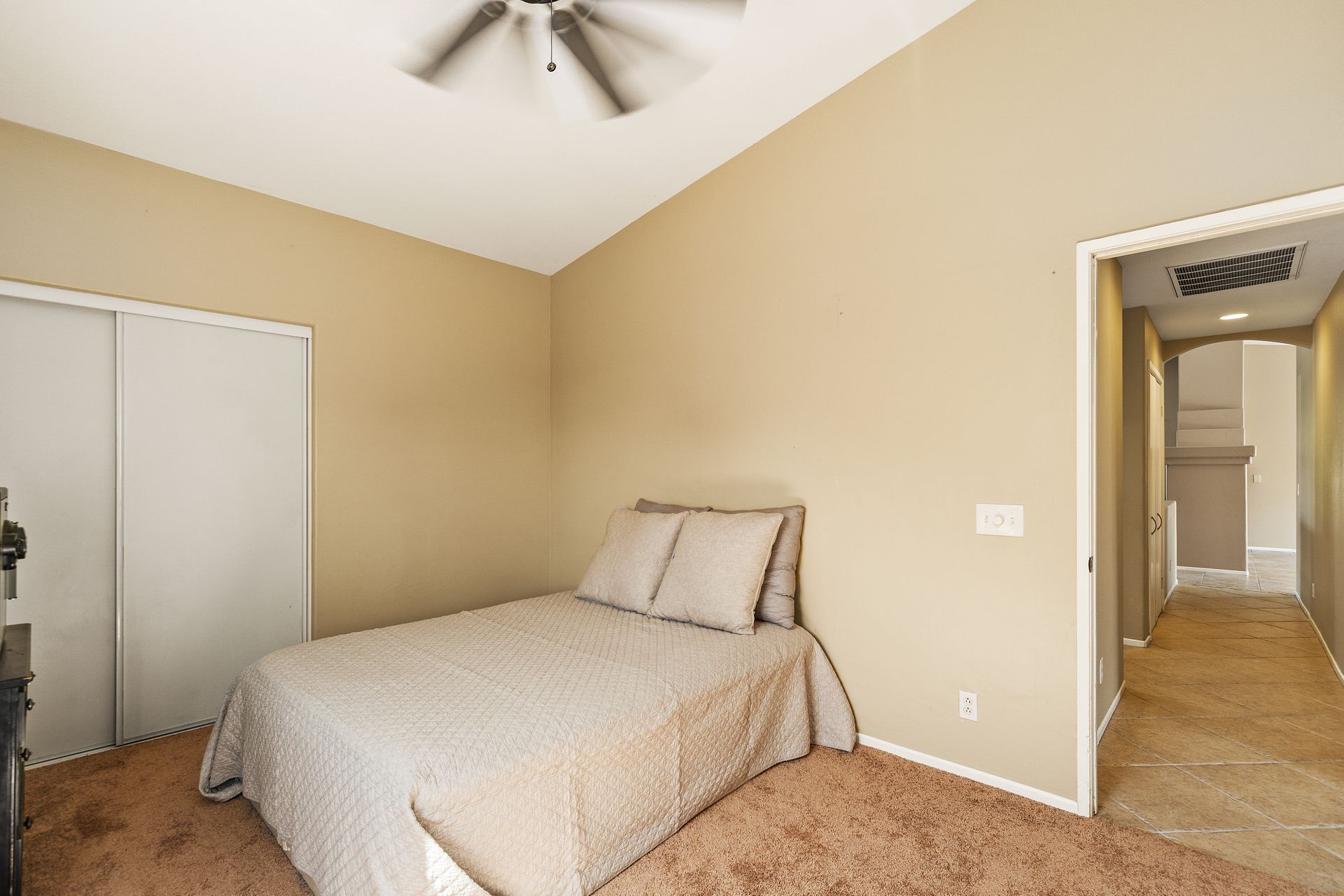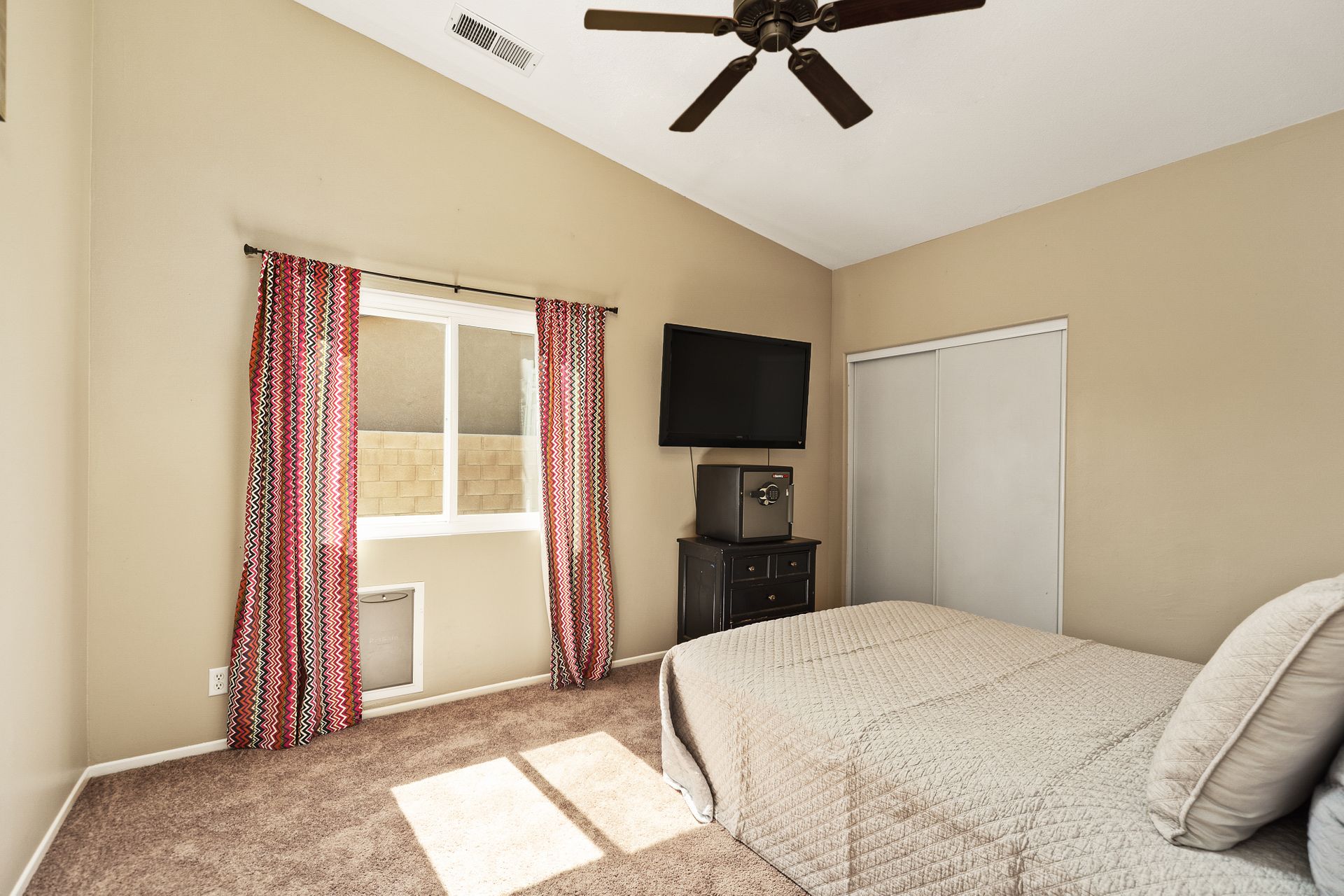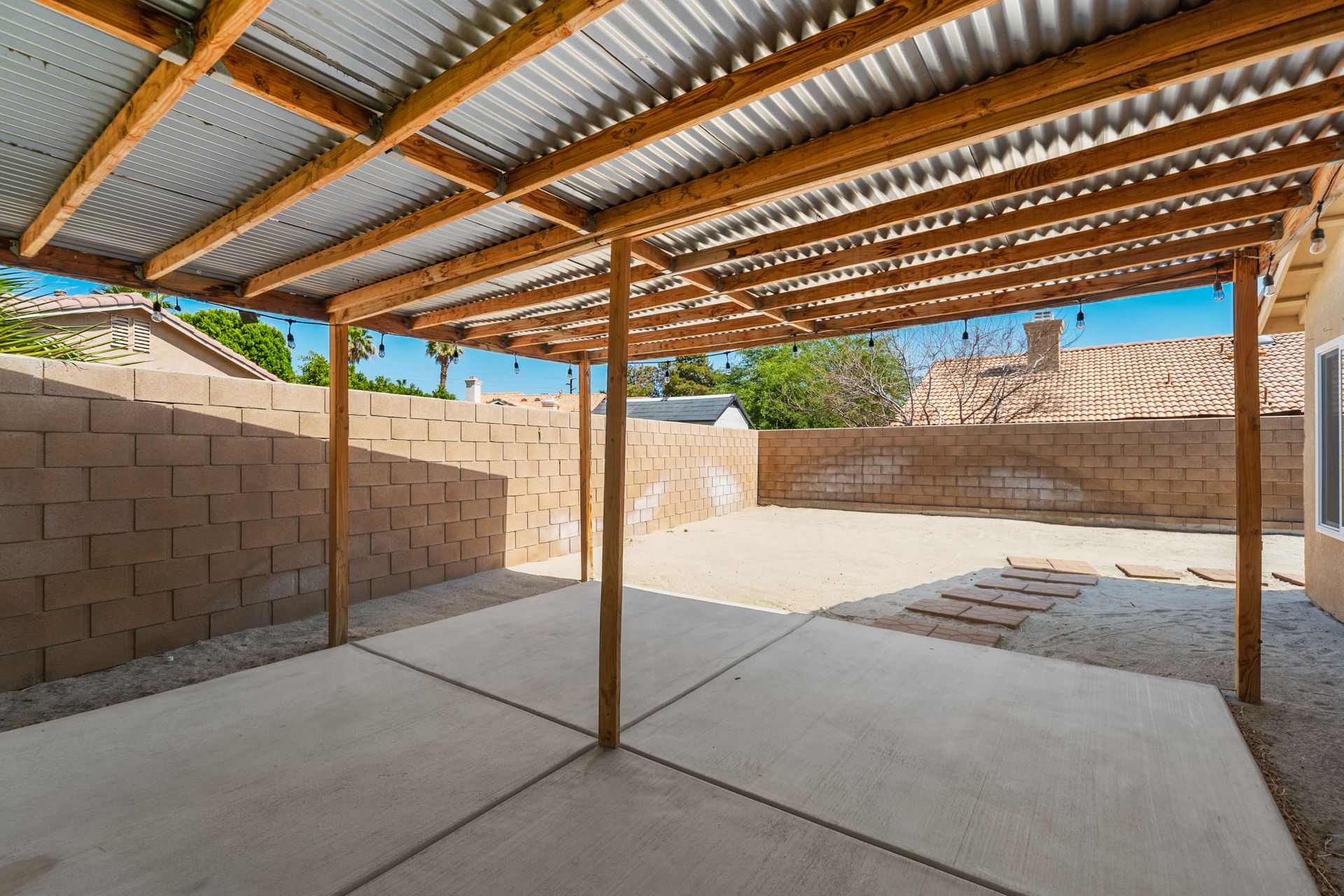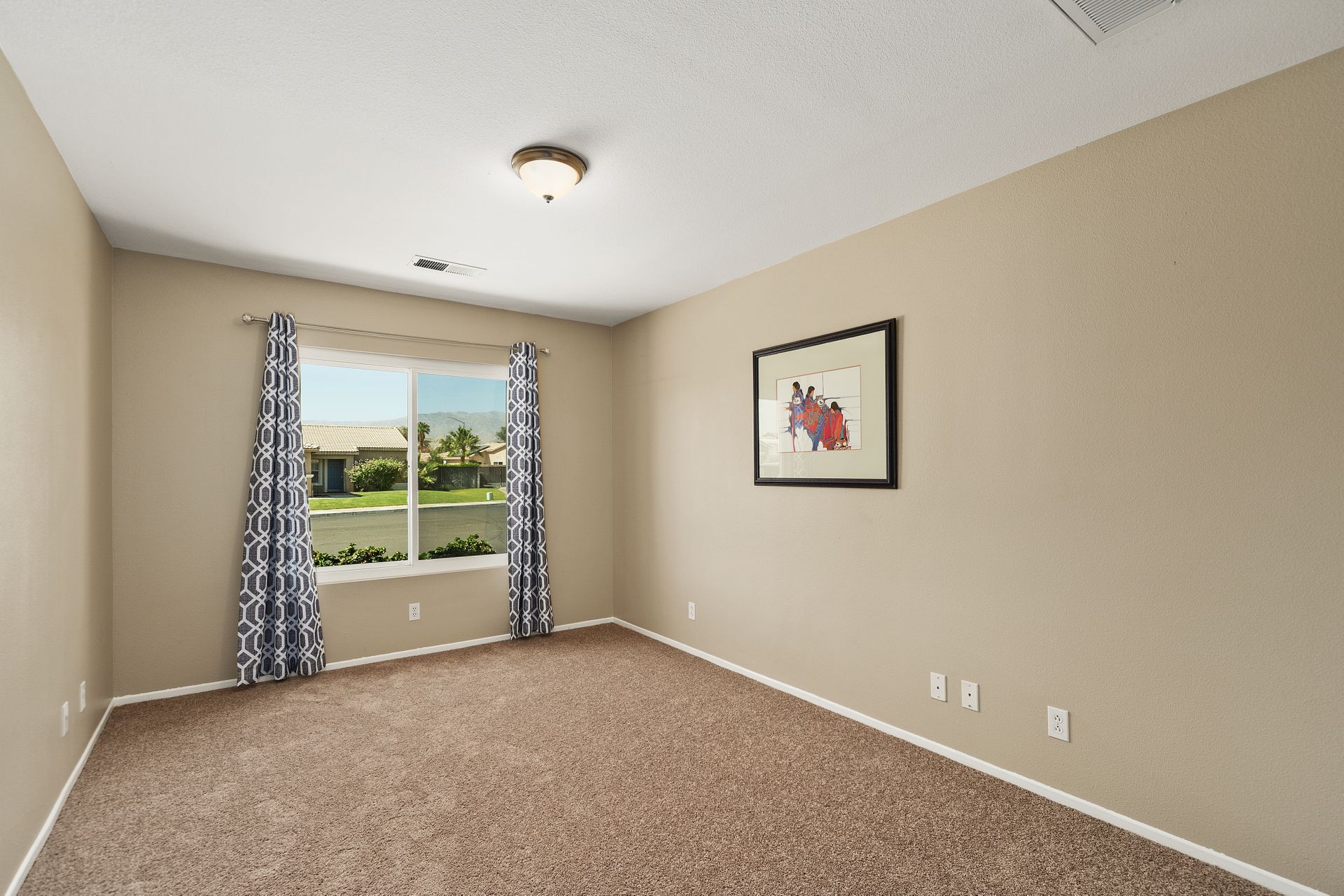 Beautiful Shadow Hills Villas property at the end of a Cul-de-Sac with Mountain Views!! Spacious and updated 3 Bedroom 2 Bathroom floor plan on a large 7841sqft lot. Open kitchen/dining room with ceramic tile flooring, kitchen island, and pantry (fridge, dishwasher, stove, and microwave are included). The dining room sliding glass door opens to a large outdoor space including two covered patios and a new long-lasting Alumawood Patio Cover. Separate great room living with new Dual Pane Windows, Paint, and Carpet. Master bedroom with ensuite and walk-in closet. Attached 2-car garage plus gated RV Parking with all of the hookups!! Fantastic location nearby the I-10 freeway access, golf, restaurants, shopping, schools, parks, and entertainment. Short-term rentals approved, low tax rate, and NO HOA!!