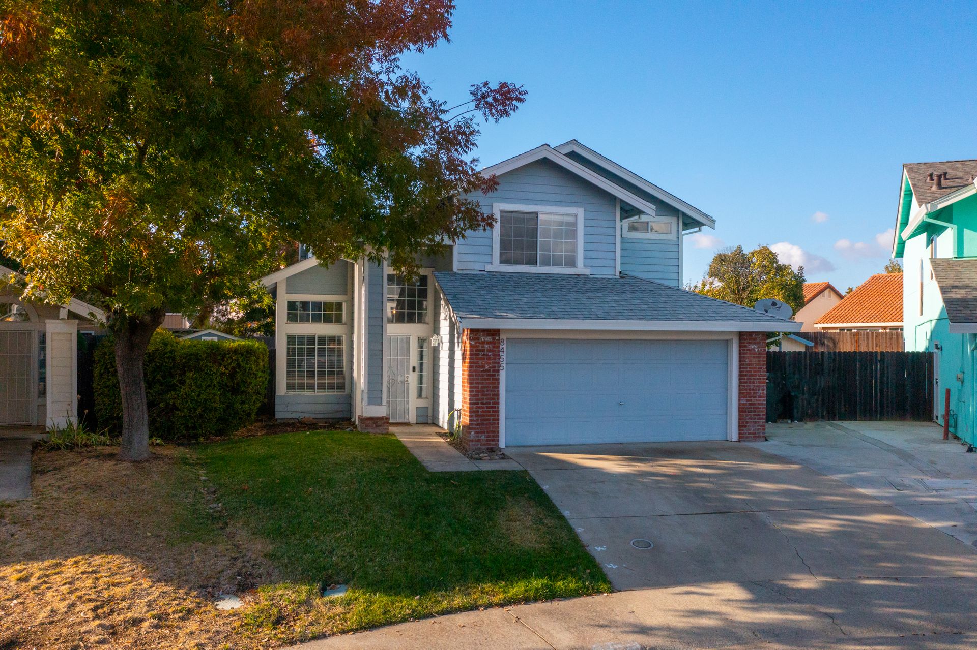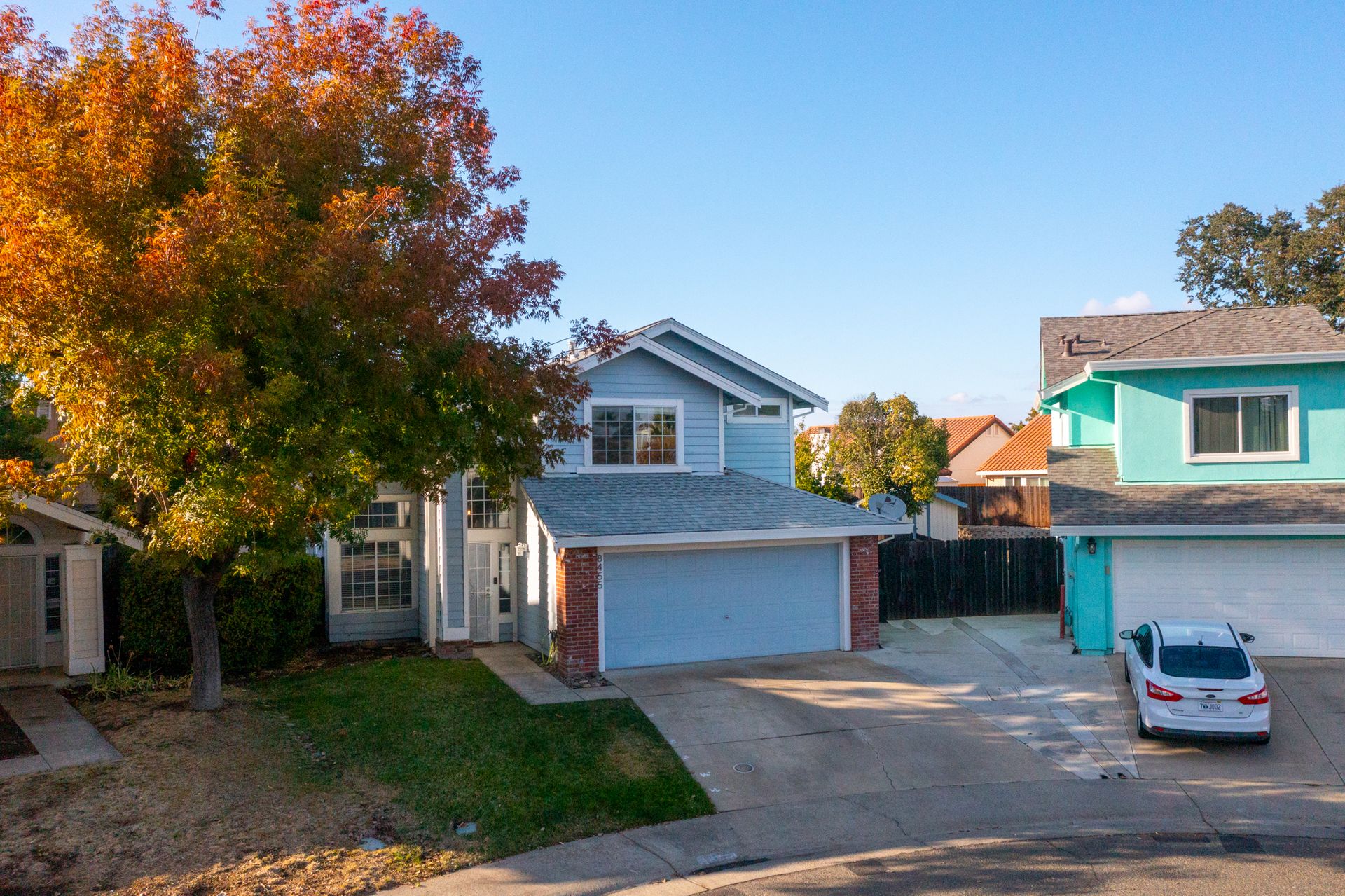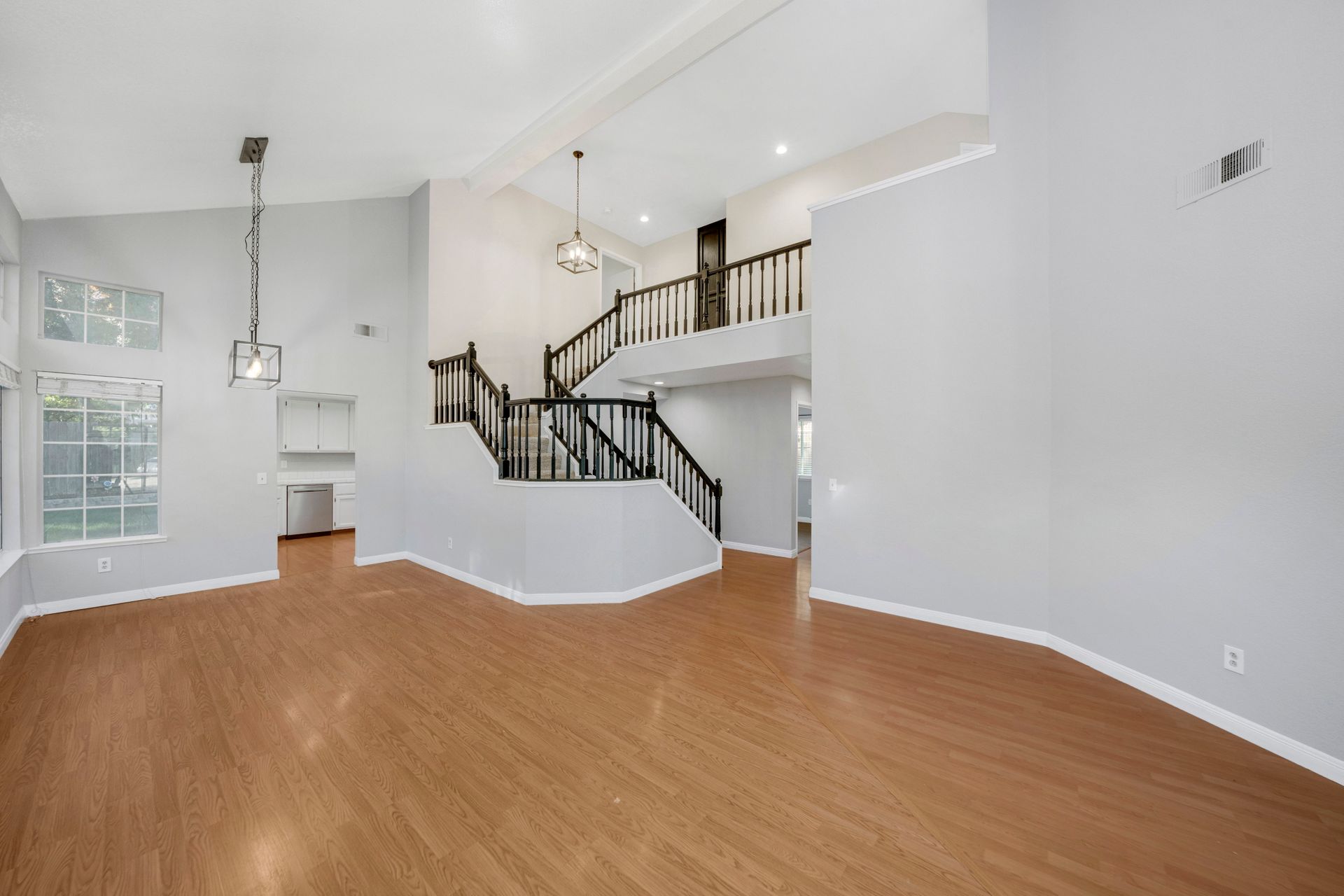 Welcome to this beautifully updated two-story home, nestled in a peaceful cul-de-sac. The grand entry features soaring cathedral ceilings and fills the space with natural light. The elegant dining room is ideal for hosting. The spacious kitchen with stainless steel appliances, a gas stove, sleek white cabinets and recessed lighting flows seamlessly into the family room, complete with a cozy brick-trimmed fireplace offering a warm and inviting atmosphere.