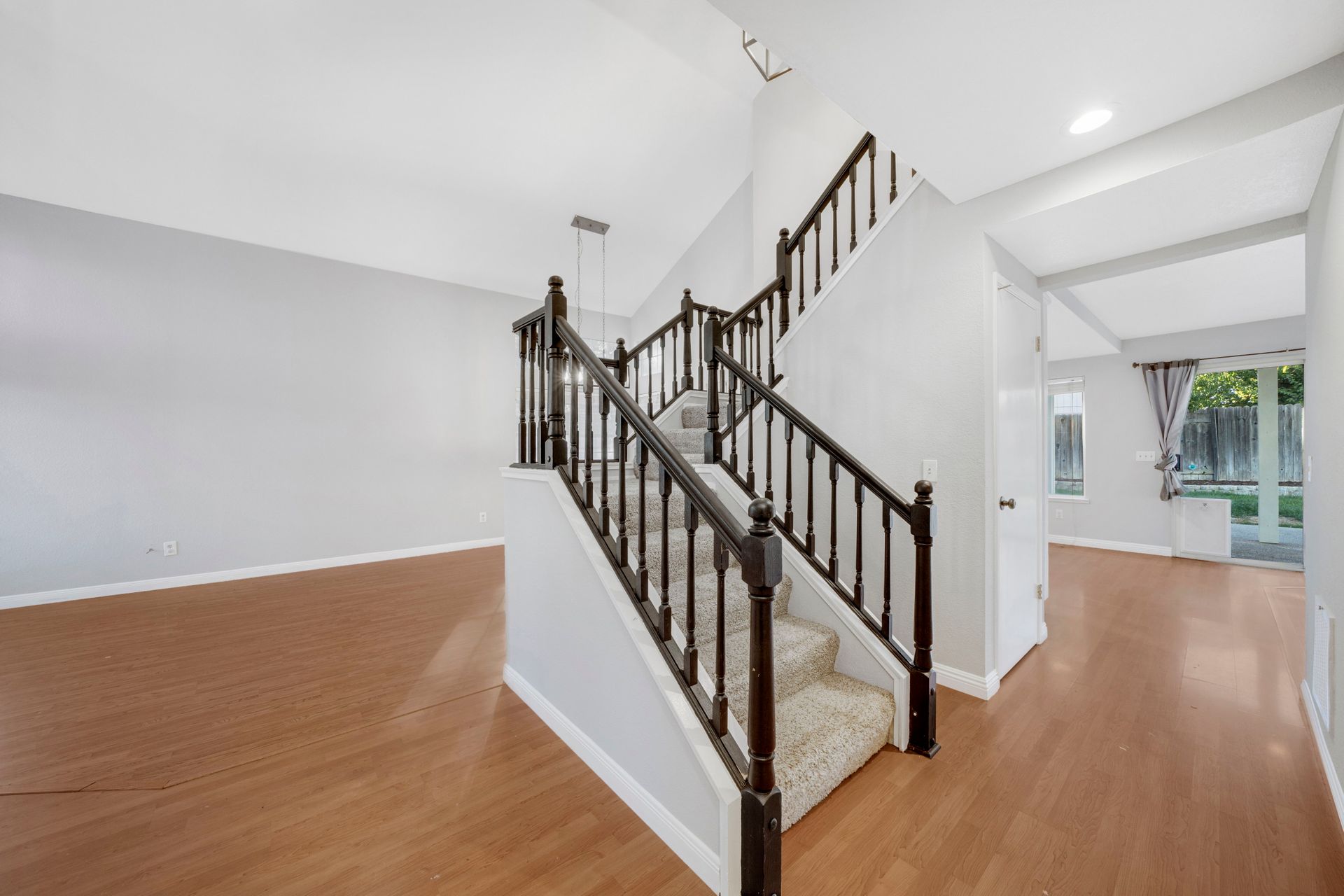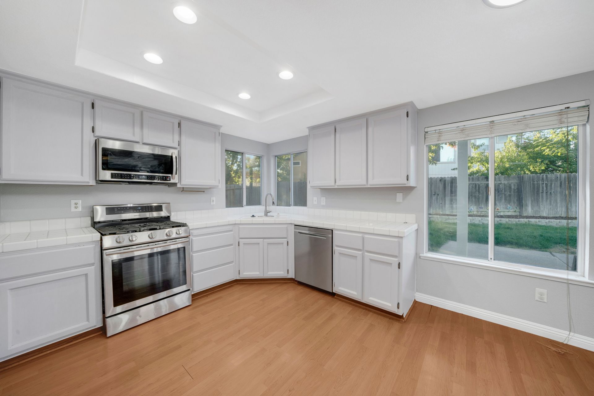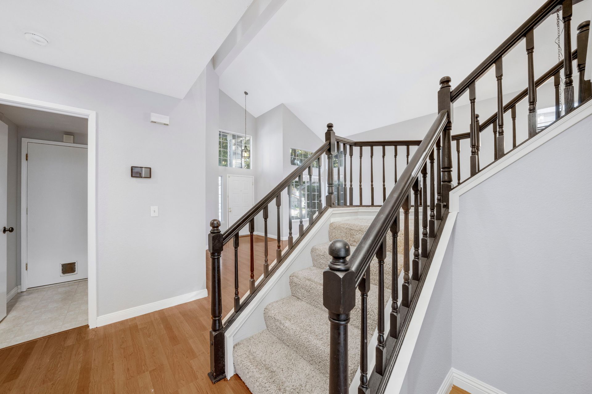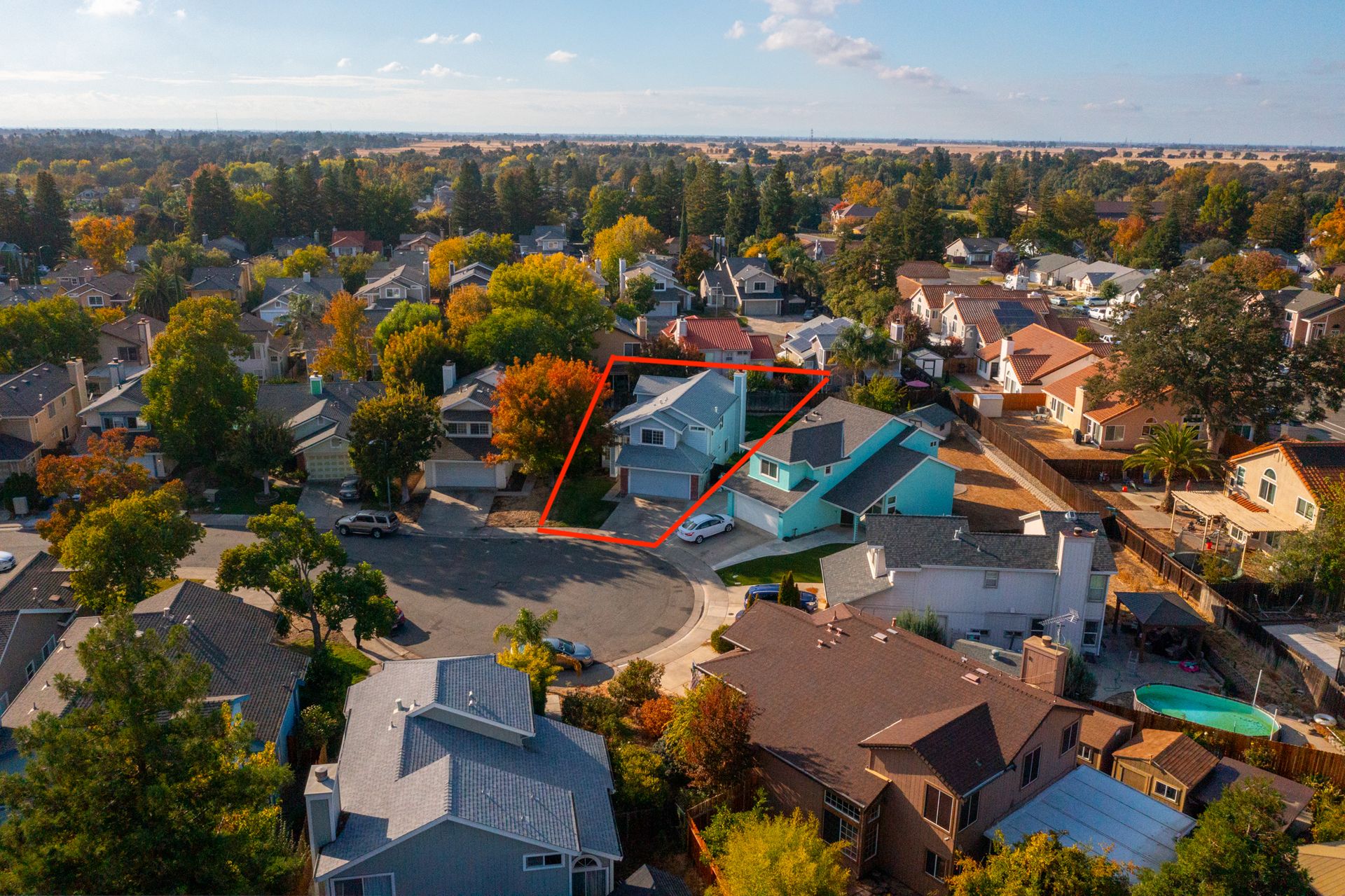Welcome to this beautifully updated two-story home, nestled in a peaceful cul-de-sac. The grand entry features soaring cathedral ceilings and fills the space with natural light. The elegant dining room is ideal for hosting. The spacious kitchen with stainless steel appliances, a gas stove, sleek white cabinets and recessed lighting flows seamlessly into the family room, complete with a cozy brick-trimmed fireplace offering a warm and inviting atmosphere.